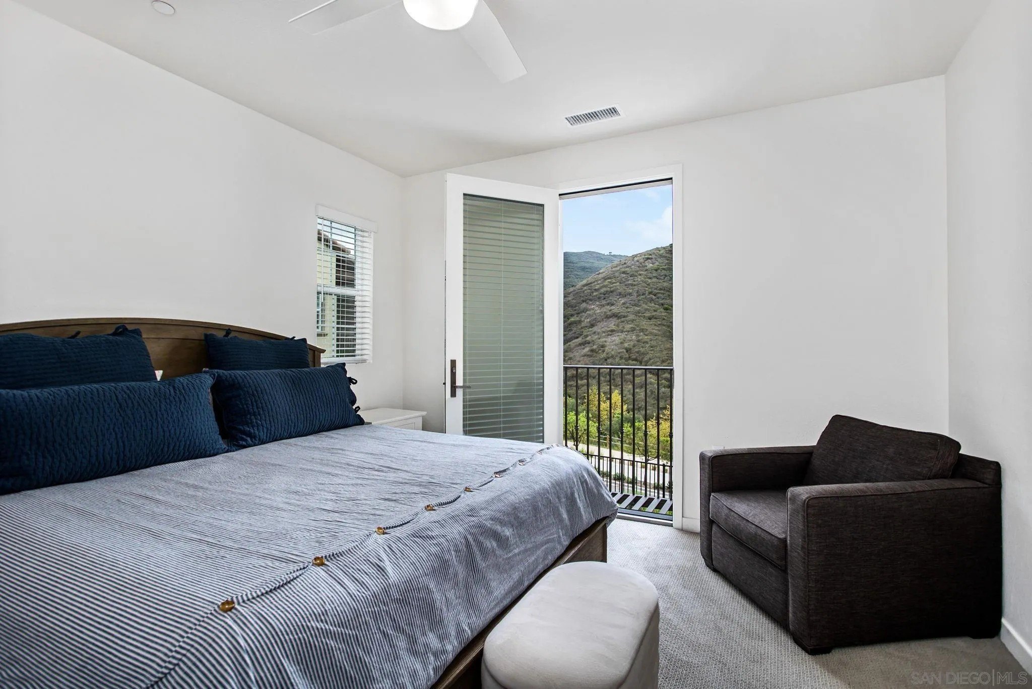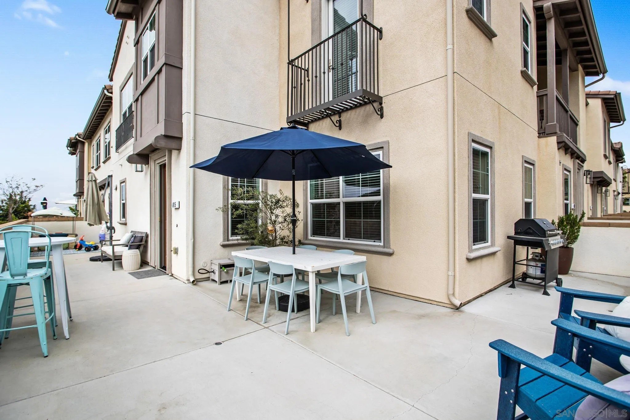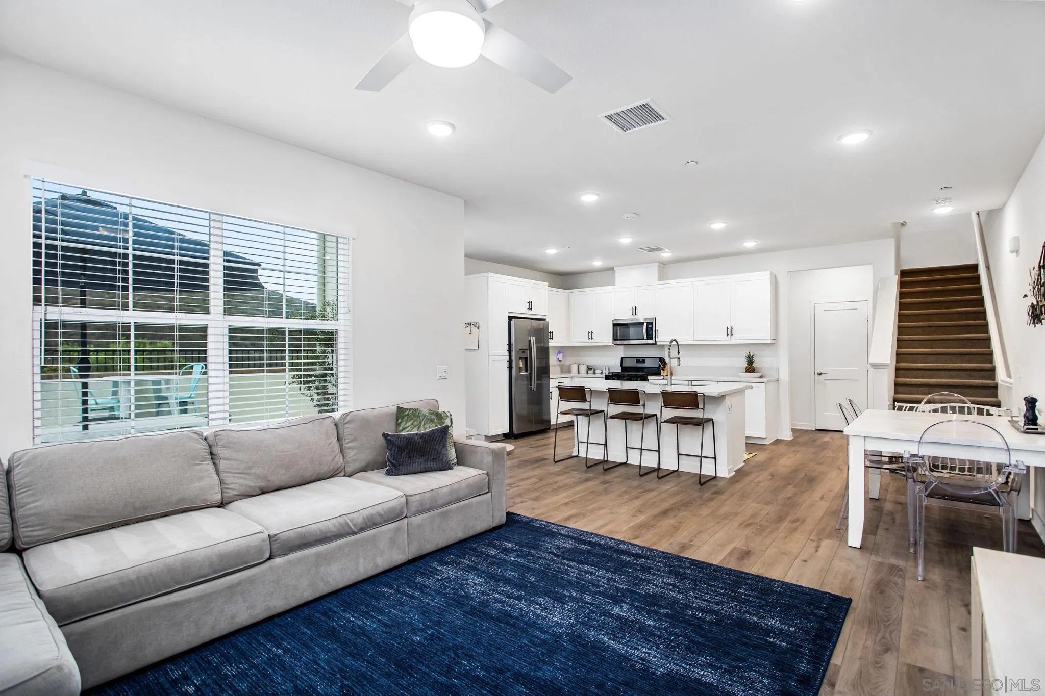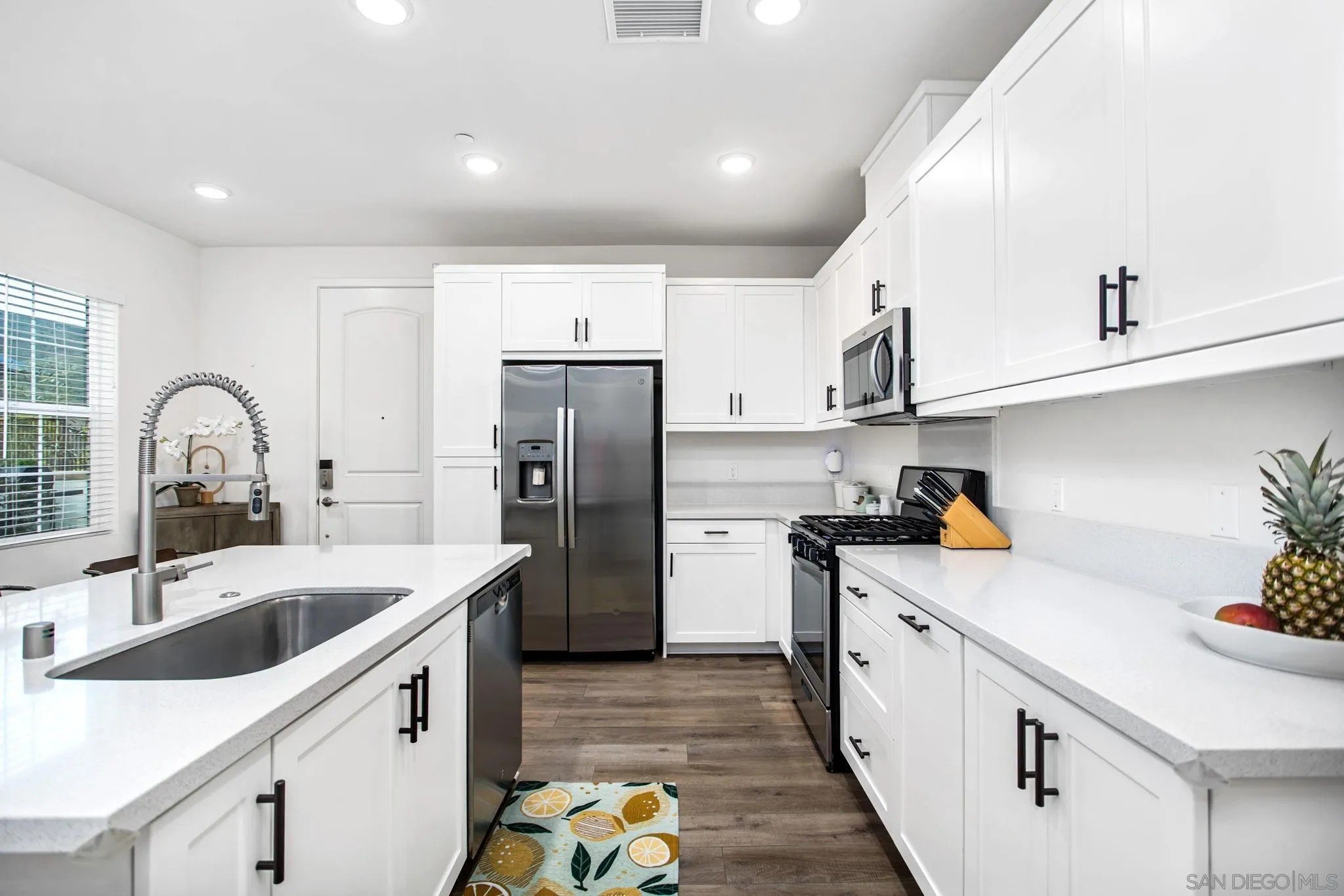 Welcome to Rancho Tesoro! This beautiful corner-unit townhome, built in 2021, is filled with natural light and modern charm. The open floor plan highlights a stylish kitchen with crisp white cabinetry, stainless steel appliances, and a center island with breakfast bar seating that flows into the living room. Upstairs, the spacious primary suite offers a walk-in closet, spa-like en-suite bath, and a Juliette balcony that welcomes in fresh breezes while framing hillside views. Additional features include energy-efficient solar, a private patio with mountain views, and an attached two-car garage. Nestled within the gated communities of Latitude and Skyhaus, residents enjoy resort-style amenities including a sparkling pool, playground, and scenic trails, with a nearby reservoir for fishing and nature walks. Served by highly rated Double Peak K-8 and Mission Hills High School, this home is the perfect blend of comfort, community, and convenience.