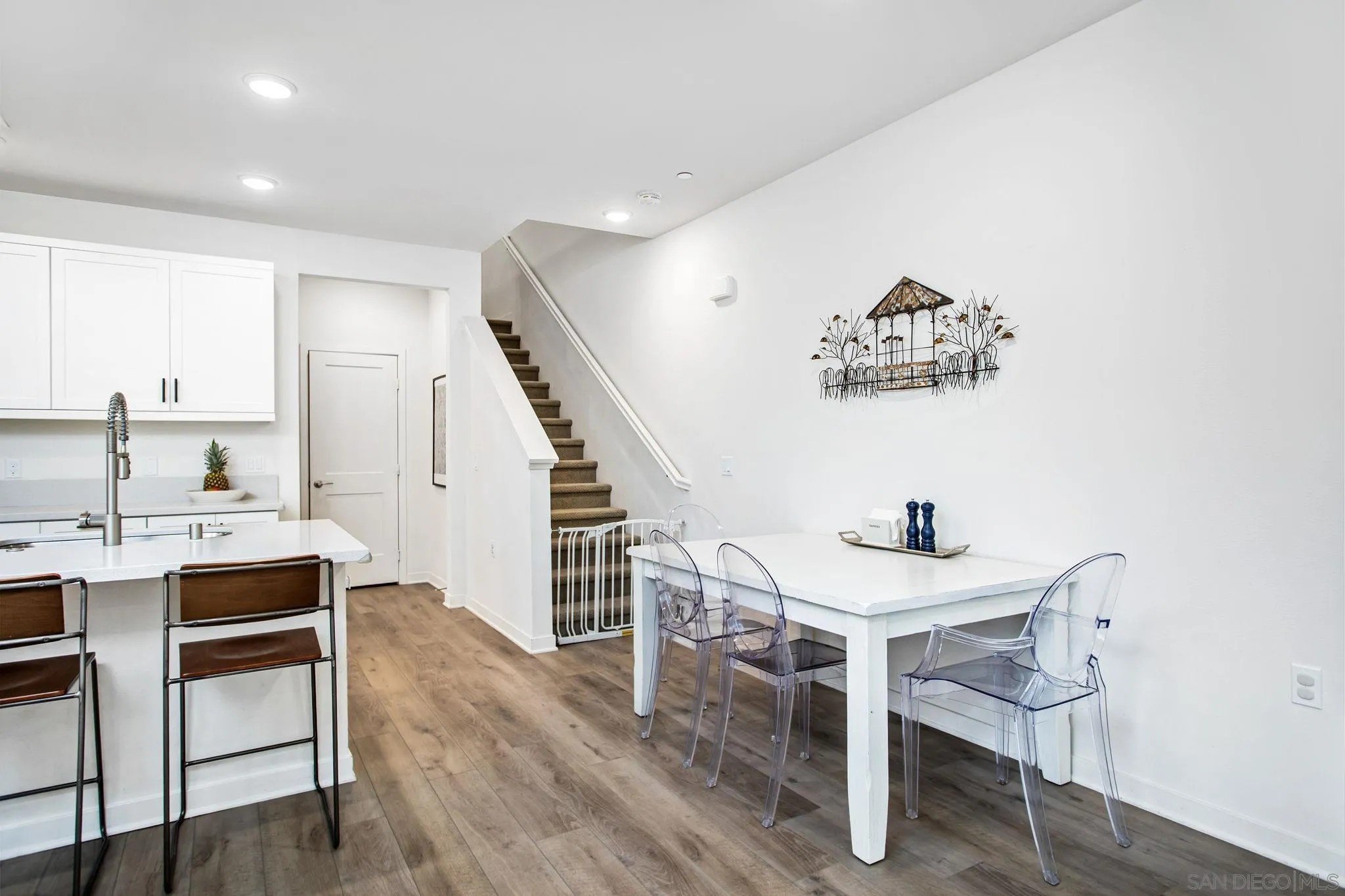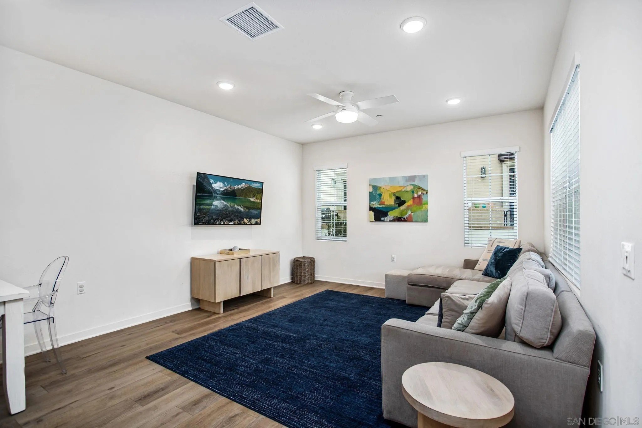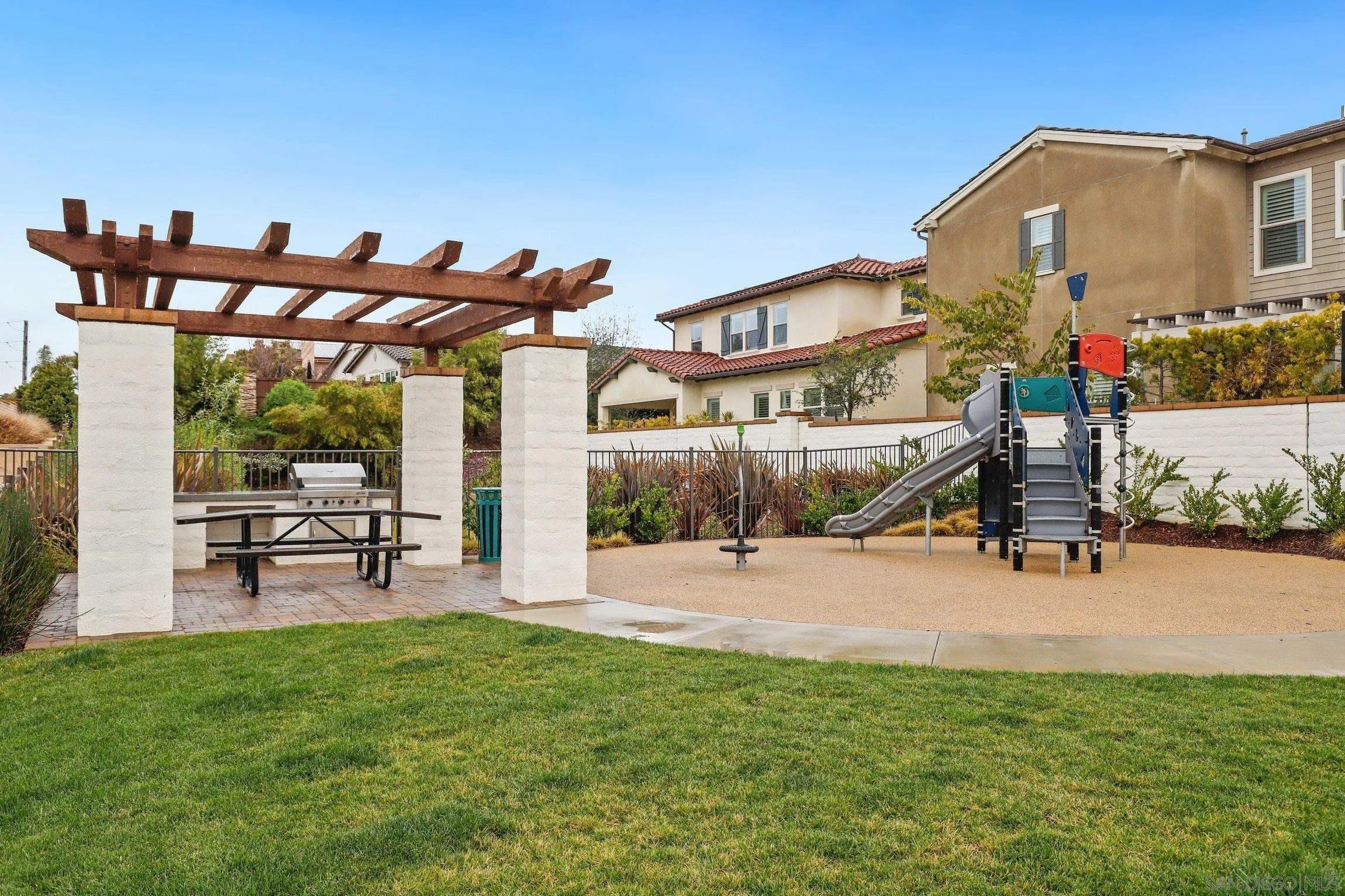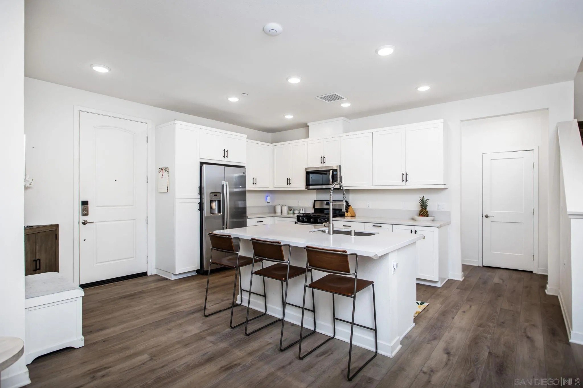 Welcome to Rancho Tesoro! This beautiful corner-unit townhome, built in 2021, is filled with natural light and modern charm. The open floor plan highlights a stylish kitchen with crisp white cabinetry, stainless steel appliances, and a center island with breakfast bar seating that flows into the living room. Upstairs, the spacious primary suite offers a walk-in closet, spa-like en-suite bath, and a Juliette balcony that welcomes in fresh breezes while framing hillside views. Additional features include energy-efficient solar, a private patio with mountain views, and an attached two-car garage. Nestled within the gated communities of Latitude and Skyhaus, residents enjoy resort-style amenities including a sparkling pool, playground, and scenic trails, with a nearby reservoir for fishing and nature walks. Served by highly rated Double Peak K-8 and Mission Hills High School, this home is the perfect blend of comfort, community, and convenience.