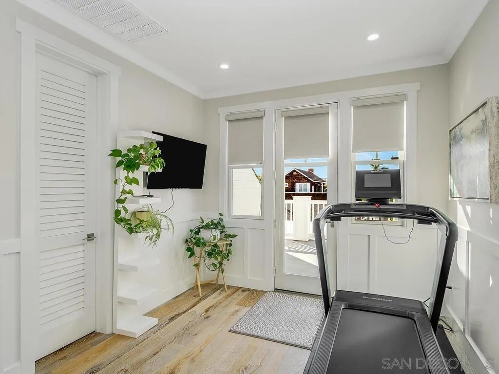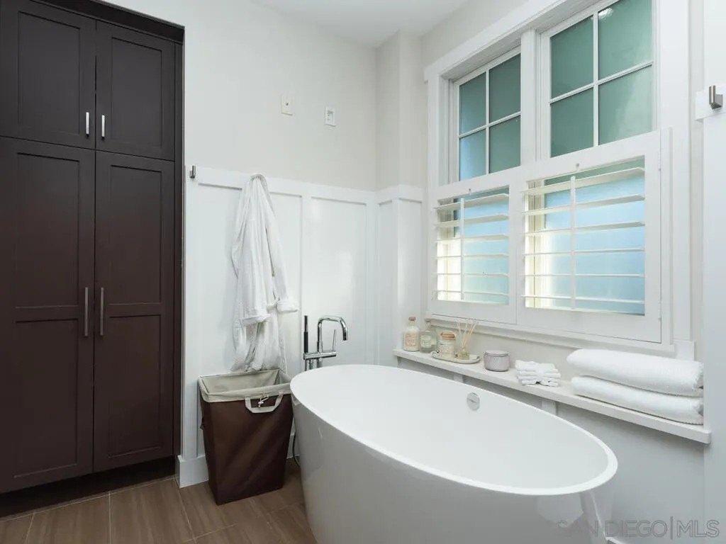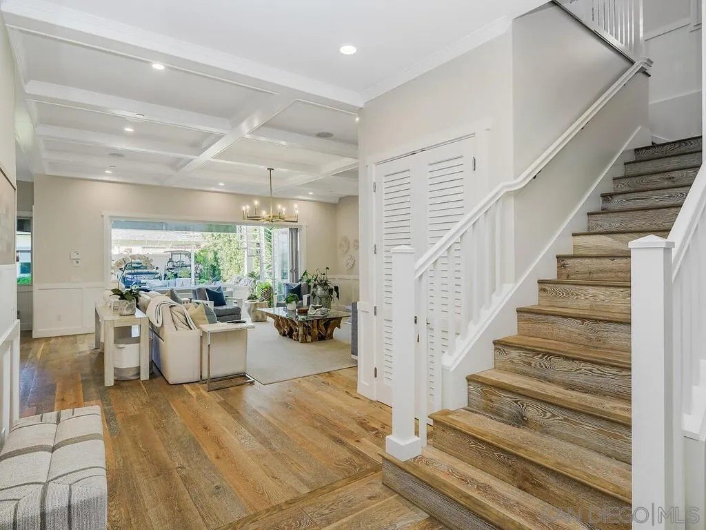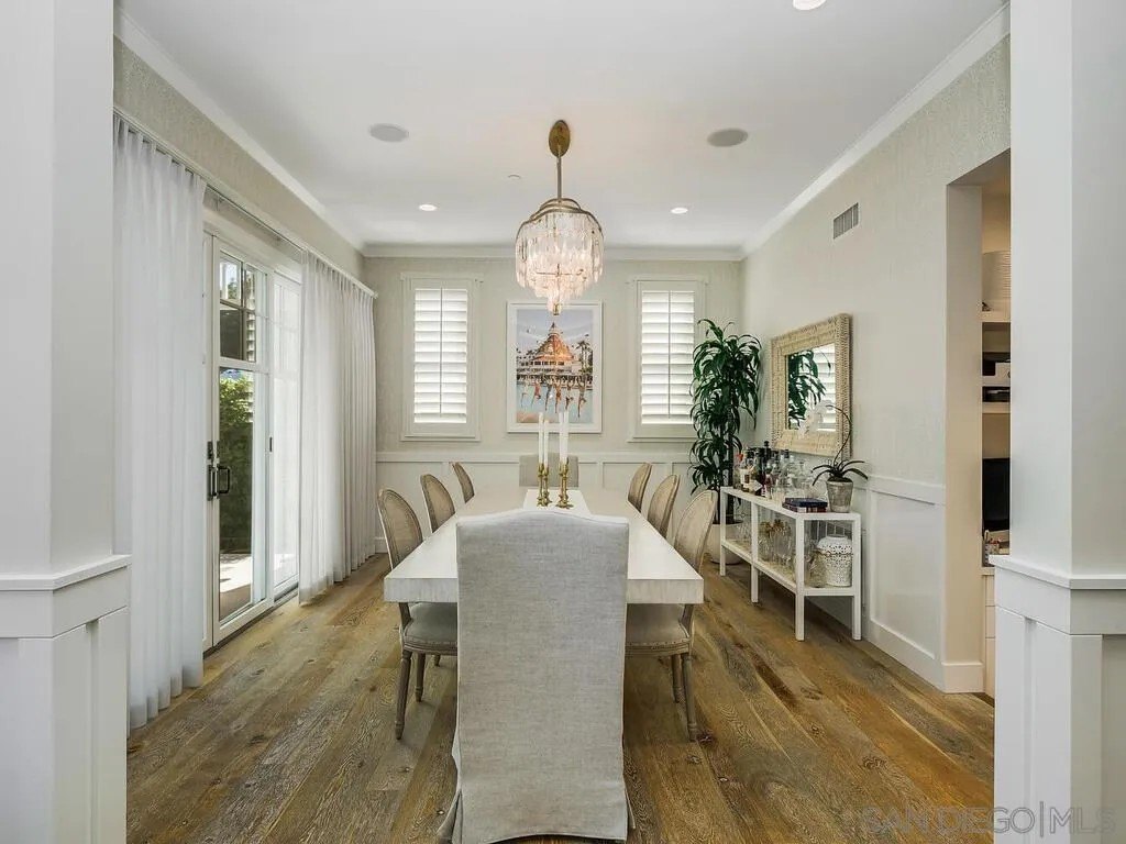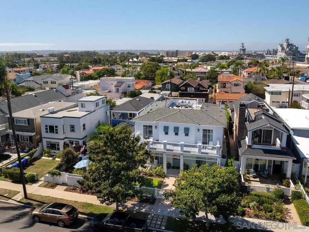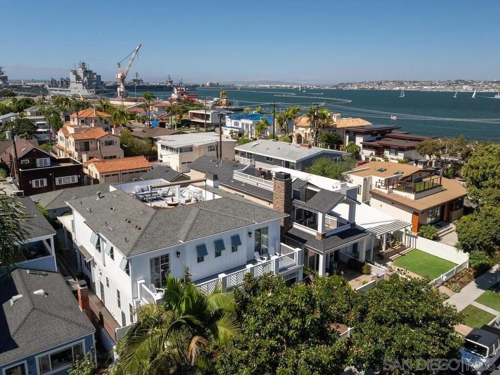 Just steps from the bay and across from Bay View Park, this custom Coronado home combines coastal elegance with modern convenience in a relaxed yet sophisticated setting. Thoughtfully designed for indoor-outdoor living, the main level features engineered wood floors, a formal dining room, and a gourmet kitchen with premium appliances, quartz countertops, and a large center island that flows seamlessly into the living area with fireplace and out to a covered patio with BBQ, and grassy yard. A first-floor bedroom suite adds flexibility for guests or multigenerational living, while upstairs you'll find three additional suites-including a primary retreat with fireplace, spa-style bath with soaking tub and rain shower, walk-in closet, and private balcony. Two secondary suites open to a covered veranda, and an expansive rooftop deck-accessible from both levels-offers sweeping views of the bay, San Diego skyline, and Coronado Bridge. Additional highlights include surround sound, custom wainscoting, plantation shutters, a security system, and a detached two-car garage with epoxy flooring, as well as extra covered parking for two and space for two in the alley. Ideally located near the ferry, shops, and dining, this home delivers quality, comfort, and the ultimate Coronado lifestyle.