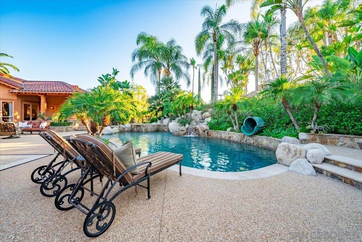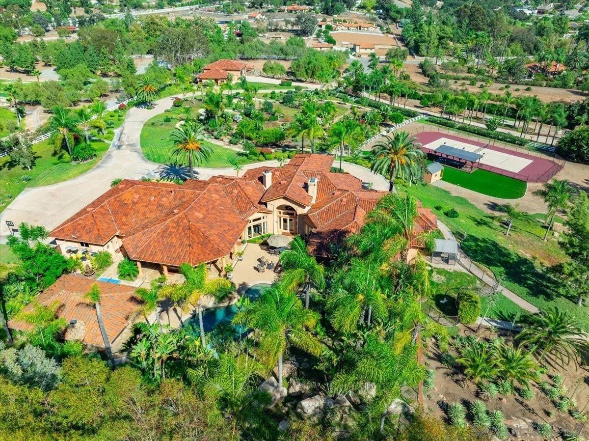 Prepare to be captivated by Blossom Valley's most exceptional estate, a privately gated sanctuary that redefines Southern California living. From the moment you enter through the grand gates, you are greeted by a sprawling 6.54-acre estate, offering unparalleled privacy and space. This estate is meticulously designed for both lavish gatherings and intimate celebrations, making it a true entertainer's paradise. The heart of this home is a chef's dream kitchen, featuring a huge prep island with a custom decorative extra-thick granite slab, a professional Wolf range, & Sub-Zero refrigerator, ensuring every culinary endeavor is a delight. The sophisticated 600 bottle Wine Cellar, an ideal for tastings and storing your prized collection. Featuring a 600 sq' guest house, perfect for visitors or extended family. An impressive 2 RV garage 40' wide by 50' long, with man cave/workshop & bathroom. The game room provides endless entertainment possibilities. The outdoor oasis features a magnificent resort-like pool and spa with enchanting waterfalls and an exhilarating 90-foot waterslide, promising endless fun and relaxation. The outdoor entertainment pavilion features a full kitchen, living room w/ cozy wood-burning fireplace. Sports enthusiasts will appreciate the private tennis & pickleball court. Inside, the master suite offers a sanctuary of luxury, complete with a Jacuzzi tub w/ fireplace, & a steam shower/sauna featuring aromatherapy for ultimate rejuvenation. Equipped w/ a state-of-the-art 108 panel solar system for energy efficiency and pool solar for year-round enjoyment.