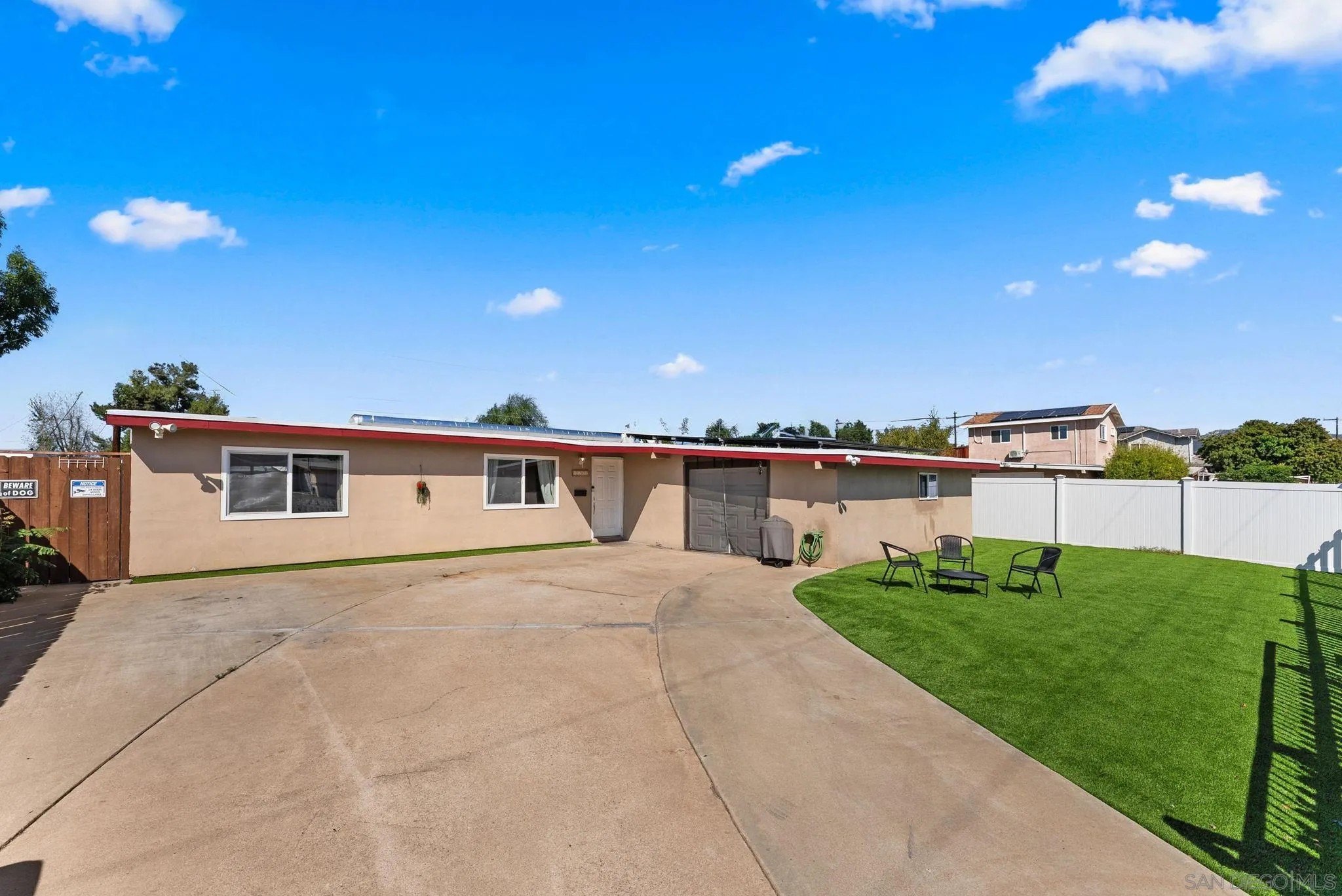 Step inside to 1362 Joliet St-a remodeled solar-powered home with a versatile bonus room & private outdoor oasis. This conveniently located and beautifully updated 3-bedroom, 2-bath home blends modern upgrades with everyday comfort. Enjoy a versatile bonus room - ideal for a home office, playroom, or extra living space in addition to a stylish galley-style kitchen featuring sleek cabinetry, modern appliances, and a built-in microwave. The home features bright and inviting rooms, dual-pane windows, contemporary flooring, and recessed lighting throughout. The primary suite includes backyard access through a sliding glass door, while the epoxy-finished oversized garage provides ample parking and storage. Step outside to a spacious, fully fenced, yard designed for easy living with low-maintenance artificial turf and a private outdoor seating area under a canopy in the front of the house. Additional highlights include a 3-car driveway and solar panels for energy efficiency. Perfectly located just off N 2nd St. and Jamacha Rd. with quick access to the 8 Freeway, this move-in ready home delivers the ideal combination of style, functionality, and convenience. Come have a look!