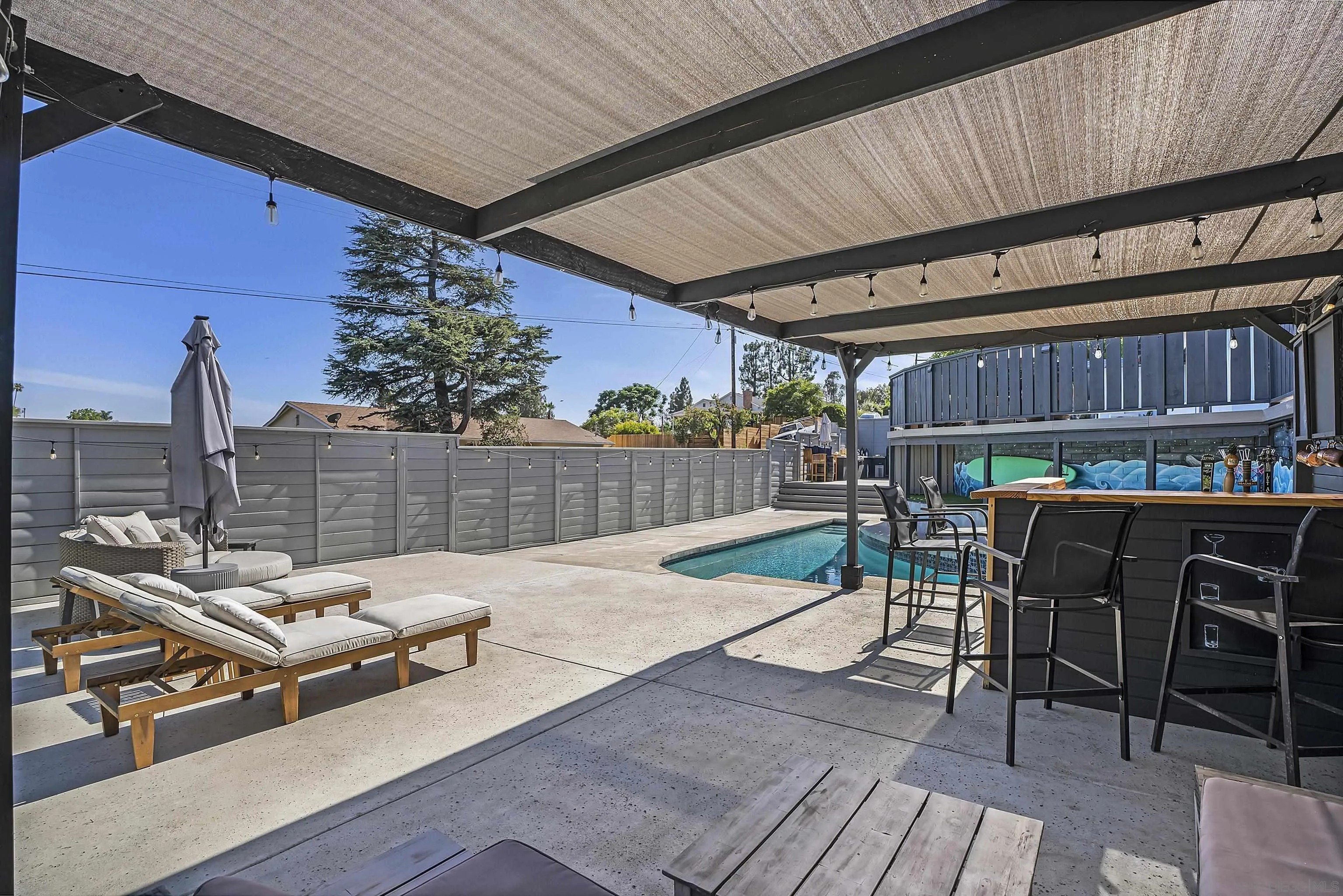 Over $400k in upgrades since 2020! The stunning, remodeled, 2,152 sqft main house features 4 BR / 2 BA and oversized office (5th BR) and offers a separate & private fully detached, permitted, 487 sqft. studio ADU w/ washer/dryer, exclusive use yard & driveway. Paid for solar. Designer eat in kitchen, huge outdoor deck and fully fenced outdoor area including a 17' x 10' outdoor kitchen equipped with MasterBuilt Gravity smoker, Bull BBQ / Side Burner & outdoor sink, swimming pool and 8' x 6' bar & seating area make this an entertainer's dream! This property is the perfect home for the indoor / outdoor Southern California lifestyle. Mature citrus trees (Blood/Navel Orange & Lemon) adorn the pristine grassy outdoor garden area. Large master bedroom w/ custom built closets & new master bath. Spa & outdoor gym area (covered). Private and quiet.