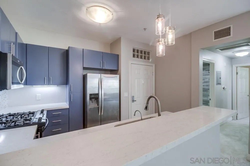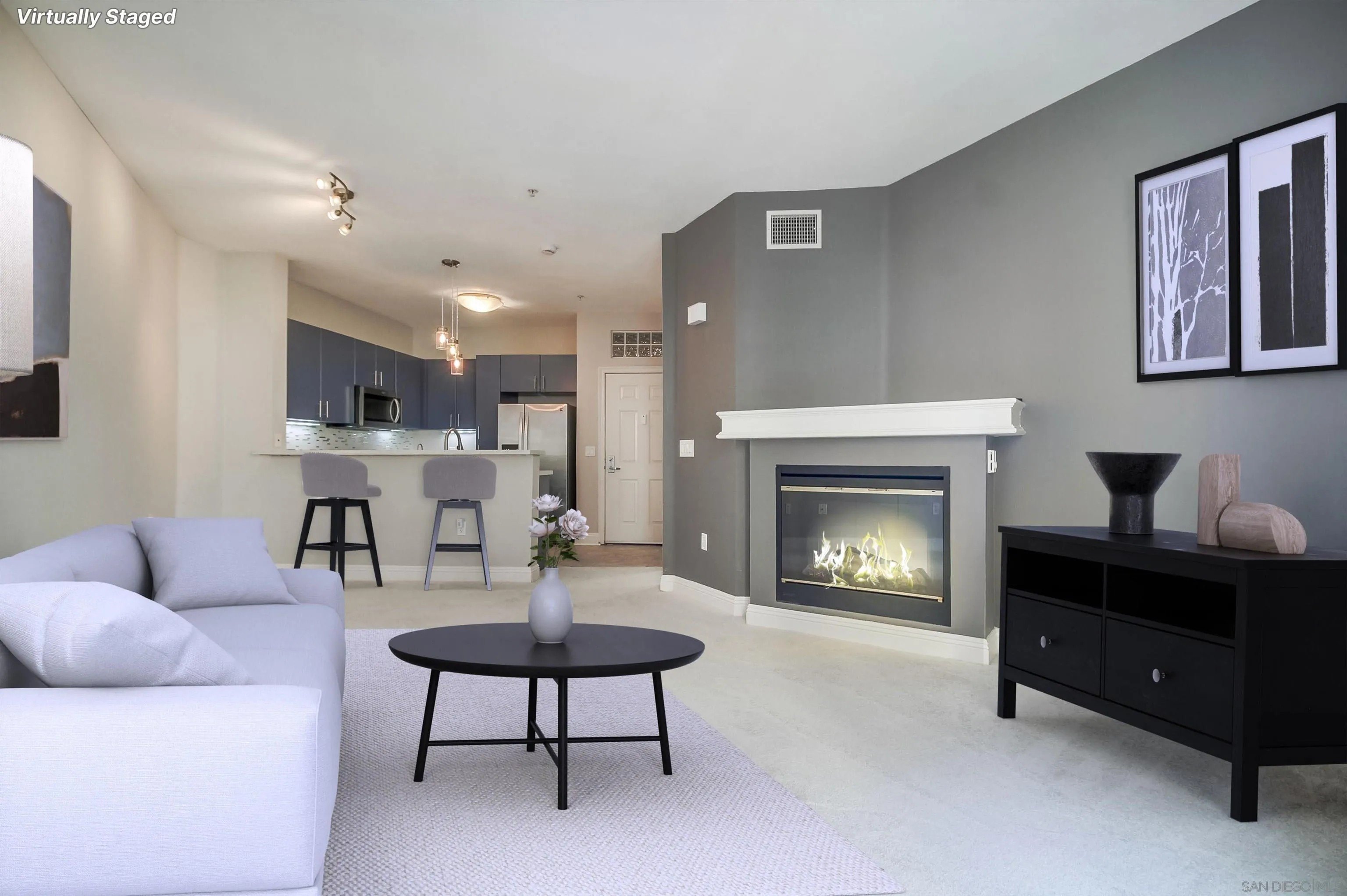 Step into this great opportunity to own a beautiful, remodeled and spacious 1-bedroom home at 1400 Broadway in Union Square in Downtown San Diego's trendy East Village. This home features an updated kitchen with quartz countertop, custom back splash and lighting, fireplace, new flooring throughout and a balcony off the living room. Located near top restaurants, shopping, Petco Park , entertainment and City College. this home also has in-unit laundry, central A/C and one dedicated parking space. You will enjoy the amenities at Union Square with gated entry, well-equipped gym, community room, jacuzzi and EV charging. This home is well priced, so don't miss out.
