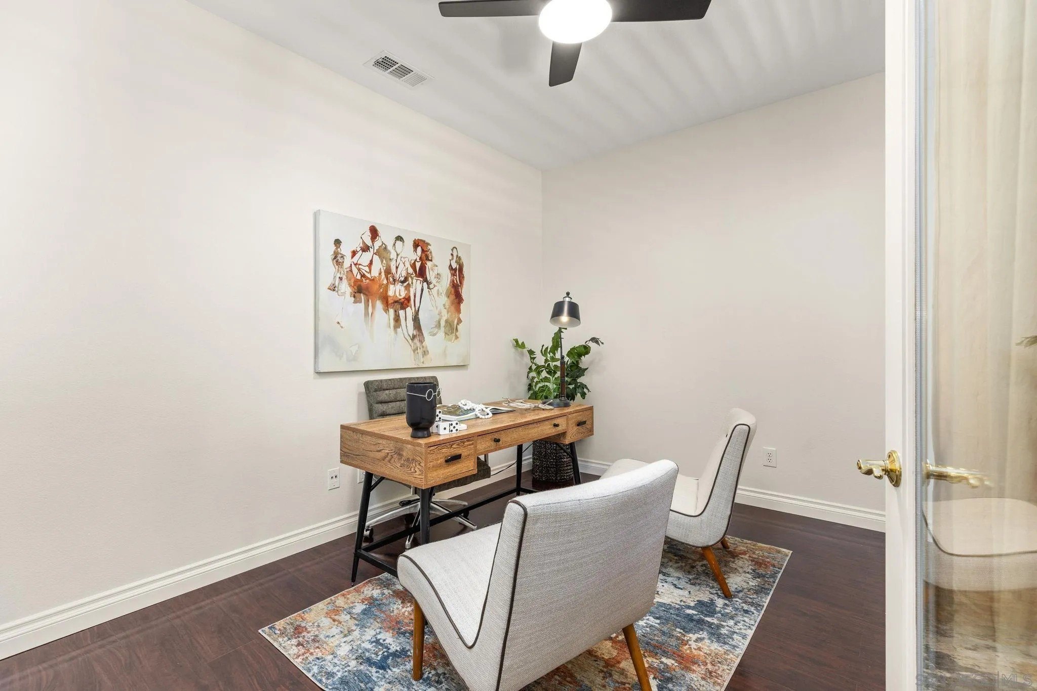 Discover this charming single-story home tucked away on a quiet cul-de-sac in the gated Rancho San Pasqual community, offering beautiful views of the surrounding hills and golf course. The open-concept floor plan features vaulted ceilings, durable flooring throughout, and 3 bedrooms plus an optional 4th (no closet)-perfect for a home office or guest room. Freshly painted inside and out! Central A/C, all new ceiling fans & light fixtures, The kitchen is equipped with stainless steel appliances, an island with breakfast counter seating, and opens seamlessly to the family room, where a cozy stacked-stone fireplace creates a warm gathering space. The spacious primary suite offers comfort and privacy, while the low-maintenance landscaping and large patio cover make outdoor living easy year-round. An oversized garage provides 2 parking spaces plus a 12x7 workshop/storage area for hobbies or extra storage. Located on the newly renovated Dos Osos Golf Course, residents enjoy secure community amenities including a golf course, sparkling pool, spa, and clubhouse.