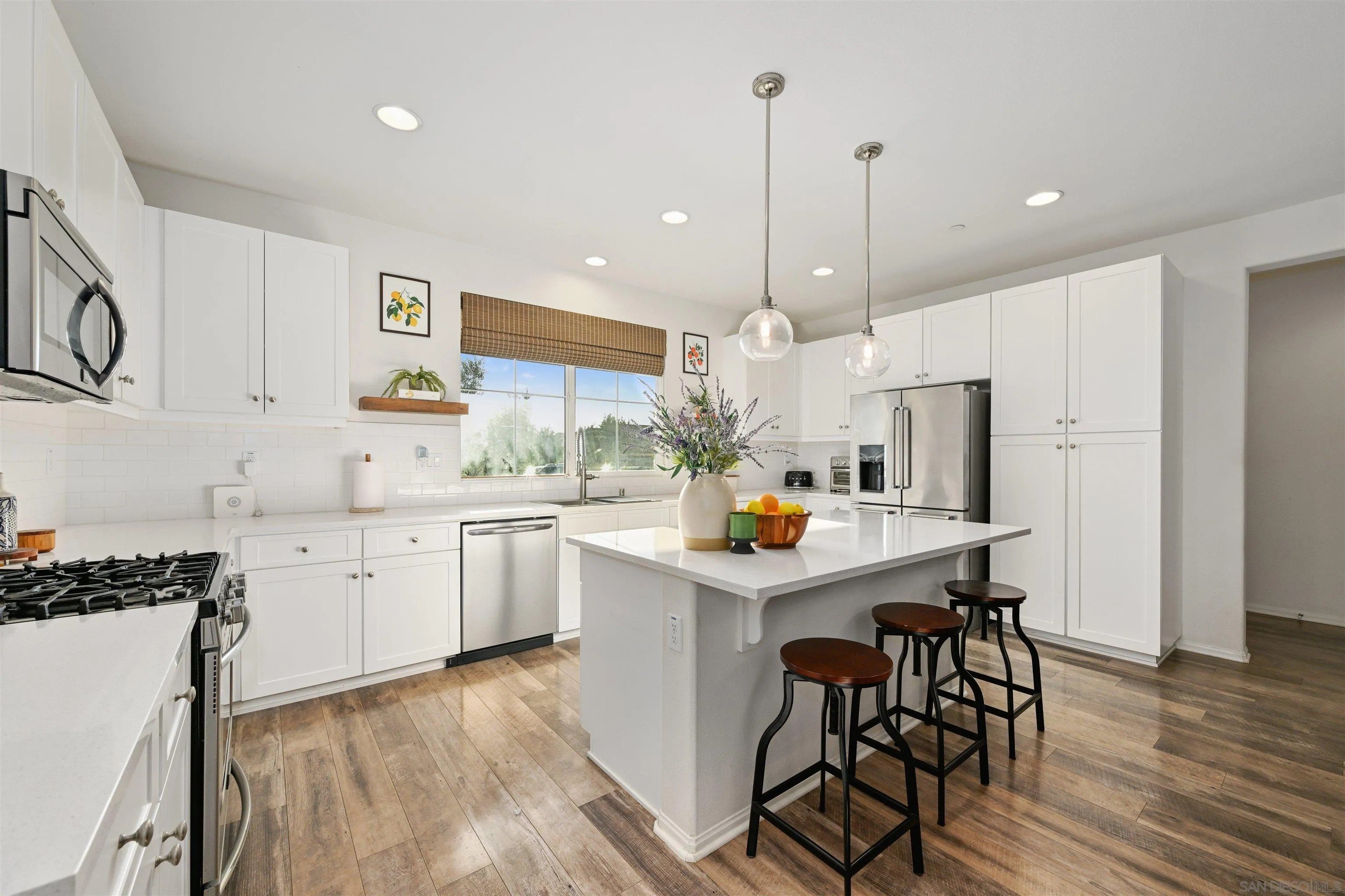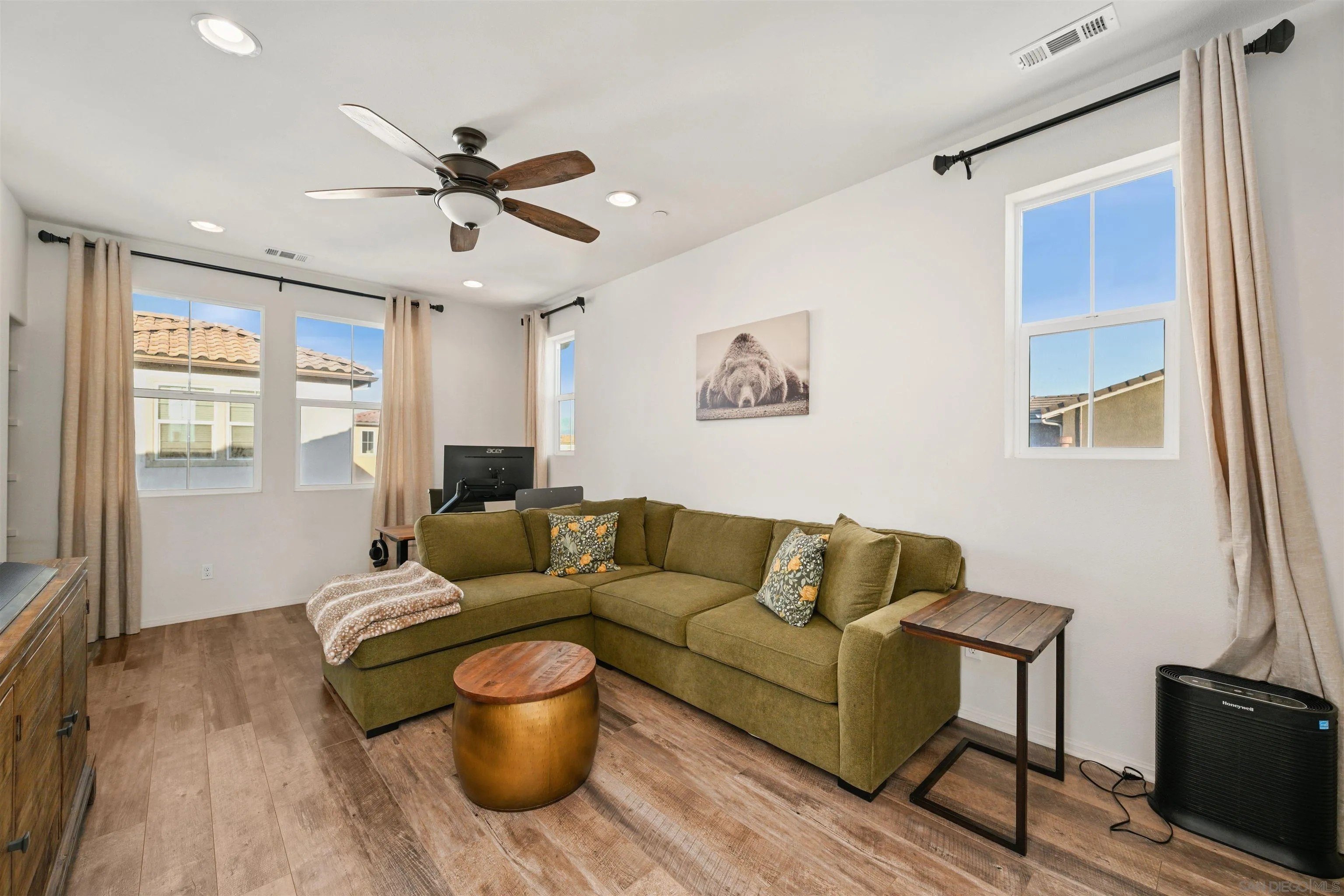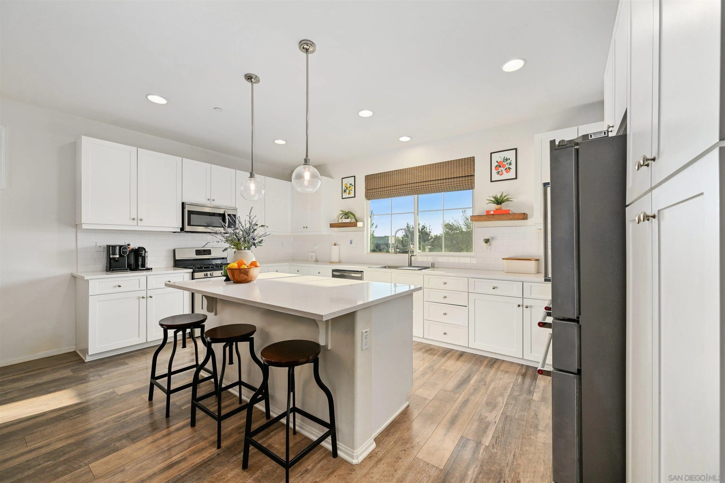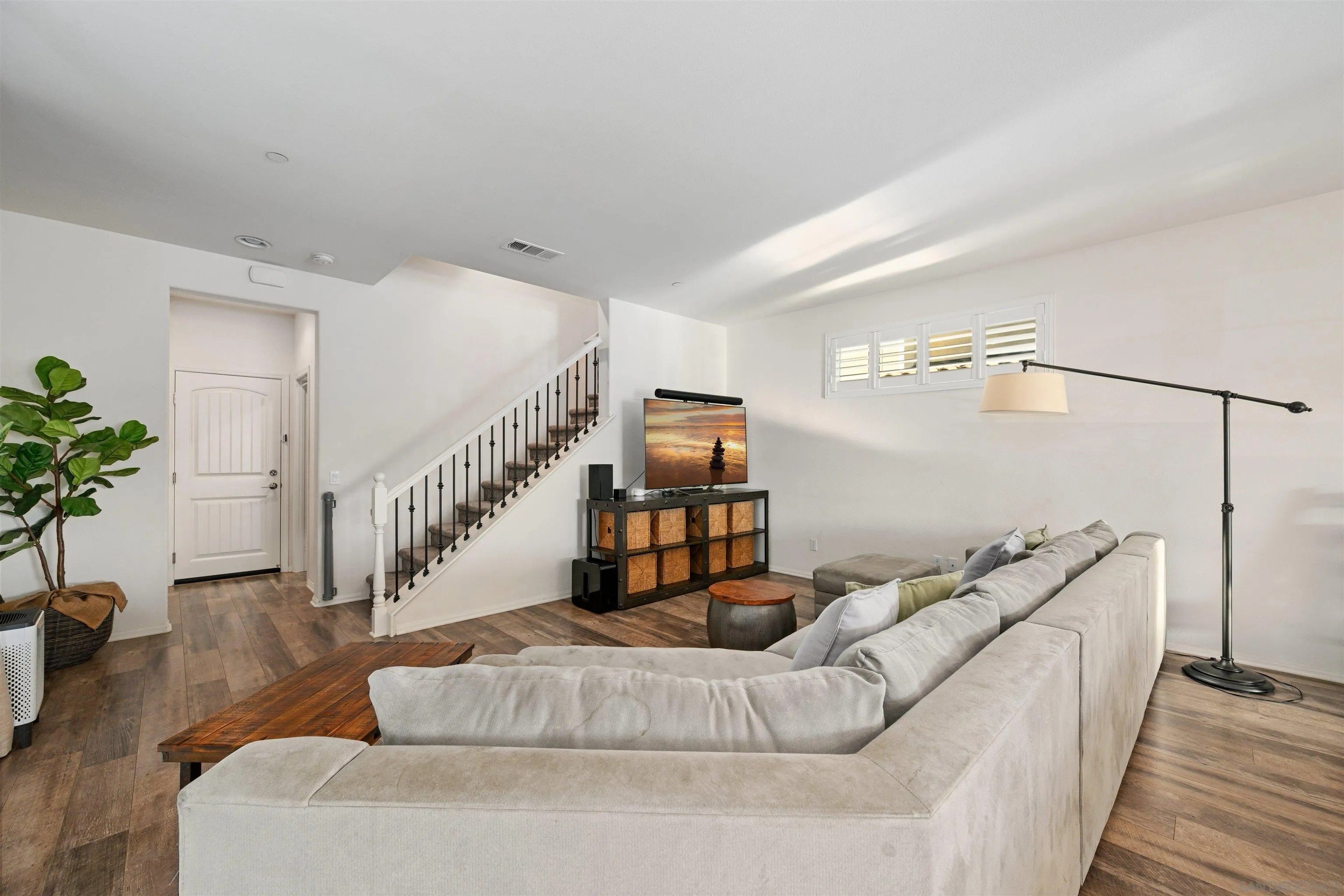 In the heart of Otay Ranch's sought-after Montecito community, this 4 bedroom, 3.5 bath home offers the perfect blend of comfort, style, and convenience. With over 2,500 sq. ft. of thoughtfully designed living space, every detail has been crafted for modern family living. Enter to find newer LVP flooring throughout and an open-concept floor plan that seamlessly connects the living, dining, and kitchen areas. The updated kitchen boasts a stylish backsplash, ample counter space, and a functional layout perfect for gatherings. Both the primary suite and secondary bedrooms feature large walk-in closets, providing abundant storage. Updated bathrooms with contemporary finishes add a fresh, elevated touch. On the third floor, you'll discover a spacious loft - perfect for a media room, playroom, or home office - along with a private fourth bedroom complete with an oversized walk-in closet and full bath. This home also features owned solar, offering energy efficiency and long-term savings. The location is truly special: situated directly across from Meadow Park, you'll enjoy easy access to green space, walking trails, and playgrounds right outside your front door. The private fenced yard provides even more opportunities for indoor/outdoor living. As part of the Village of Montecito, residents enjoy resort-style amenities including a pool, spa, clubhouse, and community events. All this while being close to top-rated schools, shopping, dining, and everything Otay Ranch has to offer. 1747 Santa Christina Ave is move-in ready and waiting for you to call it home.
