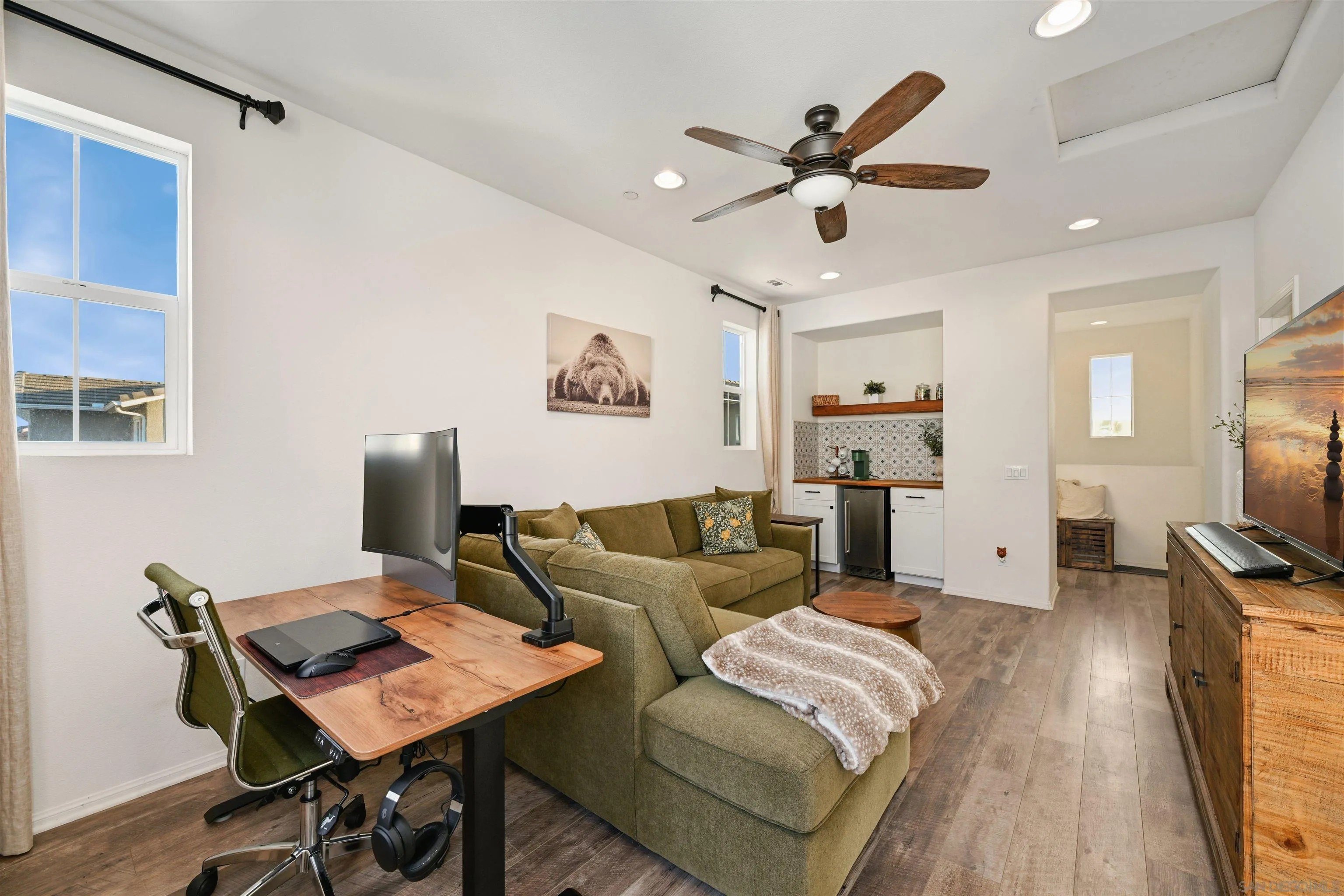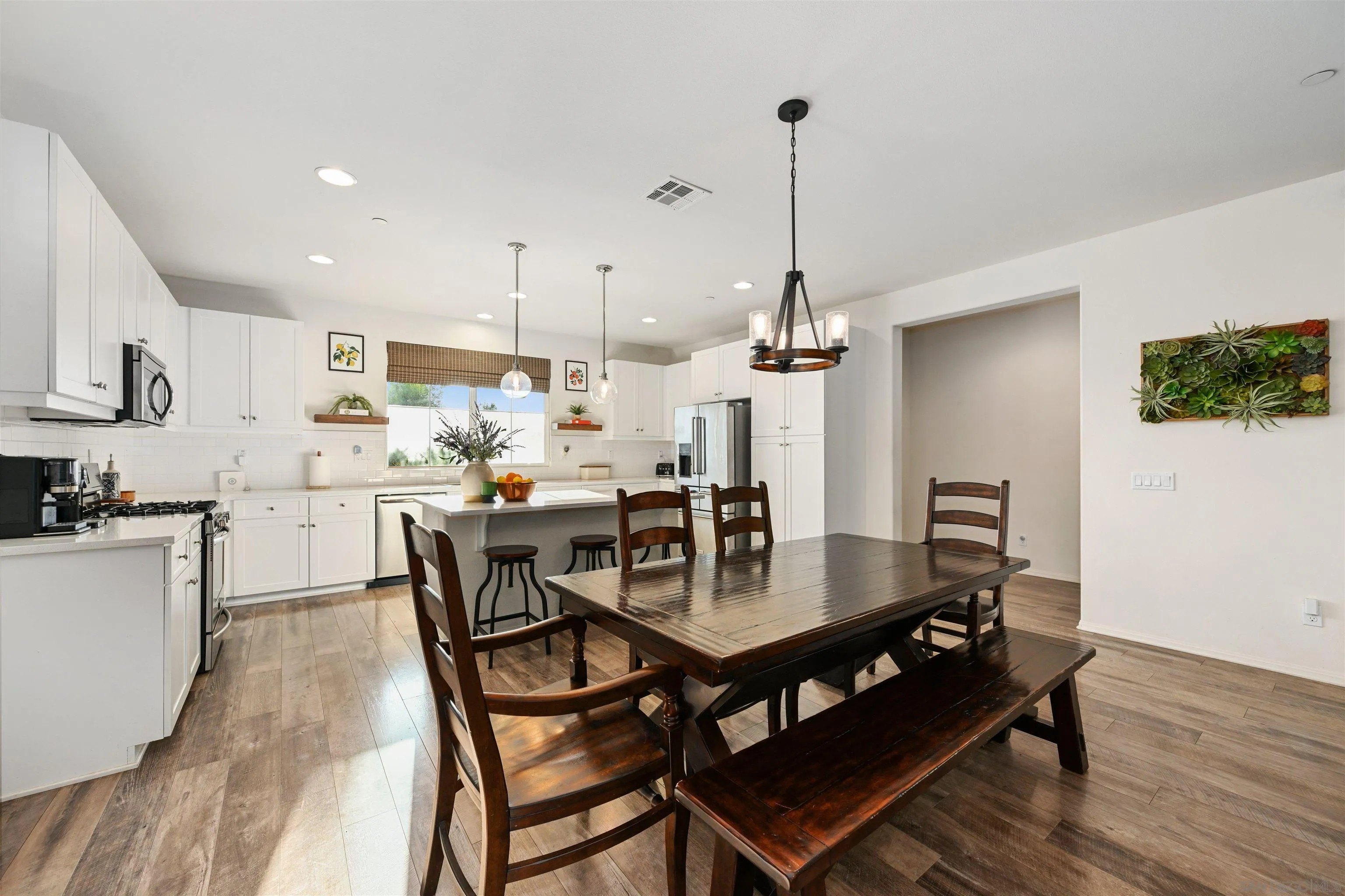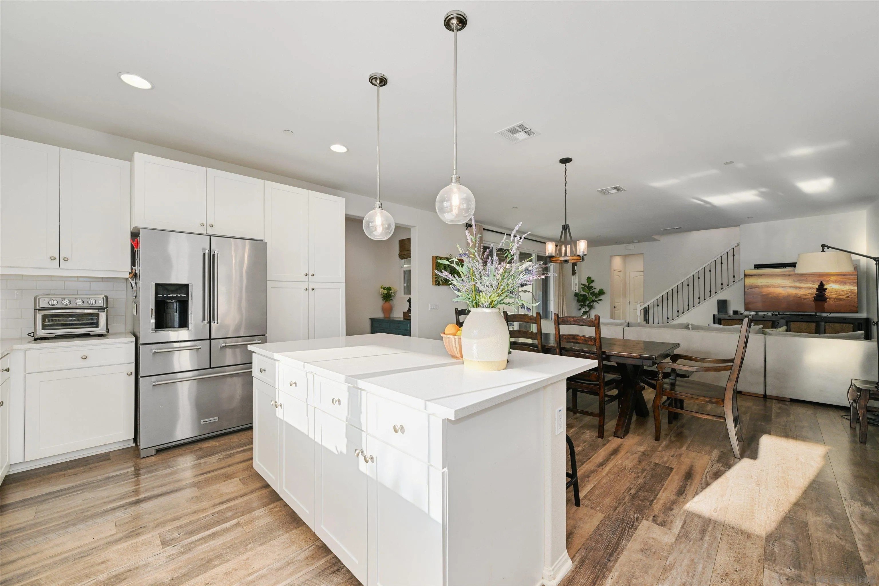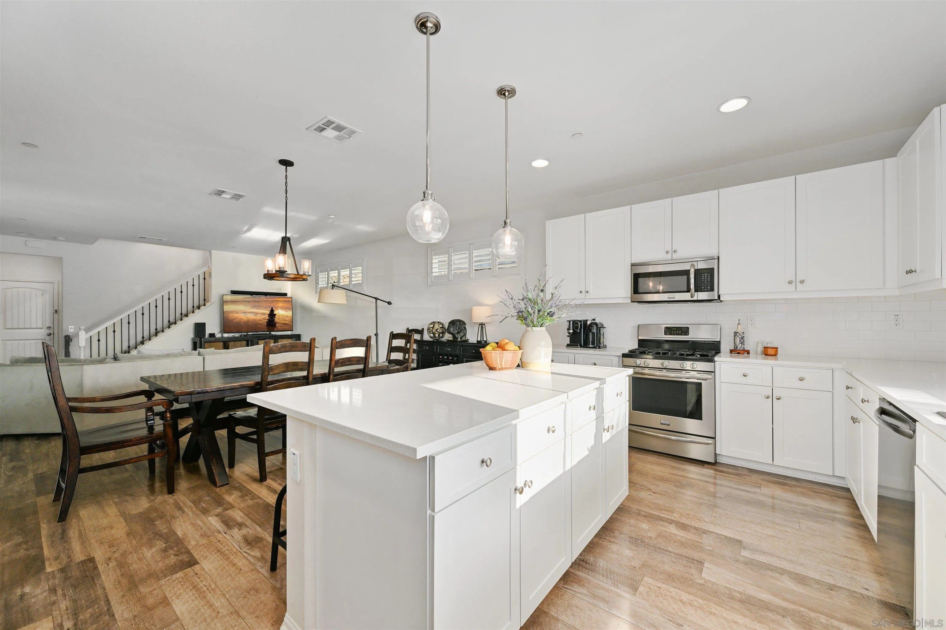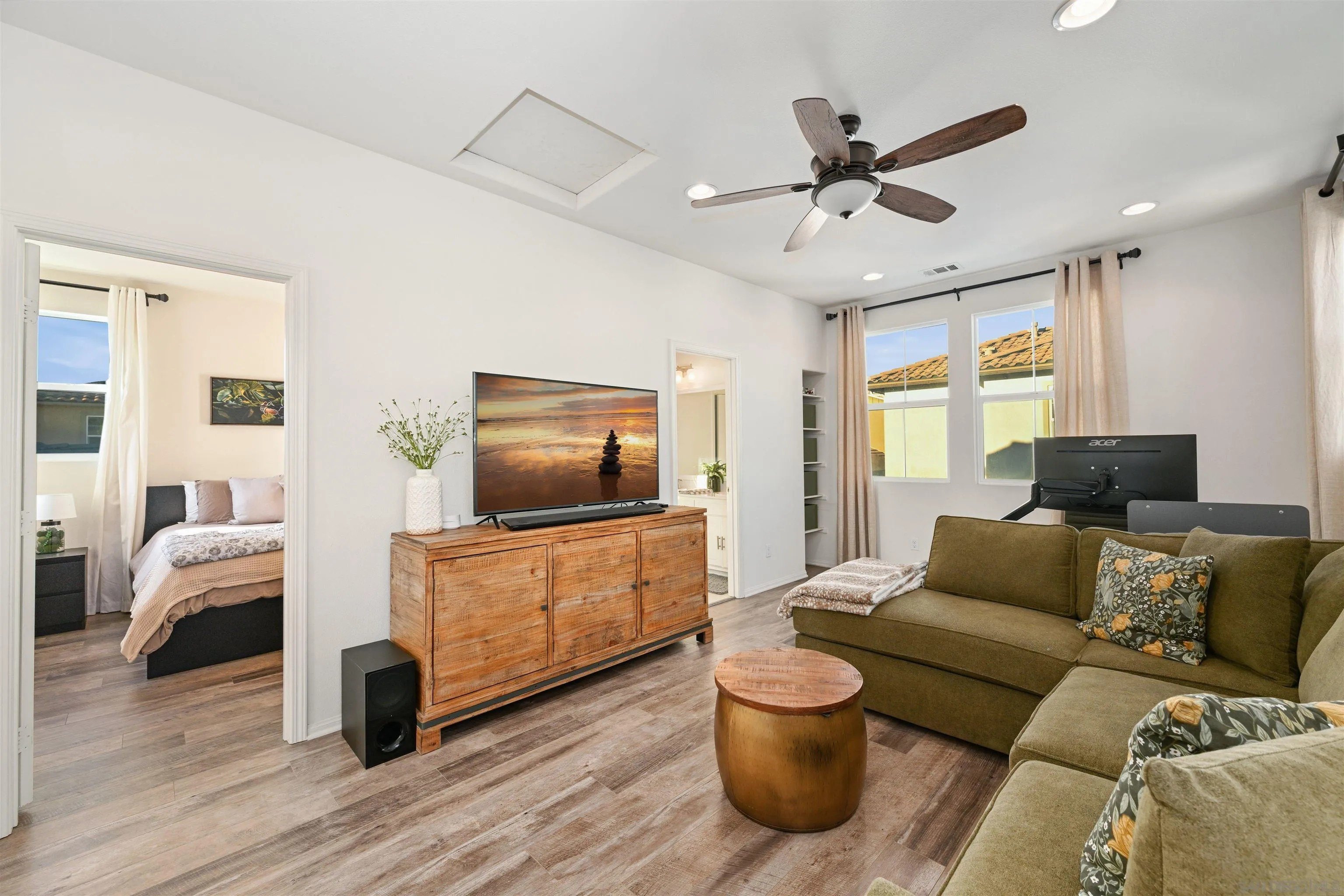 In the heart of Otay Ranch's sought-after Montecito community, this 4 bedroom, 3.5 bath home offers the perfect blend of comfort, style, and convenience. With over 2,500 sq. ft. of thoughtfully designed living space, every detail has been crafted for modern family living. Enter to find newer LVP flooring throughout and an open-concept floor plan that seamlessly connects the living, dining, and kitchen areas. The updated kitchen boasts a stylish backsplash, ample counter space, and a functional layout perfect for gatherings. Both the primary suite and secondary bedrooms feature large walk-in closets, providing abundant storage. Updated bathrooms with contemporary finishes add a fresh, elevated touch. On the third floor, you'll discover a spacious loft - perfect for a media room, playroom, or home office - along with a private fourth bedroom complete with an oversized walk-in closet and full bath. This home also features owned solar, offering energy efficiency and long-term savings. The location is truly special: situated directly across from Meadow Park, you'll enjoy easy access to green space, walking trails, and playgrounds right outside your front door. The private fenced yard provides even more opportunities for indoor/outdoor living. As part of the Village of Montecito, residents enjoy resort-style amenities including a pool, spa, clubhouse, and community events. All this while being close to top-rated schools, shopping, dining, and everything Otay Ranch has to offer. 1747 Santa Christina Ave is move-in ready and waiting for you to call it home.