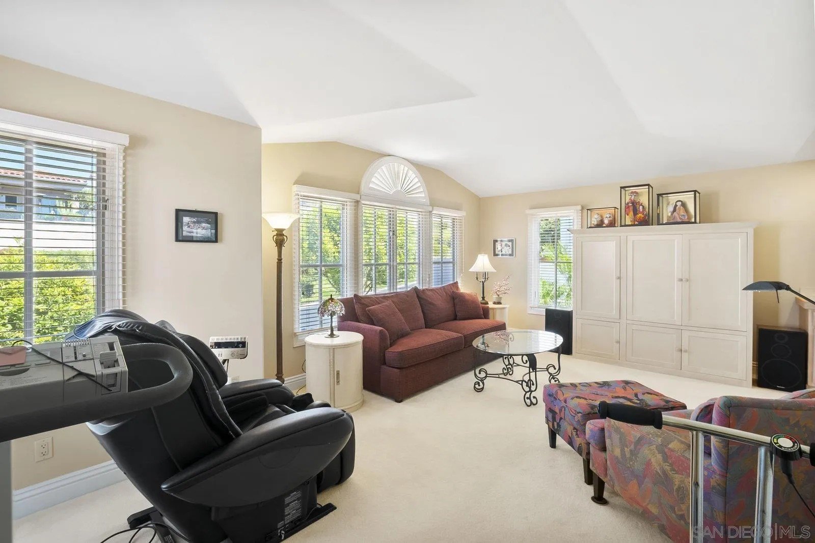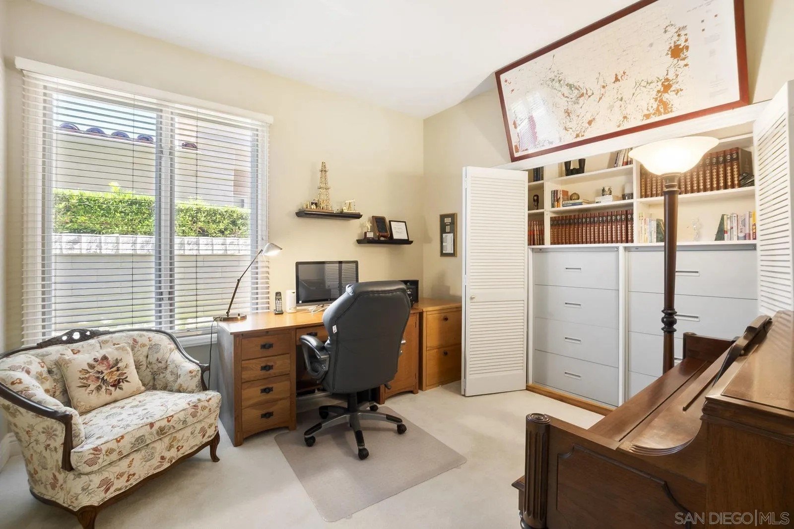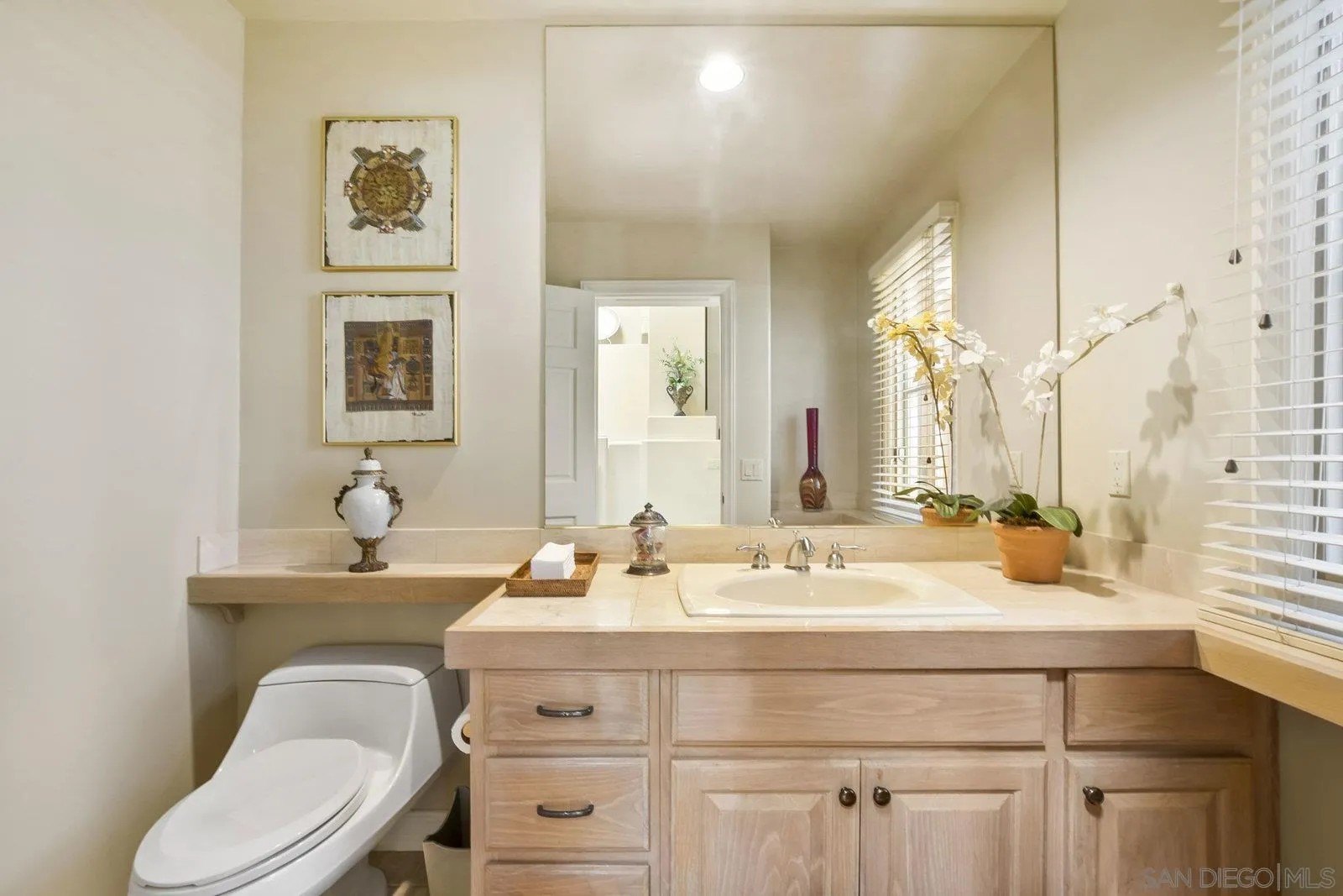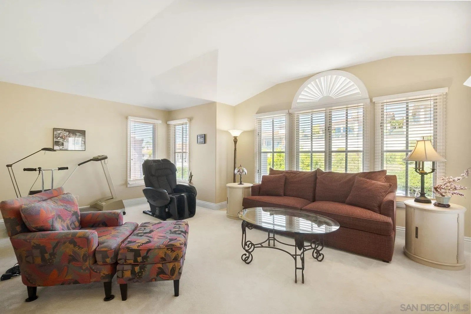 Nestled in the coveted gated enclave of Crystal Bay in La Jolla, this exquisite two-story residence blends timeless elegance with breathtaking coastal views. A grand double-door entry opens to soaring ceilings and abundant natural light, with tile at the entry transitioning to neutral-toned hardwood flooring. The formal living room offers a beautiful gas fireplace, hardwood flooring, and plantation shutters, while the dining room, accented by a chandelier, opens to a private patio with sweeping views from downtown San Diego to the Pacific Ocean along with refreshing coastal breezes. The kitchen showcases granite counters with a matching backsplash, light cabinetry, and a breakfast bar overlooking the family room below. An airy breakfast nook completes the space, and together these areas flow seamlessly into the family room, where tall ceilings, a second fireplace, and sliding doors create an inviting setting for indoor-outdoor living. A first-floor bedroom and full bath, spacious laundry room, and three-car garage add to the appeal. Upstairs, the primary suite offers vaulted ceilings, a cozy fireplace, walk-in closet with organizers, and a private balcony with ocean views. The primary bath features dual sinks, granite counters, a soaking tub and walk-in shower. Outdoor living includes a two-level patio framed by Mediterranean-style pillars and a lime tree, with both shaded and open areas to enjoy coastline views. Residents enjoy exclusive access to a clubhouse, fitness center, pool, and pickleball courts, all within one of La Jolla's most desirable gated communities.