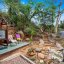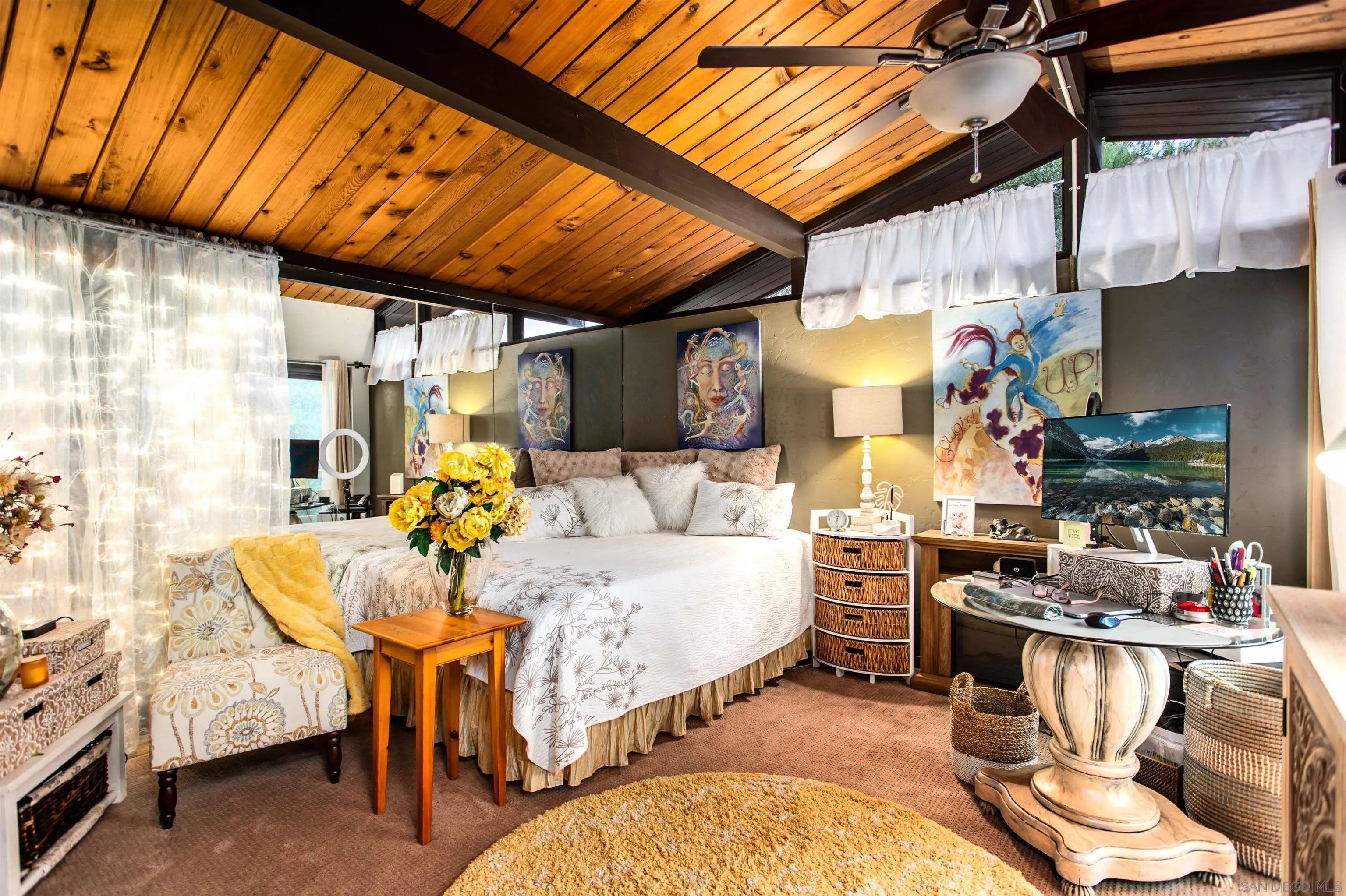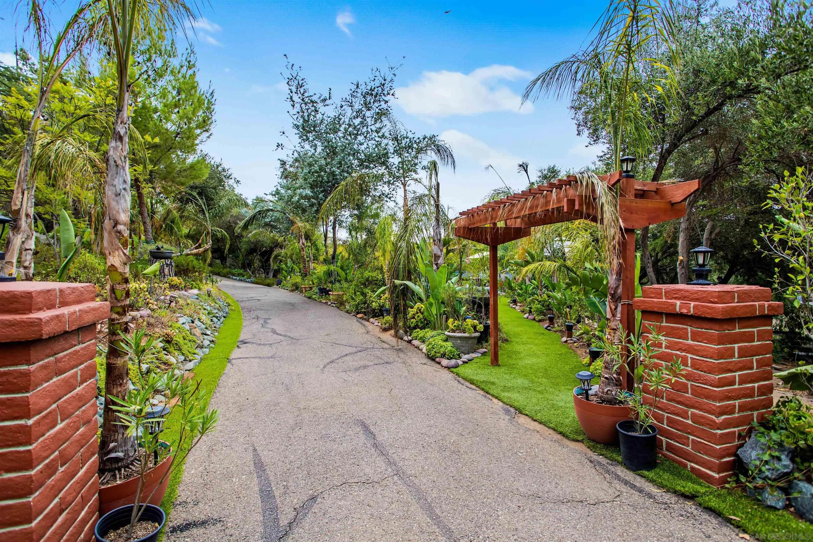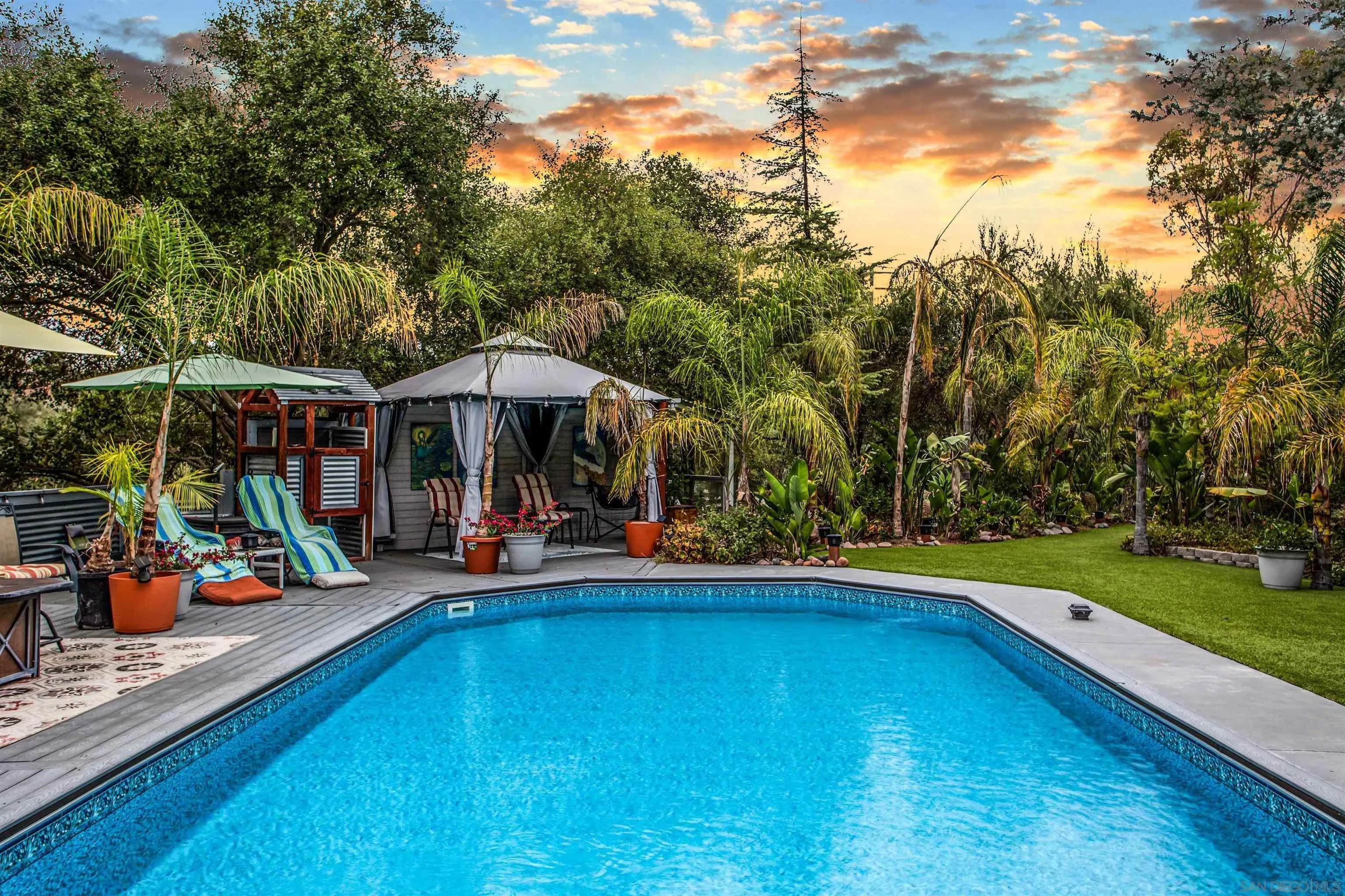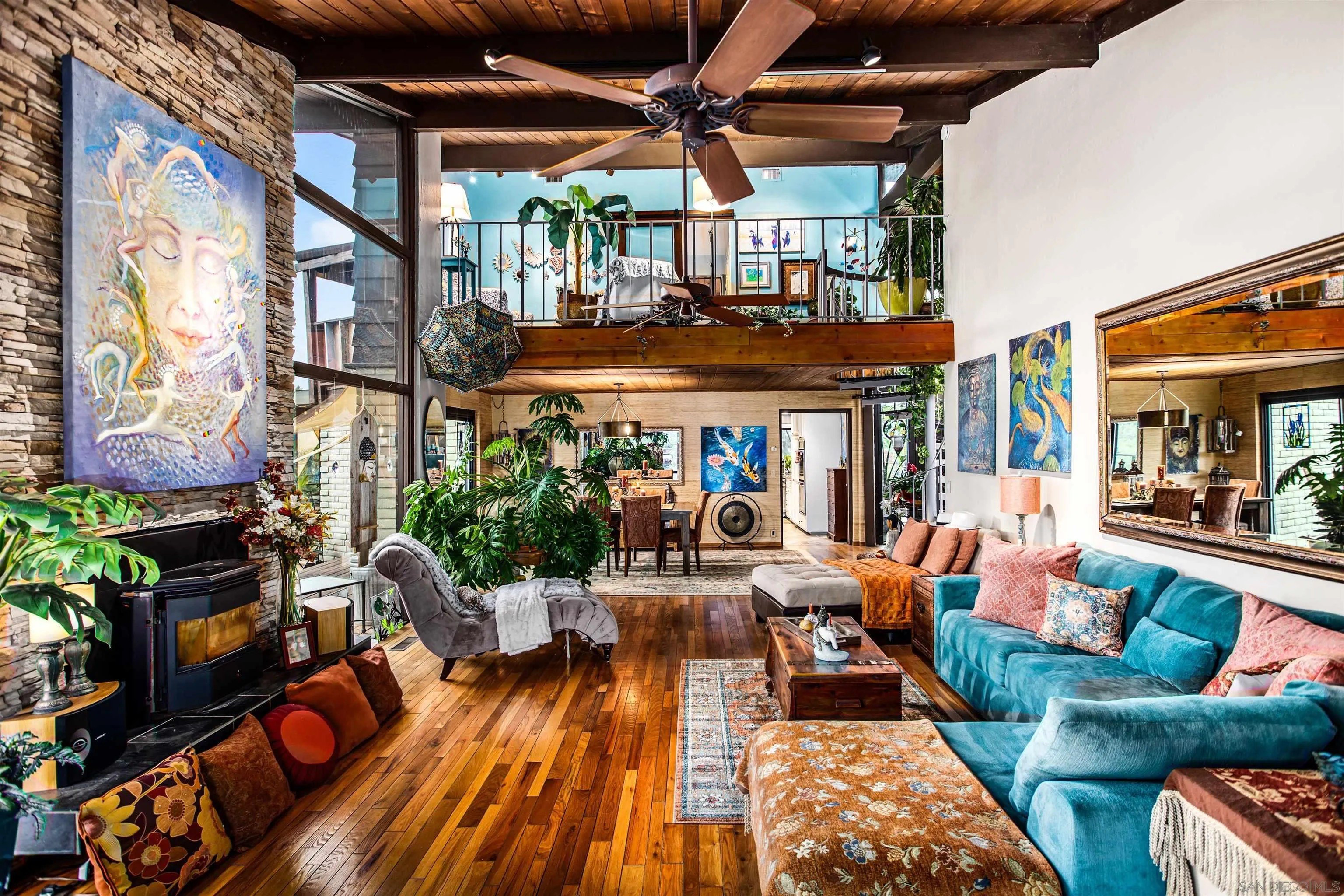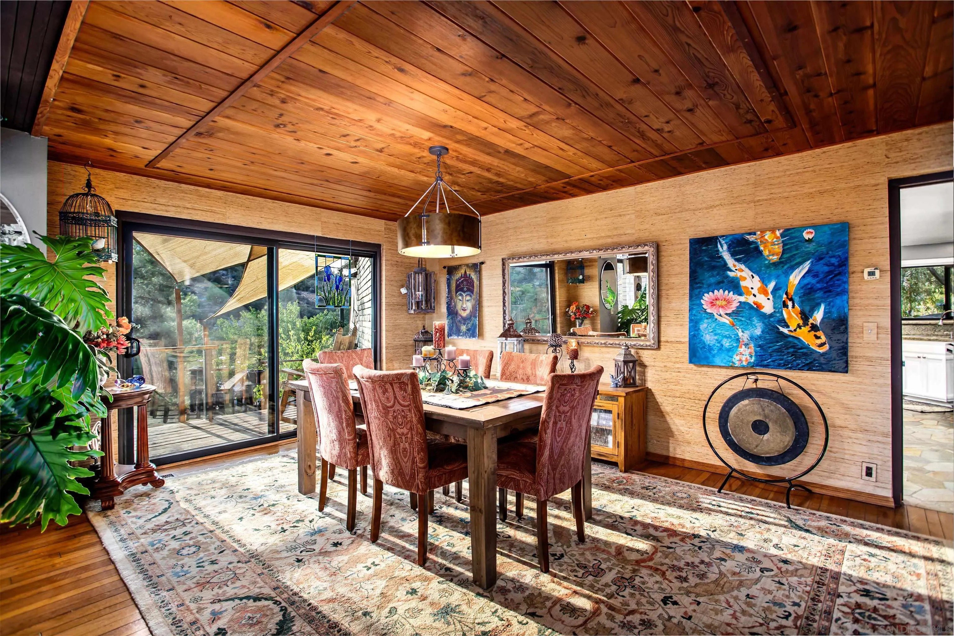 It's as unique as you are-your own private, tropical retreat nestled in the foothills with stunning views of hawks circling the treetops. It's calm, quiet, and tucked away from it all in Palo Verde Ranch-yet you're just minutes from stores and restaurants. This jaw-dropping custom home is a rare, one-of-a-kind find. An artful 25 foot high waterfall cascades down as you approach the front door and flows under a bridge-each time you walk across it, you slow down and breathe a little deeper. The spectacular soaring glass foyer welcomes you in. Floor to ceiling windows flood the sprawling living/dining area with natural light, and the warm honey-toned high vaulted ceilings give a golden glow. A dramatic 20 foot high stacked stone fireplace anchors the space. The updated open-concept kitchen and den-with its stacked stone wall, fireplace, and granite hearth exude comfort and ease. Real hardwood floors, custom details, and thoughtful design give this home its uncommon blend of elegance, warmth, and character. All three bedrooms boast the rich, honey-colored vaulted wood ceilings. The serene master has a spacious walk in closet and a high deck with views. There are two and a half bathrooms, plus a bonus space-ideal for a home office, guest area, or creative studio. All rooms except one connect to the outdoors through large sliders, and each of four decks offers a different view of the trees, boulders, and mountains.