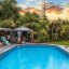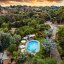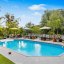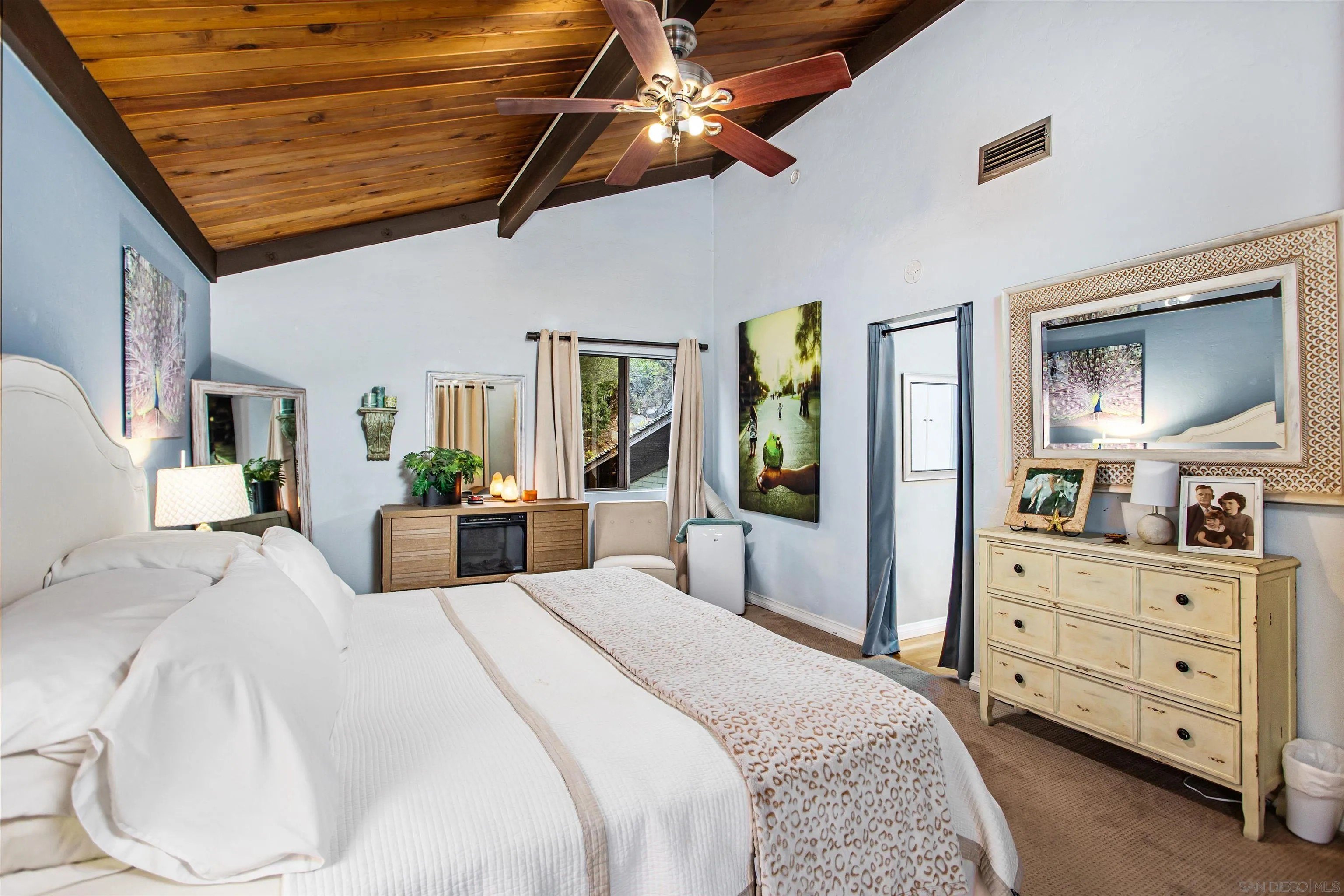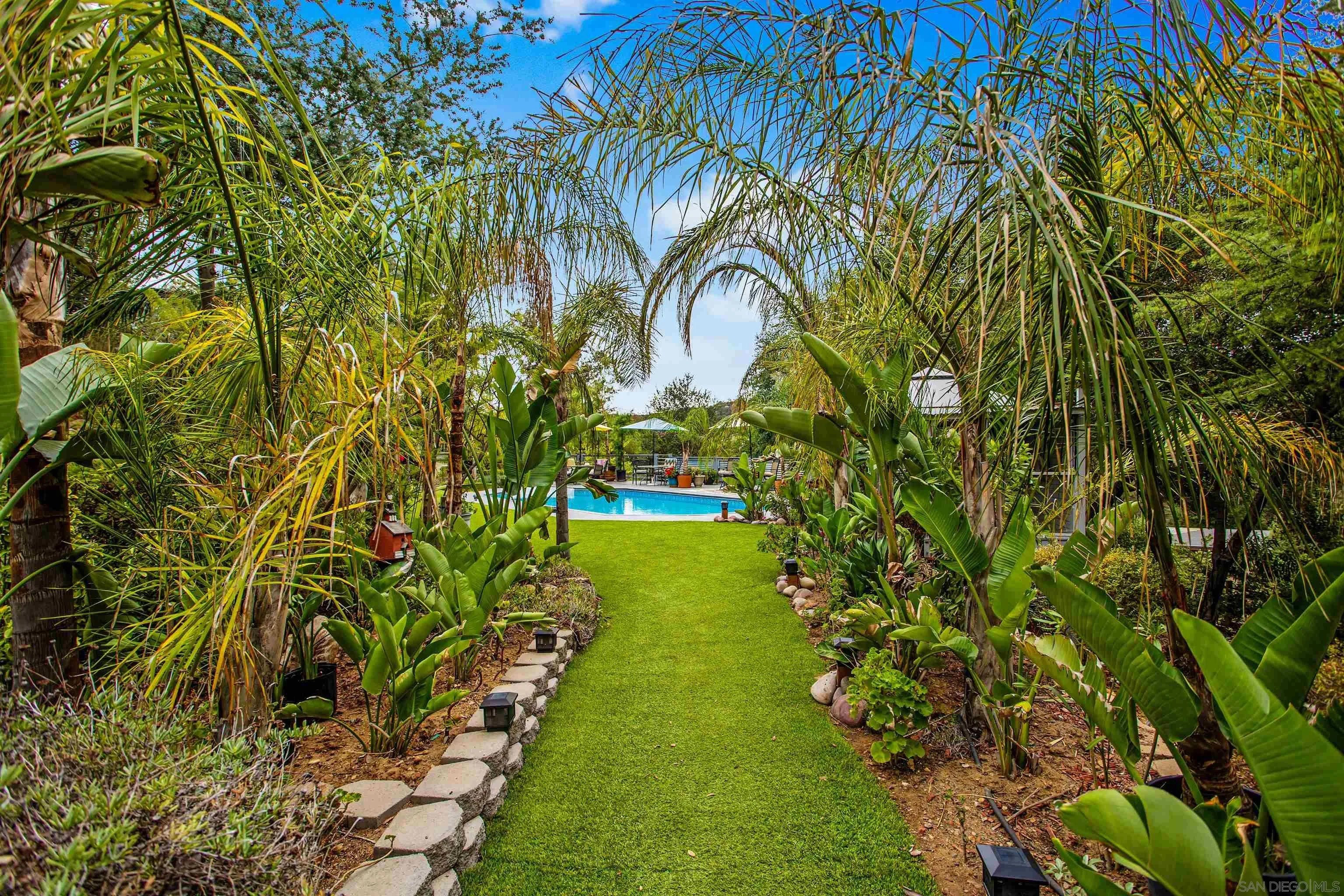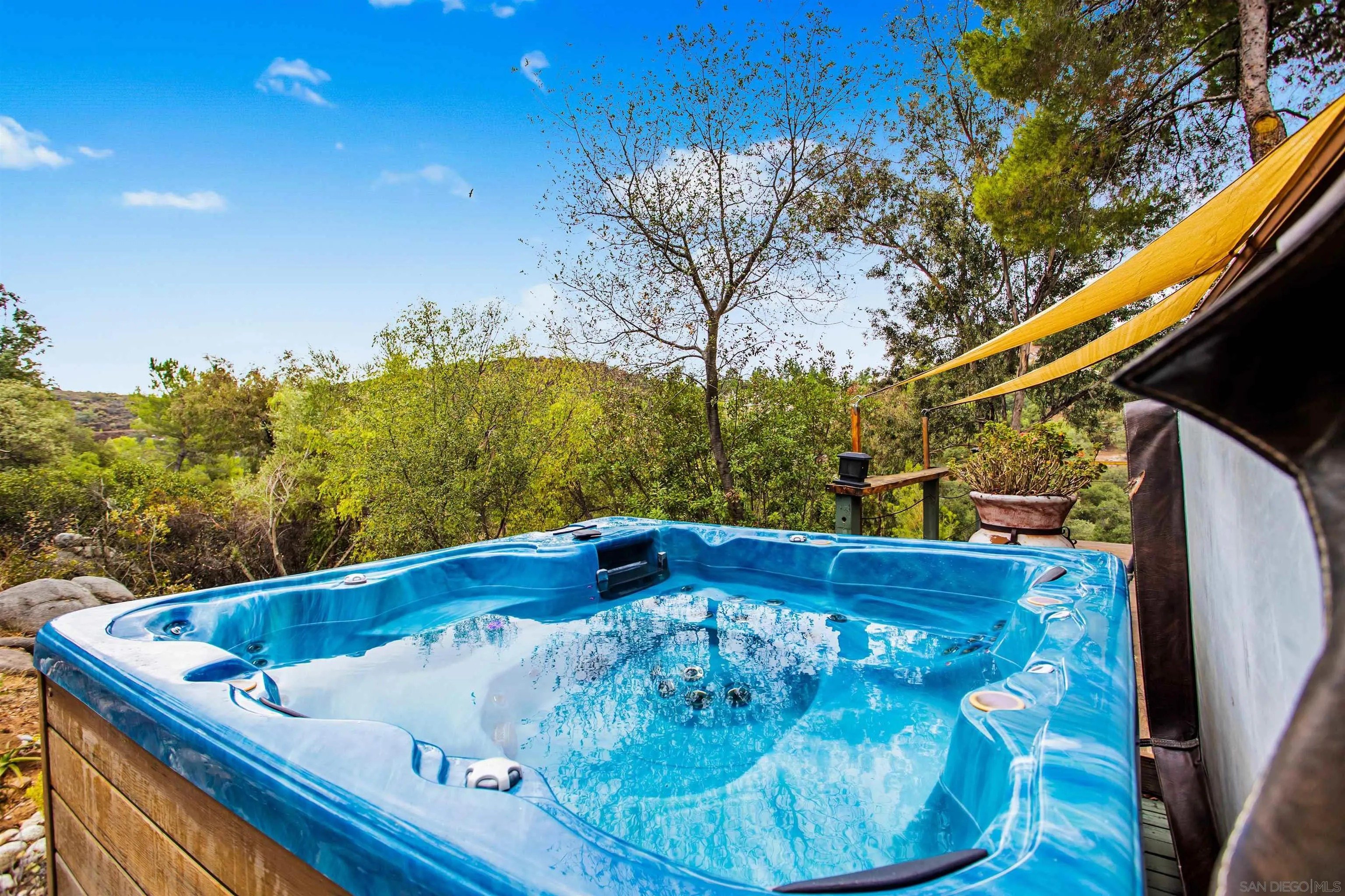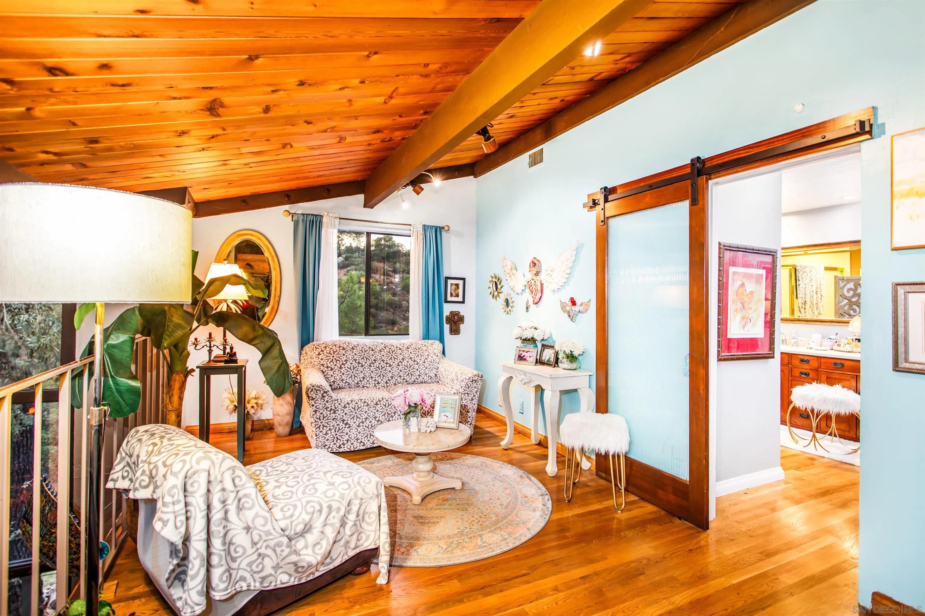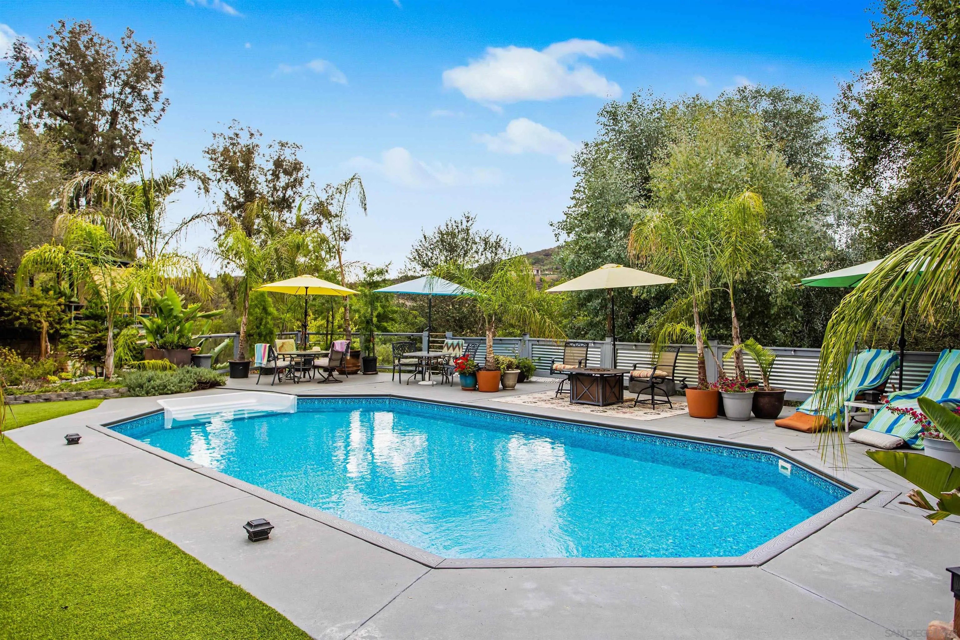 It's as unique as you are-your own private, tropical retreat nestled in the foothills with stunning views of hawks circling the treetops. It's calm, quiet, and tucked away from it all in Palo Verde Ranch-yet you're just minutes from stores and restaurants. This jaw-dropping custom home is a rare, one-of-a-kind find. An artful 25 foot high waterfall cascades down as you approach the front door and flows under a bridge-each time you walk across it, you slow down and breathe a little deeper. The spectacular soaring glass foyer welcomes you in. Floor to ceiling windows flood the sprawling living/dining area with natural light, and the warm honey-toned high vaulted ceilings give a golden glow. A dramatic 20 foot high stacked stone fireplace anchors the space. The updated open-concept kitchen and den-with its stacked stone wall, fireplace, and granite hearth exude comfort and ease. Real hardwood floors, custom details, and thoughtful design give this home its uncommon blend of elegance, warmth, and character. All three bedrooms boast the rich, honey-colored vaulted wood ceilings. The serene master has a spacious walk in closet and a high deck with views. There are two and a half bathrooms, plus a bonus space-ideal for a home office, guest area, or creative studio. All rooms except one connect to the outdoors through large sliders, and each of four decks offers a different view of the trees, boulders, and mountains.