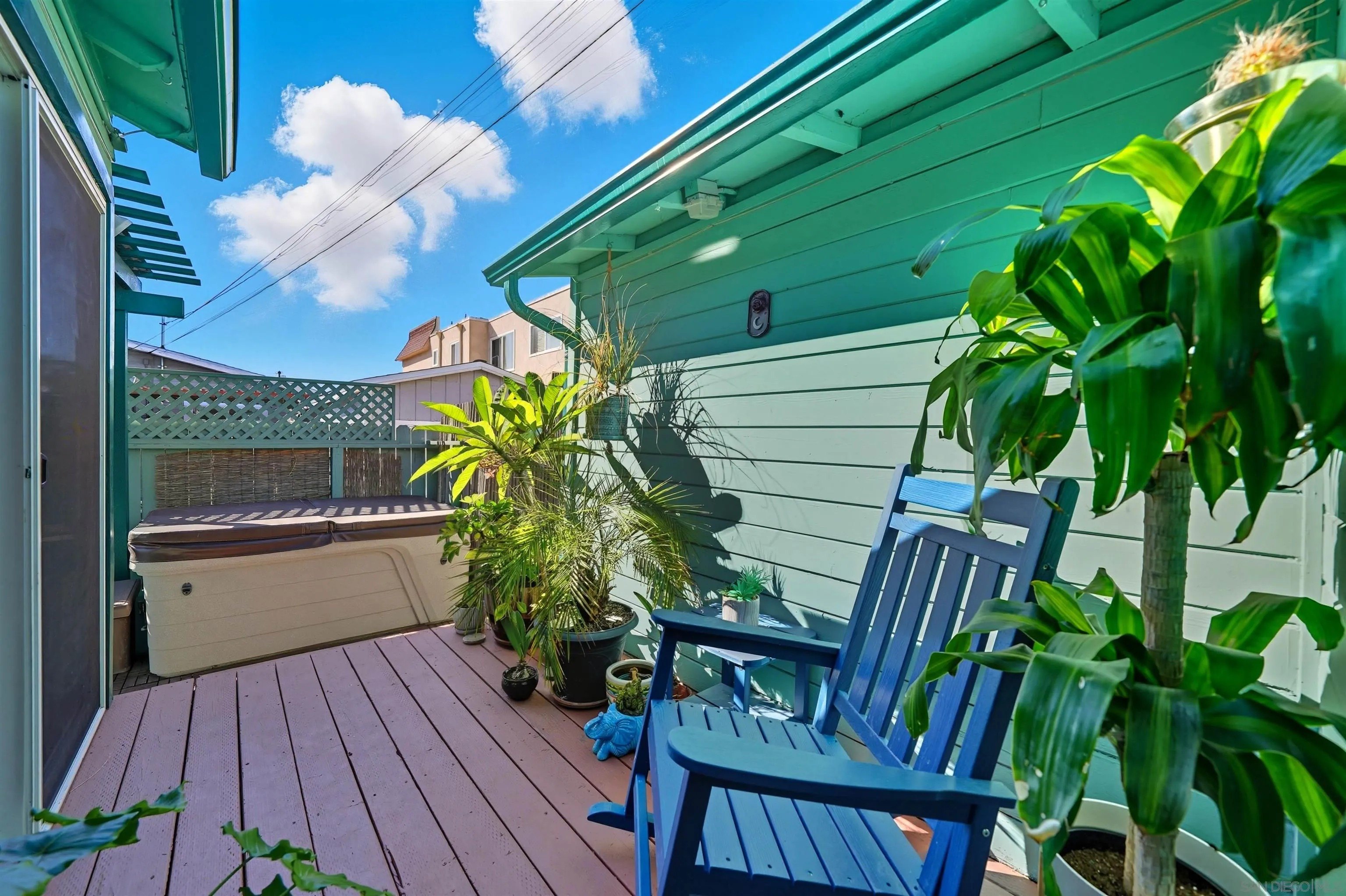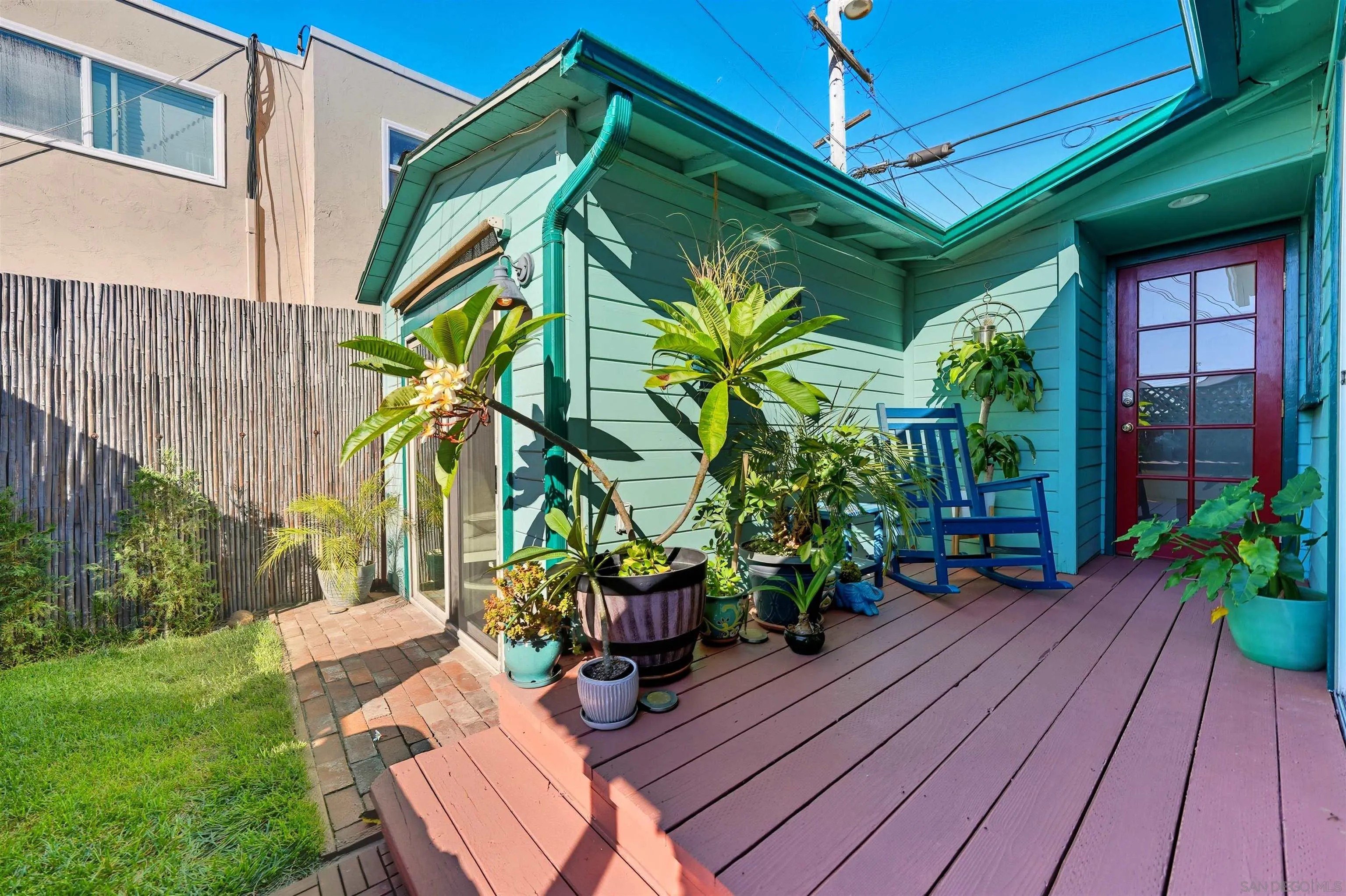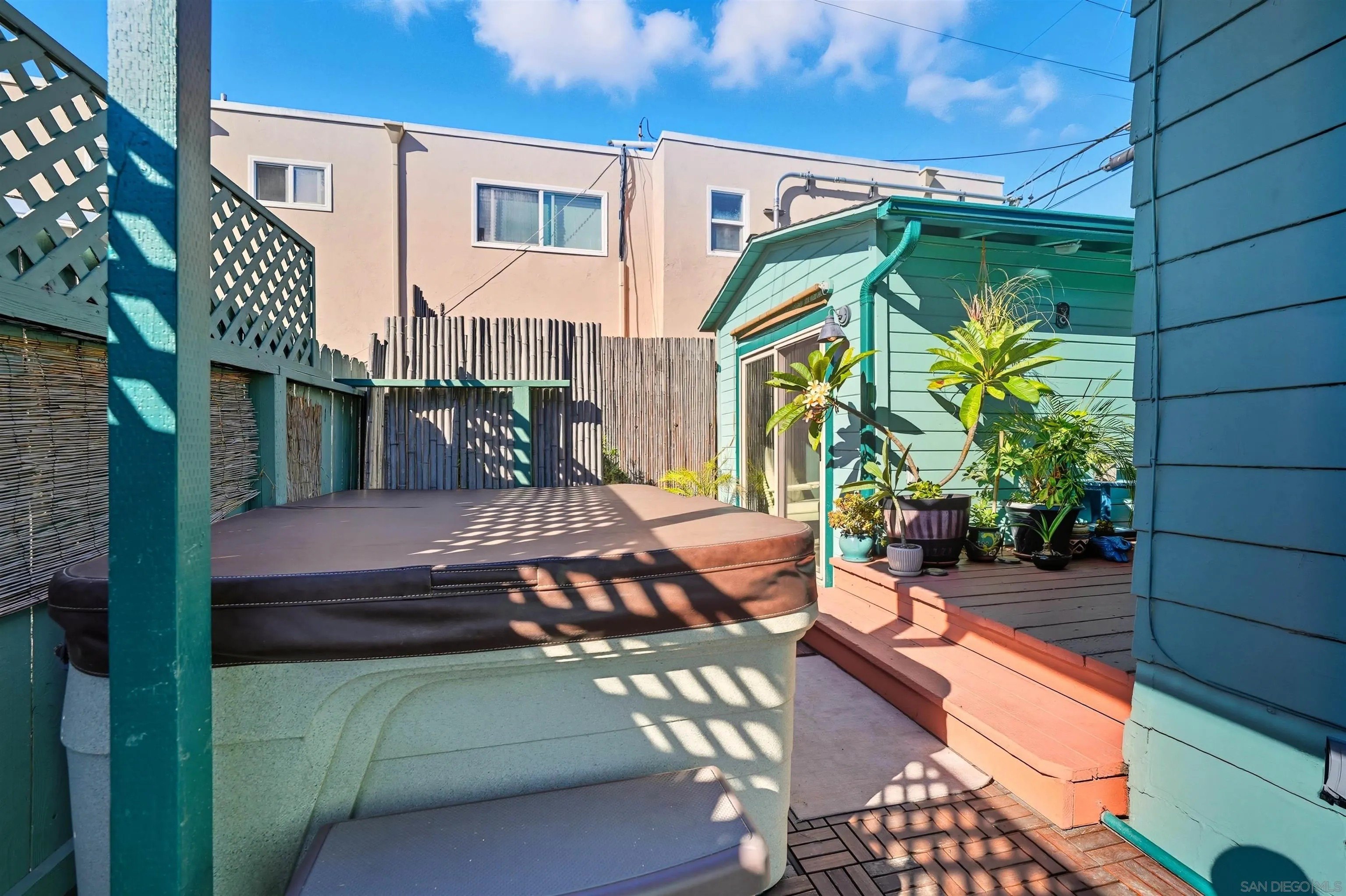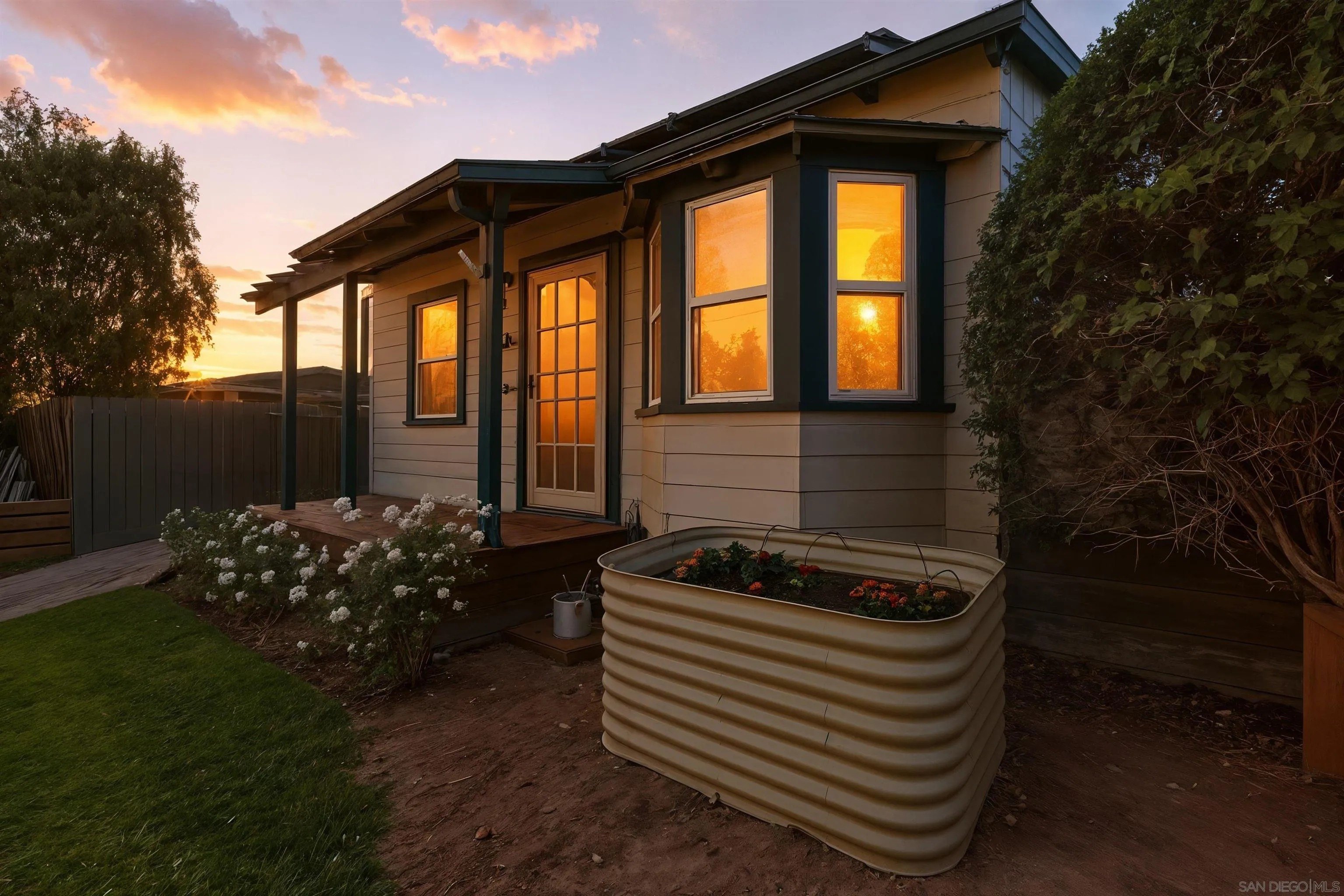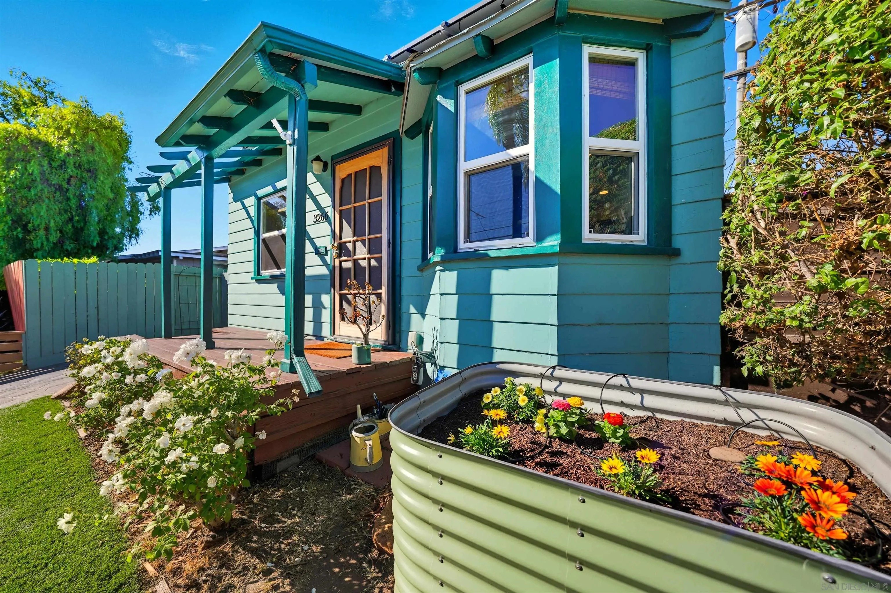 Charming cottage with modern touches one street from Adams! This fully-fenced gem bursting with charm and character has been beautifully maintained and offers cozy comfort, thoughtful updates, and incredible curb appeal. Step onto the inviting front porch, surrounded by vibrant flowers and a sunny horizontal, wood fence that adds a playful touch to the home's charming exterior. Inside, you're welcomed by a bright and airy living room featuring a warm vinyl plank flooring and neutral wall tones to create a relaxed and welcoming atmosphere throughout. The living space flows seamlessly into a bonus room-perfect as a home office, creative studio, or guest space. Large windows bathe the interior in natural light, while thoughtful updates like recessed lighting and wood blinds add functionality and style. Tucked away from the main living areas and other bedrooms, this oversized primary suite offers the ultimate in privacy and tranquility. Step into the backyard for a yard with storybook charm and relaxing spa. Located in a sought-after neighborhood, just minutes from the beach, shops, dining, and freeway access, this home offers the perfect blend of vintage charm and modern convenience.