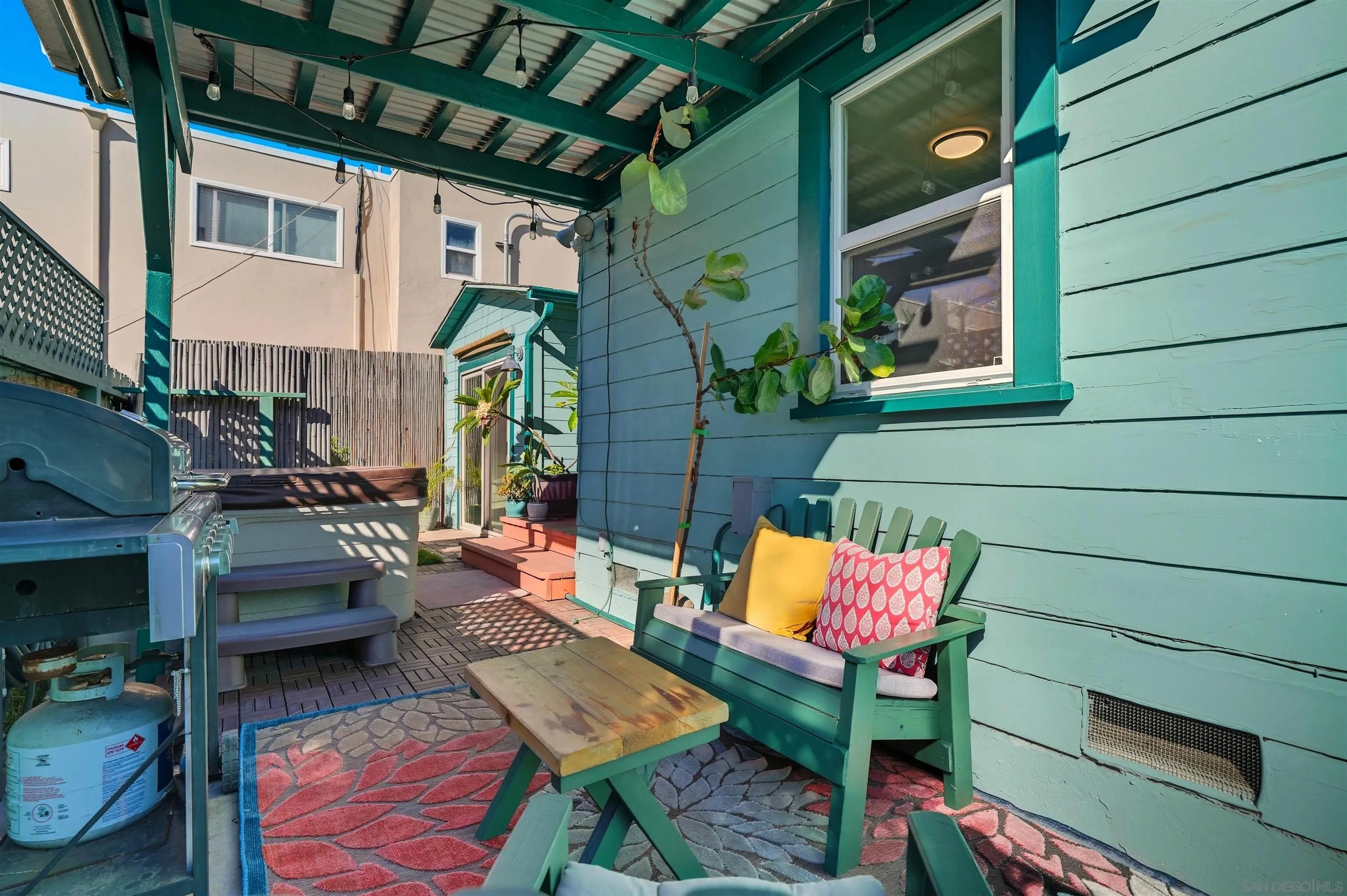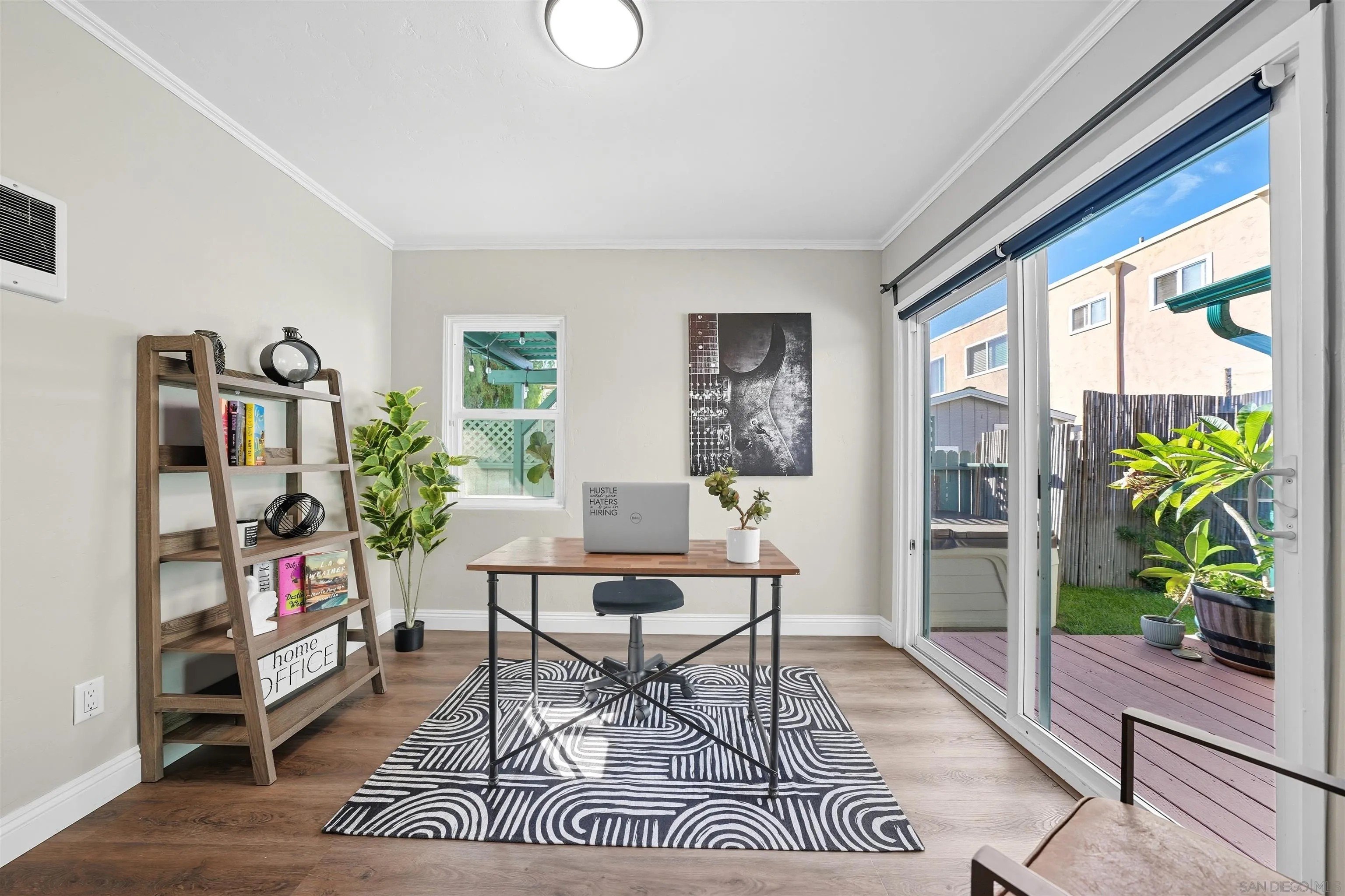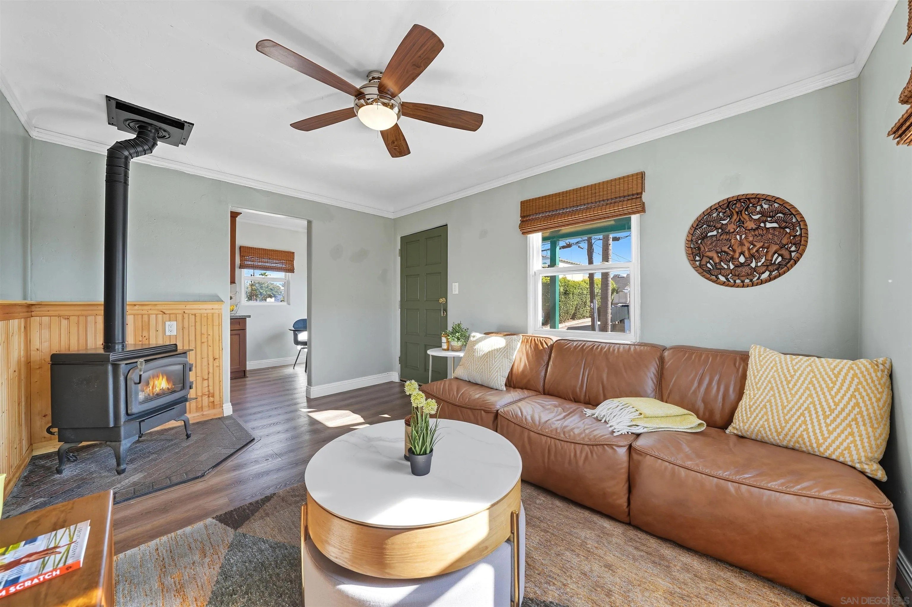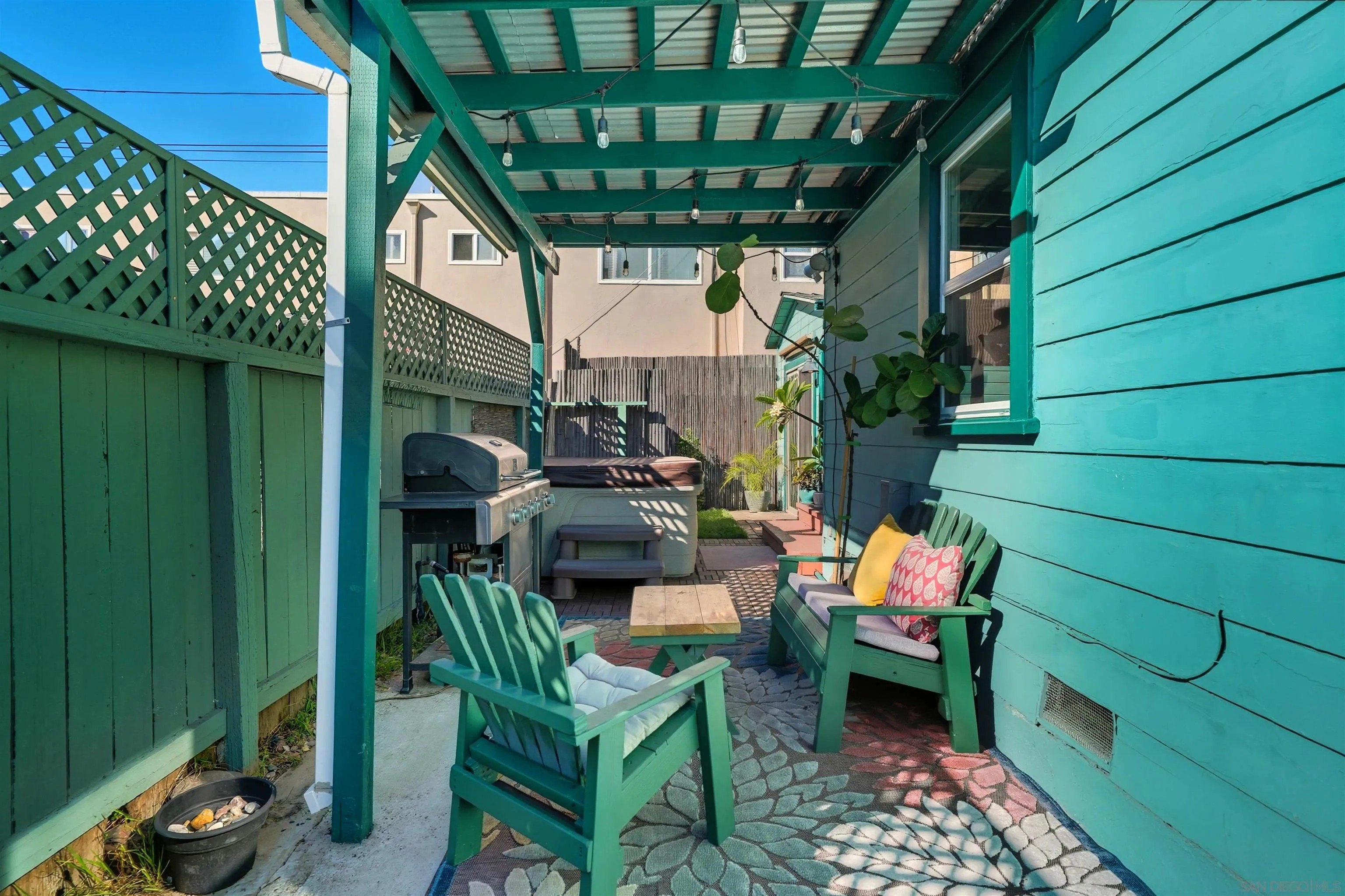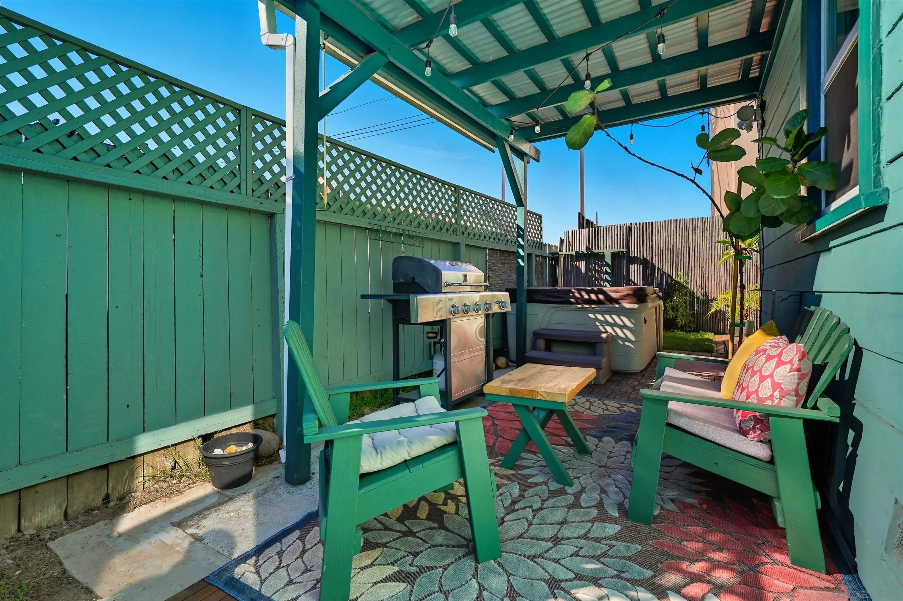 Charming cottage with modern touches one street from Adams! This fully-fenced gem bursting with charm and character has been beautifully maintained and offers cozy comfort, thoughtful updates, and incredible curb appeal. Step onto the inviting front porch, surrounded by vibrant flowers and a sunny horizontal, wood fence that adds a playful touch to the home's charming exterior. Inside, you're welcomed by a bright and airy living room featuring a warm vinyl plank flooring and neutral wall tones to create a relaxed and welcoming atmosphere throughout. The living space flows seamlessly into a bonus room-perfect as a home office, creative studio, or guest space. Large windows bathe the interior in natural light, while thoughtful updates like recessed lighting and wood blinds add functionality and style. Tucked away from the main living areas and other bedrooms, this oversized primary suite offers the ultimate in privacy and tranquility. Step into the backyard for a yard with storybook charm and relaxing spa. Located in a sought-after neighborhood, just minutes from the beach, shops, dining, and freeway access, this home offers the perfect blend of vintage charm and modern convenience.