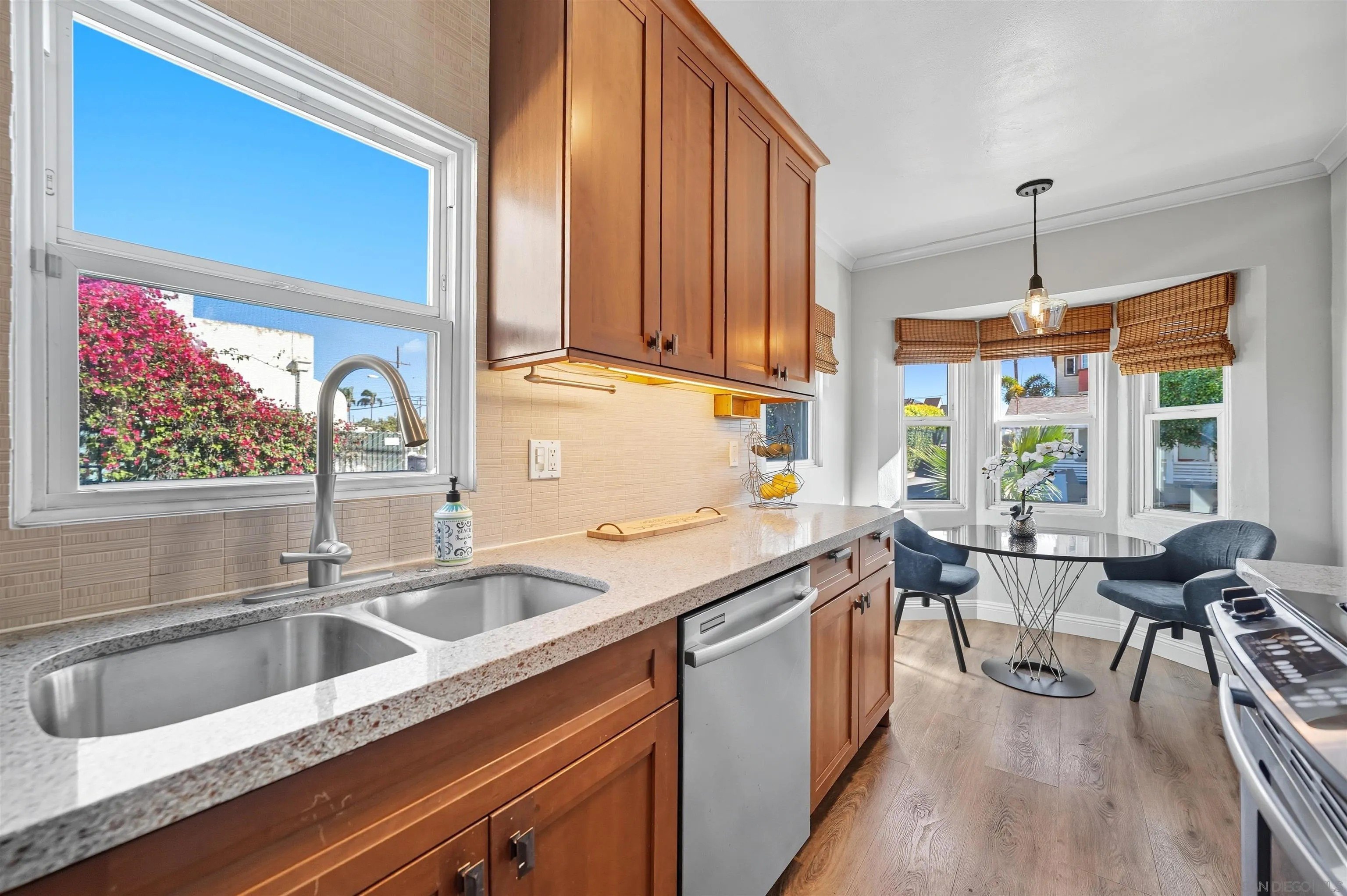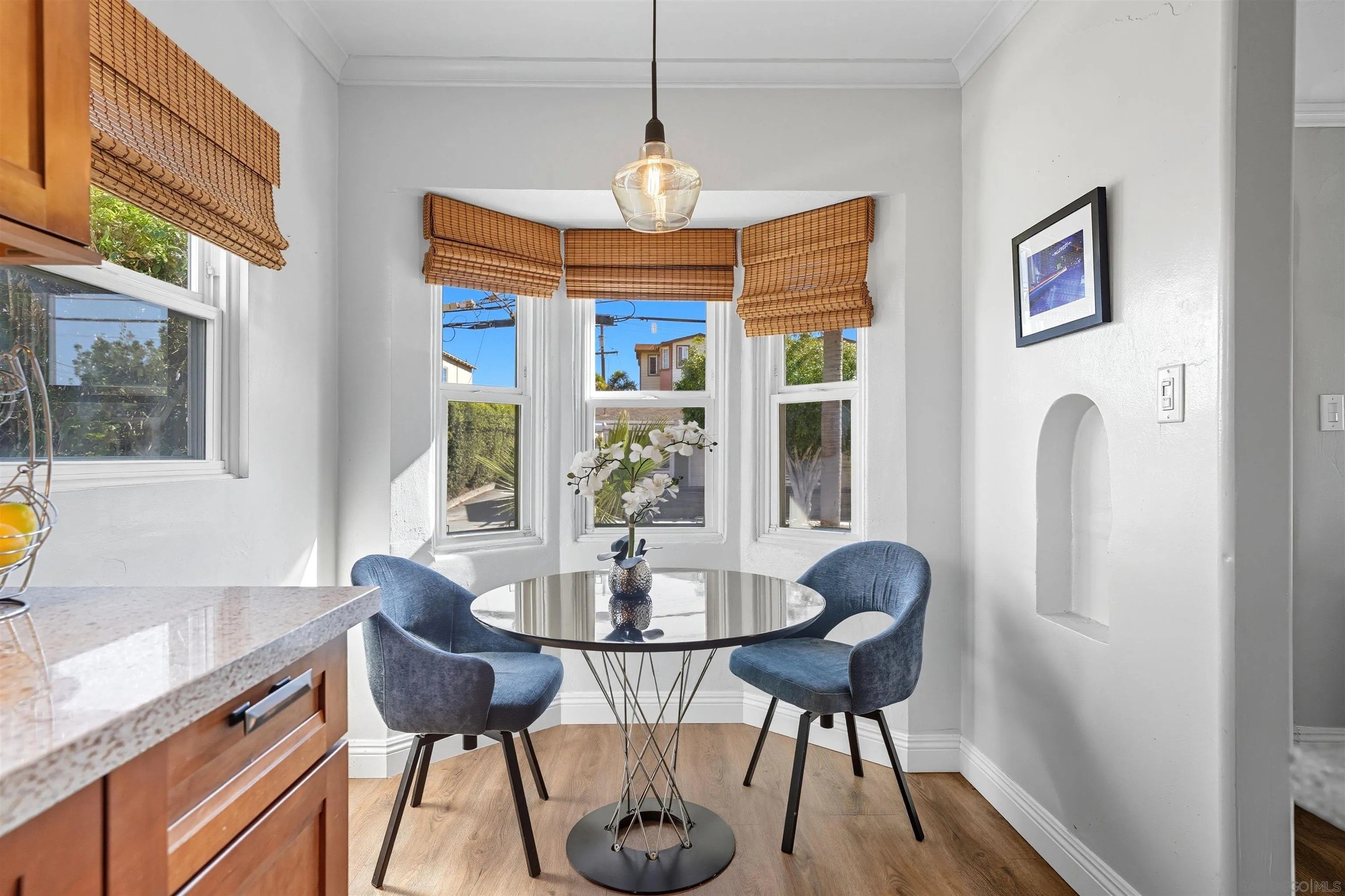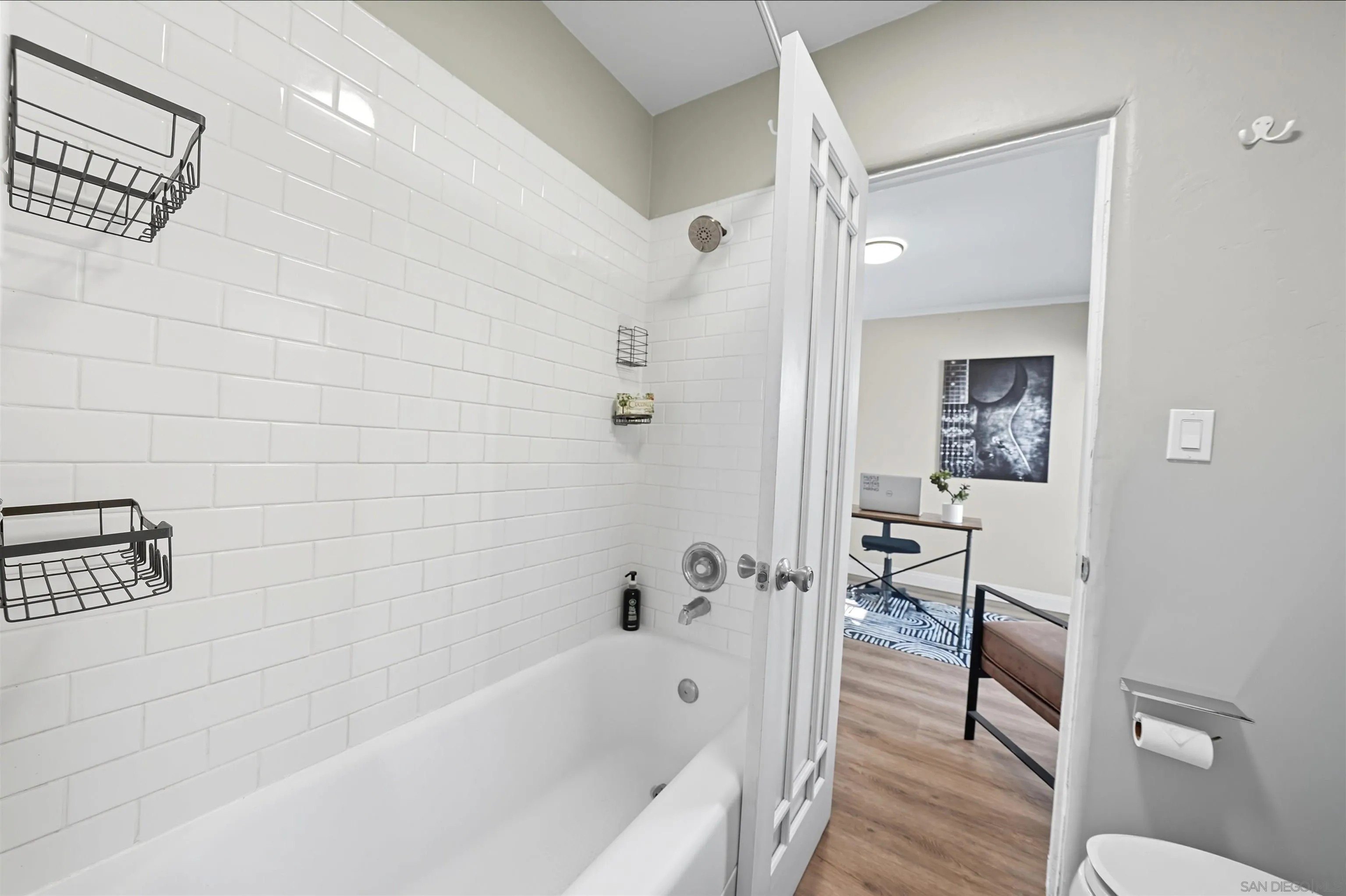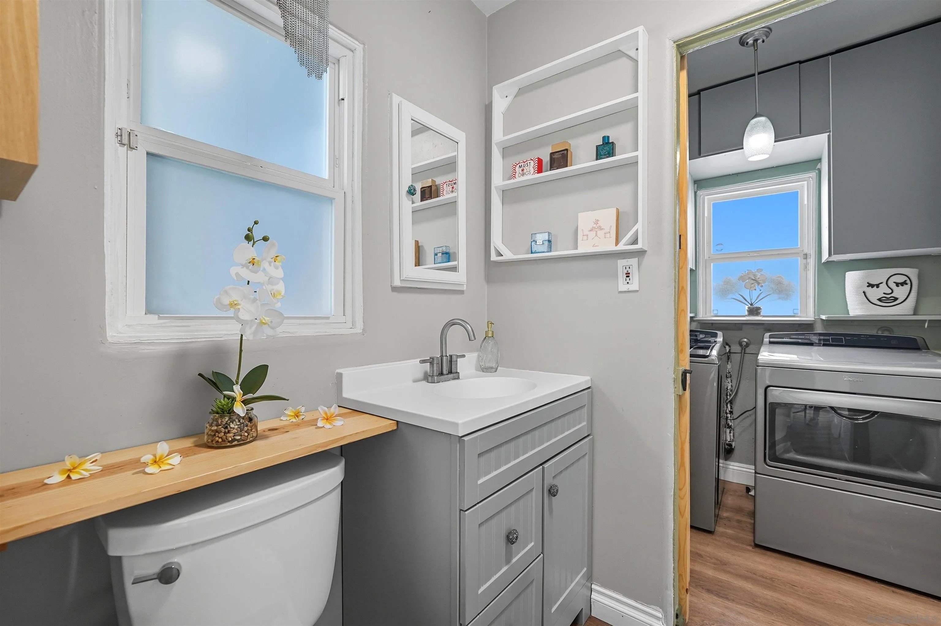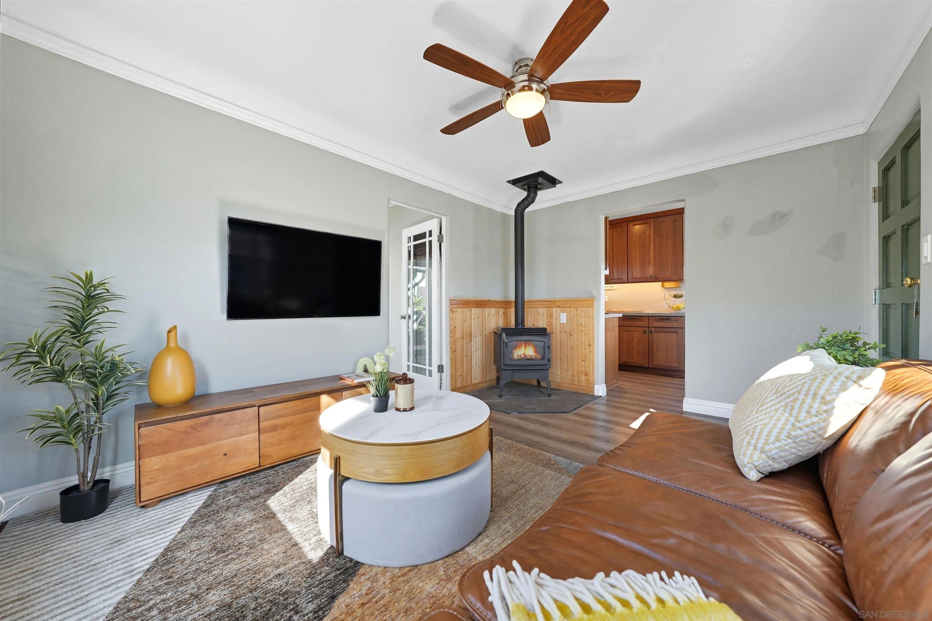 Charming cottage with modern touches one street from Adams! This fully-fenced gem bursting with charm and character has been beautifully maintained and offers cozy comfort, thoughtful updates, and incredible curb appeal. Step onto the inviting front porch, surrounded by vibrant flowers and a sunny horizontal, wood fence that adds a playful touch to the home's charming exterior. Inside, you're welcomed by a bright and airy living room featuring a warm vinyl plank flooring and neutral wall tones to create a relaxed and welcoming atmosphere throughout. The living space flows seamlessly into a bonus room-perfect as a home office, creative studio, or guest space. Large windows bathe the interior in natural light, while thoughtful updates like recessed lighting and wood blinds add functionality and style. Tucked away from the main living areas and other bedrooms, this oversized primary suite offers the ultimate in privacy and tranquility. Step into the backyard for a yard with storybook charm and relaxing spa. Located in a sought-after neighborhood, just minutes from the beach, shops, dining, and freeway access, this home offers the perfect blend of vintage charm and modern convenience.