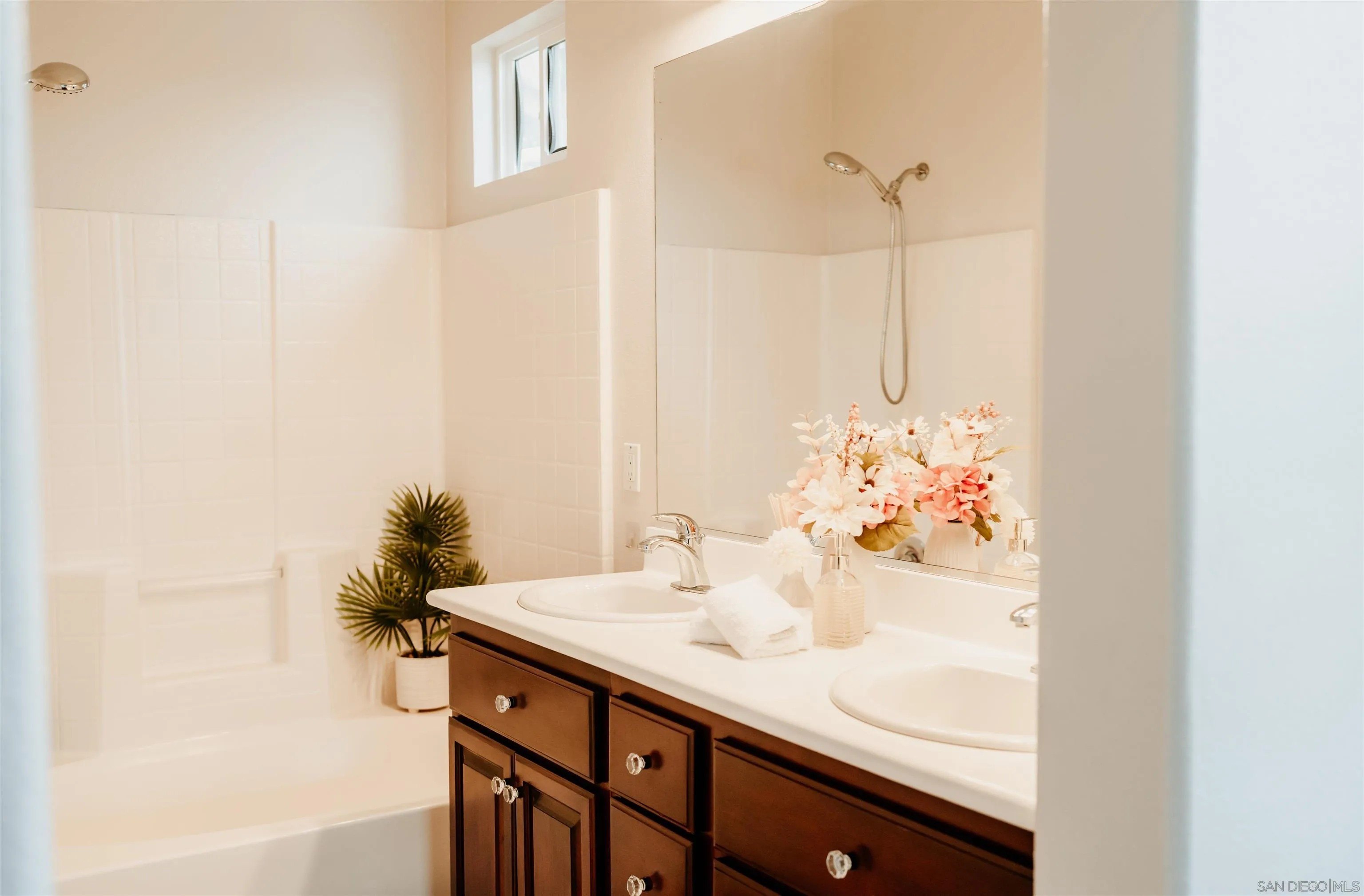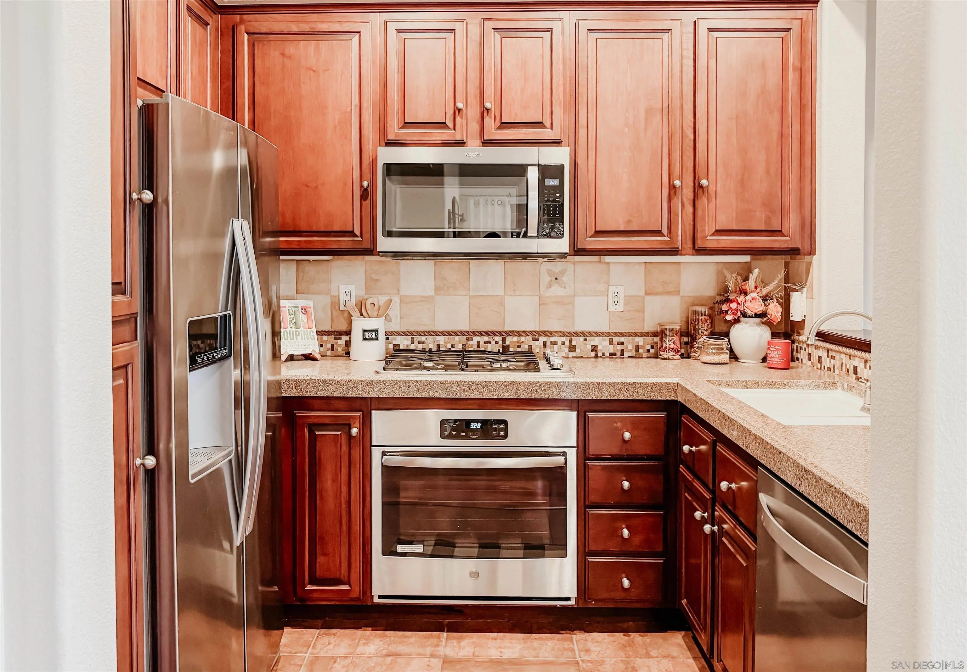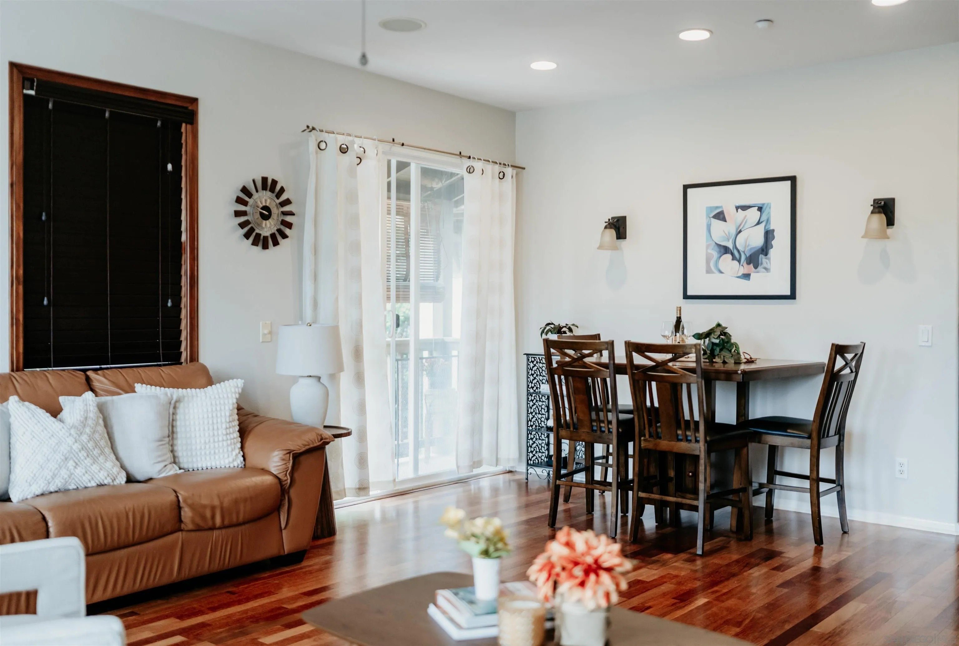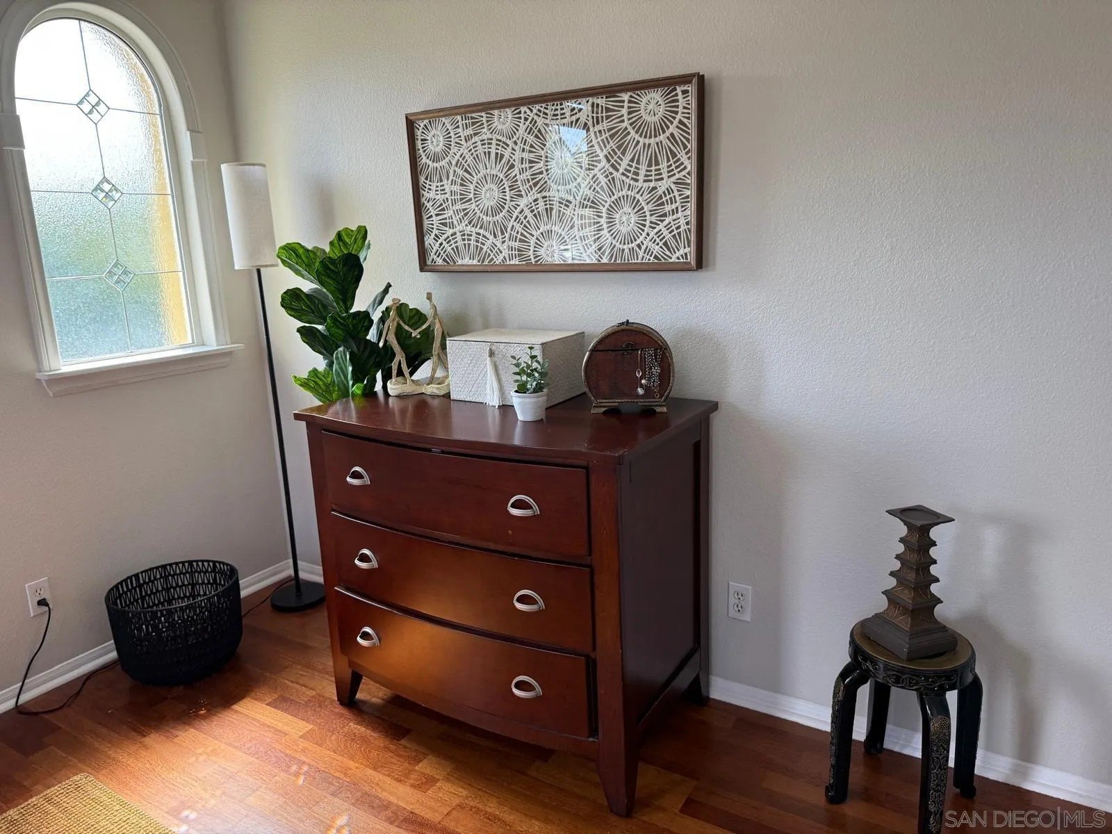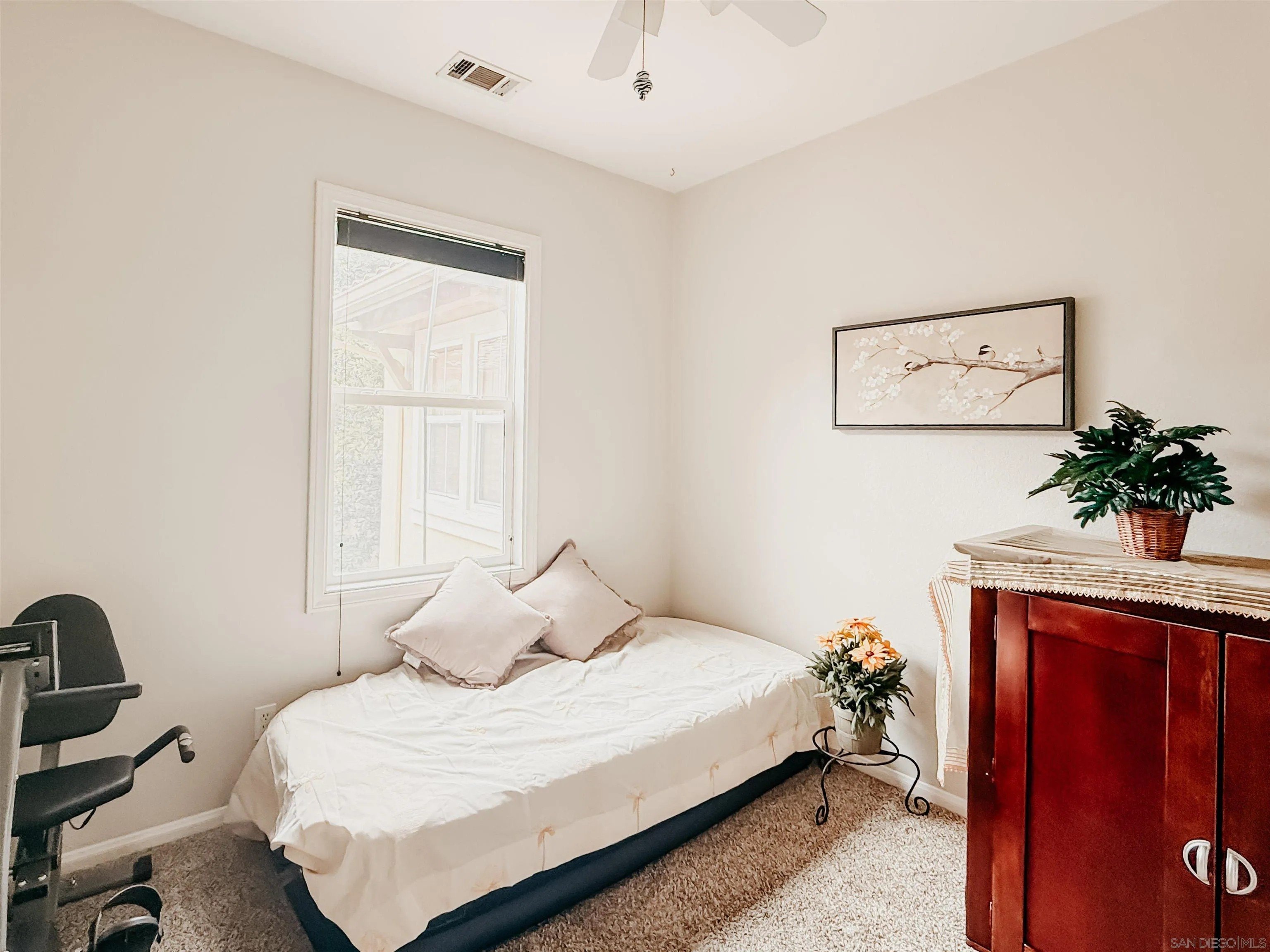 This beautifully maintained townhome features an open floor plan with high-end touches throughout, including upgraded kitchen counters, refinished hardwood floors, ceiling fans, designer paint, a private balcony, and a cozy fireplace in the living/dining area. All living spaces are located on the second floor with direct access from the attached 1-car garage.The master suite includes a spacious walk-in closet . The home comes with a dedicated laundry room for convenience. With fully paid solar to offset electricity costs and zoning for the top-rated Poway Unified School District, this home offers both comfort and value. Ideally situated in one of the best locations within the Monaco complex, residents enjoy community amenities such as a sparkling pool and spa, along with close proximity to shopping, dining, parks, schools, and easy freeway access. Torrey Meadows Park and the highly ranked West View High School are just few blocks away.