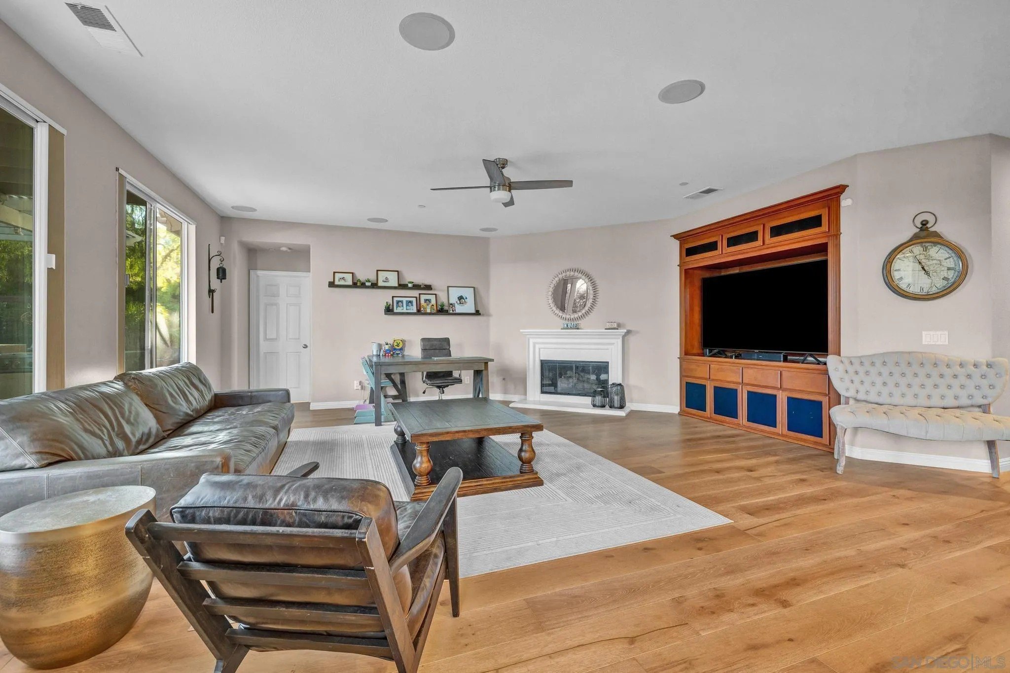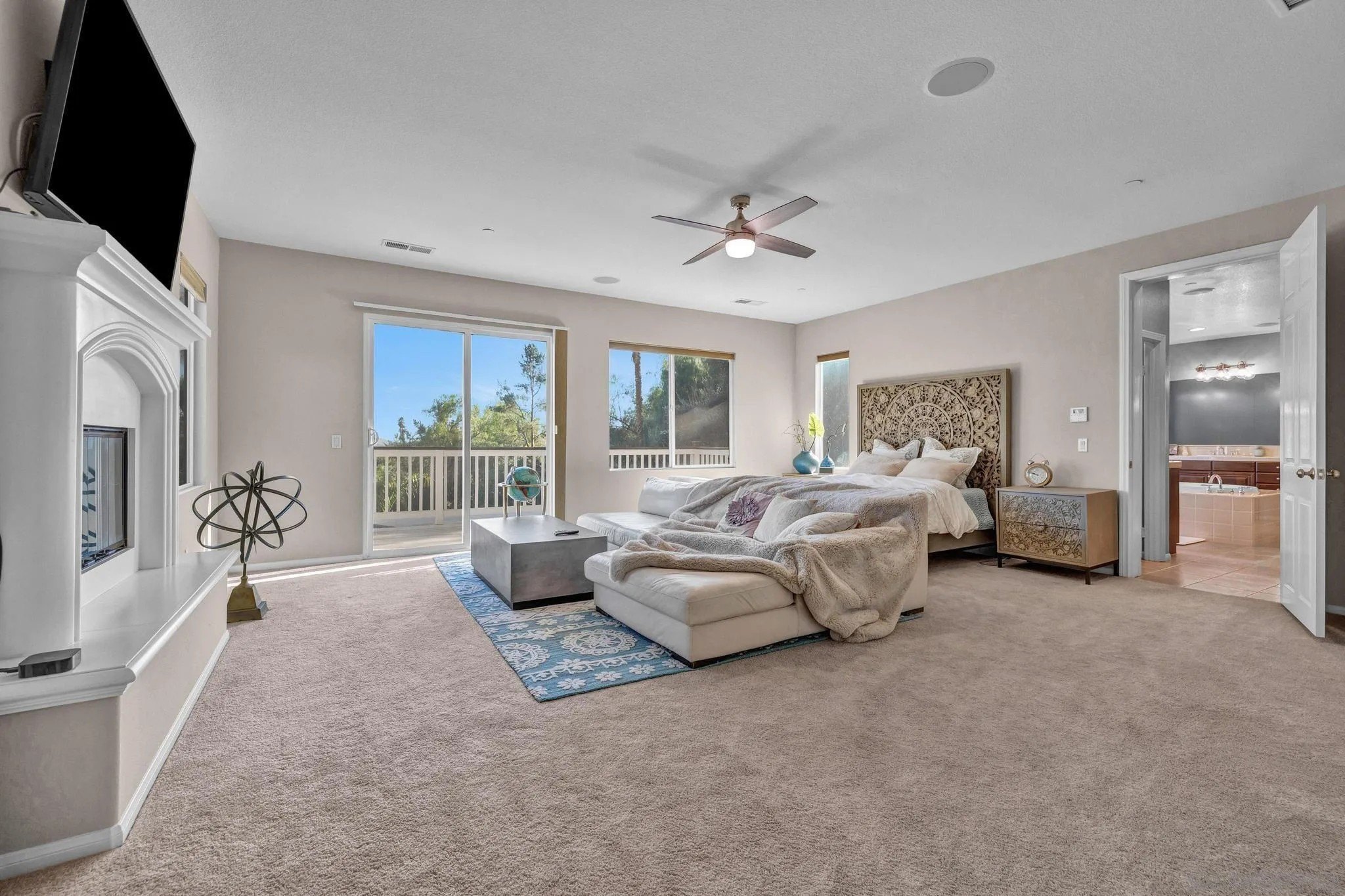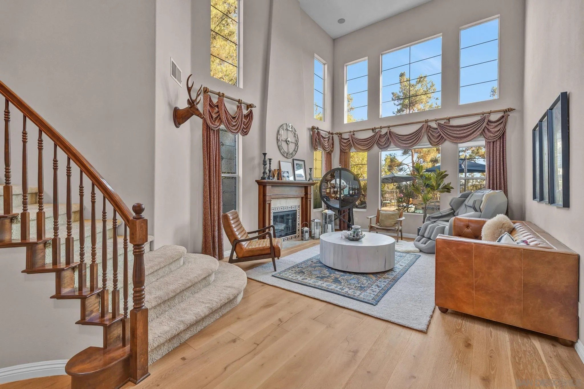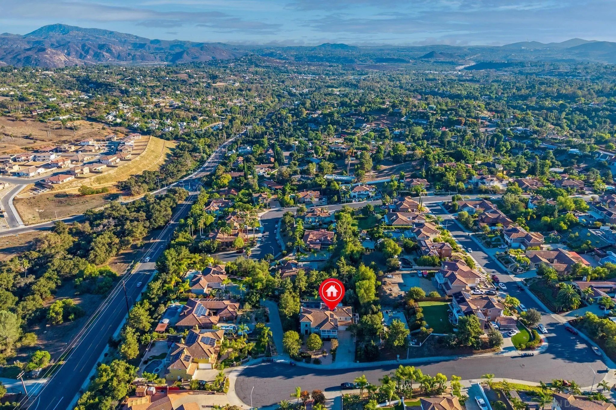 RESORT LIKE HOME in the prime South Escondido location that offers PANORAMIC VIEW and private solar heated swimming pool/Jacuzzi with waterfalls, built-in BBQ, Minigolf course, firepit, AND panoramic southern view! New furnace system. New exterior paint. Only a year old water heater, and fairly new hardwood flooring on the 1st floor! As you open the beautiful carved wood entry door, beautiful family room with backyard view greets you. A ground floor primary suite offers its own private entry and a full bathroom. Open concept kitchen with granite island with full wall cabinets. Up the classic winding staircase you will see a huge loft. Three secondary bedrooms upstairs, Jack and Jill, and 3rd full bathroom. The master suite features dual vanities, his/her walk-in closets, huge bathtub with jets. A Large deck offers picture like mountain views. California or Elfa closet systems in every closet and pull out drawers in cabinets. 4 car garage with epoxy flooring, and whole house sounds system. NO MELLO ROOS AND NO HOA FEES.