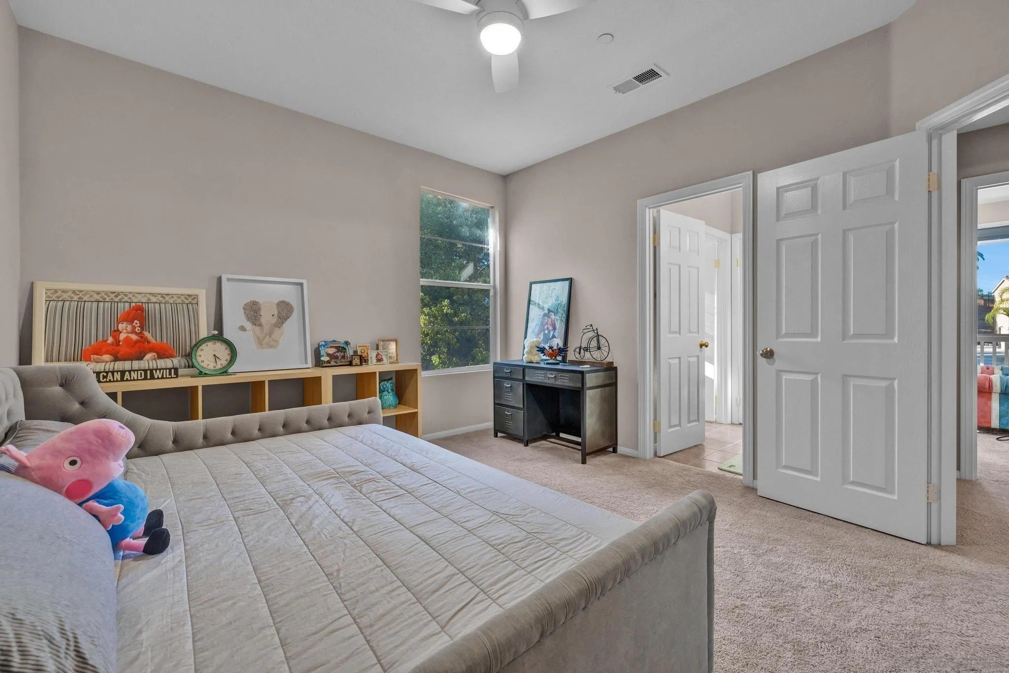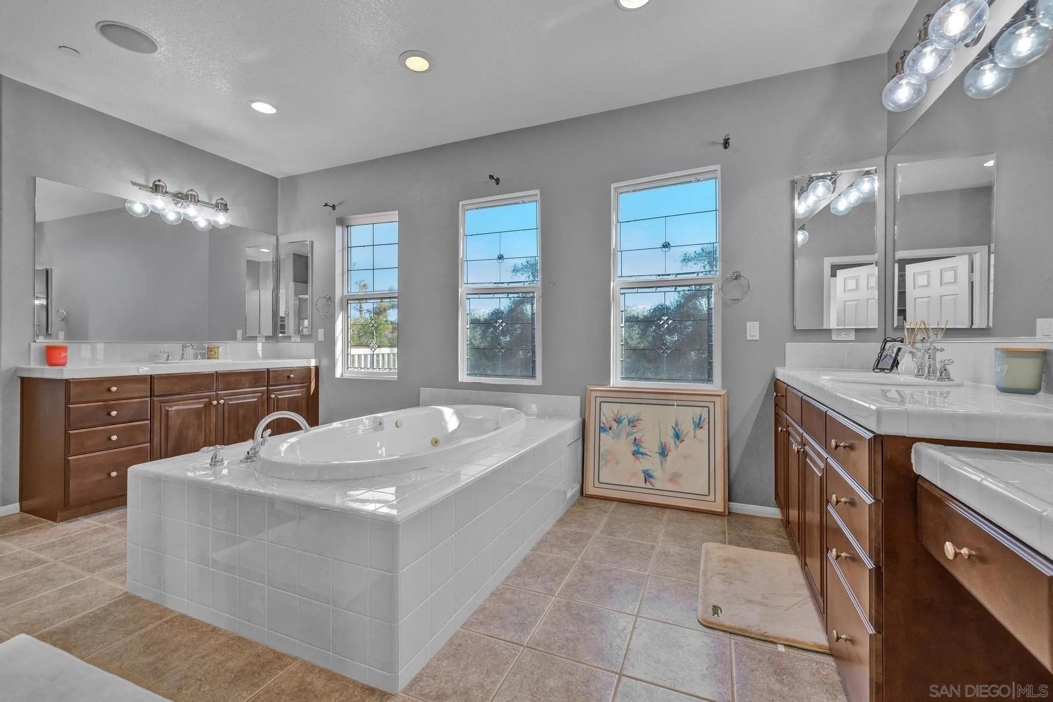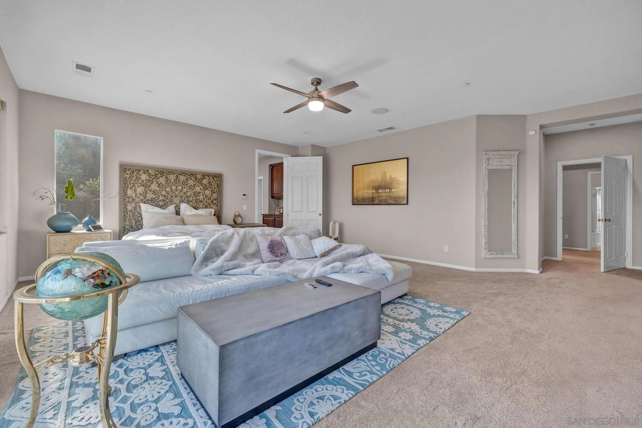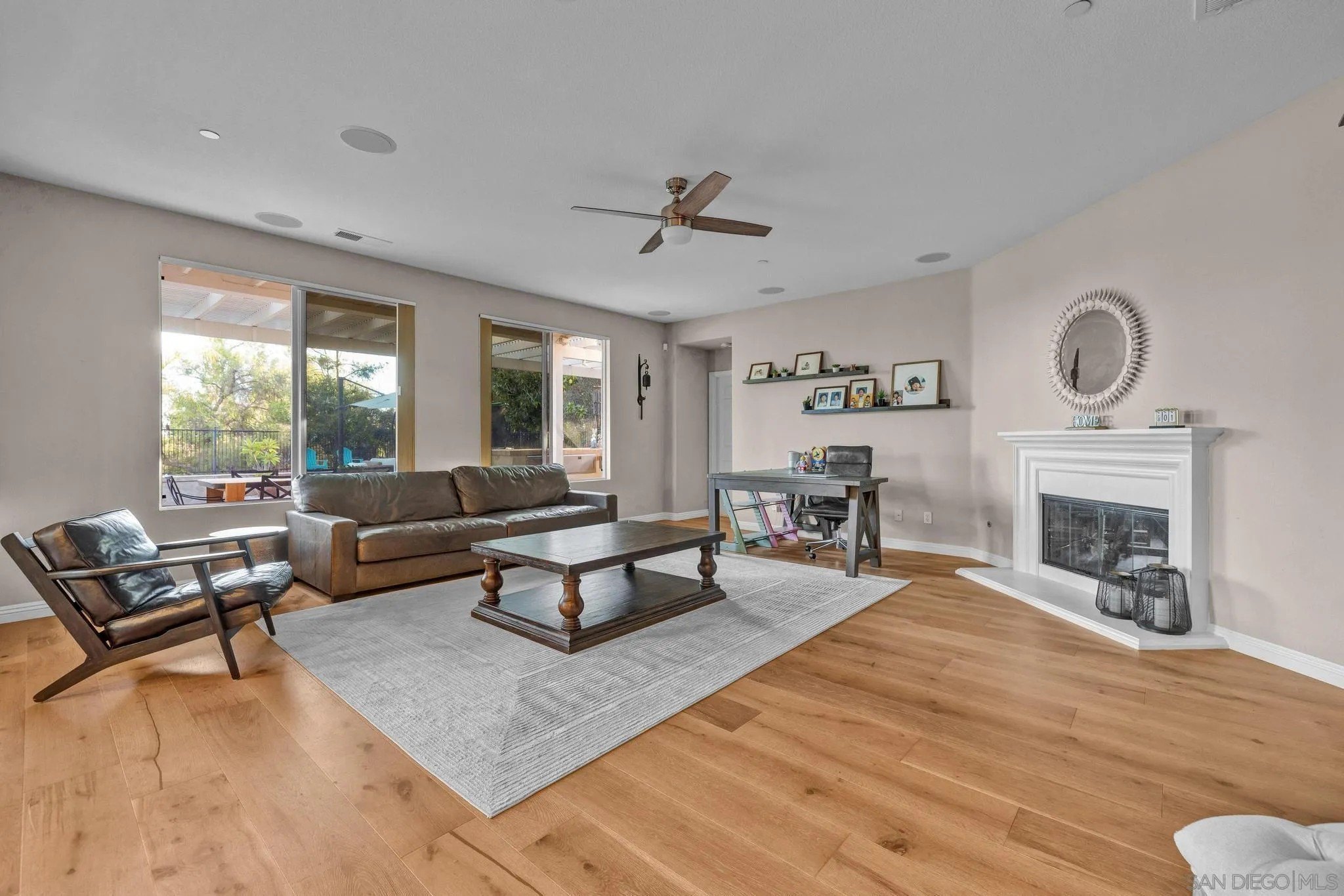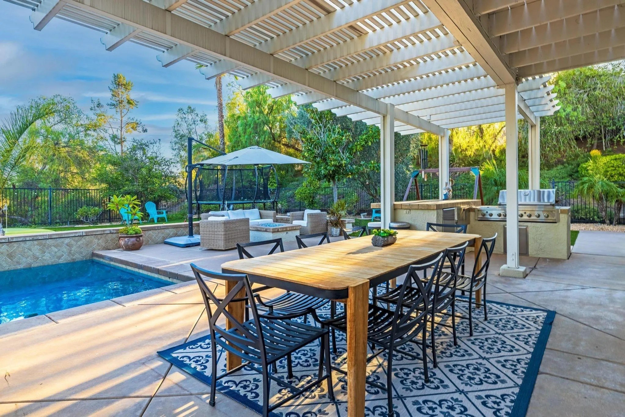 RESORT LIKE HOME in the prime South Escondido location that offers PANORAMIC VIEW and private solar heated swimming pool/Jacuzzi with waterfalls, built-in BBQ, Minigolf course, firepit, AND panoramic southern view! New furnace system. New exterior paint. Only a year old water heater, and fairly new hardwood flooring on the 1st floor! As you open the beautiful carved wood entry door, beautiful family room with backyard view greets you. A ground floor primary suite offers its own private entry and a full bathroom. Open concept kitchen with granite island with full wall cabinets. Up the classic winding staircase you will see a huge loft. Three secondary bedrooms upstairs, Jack and Jill, and 3rd full bathroom. The master suite features dual vanities, his/her walk-in closets, huge bathtub with jets. A Large deck offers picture like mountain views. California or Elfa closet systems in every closet and pull out drawers in cabinets. 4 car garage with epoxy flooring, and whole house sounds system. NO MELLO ROOS AND NO HOA FEES.