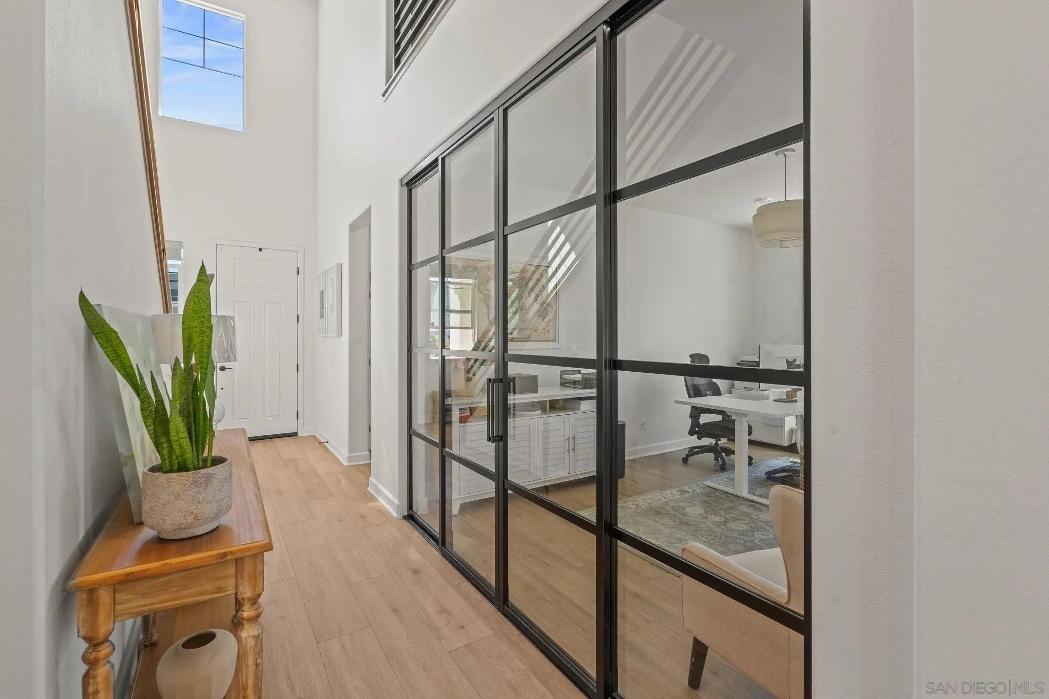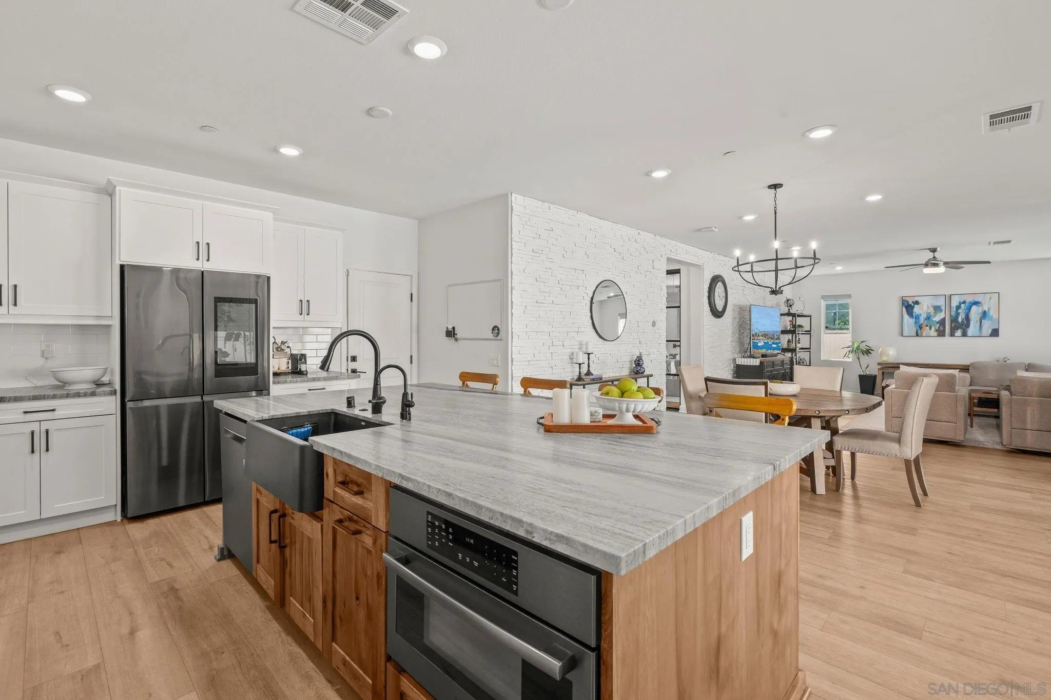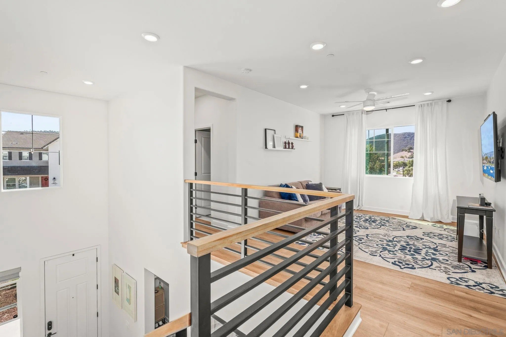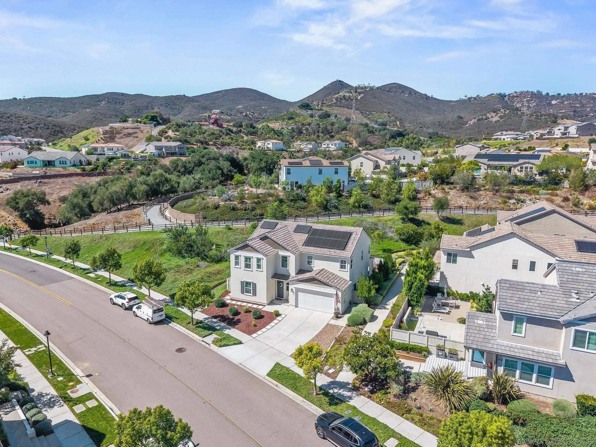 An expansive private driveway leads to 3012 Starry Night, a residence that delivers understated luxury & a true sense of escape. With no adjacent neighbors, the home offers exceptional privacy while still being moments from the vibrant energy of Harmony Grove. Inside, a freshly painted exterior opens to an impressive layout featuring four spacious bedrooms, a versatile loft, & a refined office. The great room anchors the home with its open flow into a chef's kitchen appointed with Bosch stainless steel appliances, an oversized island, abundant cabinetry, & a walk-in pantry. California sliding doors create a seamless extension to the backyard, inviting effortless indoor-outdoor living and peaceful hillside views for beautiful sunset dinners. The first-floor en-suite bedroom offers ideal privacy for guests or multi-generational living. Upstairs, the primary suite serves as a private sanctuary with dual walk-in closets, a spa-inspired bath, and an intimate balcony overlooking the surrounding hills. The loft adds yet another layer of flexibility for work, leisure, or retreat. With paid solar, 2 Tesla Powerwalls, smart thermostat, LVP floors, designer accents, & thoughtful enhancements throughout, this home embodies modern comfort at every turn. Harmony Grove elevates everyday living with resort-style amenities including pools, spa, clubhouse, playgrounds, and miles of scenic trails. 3012 Starry Night brings together privacy, elegance, & community in a truly exceptional setting.