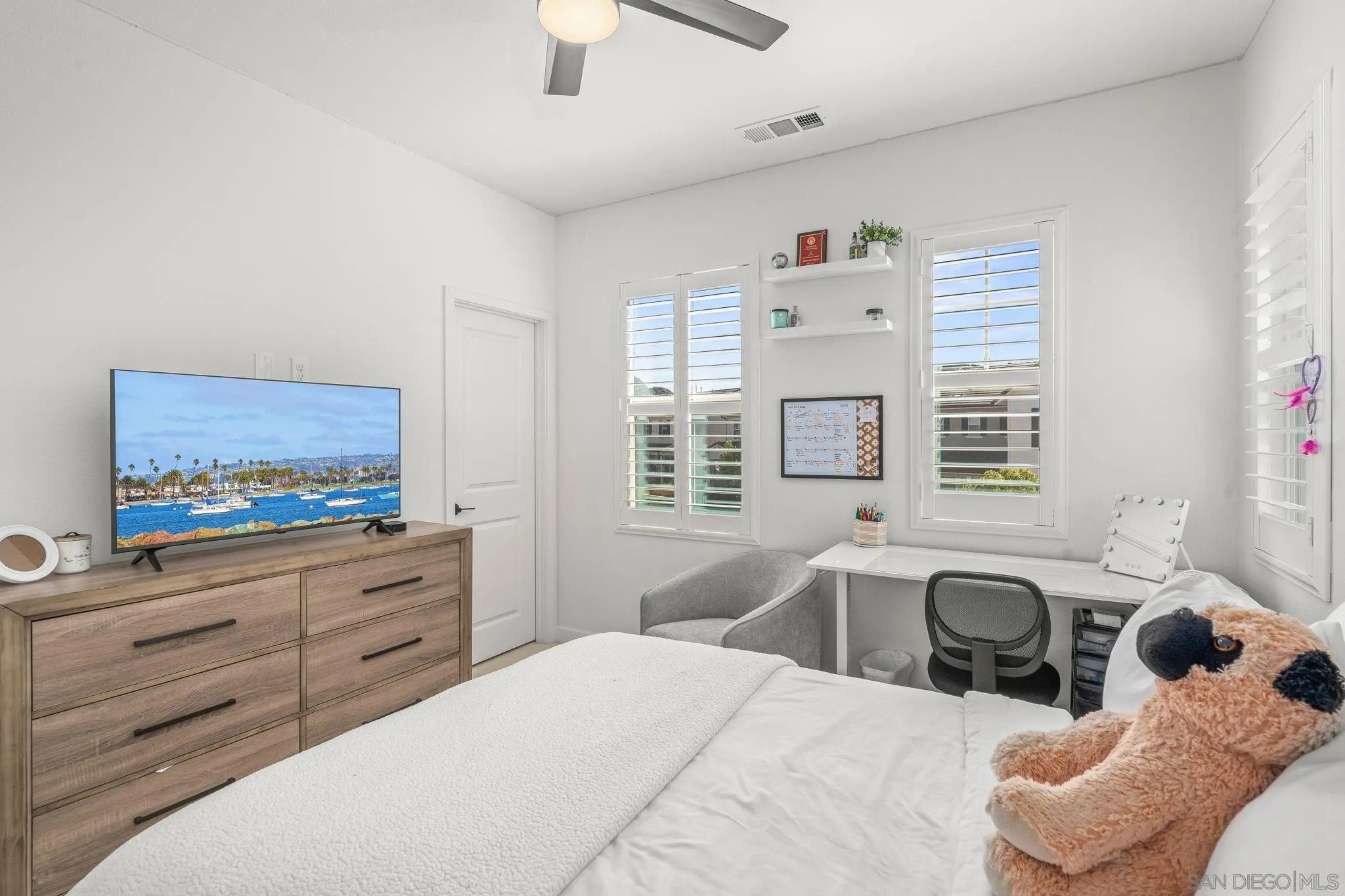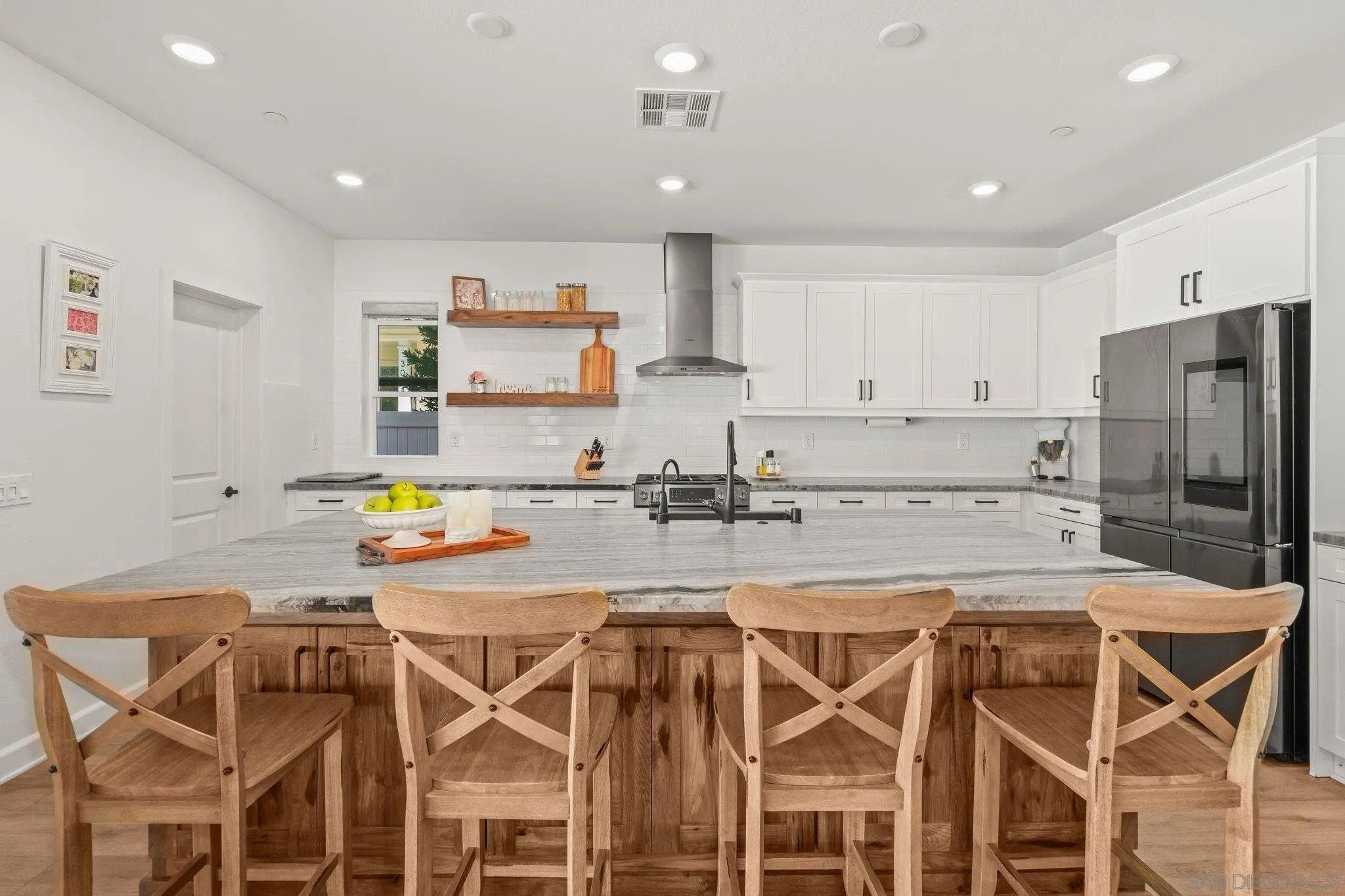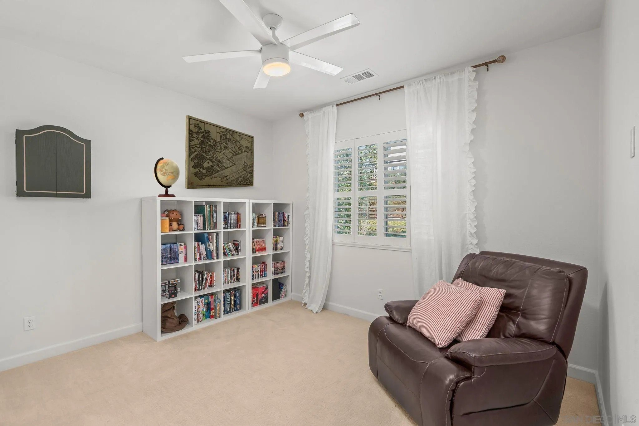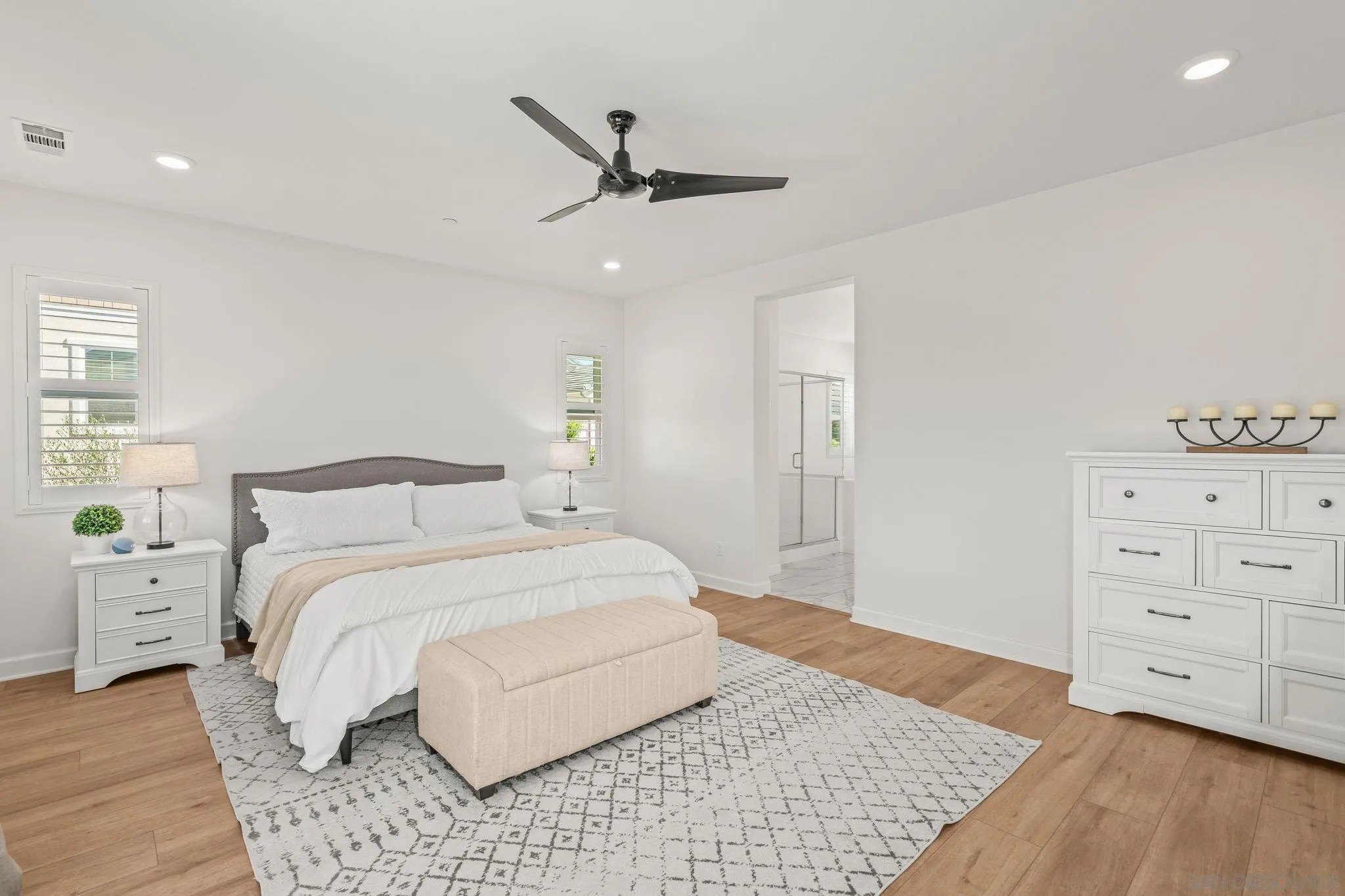 An expansive private driveway leads to 3012 Starry Night, a residence that delivers understated luxury & a true sense of escape. With no adjacent neighbors, the home offers exceptional privacy while still being moments from the vibrant energy of Harmony Grove. Inside, a freshly painted exterior opens to an impressive layout featuring four spacious bedrooms, a versatile loft, & a refined office. The great room anchors the home with its open flow into a chef's kitchen appointed with Bosch stainless steel appliances, an oversized island, abundant cabinetry, & a walk-in pantry. California sliding doors create a seamless extension to the backyard, inviting effortless indoor-outdoor living and peaceful hillside views for beautiful sunset dinners. The first-floor en-suite bedroom offers ideal privacy for guests or multi-generational living. Upstairs, the primary suite serves as a private sanctuary with dual walk-in closets, a spa-inspired bath, and an intimate balcony overlooking the surrounding hills. The loft adds yet another layer of flexibility for work, leisure, or retreat. With paid solar, 2 Tesla Powerwalls, smart thermostat, LVP floors, designer accents, & thoughtful enhancements throughout, this home embodies modern comfort at every turn. Harmony Grove elevates everyday living with resort-style amenities including pools, spa, clubhouse, playgrounds, and miles of scenic trails. 3012 Starry Night brings together privacy, elegance, & community in a truly exceptional setting.