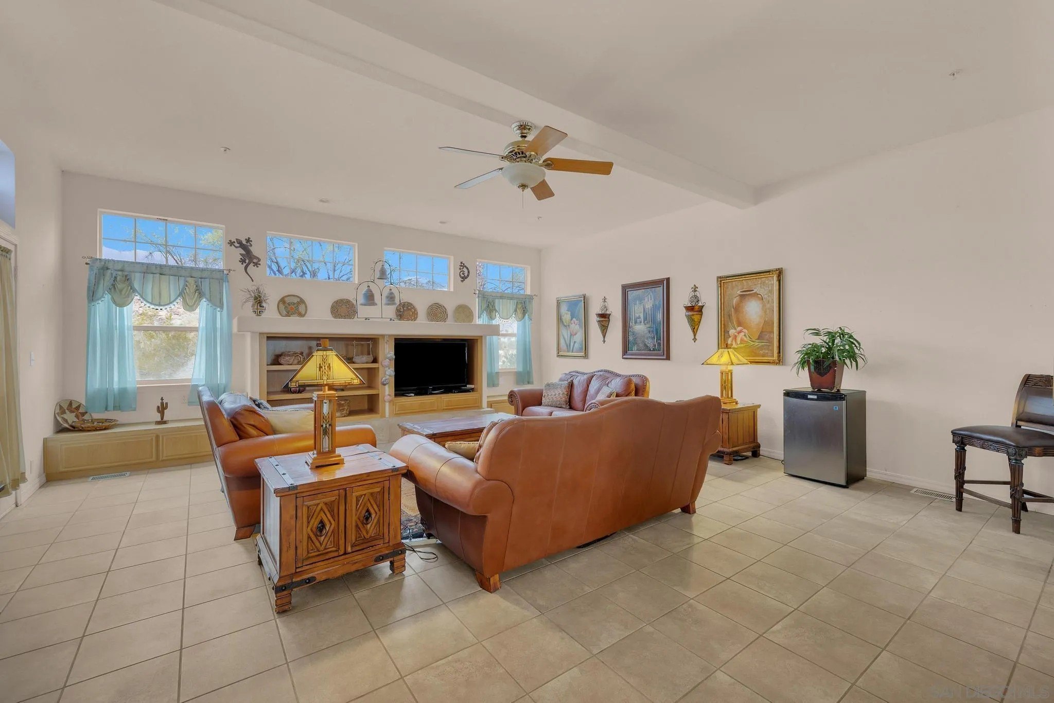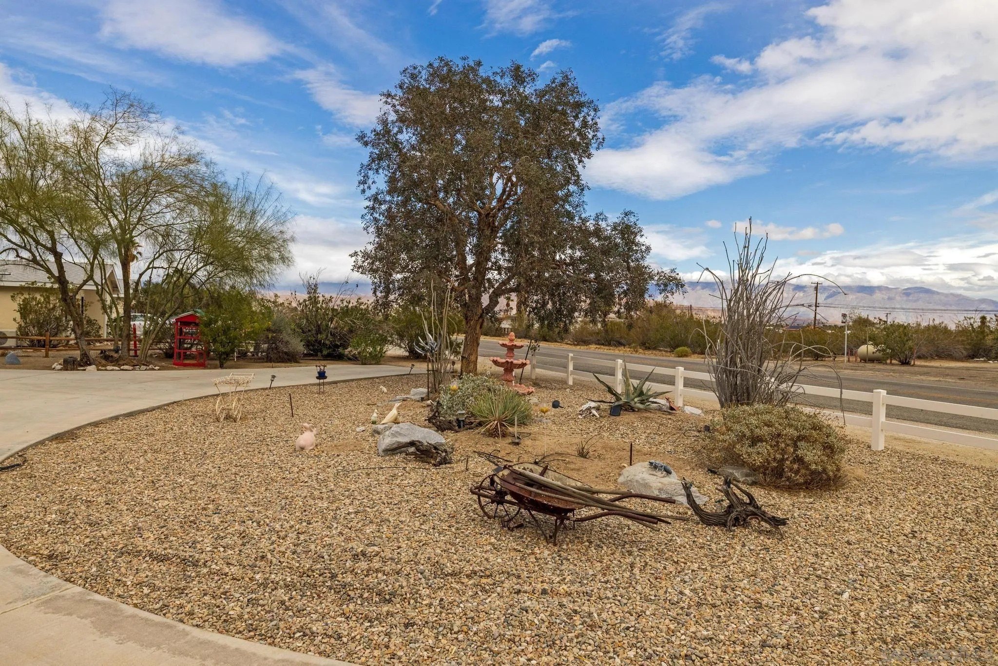 Imagine yourself in this spacious 2,853-square-foot, four-bedroom, two-bath home situated on 0.51 acres. Located near Christmas Circle, the heart of Borrego Springs, this residence is renowned for its enchanting decorations that light up the way to downtown Borrego during the holidays. Enjoy the two decks that offer expansive views of the desert landscape and the majestic mountain skylines. Ideal for entertaining large family gatherings, this home features a spacious chef's kitchen, two dining areas, a great room with a fireplace, and expansive outdoor decks for relaxation. This home features stunning desert landscaping and boasts a concrete circular driveway, providing easy access to the paved, county-maintained road. Two adjacent 0.51-acre lots are available as well