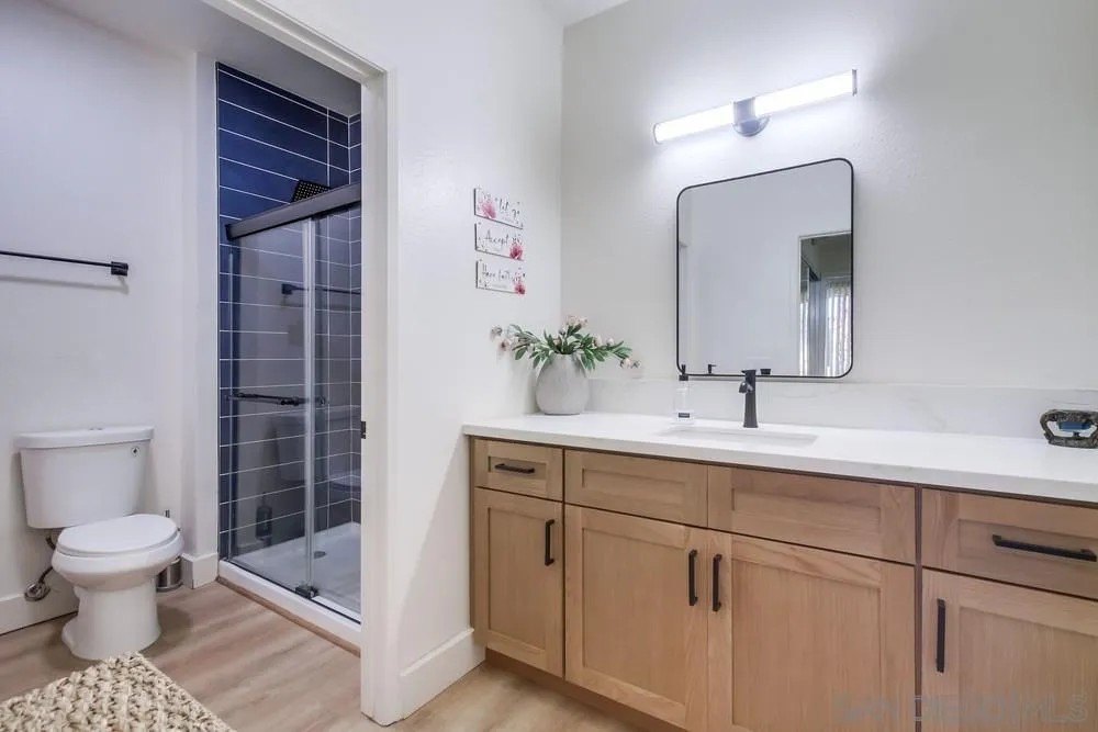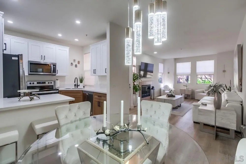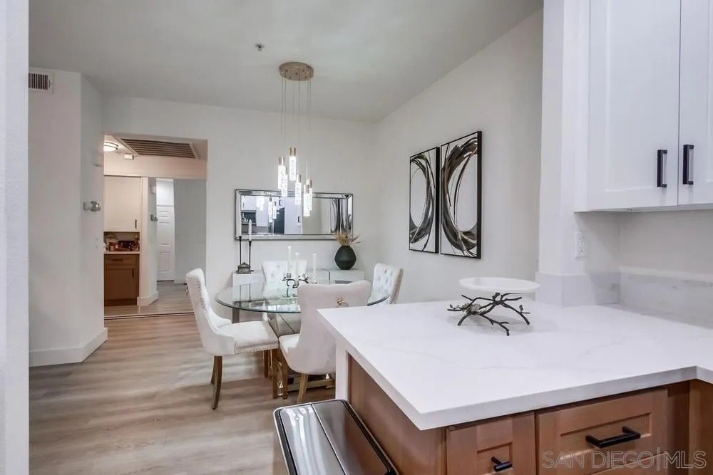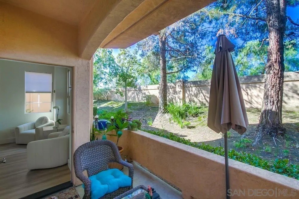 Experience resort-style living in the desirable gated community of Morada at Bernardo Vista Del Lago. This beautifully updated downstairs 1-bedroom, 1-bath home welcomes you with soaring ceilings, abundant natural light, and elegant luxury vinyl plank flooring throughout the living and dining areas. The spacious bedroom features a walk-in closet and private patio access, while the living room also opens to a serene outdoor space complete with a large storage closet. A full-sized washer and dryer are conveniently tucked in the hallway, and the kitchen boasts brand-new appliances-all included. Unique to this home is a private garage with extra storage, in addition to ample guest parking. Community amenities include two sparkling pools, spa, tennis courts, fitness center, clubhouse, and billiard room. Ideally located just off I-15-minutes from shopping, dining, Westfield North County Mall, and the trails of Lake Hodges. HOA covers water, trash, exterior maintenance, and access to all amenities. A turnkey opportunity in one of San Diego's most sought-after neighborhoods!