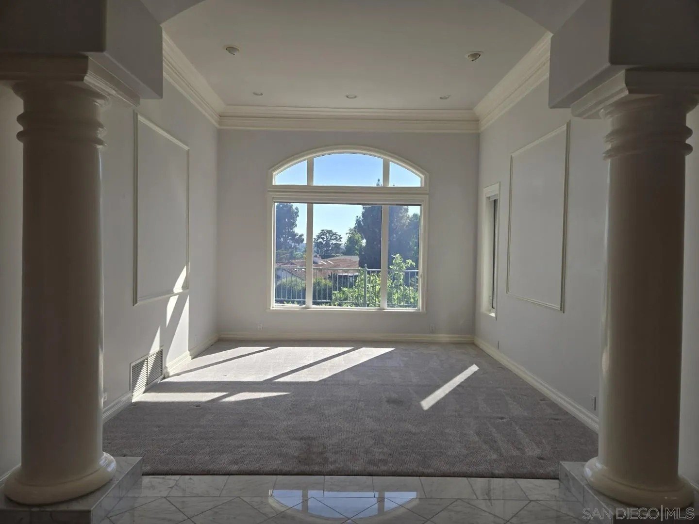 Single-Level Oasis with Unmatched Views, Privacy, and a Rare 46' RV Garage. Welcome to 6727 Cavite Ct, a show-stopping single-level retreat perched on a private half-acre cul-de-sac lot in Del Cerro's coveted Del Cerro Shores neighborhood. This one-of-a-kind home blends timeless design with modern upgrades and panoramic west-facing views-perfect for entertaining, relaxing, and storing all your toys. Massive 46' x 15' RV/boat garage with 220V outlets and 14' clearance-ideal for your rig, trailer, boat, or car collector's dream. Unobstructed sunsets from your wraparound patio, with multiple seating areas and elegant hardscape. Open-concept great room with custom built-ins, gas fireplace, skylights, and direct patio access. High ceilings throughout. Sleek kitchen with Italian Carrara marble flooring, breakfast nook, and updated stainless steel appliances. Spacious primary suite with dual vanities, huge cedar-lined walk-in closet, and patio access. Flexible fourth bedroom or home office. Lush, low-maintenance landscaping with artificial turf and mature palms. Two-car garage + RV garage -- ample room for guests and gear. Notable Upgrades: Crown molding and recessed lighting throughout. Intercom and camera systems for added security. Energy-efficient dual-pane windows and patio doors. Indoor laundry room with storage and utility sink. Superior Location, Lifestyle & Convenience: Tucked away on a quiet cul-de-sac with no through traffic. Minutes to Mission Trails, top-rated schools, shopping, and freeways. Highly rated Marvin Elementary, Lewis Middle, and Patrick Henry High.