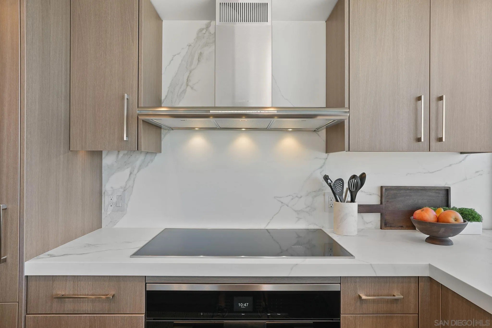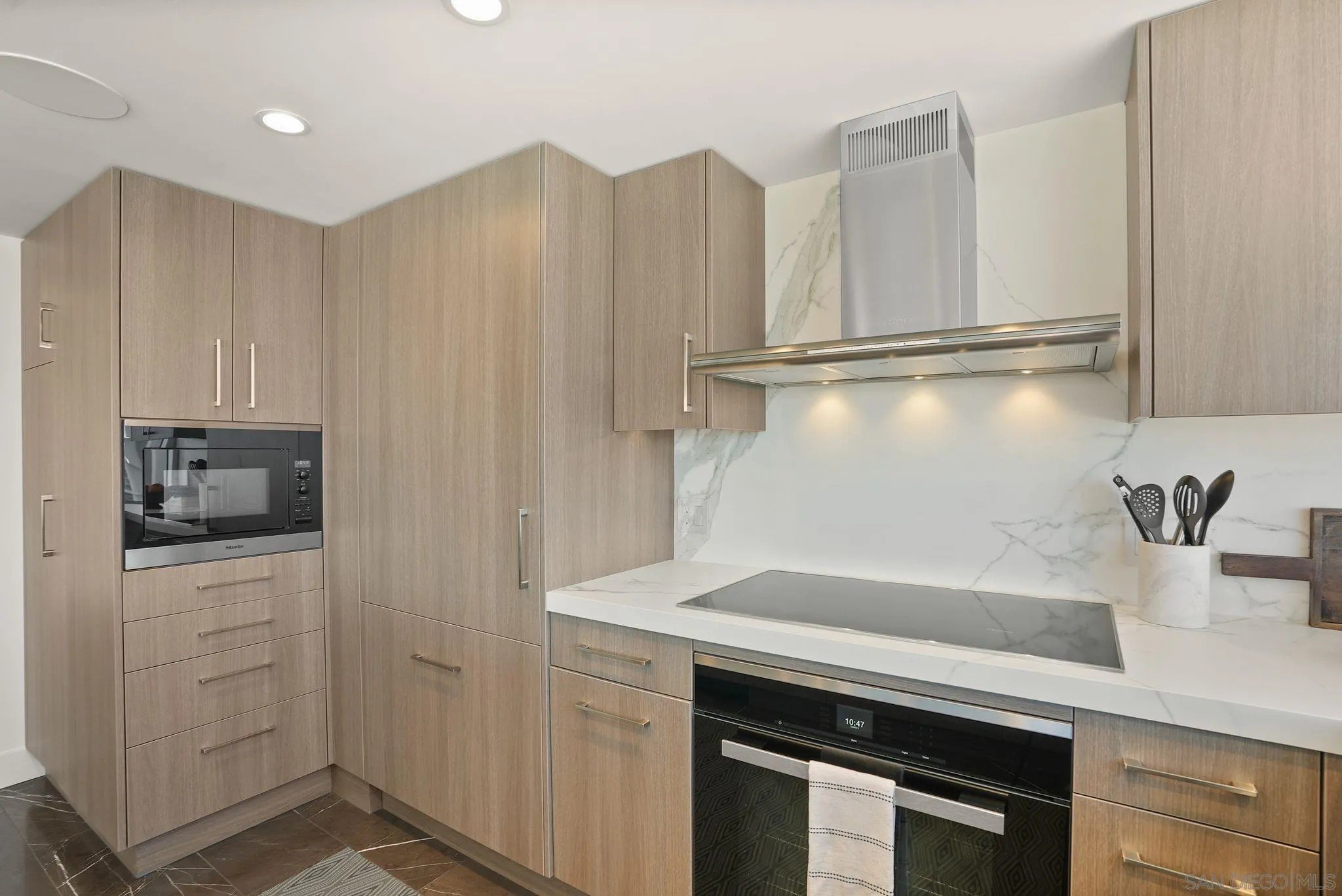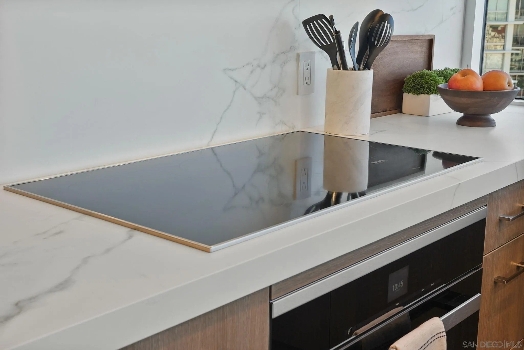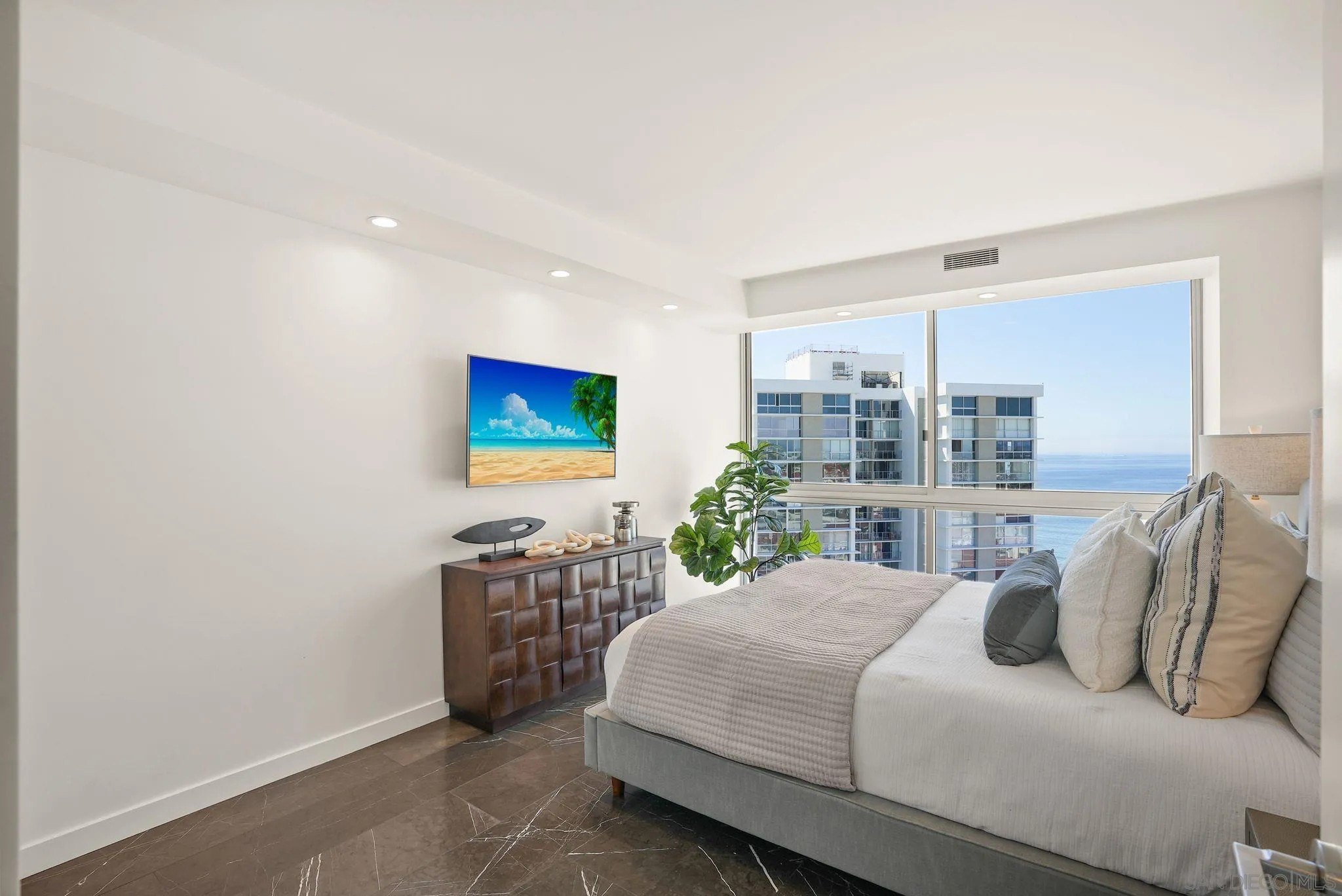 Rising high above the coastline on the 14th floor, this rare 3-bedroom, 3-bath Coronado Shores oceanfront residence embodies the pinnacle of sophisticated coastal living. A custom large-format picture window serves as the home's centerpiece, framing sweeping unobstructed views of the Pacific Ocean, Point Loma, and the iconic Hotel Del Coronado. Inside the residence is a showcase of refined design, featuring dramatic Black Marquita marble tile floors, sleek Neolith porcelain countertops, and European laminate cabinetry with precision-engineered Legrabox drawers by Blum. The chef's kitchen is equipped with premium Miele appliances, while a custom integrated sound system provides the perfect backdrop for both elegant entertaining and serene daily living. Beyond the residence, the Coronado Shores offers an exclusive lifestyle with oceanfront pools, tennis courts, pickleball courts, a private clubhouse, and 24-hour security, all just steps from Coronado's world renowned beaches, fine dining, boutique shopping, and legendary Hotel Del Coronado. Blending timeless elegance, modern luxury, and a premier oceanfront address, this extraordinary property is designed for those seeking a one-of-a-kind coastal retreat. Schedule your private viewing today and experience the height of ocean-front Coronado living.