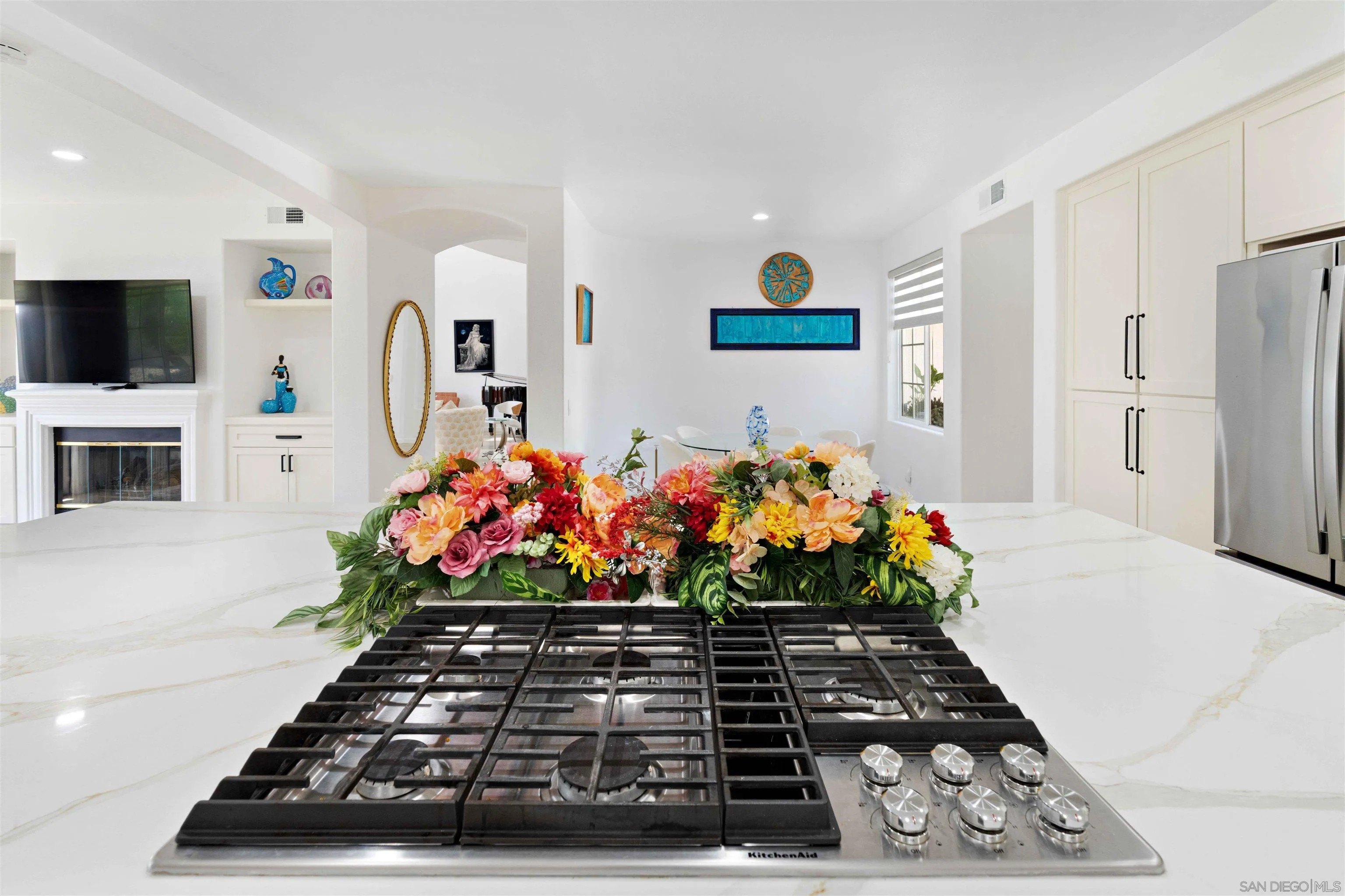 Welcome to 550 Echo Lane, a stunning 4-bedroom, 3-bathroom home in the highly desirable gated community of Buenavida. From the moment you arrive, you'll notice the pride of ownership, this is truly a move-in ready home where every detail has been thoughtfully cared for. A private entry opens into soaring cathedral ceilings and a bright, inviting living room, immediately setting the tone for the elegance and comfort found throughout. The spacious kitchen flows seamlessly into the family room with a cozy fireplace, creating the perfect heart of the home for entertaining family and friends. With a full bedroom and bath conveniently located downstairs, the layout offers flexibility for guests, a home office, or multi-generational living. Upstairs, the primary suite is a retreat of its own with a spa-like ensuite, while two additional bedrooms and a full bathroom provide plenty of space for the whole family. Recent upgrades add both beauty and peace of mind, including fresh exterior paint, custom window coverings, and a newly installed garage door motor. The outdoor spaces have been transformed with artificial turf, a newly landscaped backyard, a modern sprinkler system, and a brand-new vinyl wall with rod iron fencing all designed to offer both style and low-maintenance living. Energy efficient solar panels and a 3-car garage add to the home's appeal, while the neighborhood itself offers tree-lined sidewalks, a welcoming community feel, and close proximity to shopping centers, restaurants, lakes, hiking trails, and freeway access.