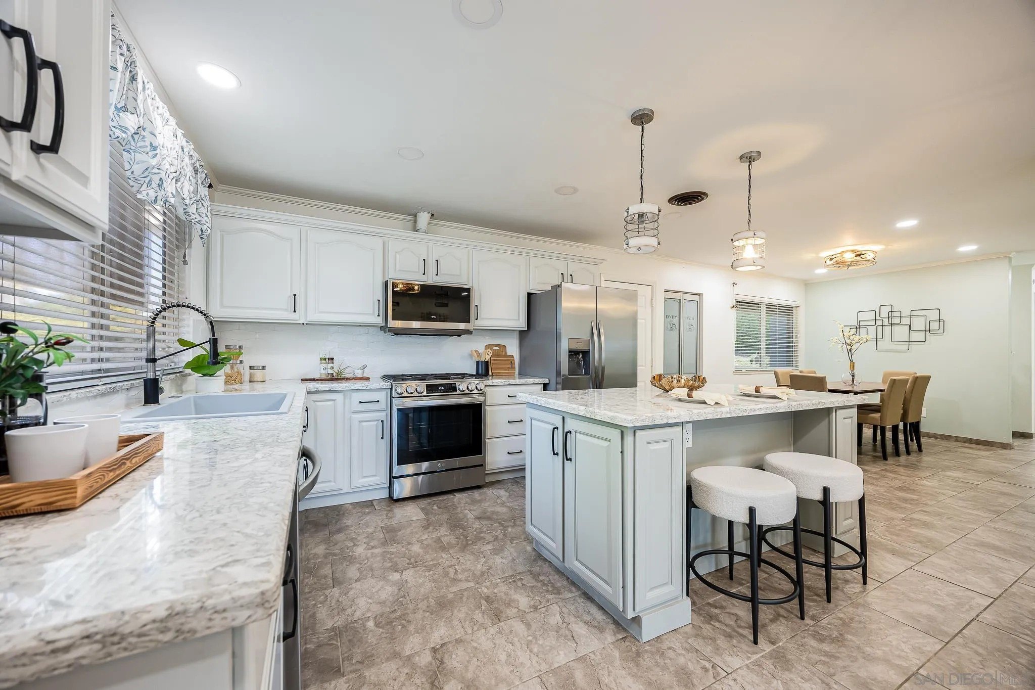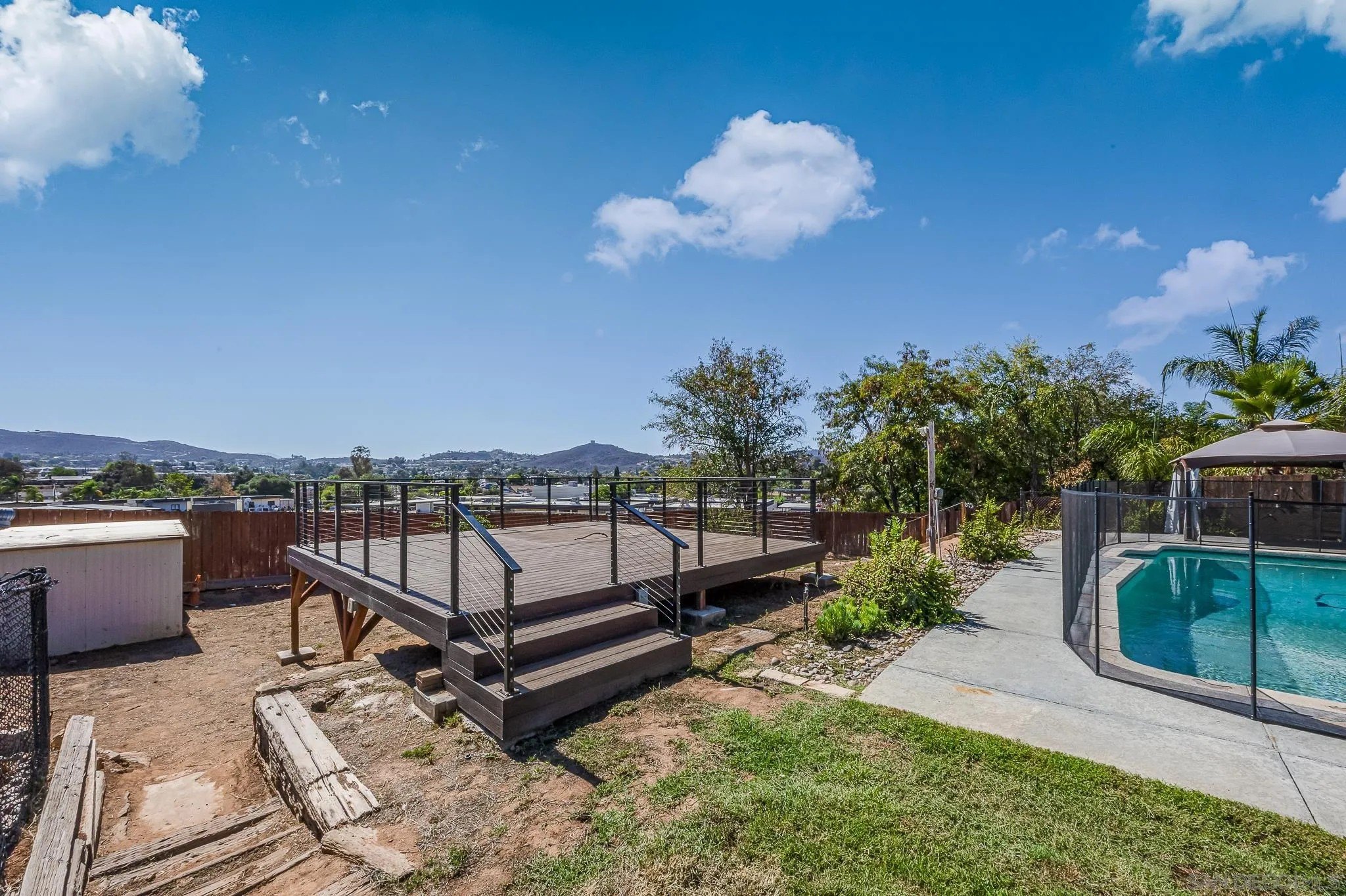 Welcome to 13351 Scotsman Road, a beautifully updated and renovated 4 bedroom, 3 bath home with over 1,700 sq ft of living space, tucked away on a very quiet street in Lakeside. Fully renovated inside and out, this home blends modern finishes with everyday convenience. The chef-inspired kitchen features new quartz countertops, an expanded pantry with motion-detection lighting, and extra electrical outlets to keep all your appliances powered. The open layout flows seamlessly into the dining and living areas, ideal for entertaining and family gatherings. The spacious master suite includes a versatile bonus room perfect for a home office, gym, or yoga studio. Outside, enjoy a sparkling pool, new deck, large open area, perfect for adding grass or chicken coup, and patio space designed for year-round fun! With Lakeview Elementary directly behind the property, walking the kids to and from school is a breeze. Additional highlights include solar, upgraded 220 amp panel with 220 amp outlets, split AC system in garage, perfect for a home gym, man cave or she-shed, ample storage, generous parking, and a garage finished with epoxy flooring. Plus, enjoy easy access to both El Capitan and Lake Jennings reservoirs, offering endless opportunities for fishing, boating, and outdoor recreation just minutes from your doorstep. This is a true move-in-ready Lakeside gem-don't miss it!