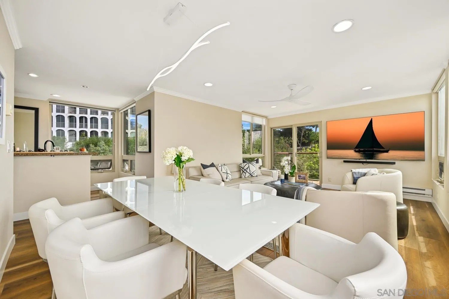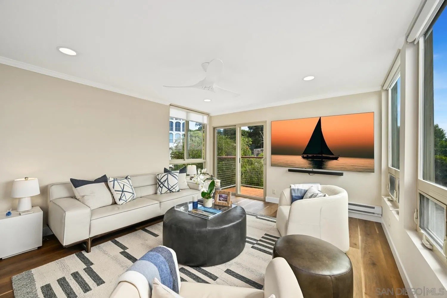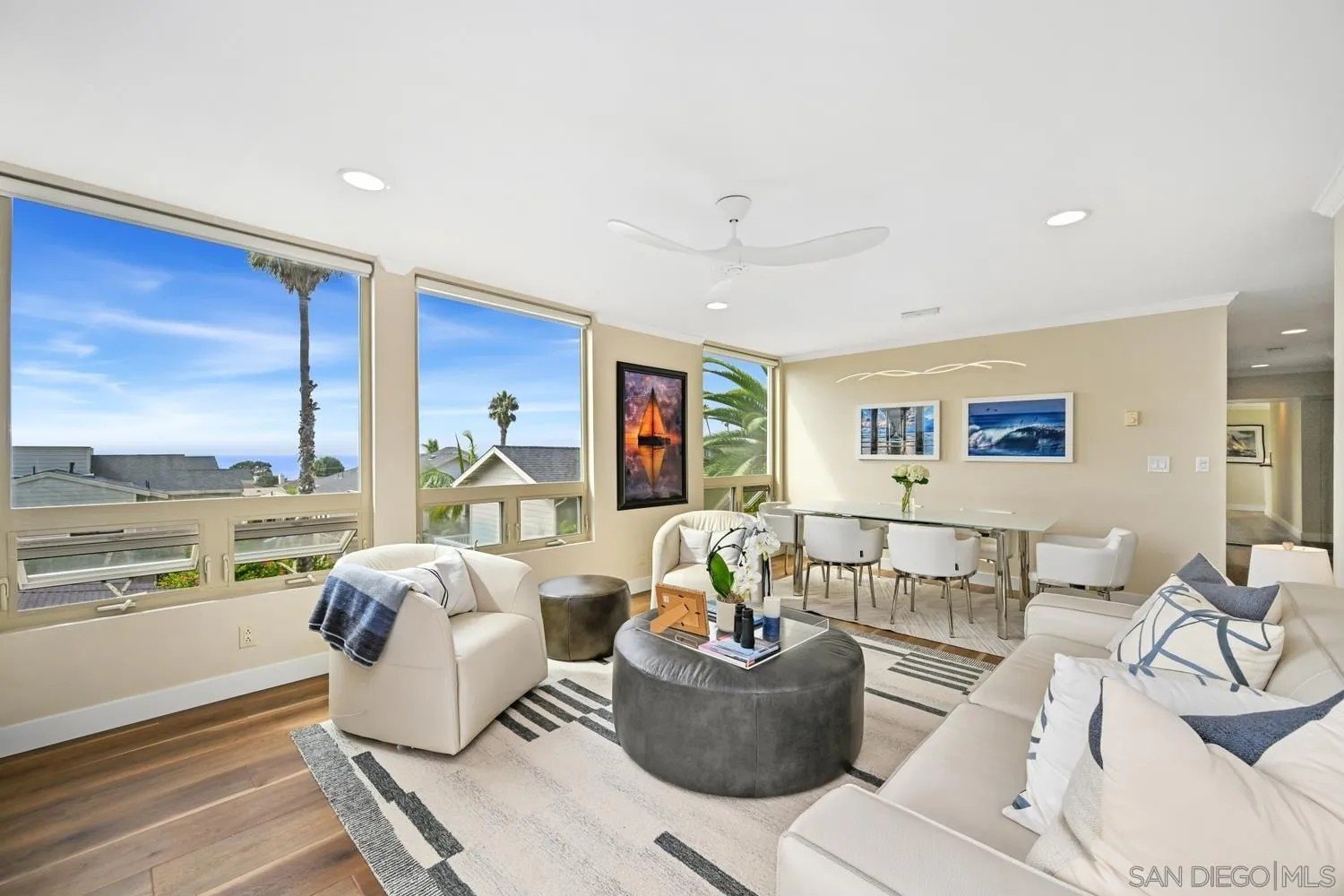 Sparkling ocean views in the heart of the village of La Jolla! Experience coastal living at its finest in this exquisite residence - the only unit in the building featuring dramatic floor-to-ceiling windows that capture sweeping ocean panoramas and unforgettable sunset views. Flooded with natural light, every room showcases the beauty of La Jolla's coastline, creating a serene retreat in the center of one of Southern California's most sought-after neighborhoods, where you're just steps away from world-class beaches, dining, shopping, and top-rated schools. Enjoy a bright, open floor plan with a beautifully updated kitchen and a spacious living area that opens to a sweeping balcony - the perfect spot to relax and take in breathtaking sunsets. Recent upgrades include newly replaced upper windows and modern ceiling fans. Additional conveniences include in-unit laundry, secure underground parking, and elevator access. Plus, you're only half a block from the popular Sunday La Jolla Farmers Market and adjacent to a public parking lot for visiting guests. Live the ultimate village lifestyle - where every day feels like a vacation.