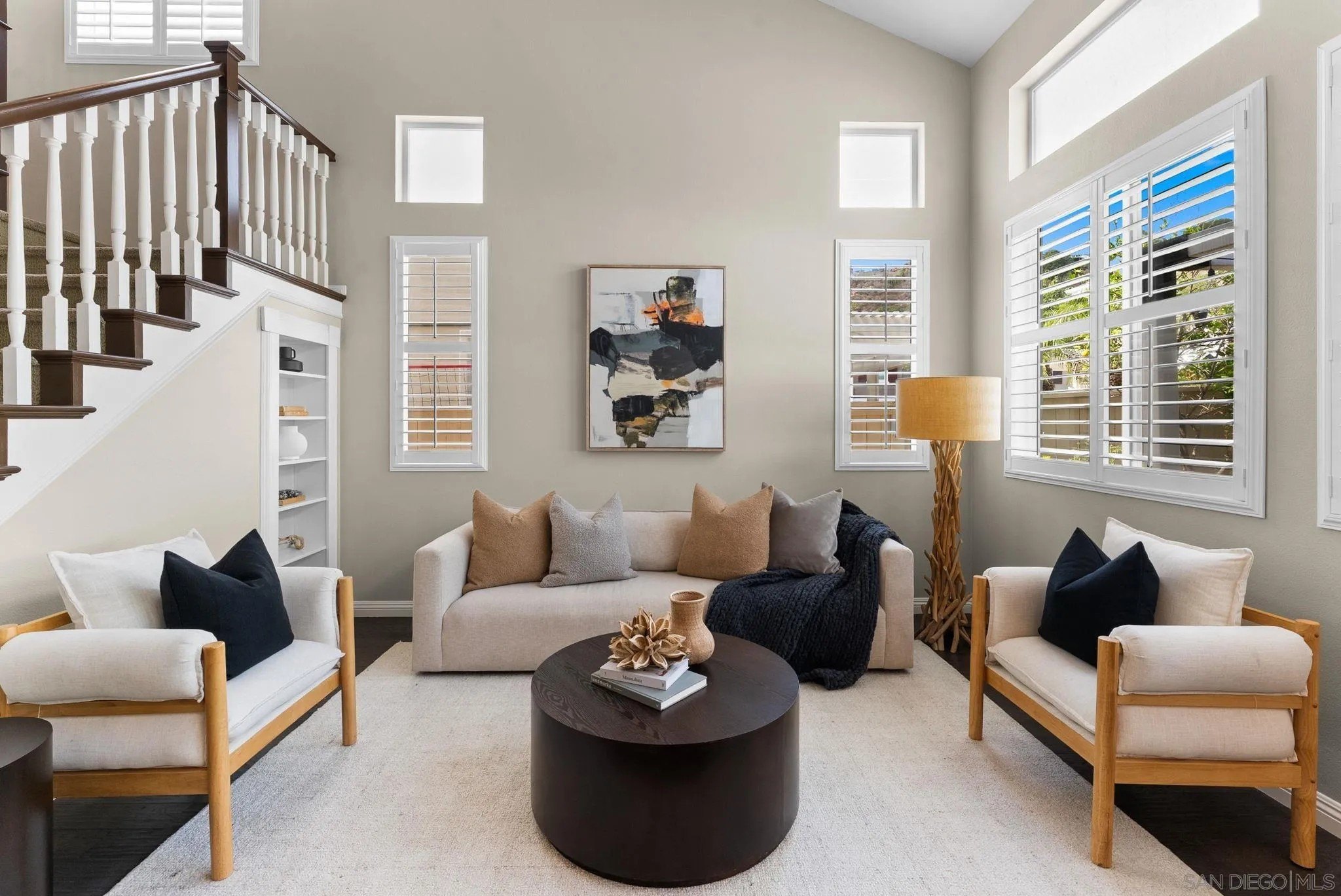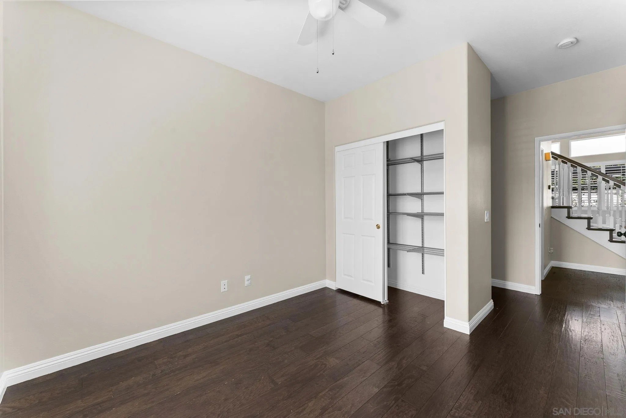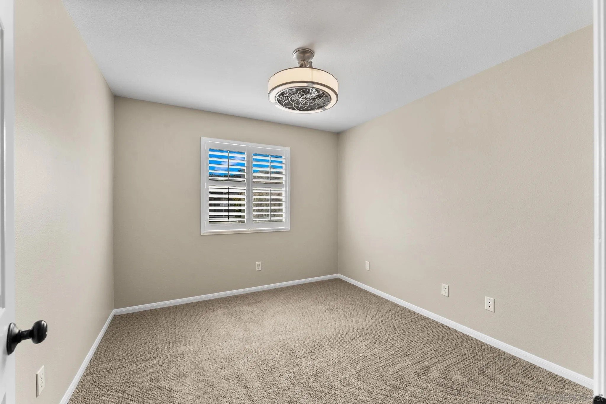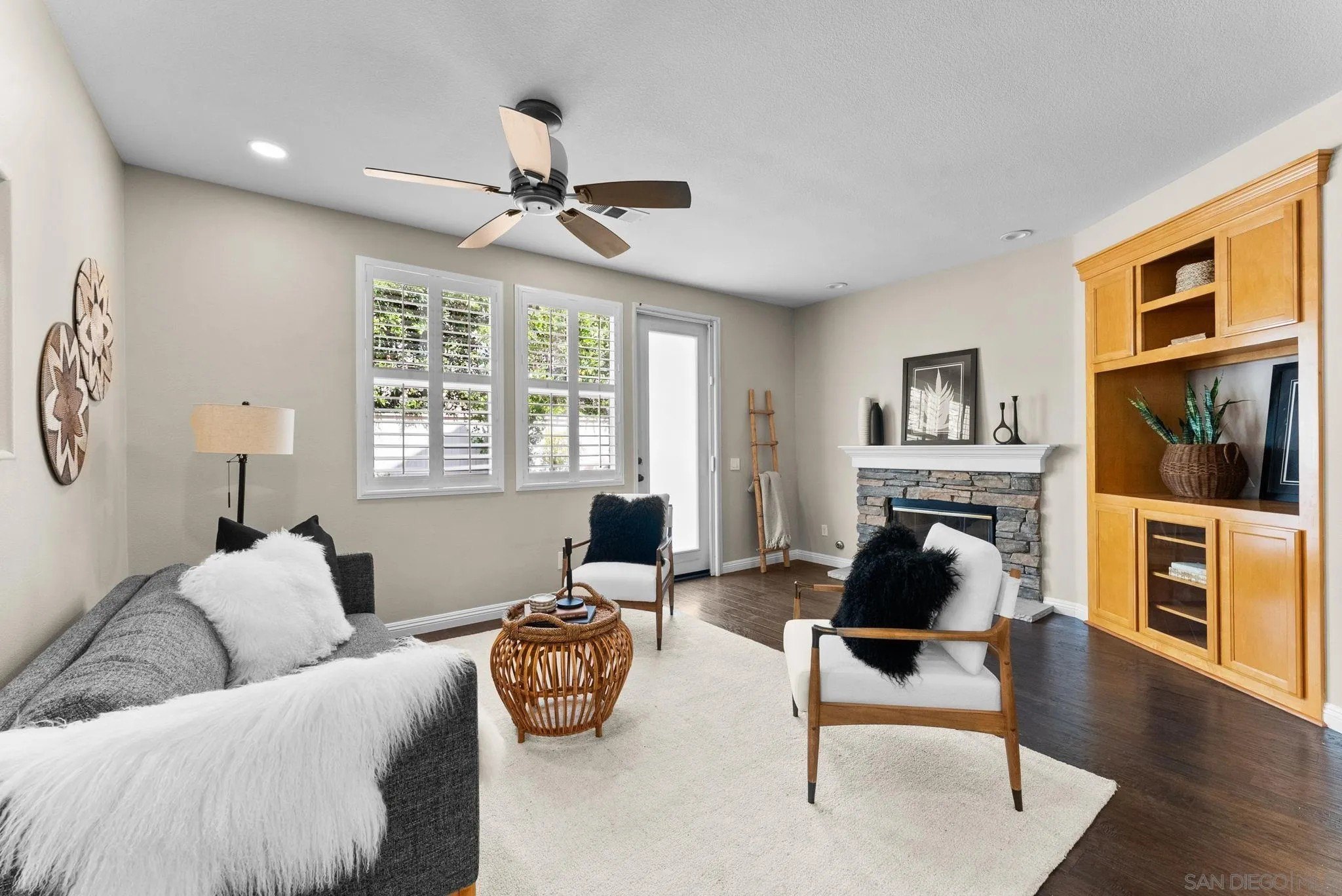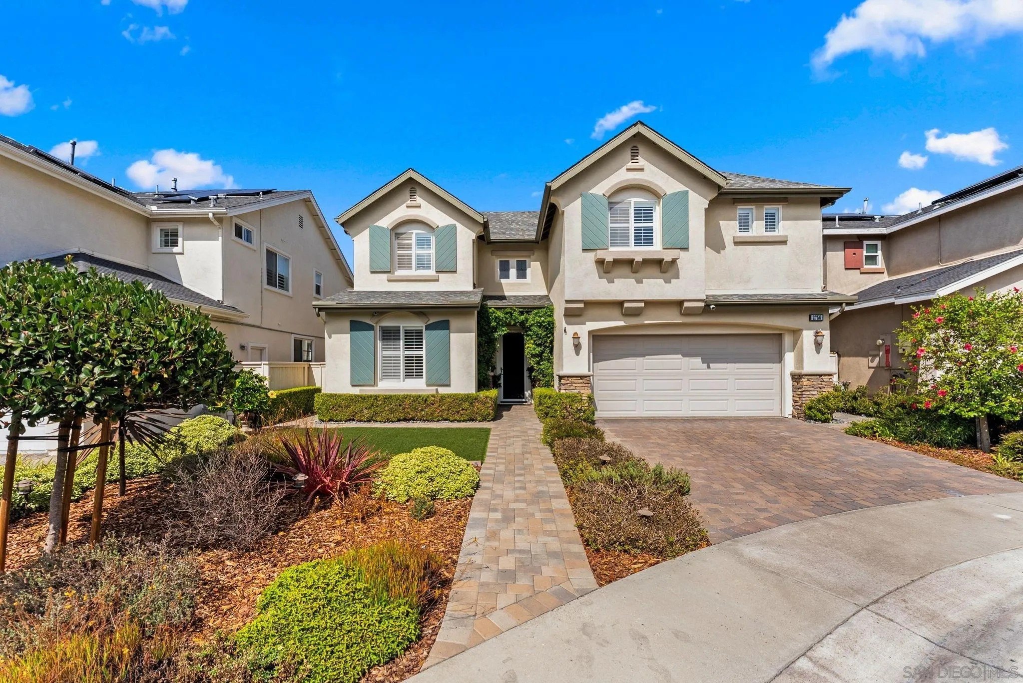 Welcome to 2756 W Canyon Avenue, a freshly painted and beautifully updated 4-bedroom plus loft (optional 5th bedroom), 3-bath home tucked within the sought-after Westport enclave of Stonecrest Village in Serra Mesa. Built in 2000 and set on a quiet cul-de-sac, this 2,418 sq ft residence blends modern upgrades with thoughtful design and a hidden surprise you'll love discovering. The light-filled main level features a contemporary kitchen with newer stainless steel appliances that flows effortlessly into the dining and living areas, complemented by hardwood flooring, plantation shutters, LED lighting, and a whole-house fan. A desirable downstairs bedroom and full bath provide flexibility for guests or multigenerational living. Upstairs offers an expansive primary suite, two additional bedrooms, a spacious loft or optional 5th bedroom, and a convenient laundry room. Every closet, including the primary walk-in, has been customized with premium Container Store Elfa Systems for smart organization. Outside, enjoy a water-efficient backyard with drip irrigation, ambient lighting, a stylish Toja Grid pergola, mounted outdoor TV, and generous patio for entertaining. Residents of Stonecrest Village enjoy resort-style amenities-clubhouse, pools, tennis courts, fitness center, and scenic trails-just minutes from Mission Valley, downtown San Diego, and major freeways.