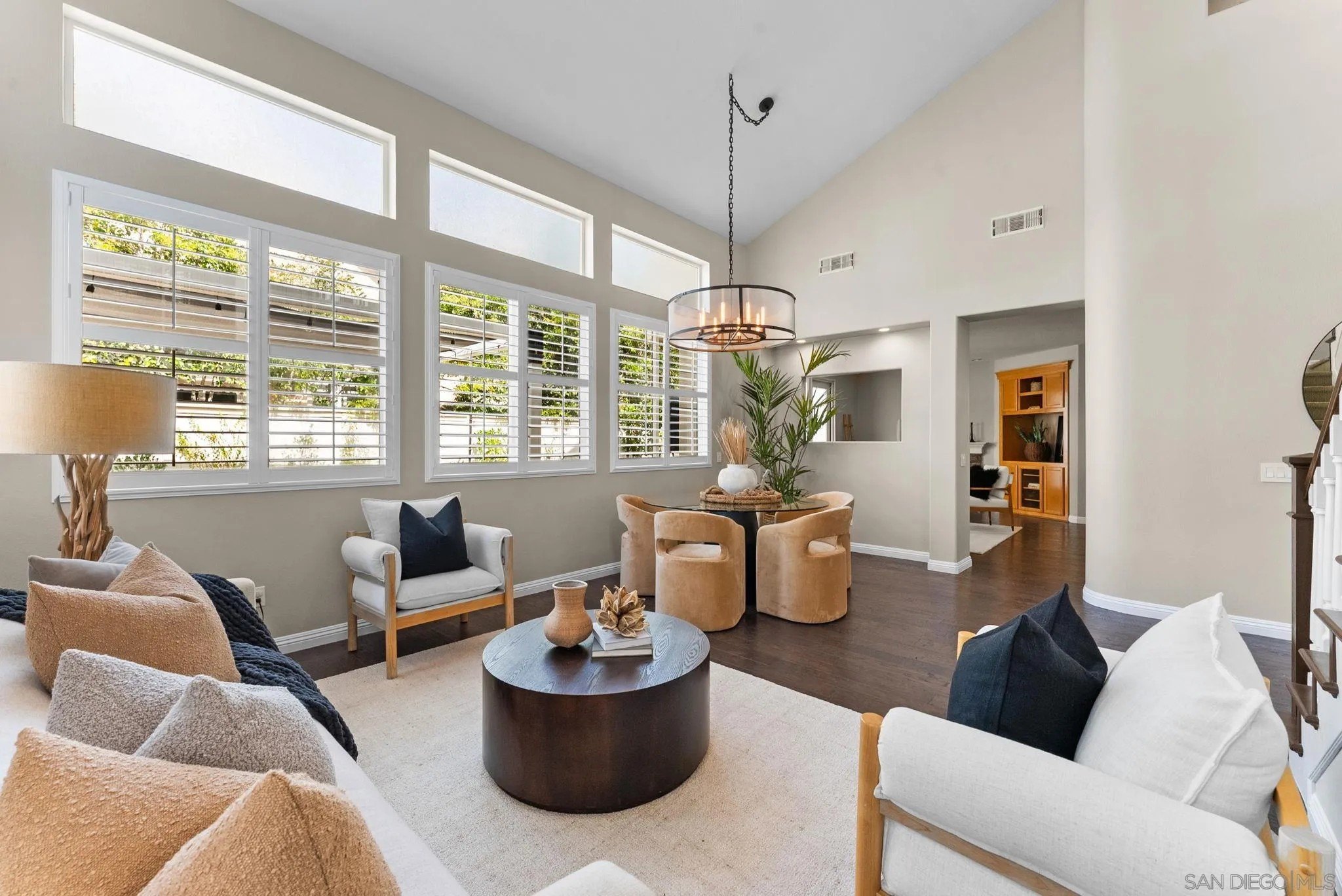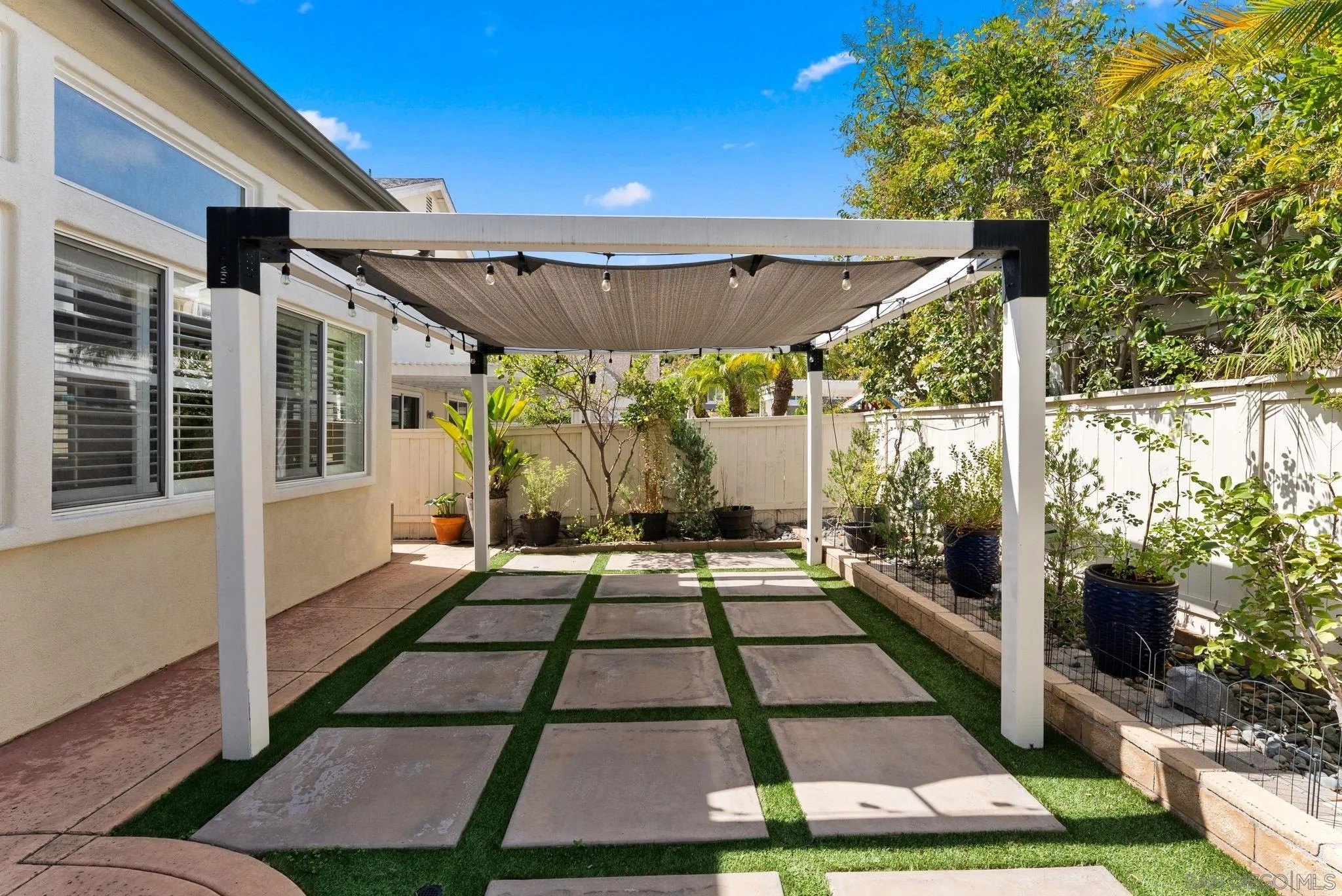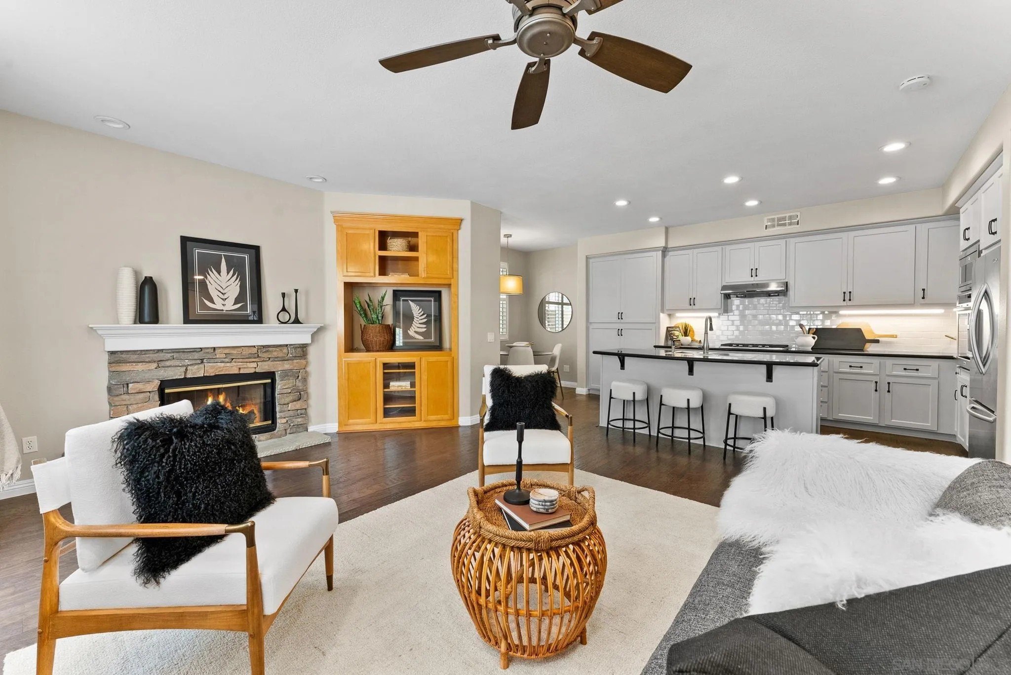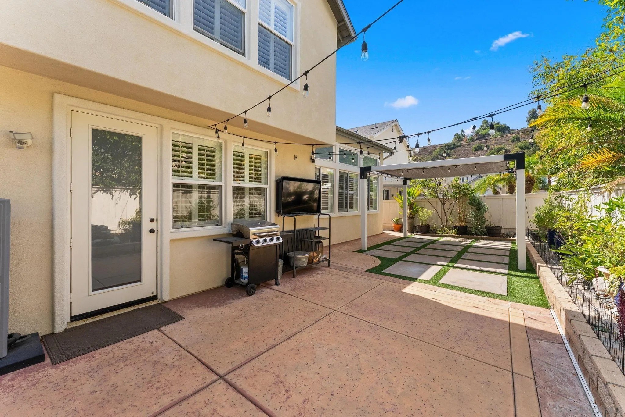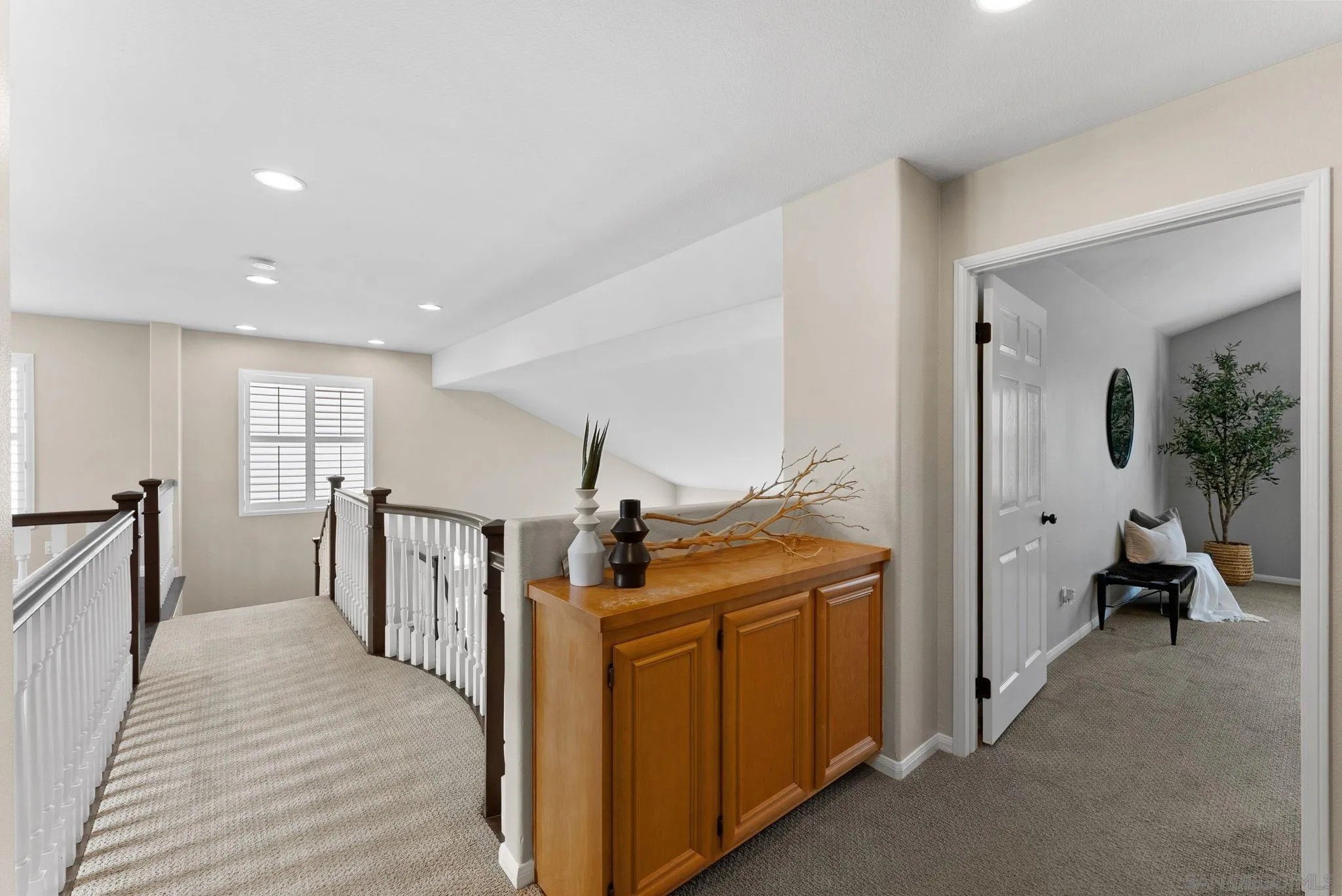 Welcome to 2756 W Canyon Avenue, a freshly painted and beautifully updated 4-bedroom plus loft (optional 5th bedroom), 3-bath home tucked within the sought-after Westport enclave of Stonecrest Village in Serra Mesa. Built in 2000 and set on a quiet cul-de-sac, this 2,418 sq ft residence blends modern upgrades with thoughtful design and a hidden surprise you'll love discovering. The light-filled main level features a contemporary kitchen with newer stainless steel appliances that flows effortlessly into the dining and living areas, complemented by hardwood flooring, plantation shutters, LED lighting, and a whole-house fan. A desirable downstairs bedroom and full bath provide flexibility for guests or multigenerational living. Upstairs offers an expansive primary suite, two additional bedrooms, a spacious loft or optional 5th bedroom, and a convenient laundry room. Every closet, including the primary walk-in, has been customized with premium Container Store Elfa Systems for smart organization. Outside, enjoy a water-efficient backyard with drip irrigation, ambient lighting, a stylish Toja Grid pergola, mounted outdoor TV, and generous patio for entertaining. Residents of Stonecrest Village enjoy resort-style amenities-clubhouse, pools, tennis courts, fitness center, and scenic trails-just minutes from Mission Valley, downtown San Diego, and major freeways.