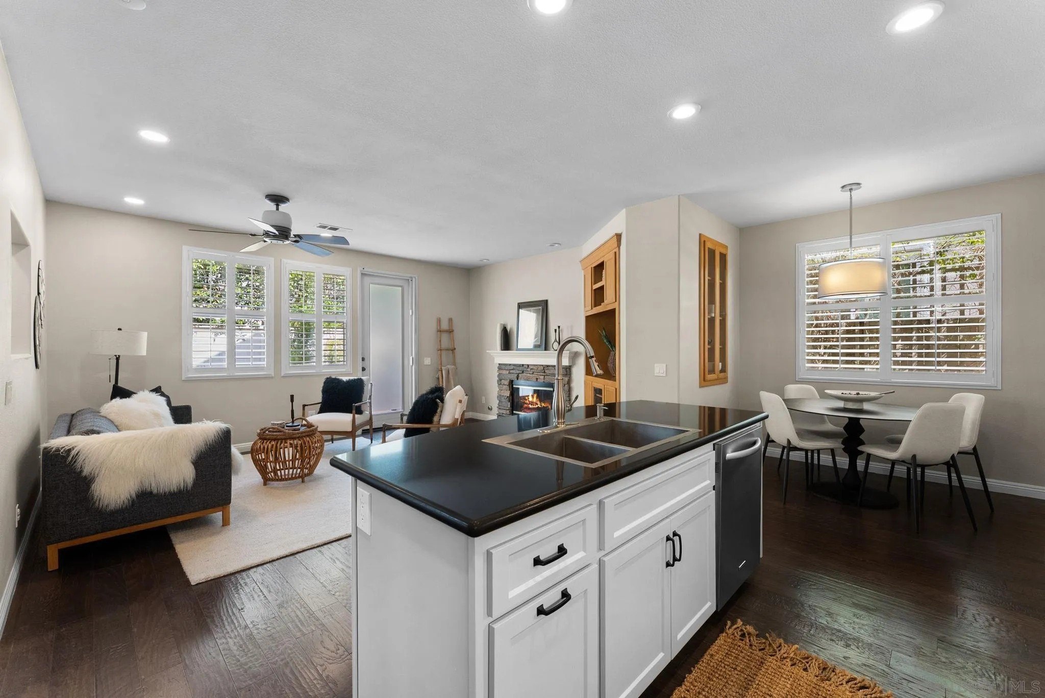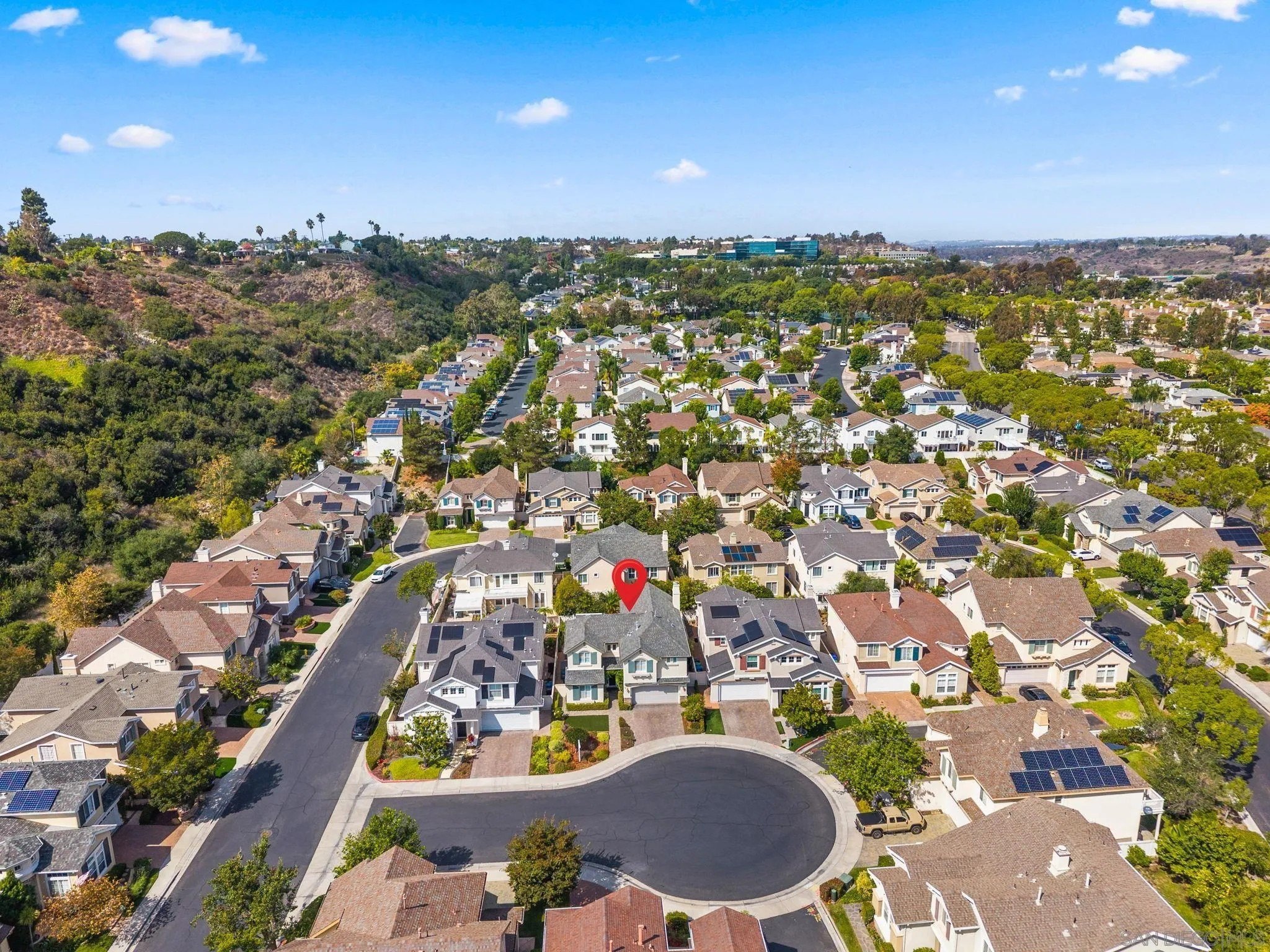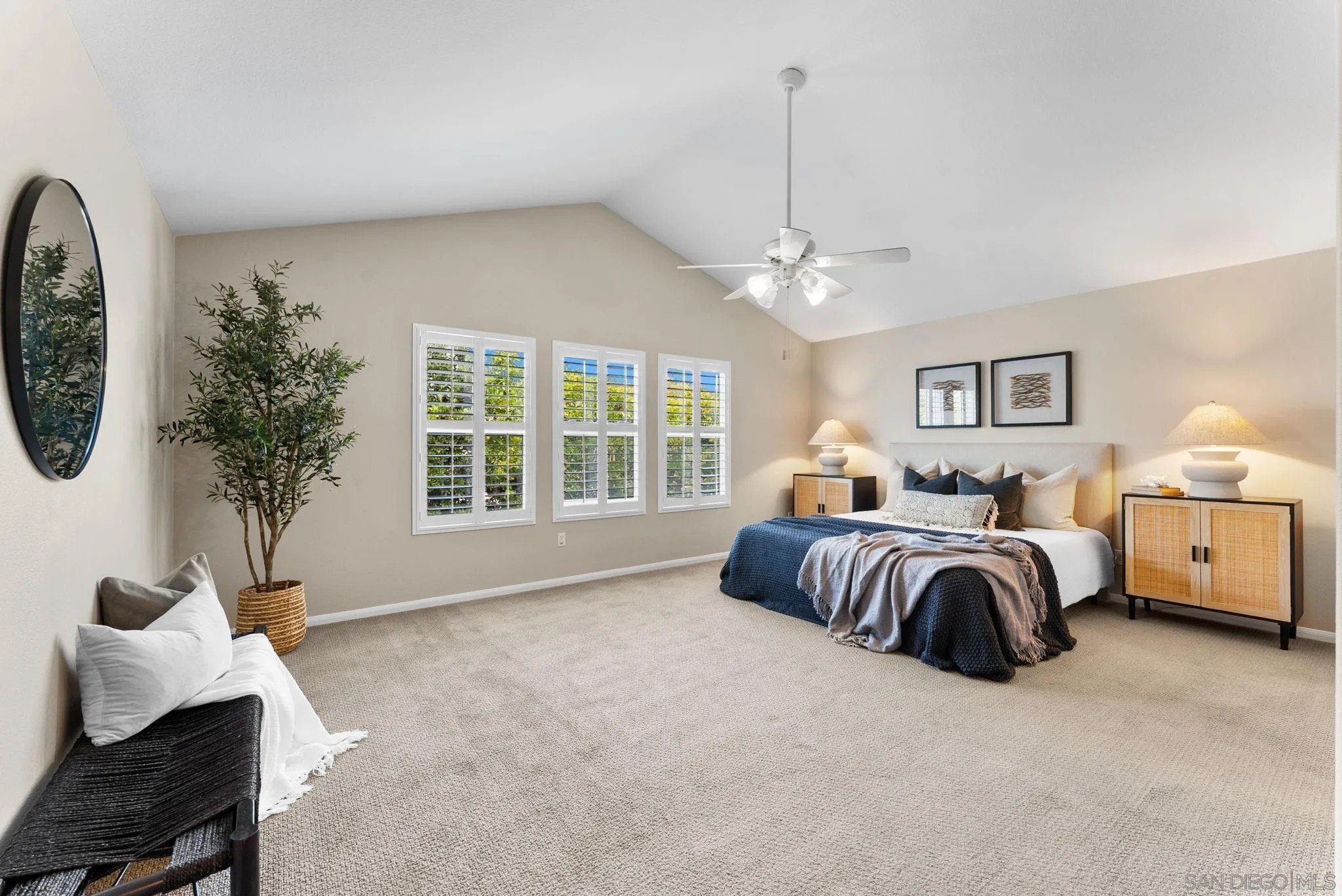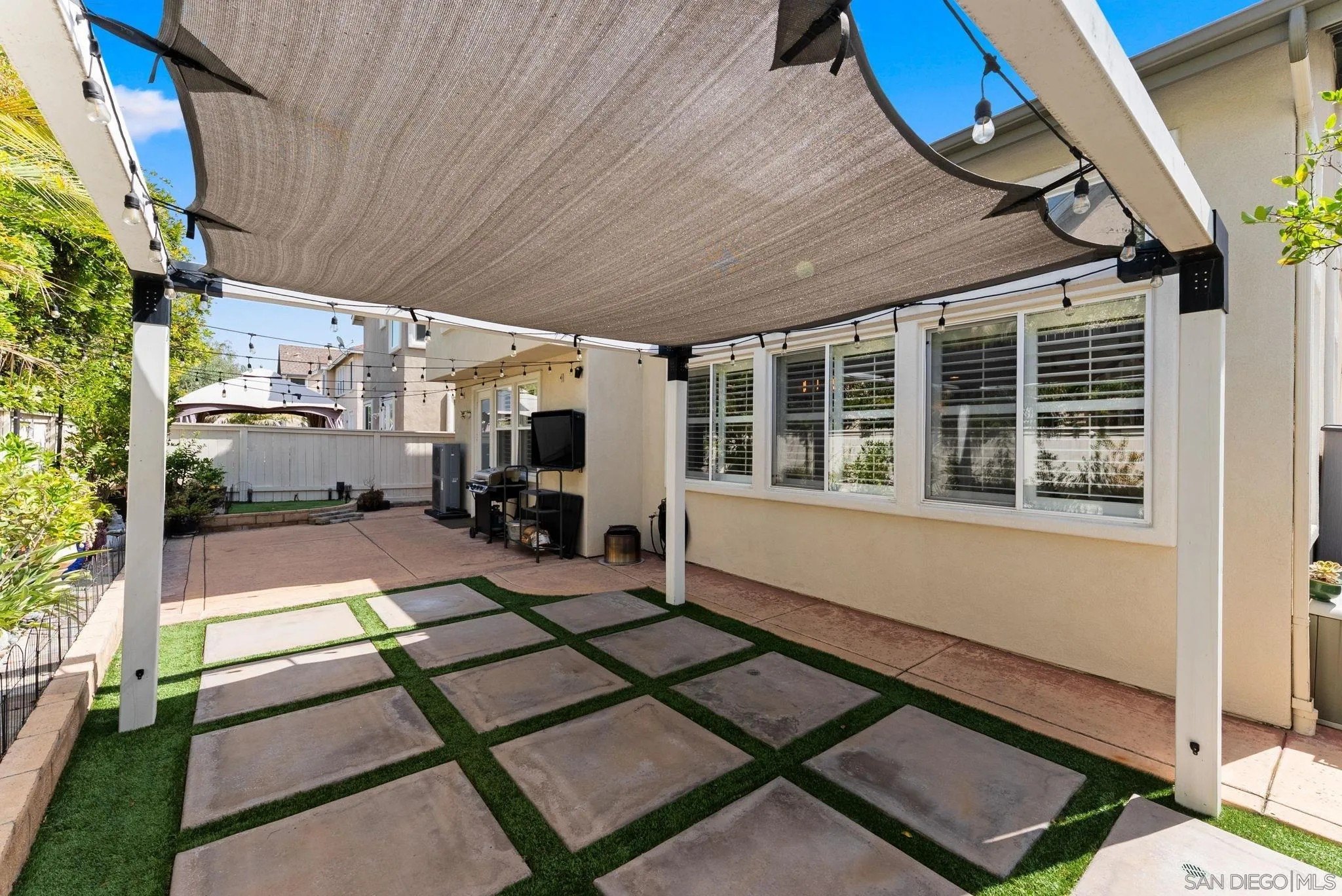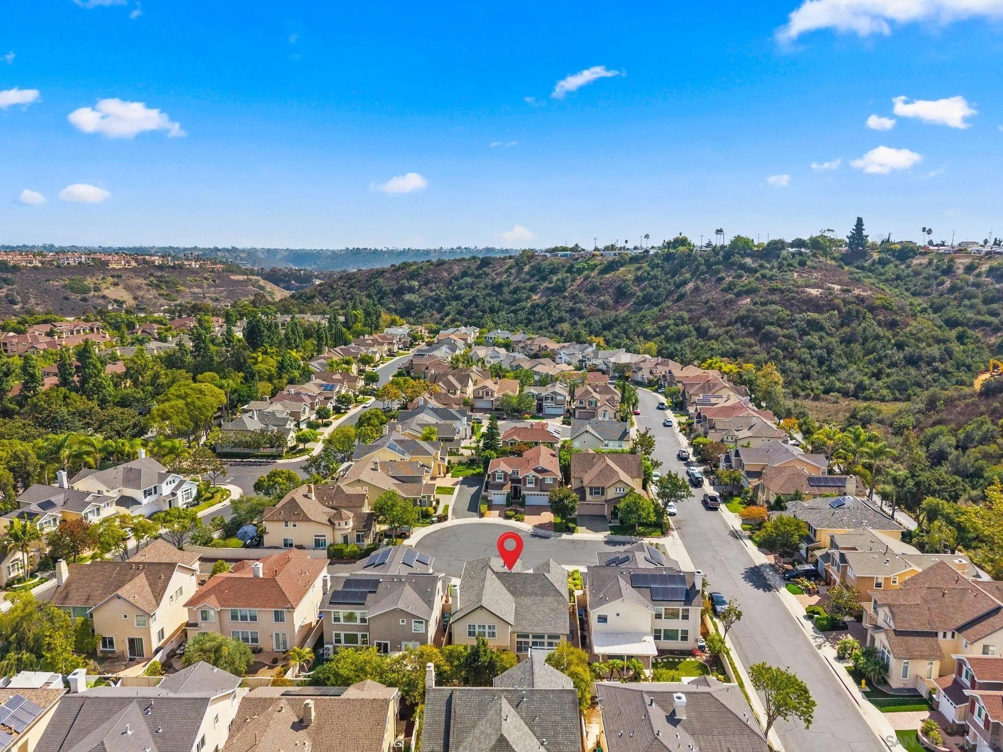 Welcome to 2756 W Canyon Avenue, a freshly painted and beautifully updated 4-bedroom plus loft (optional 5th bedroom), 3-bath home tucked within the sought-after Westport enclave of Stonecrest Village in Serra Mesa. Built in 2000 and set on a quiet cul-de-sac, this 2,418 sq ft residence blends modern upgrades with thoughtful design and a hidden surprise you'll love discovering. The light-filled main level features a contemporary kitchen with newer stainless steel appliances that flows effortlessly into the dining and living areas, complemented by hardwood flooring, plantation shutters, LED lighting, and a whole-house fan. A desirable downstairs bedroom and full bath provide flexibility for guests or multigenerational living. Upstairs offers an expansive primary suite, two additional bedrooms, a spacious loft or optional 5th bedroom, and a convenient laundry room. Every closet, including the primary walk-in, has been customized with premium Container Store Elfa Systems for smart organization. Outside, enjoy a water-efficient backyard with drip irrigation, ambient lighting, a stylish Toja Grid pergola, mounted outdoor TV, and generous patio for entertaining. Residents of Stonecrest Village enjoy resort-style amenities-clubhouse, pools, tennis courts, fitness center, and scenic trails-just minutes from Mission Valley, downtown San Diego, and major freeways.
