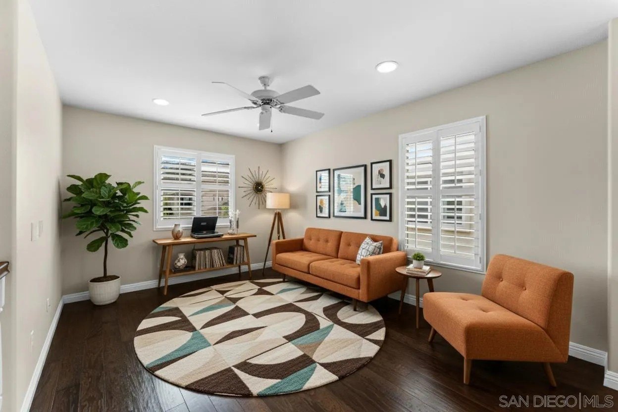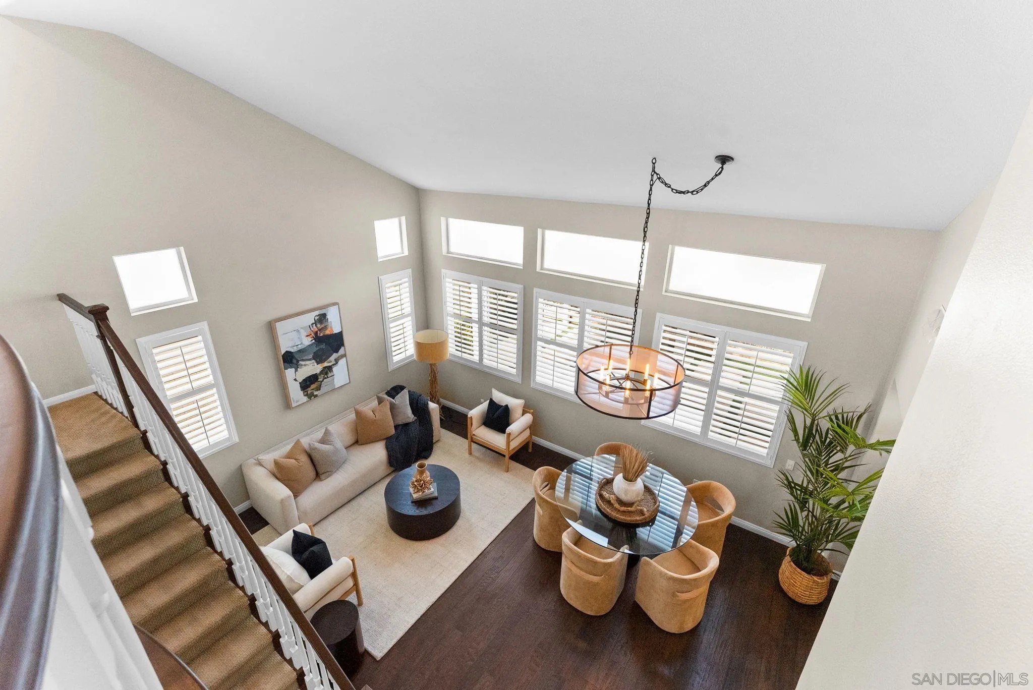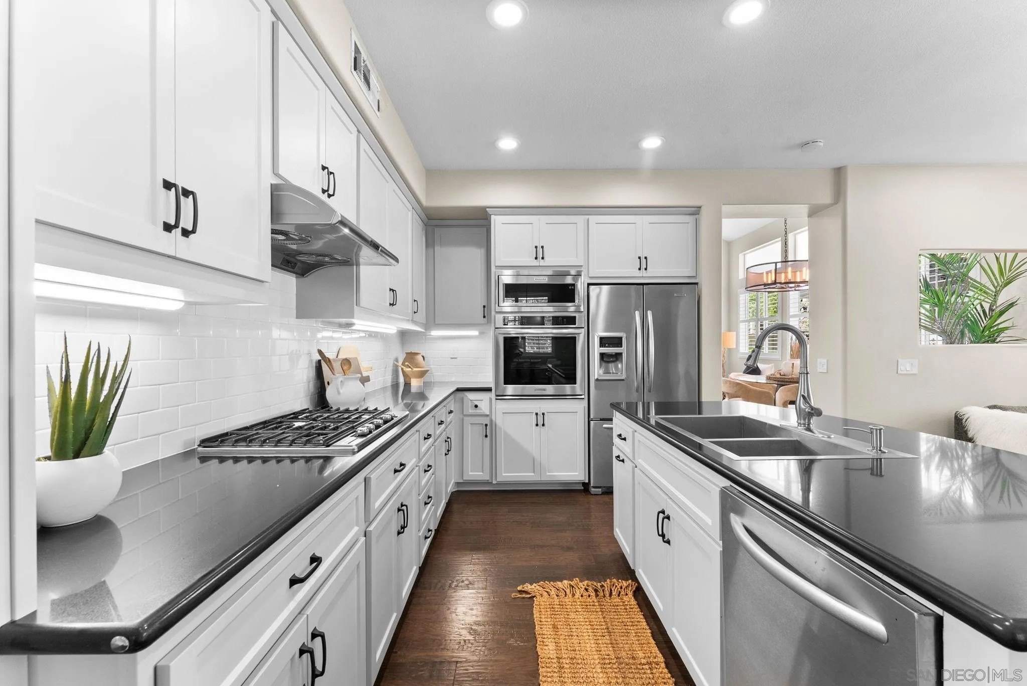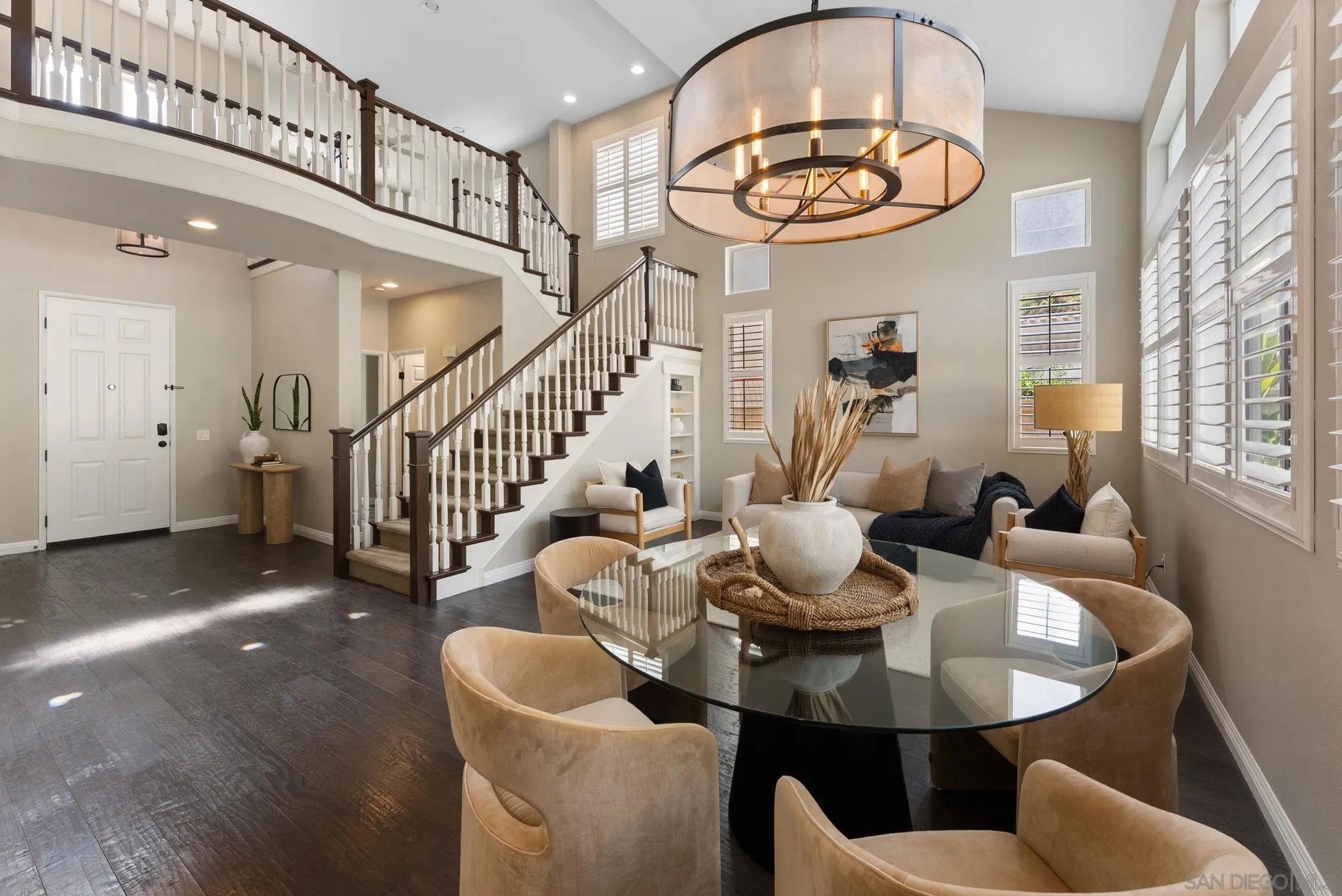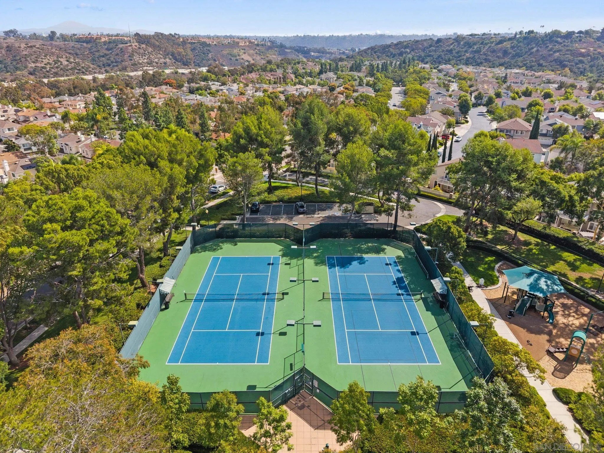 Welcome to 2756 W Canyon Avenue, a freshly painted and beautifully updated 4-bedroom plus loft (optional 5th bedroom), 3-bath home tucked within the sought-after Westport enclave of Stonecrest Village in Serra Mesa. Built in 2000 and set on a quiet cul-de-sac, this 2,418 sq ft residence blends modern upgrades with thoughtful design and a hidden surprise you'll love discovering. The light-filled main level features a contemporary kitchen with newer stainless steel appliances that flows effortlessly into the dining and living areas, complemented by hardwood flooring, plantation shutters, LED lighting, and a whole-house fan. A desirable downstairs bedroom and full bath provide flexibility for guests or multigenerational living. Upstairs offers an expansive primary suite, two additional bedrooms, a spacious loft or optional 5th bedroom, and a convenient laundry room. Every closet, including the primary walk-in, has been customized with premium Container Store Elfa Systems for smart organization. Outside, enjoy a water-efficient backyard with drip irrigation, ambient lighting, a stylish Toja Grid pergola, mounted outdoor TV, and generous patio for entertaining. Residents of Stonecrest Village enjoy resort-style amenities-clubhouse, pools, tennis courts, fitness center, and scenic trails-just minutes from Mission Valley, downtown San Diego, and major freeways.