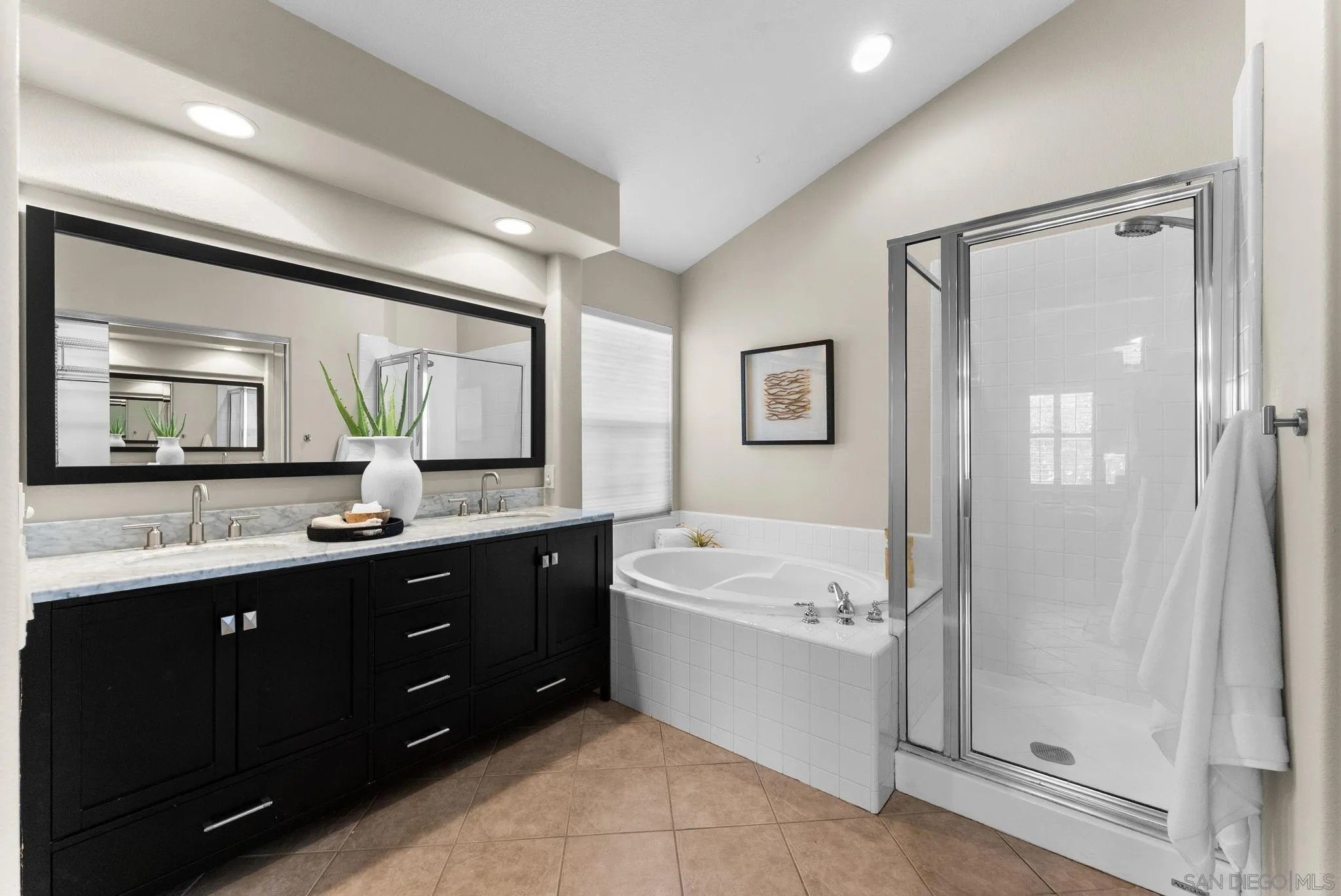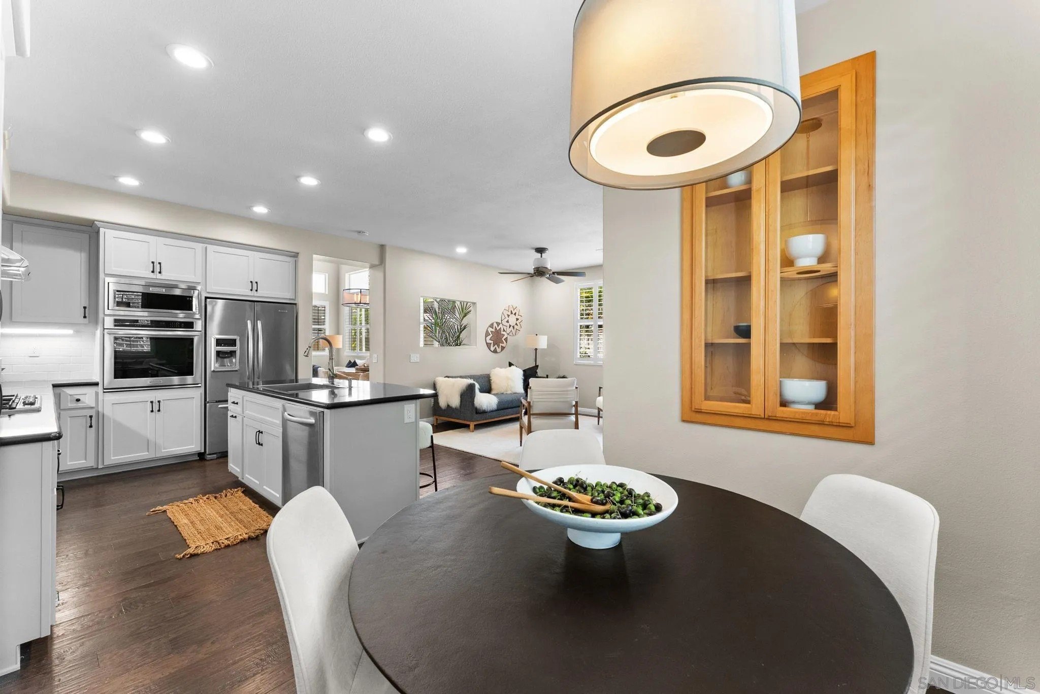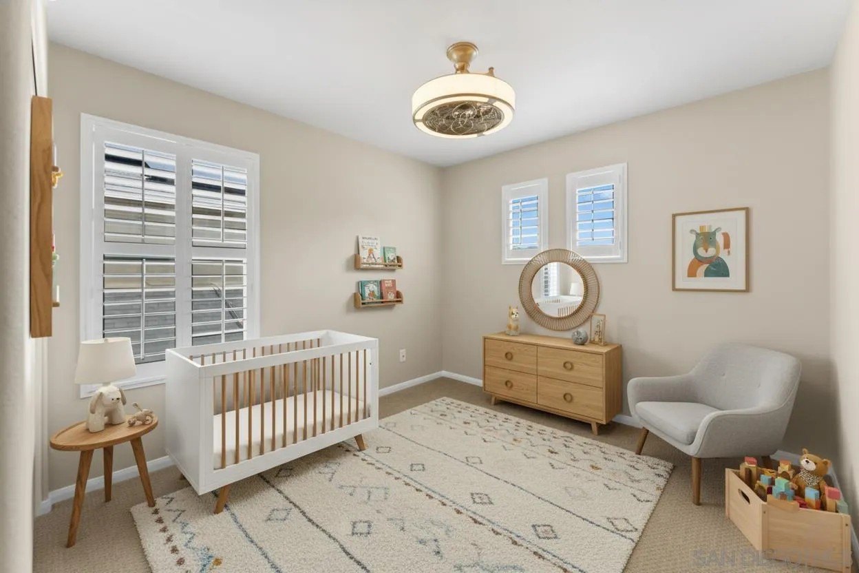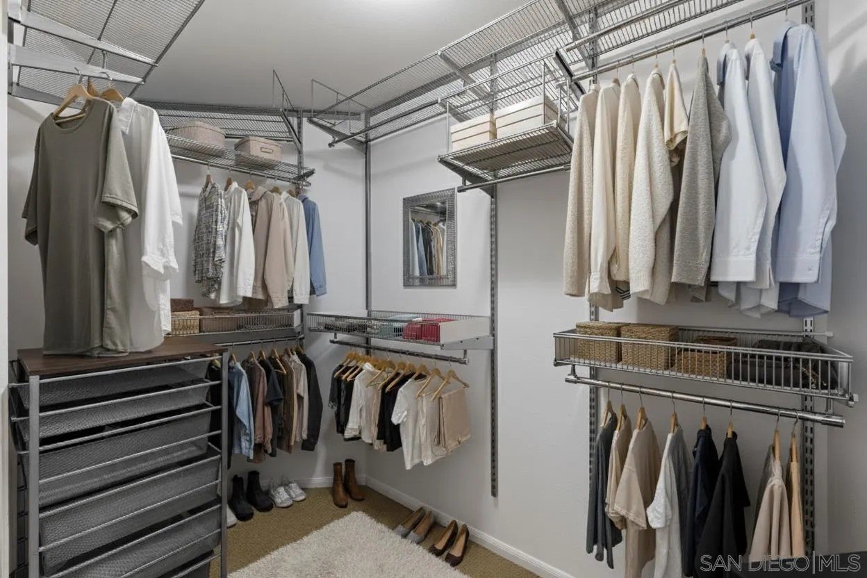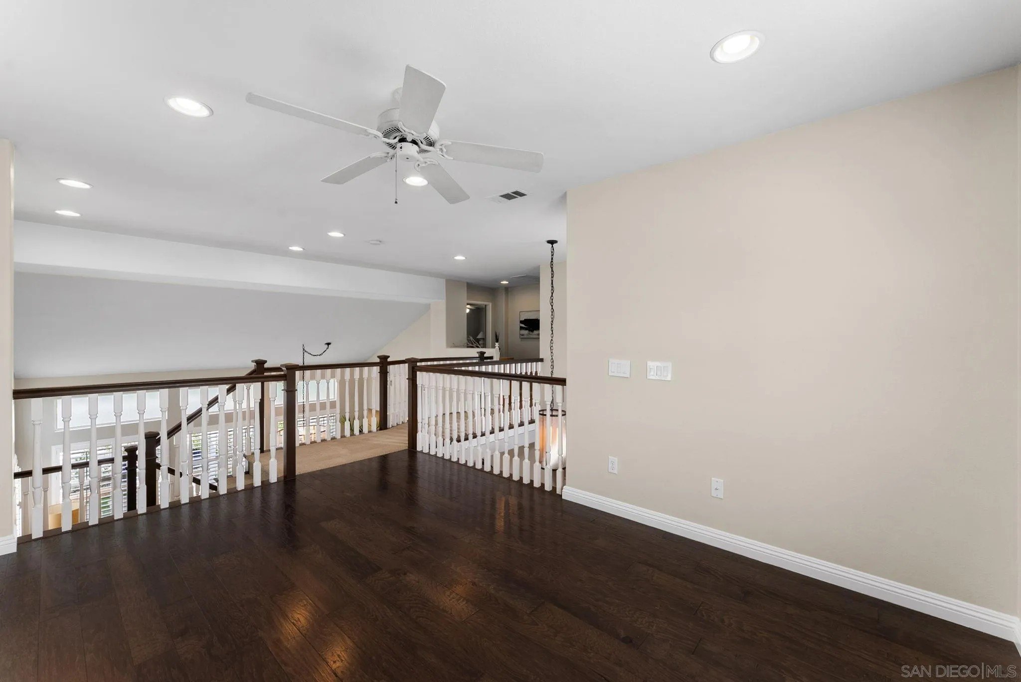 Welcome to 2756 W Canyon Avenue, a freshly painted and beautifully updated 4-bedroom plus loft (optional 5th bedroom), 3-bath home tucked within the sought-after Westport enclave of Stonecrest Village in Serra Mesa. Built in 2000 and set on a quiet cul-de-sac, this 2,418 sq ft residence blends modern upgrades with thoughtful design and a hidden surprise you'll love discovering. The light-filled main level features a contemporary kitchen with newer stainless steel appliances that flows effortlessly into the dining and living areas, complemented by hardwood flooring, plantation shutters, LED lighting, and a whole-house fan. A desirable downstairs bedroom and full bath provide flexibility for guests or multigenerational living. Upstairs offers an expansive primary suite, two additional bedrooms, a spacious loft or optional 5th bedroom, and a convenient laundry room. Every closet, including the primary walk-in, has been customized with premium Container Store Elfa Systems for smart organization. Outside, enjoy a water-efficient backyard with drip irrigation, ambient lighting, a stylish Toja Grid pergola, mounted outdoor TV, and generous patio for entertaining. Residents of Stonecrest Village enjoy resort-style amenities-clubhouse, pools, tennis courts, fitness center, and scenic trails-just minutes from Mission Valley, downtown San Diego, and major freeways.