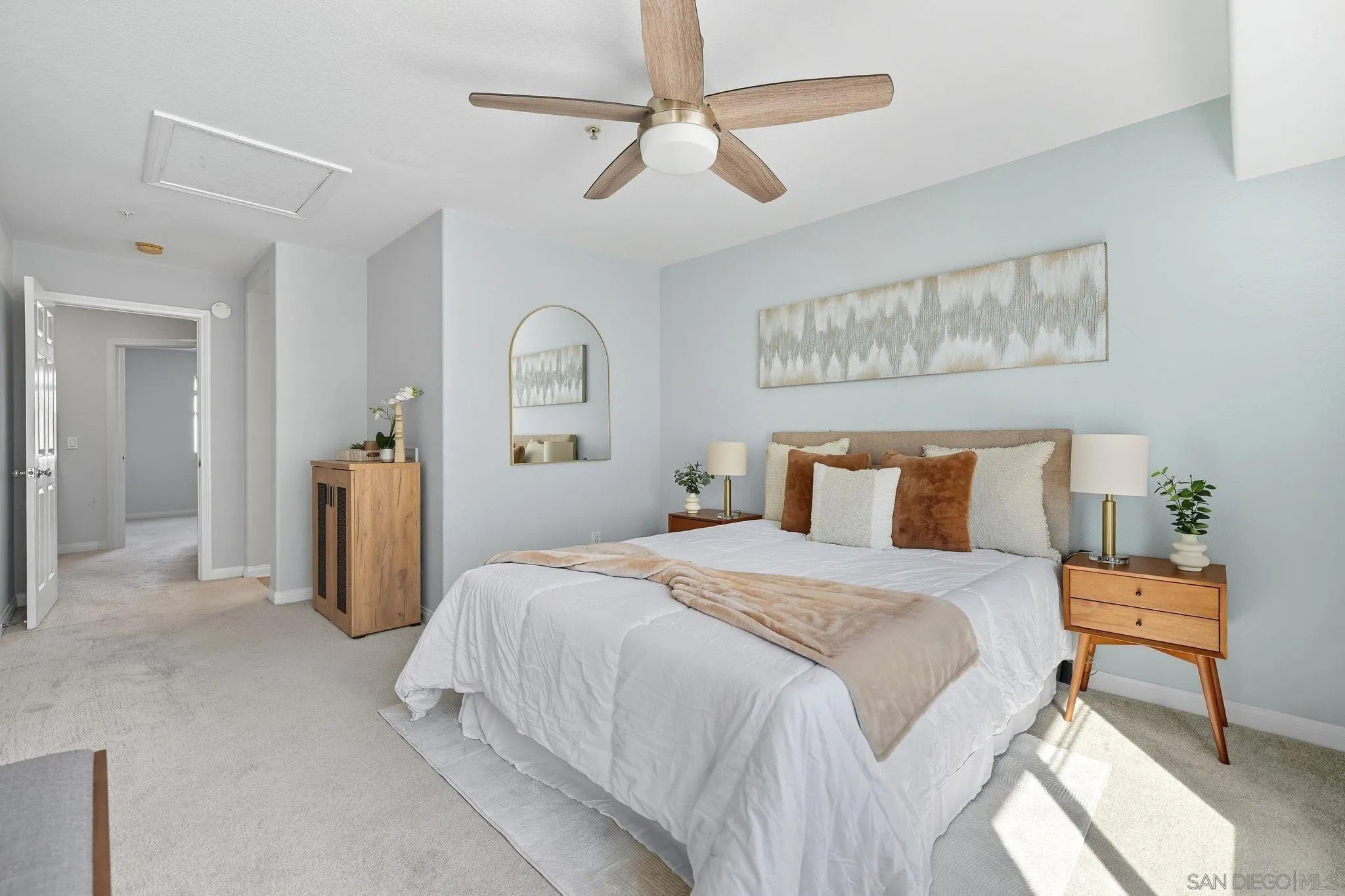 Discover modern living and ultimate convenience in this exceptional 4-bedroom, 3.5-bathroom Kearny Mesa townhome. The inviting living room, complete with a built-in entertainment center, provides a perfect hub for relaxation and gatherings. Its versatile three-story layout features three bedrooms with private en-suite baths, including a secluded first-floor suite ideal for guests or a home office.