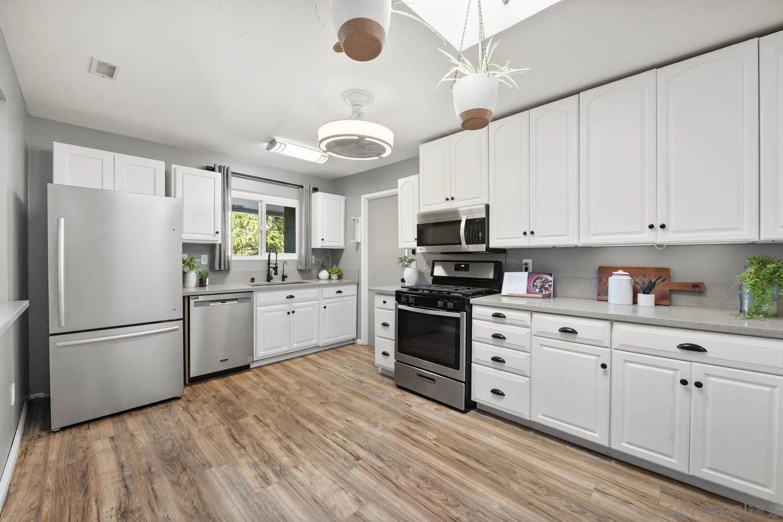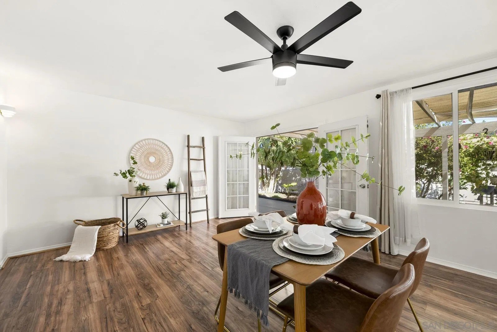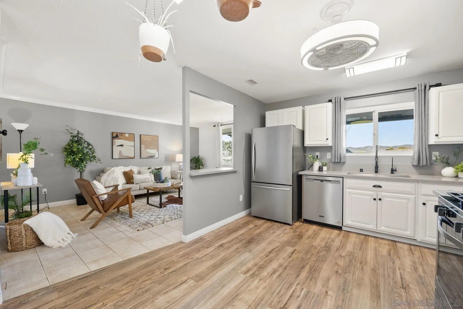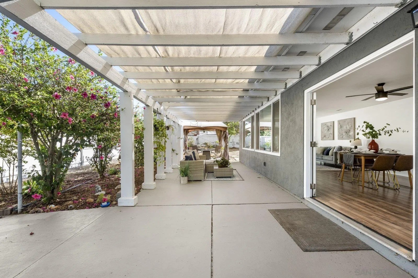 Discover Peace, Space & Possibility in Santee. Welcome to your sanctuary in the heart of Santee-a beautifully updated 4-bedroom, 2-bath home offering both tranquility and room to thrive. From the moment you arrive, you'll be greeted by picturesque mountain views and a quiet, friendly street just 0.3 miles from Pride Elementary. Inside, enjoy modern comfort with a new roof, newer HVAC, sleek vinyl plank flooring throughout, and tastefully upgraded bathrooms and kitchen. The layout is ideal for entertaining, creating effortless flow between living, dining, family room, and outdoor spaces. Step outside into your private retreat, where mature fruit trees, colorful blooms, and a new fence create the perfect backdrop for relaxation-or your next big idea. With ample space for an RV, boat, pool, or even an ADU, the potential here is endless. Whether you're gathering under the stars or sipping morning coffee in peace, this property offers room to breathe and space to dream-all just minutes from freeways, shopping, and the convenience of Santee living. Tranquility, upgrades, views, and endless potential-this is the home you've been waiting for.