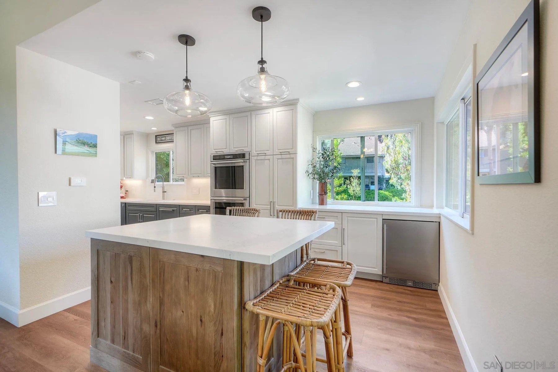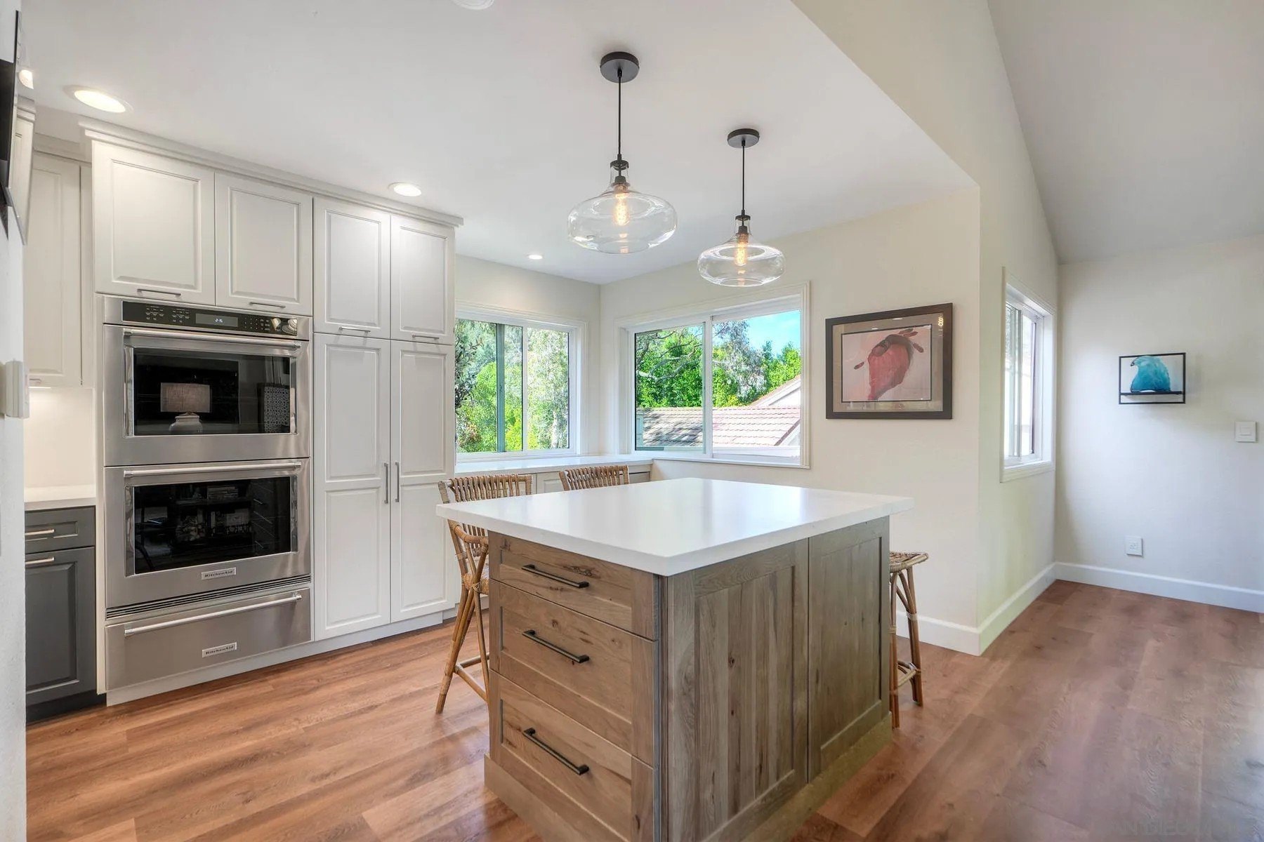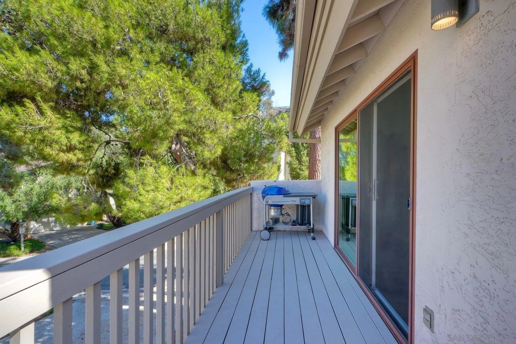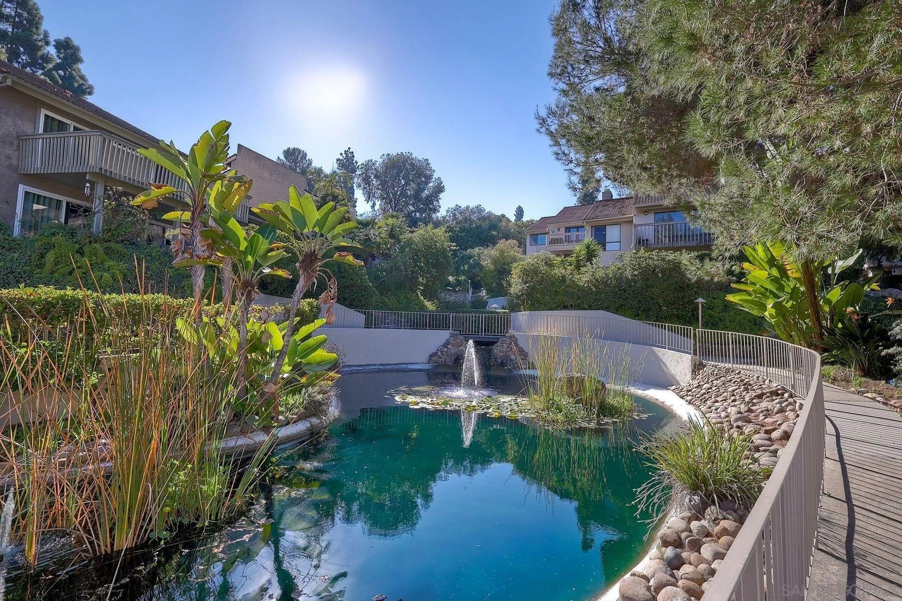 Fully Renovated Townhome in the Highly Desirable Kensington Park Villas Welcome to Kensington Park Villas, a serene, resort-style community tucked away in the heart of San Diego. This beautifully renovated 3-bedroom, 3-bathroom home spans approximately 1,875 sq. ft. and is one of the largest floor plans in the community. Thoughtfully upgraded from top to bottom, the home features a brand-new A/C system (installed in 2023), updated electrical throughout, a new water heater (2024), modernized bathrooms, and custom Elfa-built closets with interchangeable organizers. Perfectly positioned with no neighbors directly behind and scenic views of lush trees and a tranquil pond, this home combines privacy, style, and comfort in one stunning package. Step inside to a bright, open living space featuring tall, vaulted ceilings, modern finishes, and a newer fireplace that creates an inviting atmosphere. The gourmet kitchen is designed for both everyday living and entertaining, showcasing white and navy cabinetry, quartz countertops, sleek stainless-steel appliances, an induction cooktop, dual ovens, a warming drawer, and ample cabinet space with soft-closing features-including storage under the island. This home offers dual primary suites, one conveniently located on the lower level and one on the upper level. The downstairs primary suite features real bamboo wood floors, direct access to the private patio, and a luxurious ensuite bathroom with dual vanity sinks and a large walk-in shower. See Supplement =>