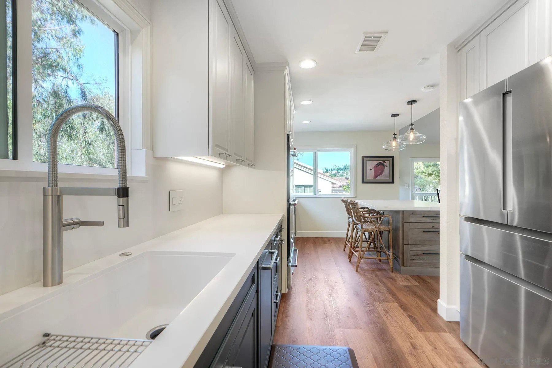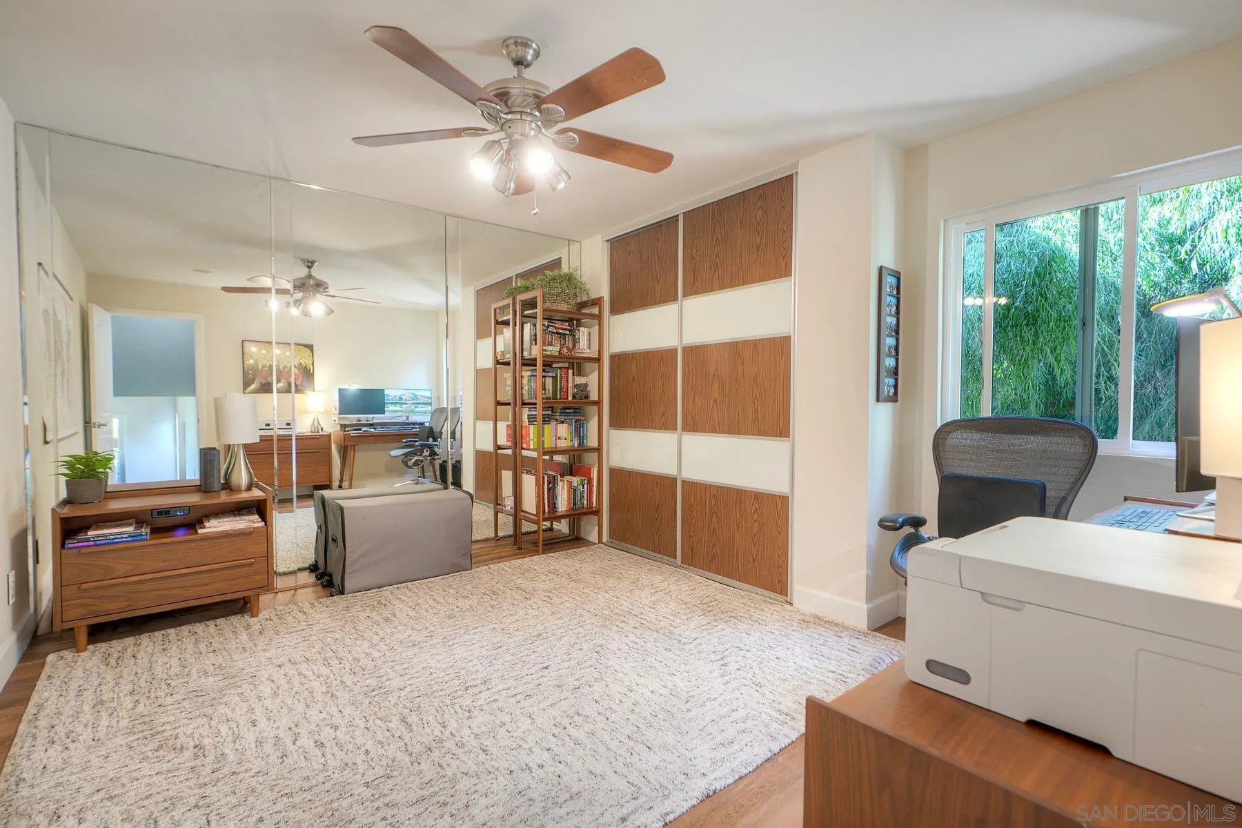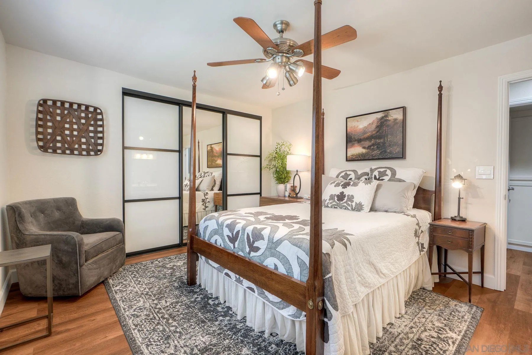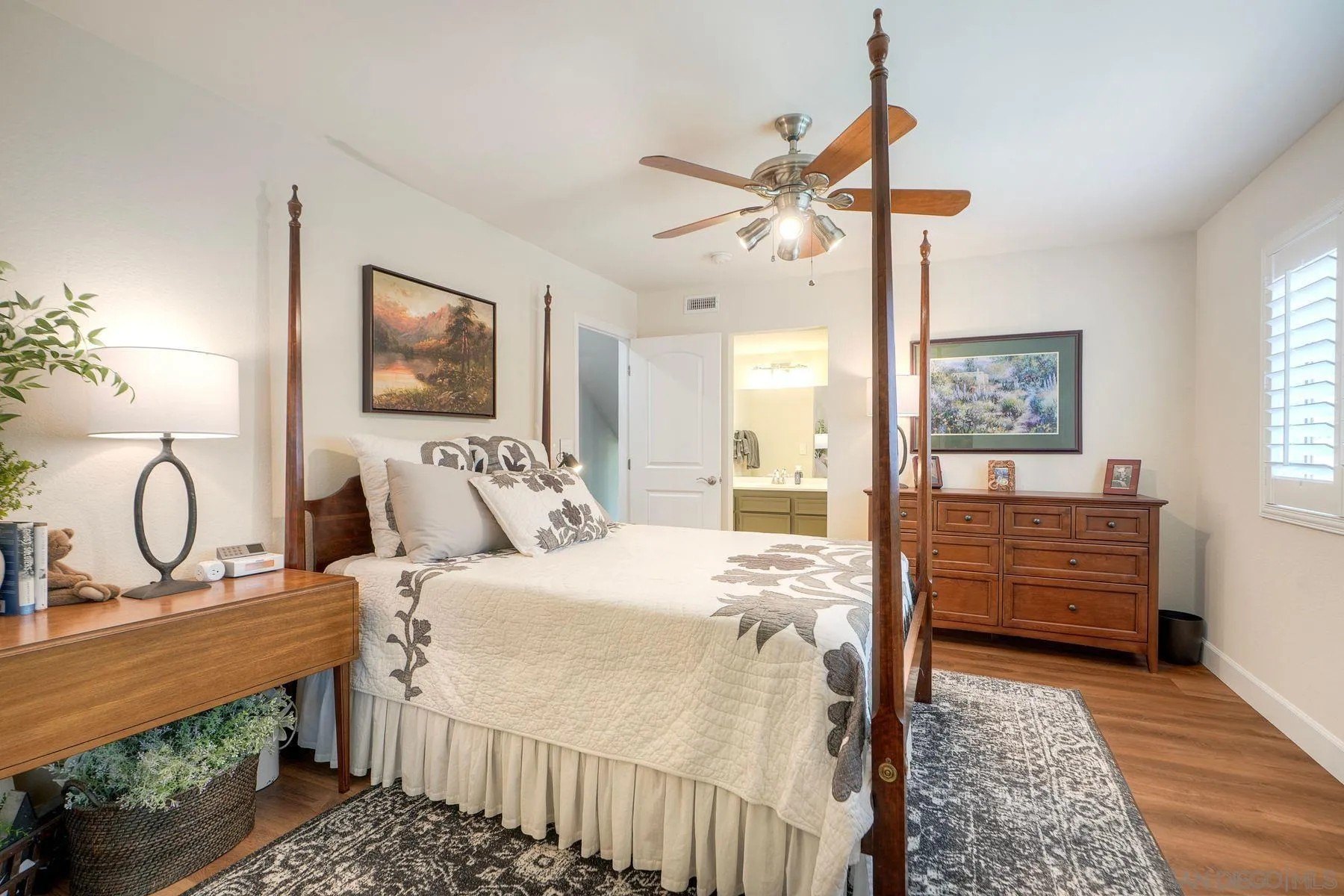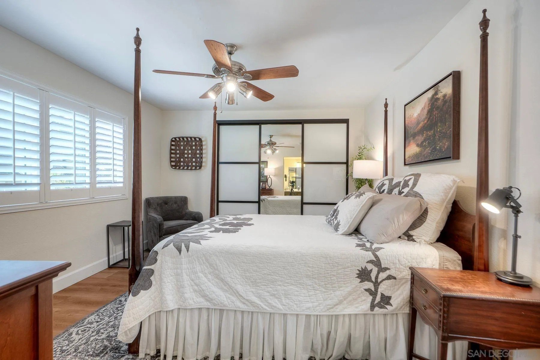 Fully Renovated Townhome in the Highly Desirable Kensington Park Villas Welcome to Kensington Park Villas, a serene, resort-style community tucked away in the heart of San Diego. This beautifully renovated 3-bedroom, 3-bathroom home spans approximately 1,875 sq. ft. and is one of the largest floor plans in the community. Thoughtfully upgraded from top to bottom, the home features a brand-new A/C system (installed in 2023), updated electrical throughout, a new water heater (2024), modernized bathrooms, and custom Elfa-built closets with interchangeable organizers. Perfectly positioned with no neighbors directly behind and scenic views of lush trees and a tranquil pond, this home combines privacy, style, and comfort in one stunning package. Step inside to a bright, open living space featuring tall, vaulted ceilings, modern finishes, and a newer fireplace that creates an inviting atmosphere. The gourmet kitchen is designed for both everyday living and entertaining, showcasing white and navy cabinetry, quartz countertops, sleek stainless-steel appliances, an induction cooktop, dual ovens, a warming drawer, and ample cabinet space with soft-closing features-including storage under the island. This home offers dual primary suites, one conveniently located on the lower level and one on the upper level. The downstairs primary suite features real bamboo wood floors, direct access to the private patio, and a luxurious ensuite bathroom with dual vanity sinks and a large walk-in shower. See Supplement =>