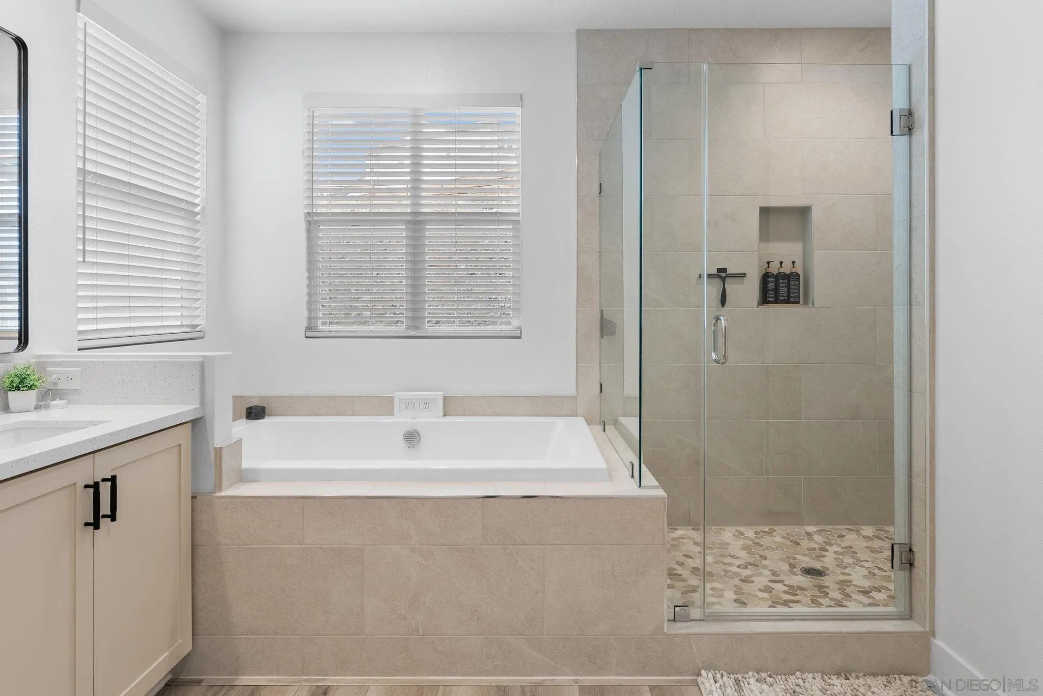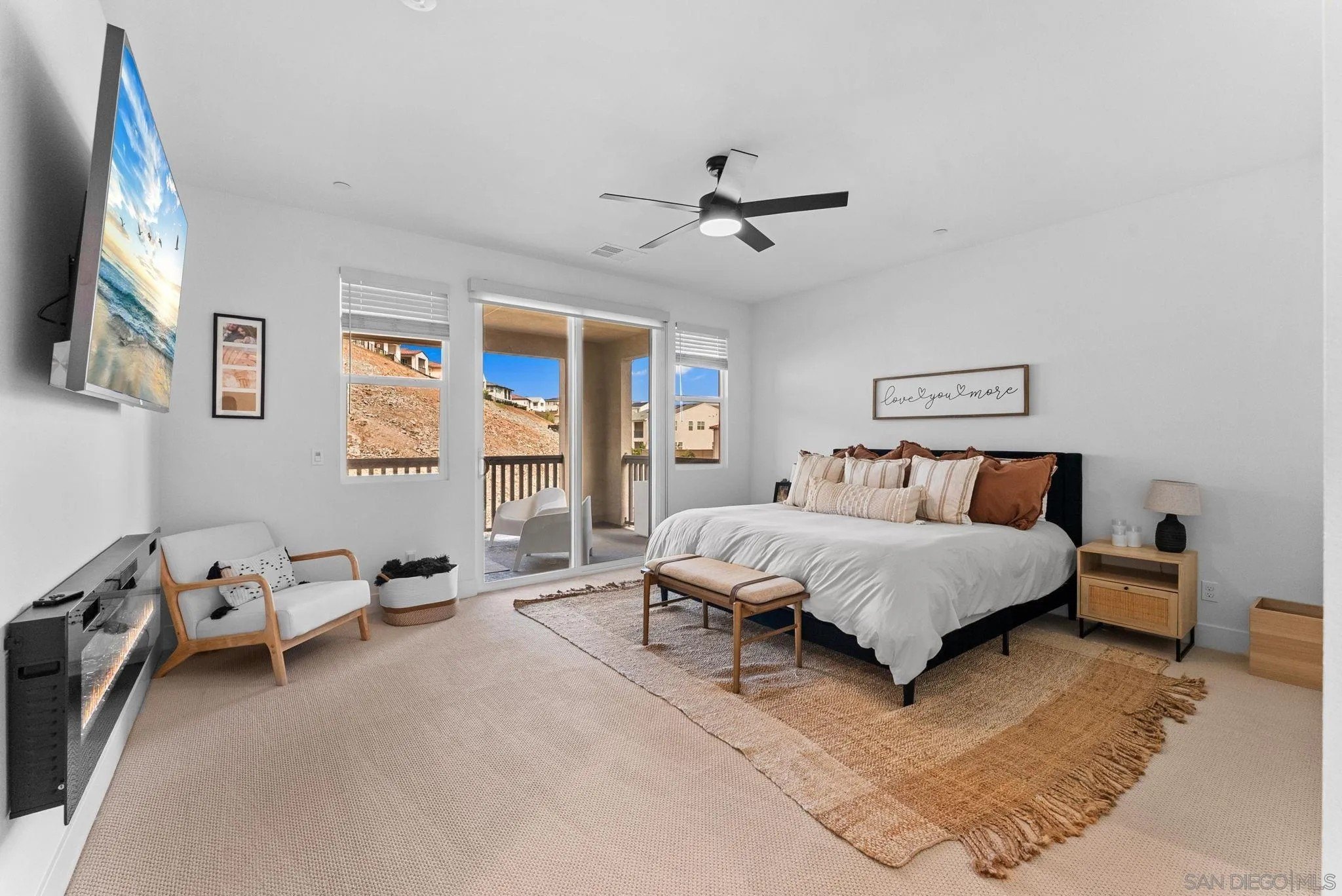 Discover modern sophistication and timeless design in this stunning 4-bedroom, 3.5-bath Shea home nestled in the highly sought-after Savona community of Cota Vera. Thoughtfully crafted for both entertaining and everyday living, this residence seamlessly blends contemporary style with exceptional functionality. Step inside to an open-concept floor plan filled with natural light from expansive windows that frame picturesque views at every turn. The gourmet kitchen is a chef's dream-featuring extensive upgraded cabinetry, elegant quartz countertops, and walk-in pantry. Every detail throughout the home has been carefully curated, from the wide-plank luxury vinyl plank floors to the custom closets in three of the four bedrooms. The first-floor bedroom suite provides convenience and privacy for guests, while the dedicated office with custom sliding doors creates the ultimate work-from-home environment. With over $180,000 in premium upgrades, this home leaves nothing to be desired. Highlights include 12 fully owned solar panels, a whole-home water filtration system, a built in BBQ with a Traeger, and a Tesla charging station. Step outside to the covered patio, complete with a cozy gas fireplace and serene mountain views-perfect for quiet evenings or entertaining guests under the stars. This is more than a home-it's a lifestyle of elegance, comfort, and sustainability in one of San Diego's most desirable communities.