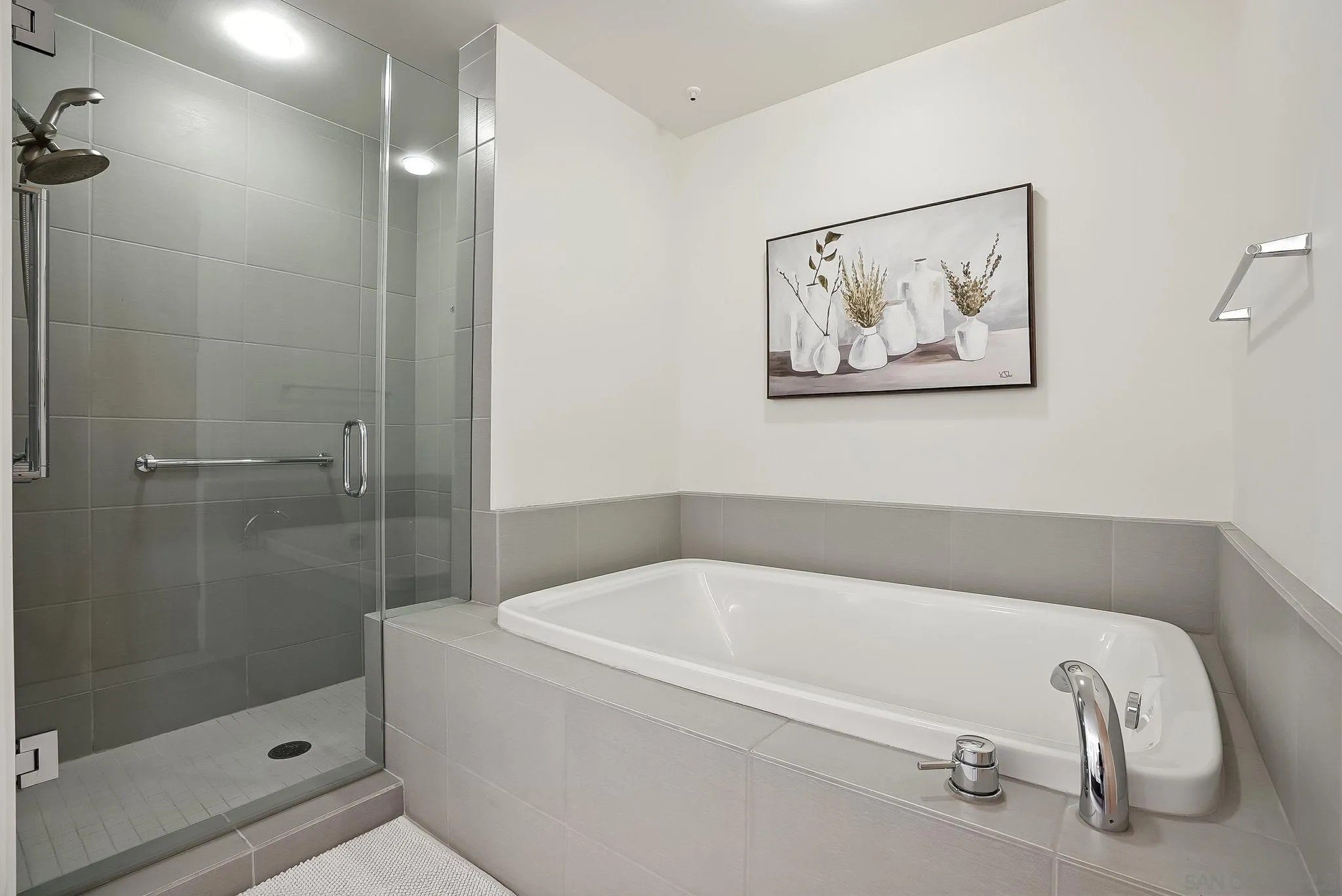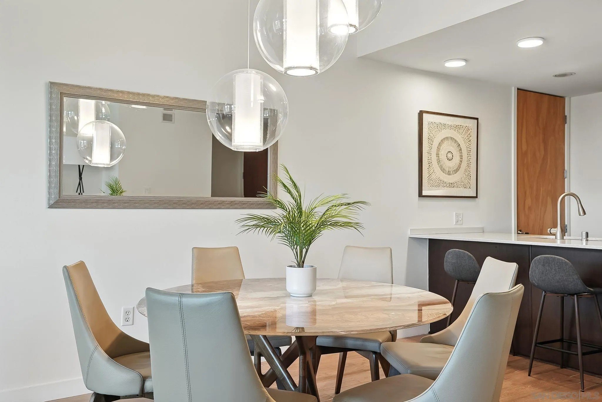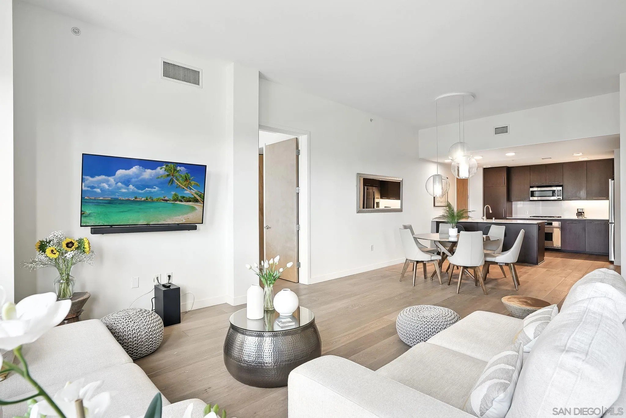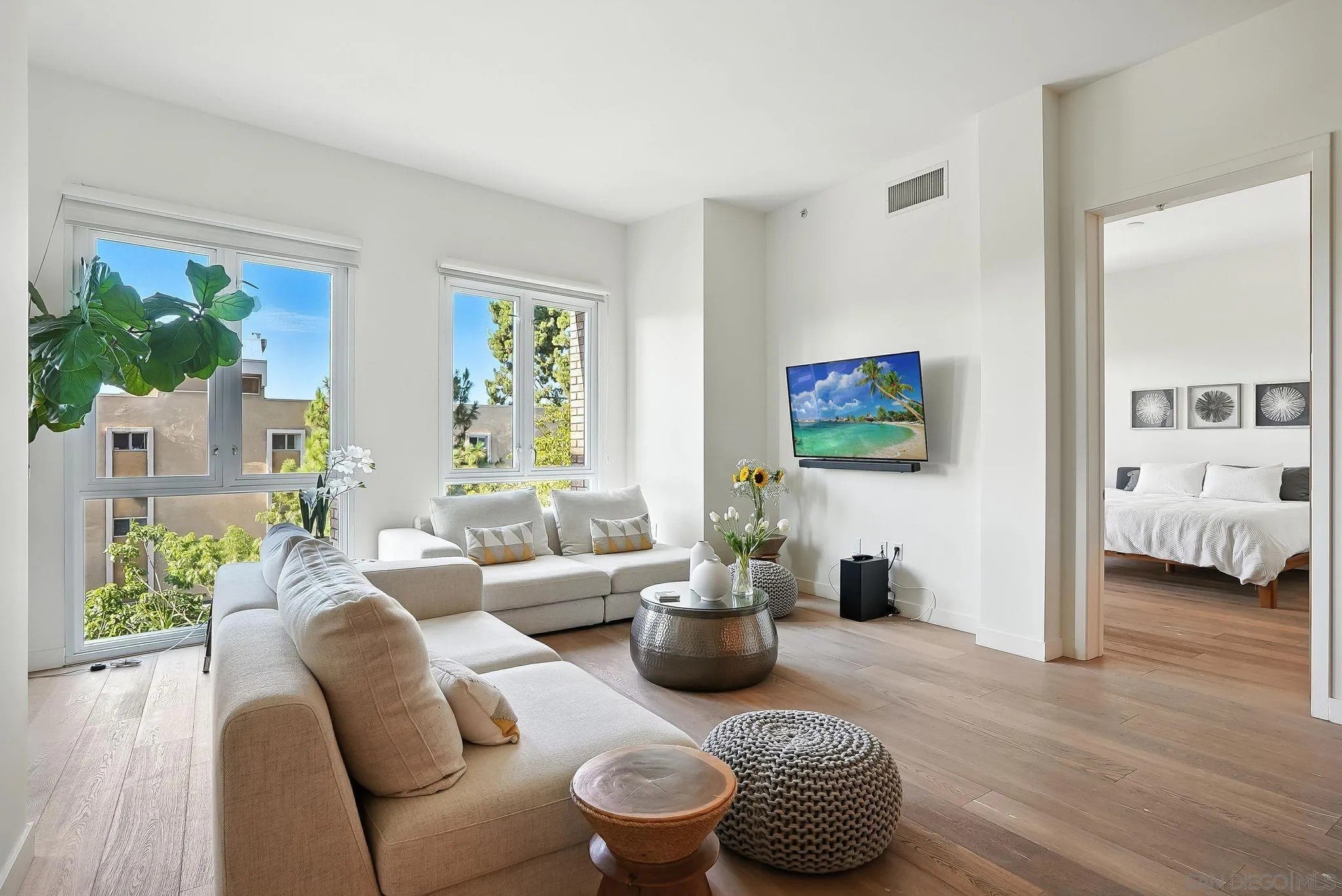 Step into elevated urban living with this stunning 2 bed, 2 bath condo in the prestigious 1Mission community-where timeless sophistication meets everyday comfort! The open-concept floor plan feels airy and expansive with soaring ceilings and sleek neutral-toned plank flooring throughout. At the heart of the home, the chef's kitchen shines with a generous island for bar seating, modern cabinetry, and luxe finishes; perfect for both casual mornings and lively evenings of entertaining. Smart design meets convenience with a laundry room that doubles as a walk-in pantry, giving you functionality without sacrificing style. Unwind on not one, but two private balconies, enjoy peaceful moments from the living room or retreat to the spacious primary suite, where you'll find a spa-inspired bathroom with dual vanities, walk-in closet, and tranquil design details. And the best part? Step outside your door and you're in the heart of Mission Hills, surrounded by award-winning restaurants, boutique shops, and charming cafes. Opportunities like this rarely come up in one of San Diego's most coveted addresses. Don't just find a home - find your lifestyle at 1Mission.