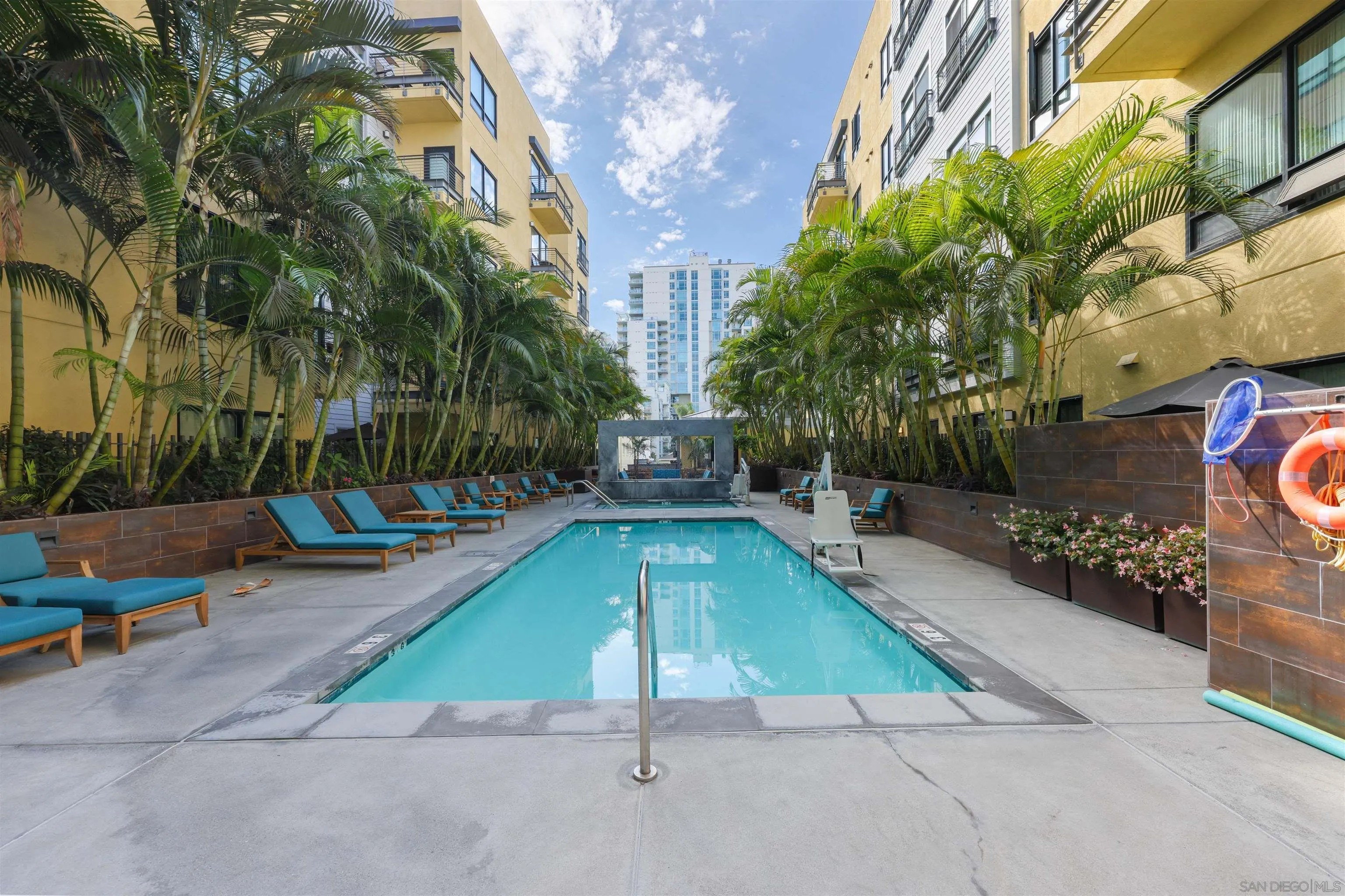 Downtown living at its BEST! This trendy loft-style condo at Aloft Cortez Hill has been transformed with a second bedroom, giving you the perfect mix of style and flexibility. Think soaring ceilings, dramatic windows, and a layout that feels both fresh and functional. The sleek kitchen opens to a bright living area that's ready for dinner parties, movie nights, or just kicking back. Enjoy the convenience of ground-level access - no waiting for elevators, just step right into your urban retreat. Aloft brings the vibe with a resort-style pool, spa, fitness center, fire pit, and stylish lounge areas. Live at the center of it all - trendy shops, amazing restaurants, Petco Park thrills, and the vibrant energy of Little Italy are all waiting just around the corner.