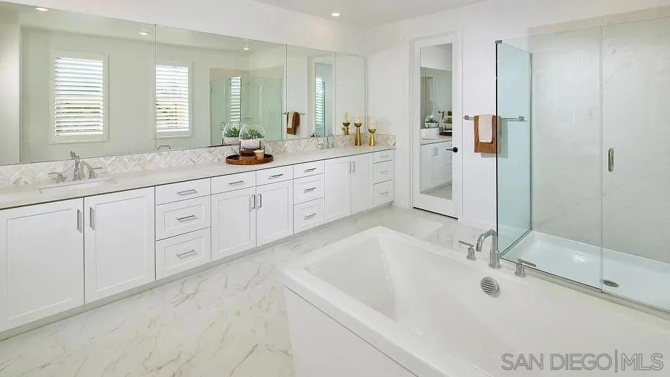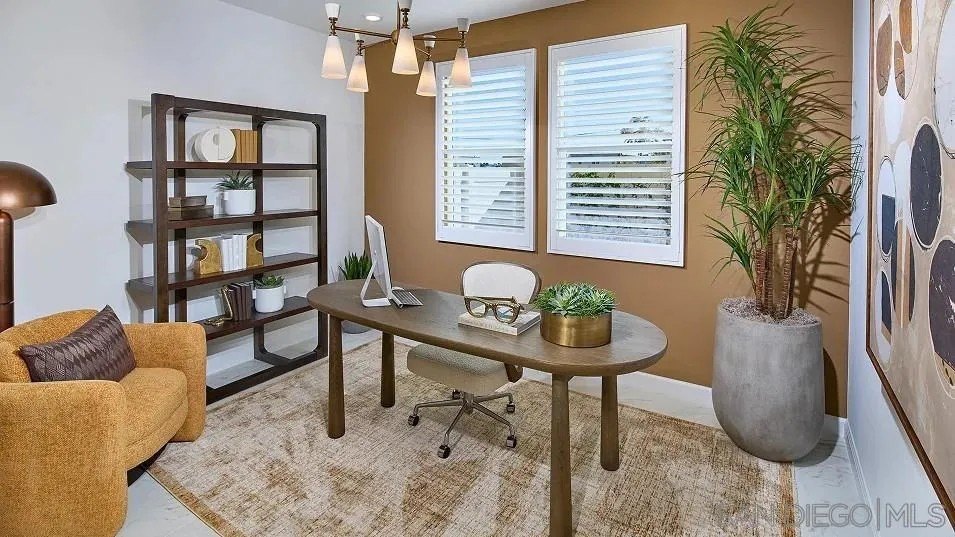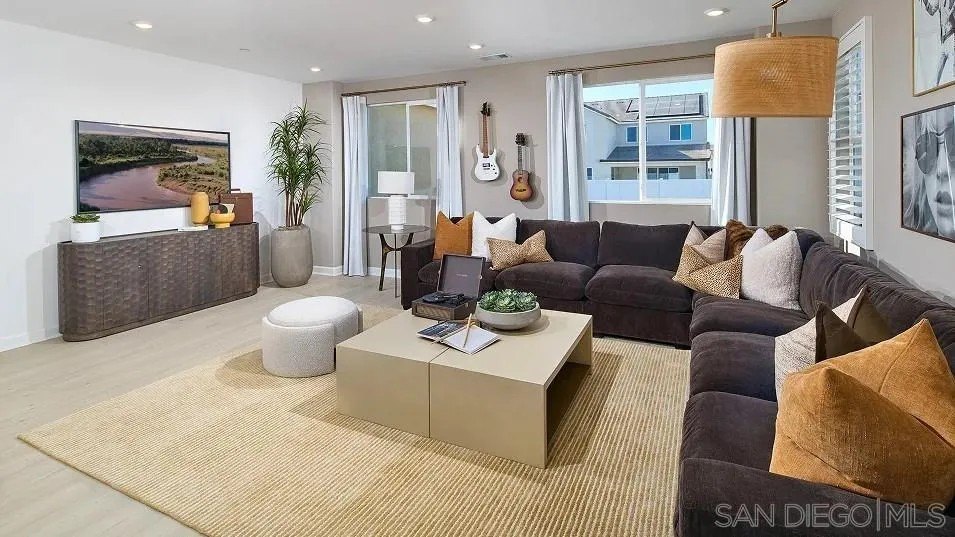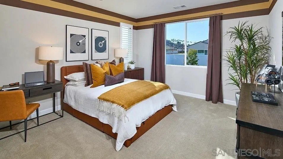 This new two-story home boasts a spacious and modern design with a secluded office and as well as the luxurious owner's suite nestled into a private rear corner of the first floor. An open-concept layout combines the kitchen, living and dining areas to maximize interior space. On the second floor, three secondary bedrooms surround a versatile bonus room. With designer white quartz countertops and upgraded designer kitchen backsplash in kitchen, Samsung stainless steel appliances including the refrigerator and washer and dryer come with your home. The cabinets throughout home are painted battleship grey and have soft close. There is also a spacious 3 car garage and driveway. The community has wide streets and sidewalks and ample street parking. Walk to: parks, pools, recreation center with gym, lounge, and conference room, extensive trail system, lawns, viewpoint park, hilltop Mahogany is a collection of new and spacious two-story homes now selling at the North River Farms masterplan in Oceanside, CA. Select plans will feature Lennar's signature Next Gen(R) suite, complete with a separate entrance, living space, bedroom, bathroom, kitchenette and laundry room. An extensive trail system weaves throughout the community, and residents will enjoy access to onsite amenities, including picnic areas, swimming pools, a fitness center, pickleball courts and much more.