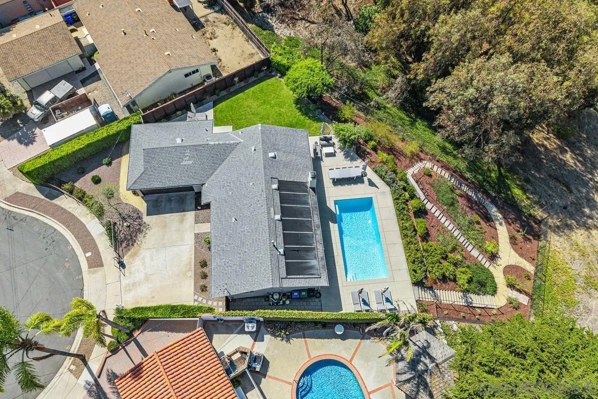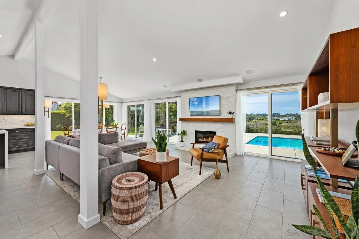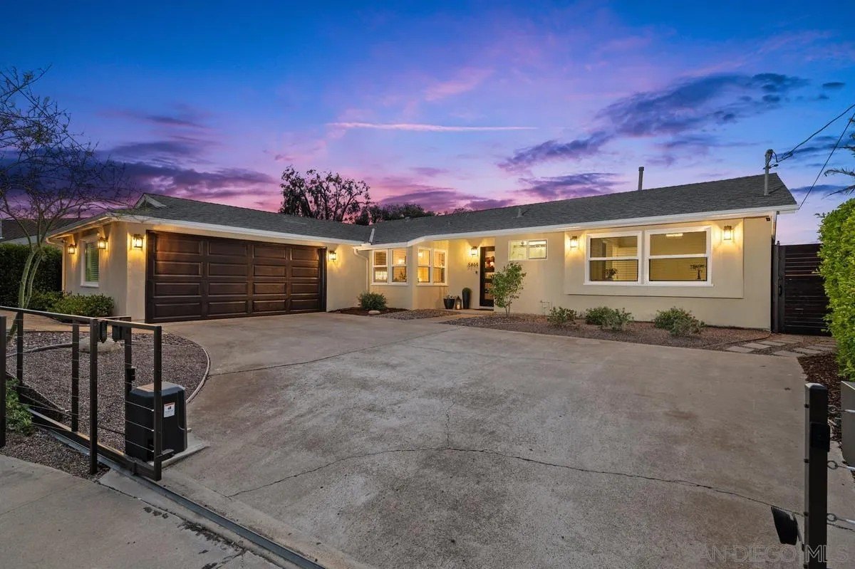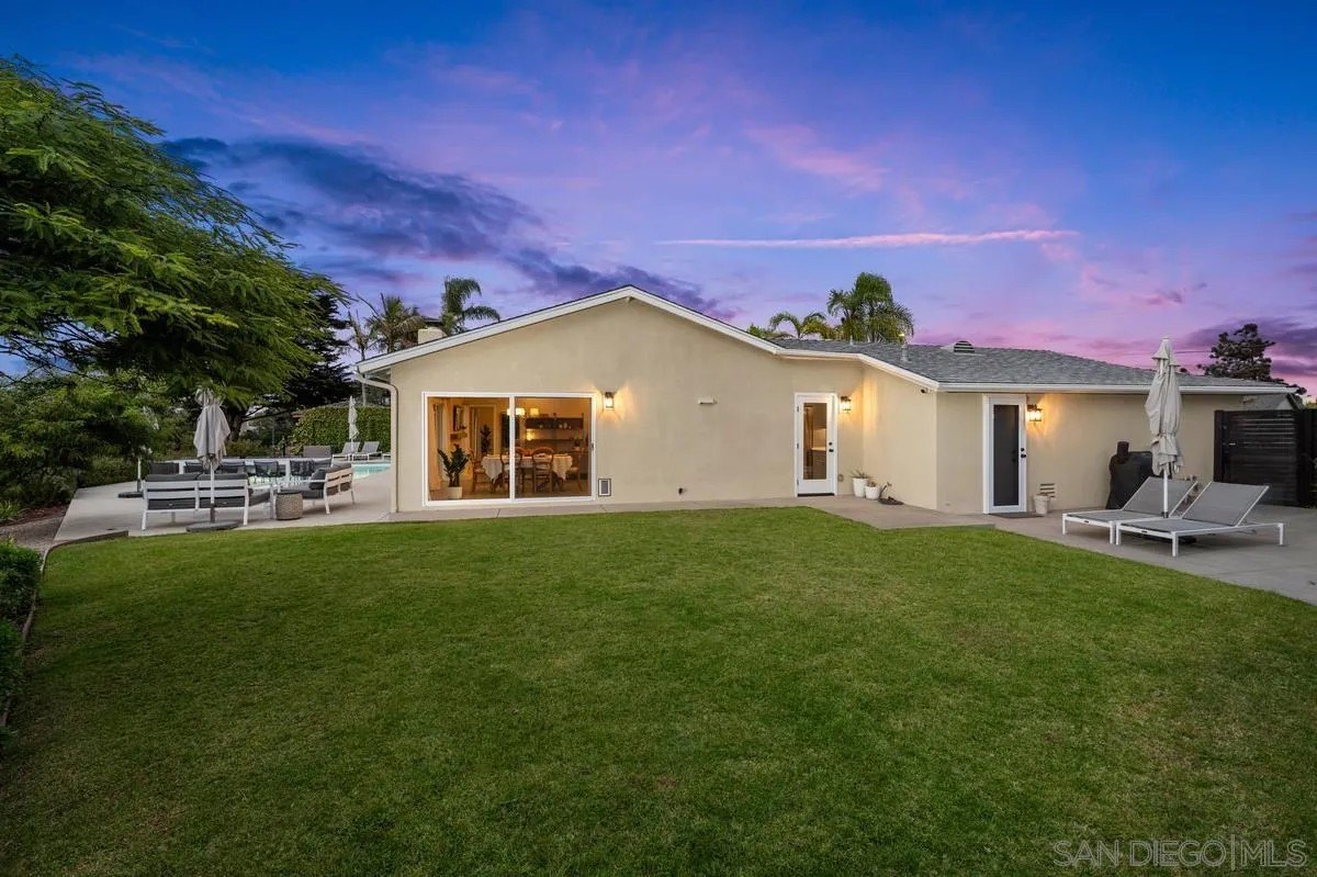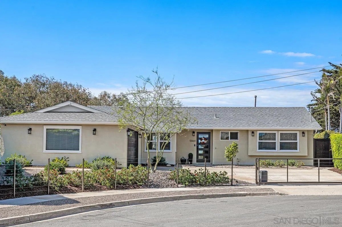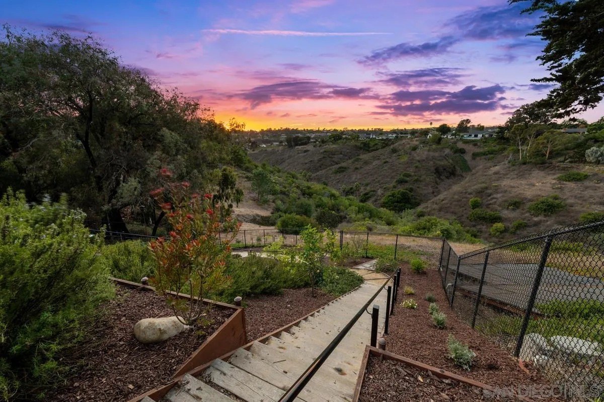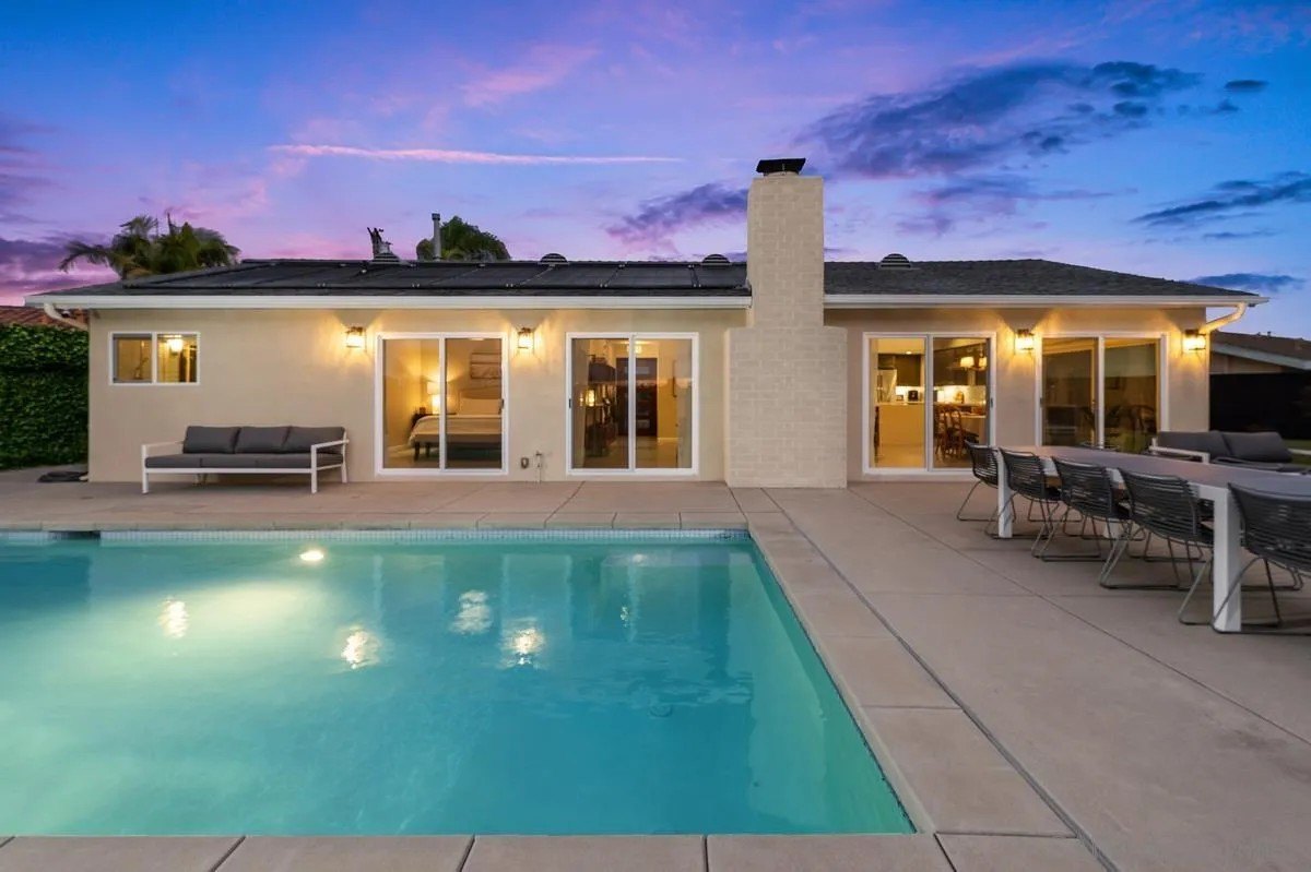 Rare find! 11,100 sqft canyon view lot sited in a cul-de-sac on the west end of University City. Ample outdoor space with a yard, solar heated pool and garden. Beautifully updated open concept filled with natural light. Chef's kitchen features wood cabinetry, quartz counters, induction cooktop, stainless steel appliances, and a 9' island. The living space includes integrated 5pt surround sound, projector, screen, and bluetooth equipped sound system. Offering two thoughtfully designed primary suites and a flexible 3rd bedroom. Fully fenced with an automatic driveway gate for added privacy and security. Centrally located, close to beaches, shopping and restaurants.