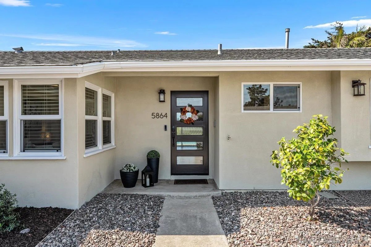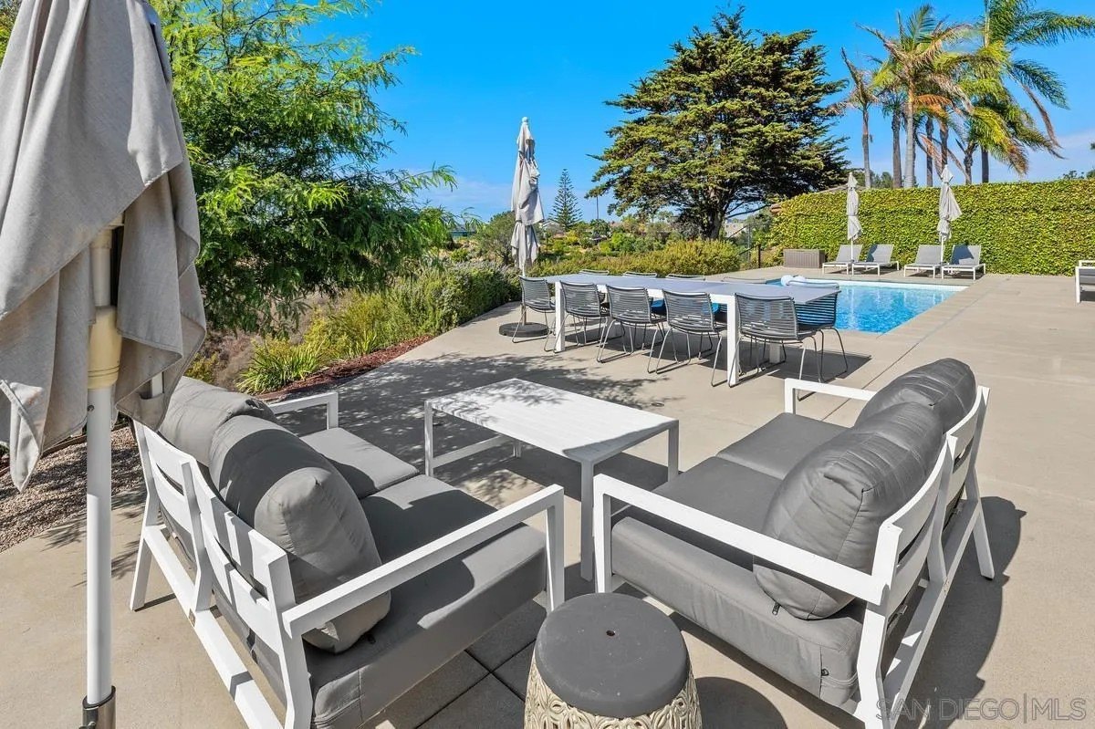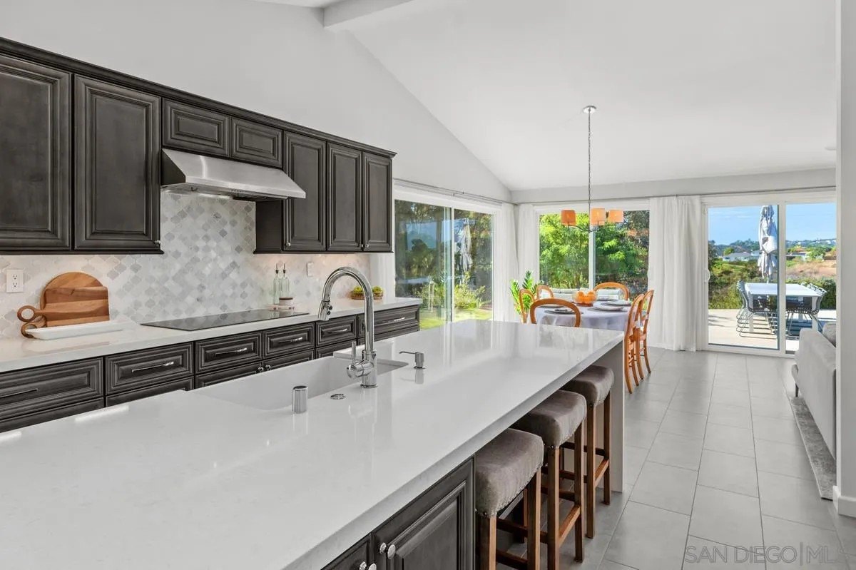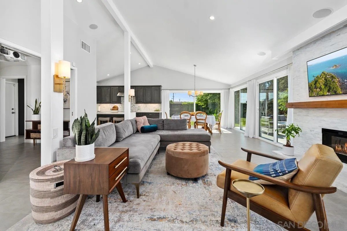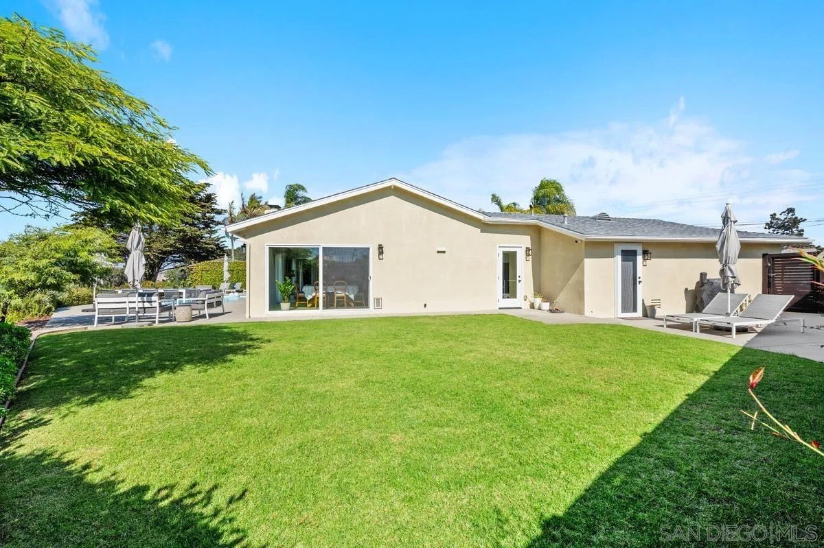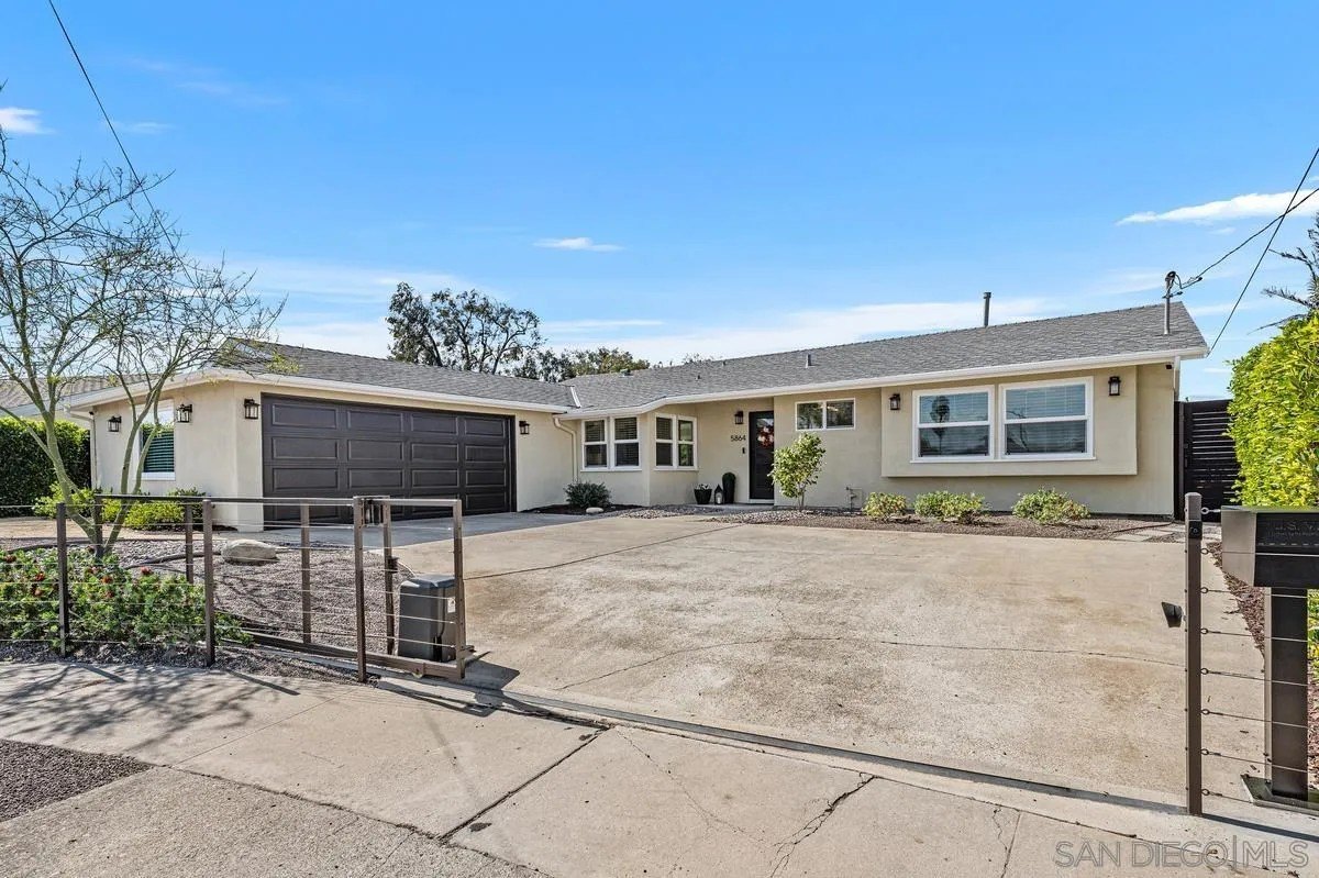 Rare find! 11,100 sqft canyon view lot sited in a cul-de-sac on the west end of University City. Ample outdoor space with a yard, solar heated pool and garden. Beautifully updated open concept filled with natural light. Chef's kitchen features wood cabinetry, quartz counters, induction cooktop, stainless steel appliances, and a 9' island. The living space includes integrated 5pt surround sound, projector, screen, and bluetooth equipped sound system. Offering two thoughtfully designed primary suites and a flexible 3rd bedroom. Fully fenced with an automatic driveway gate for added privacy and security. Centrally located, close to beaches, shopping and restaurants.