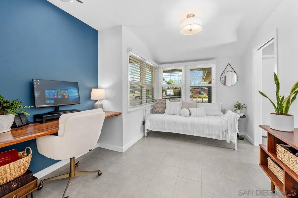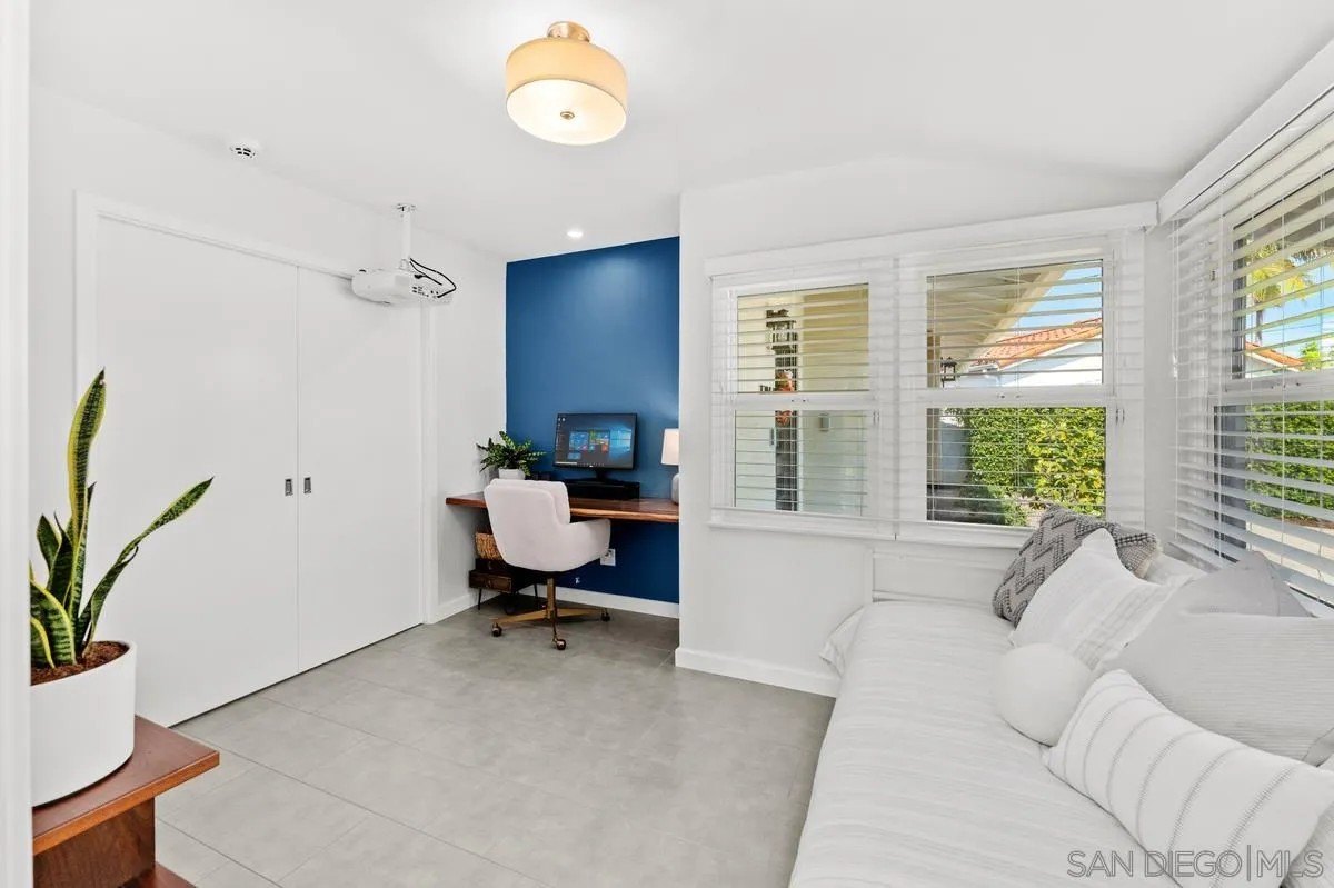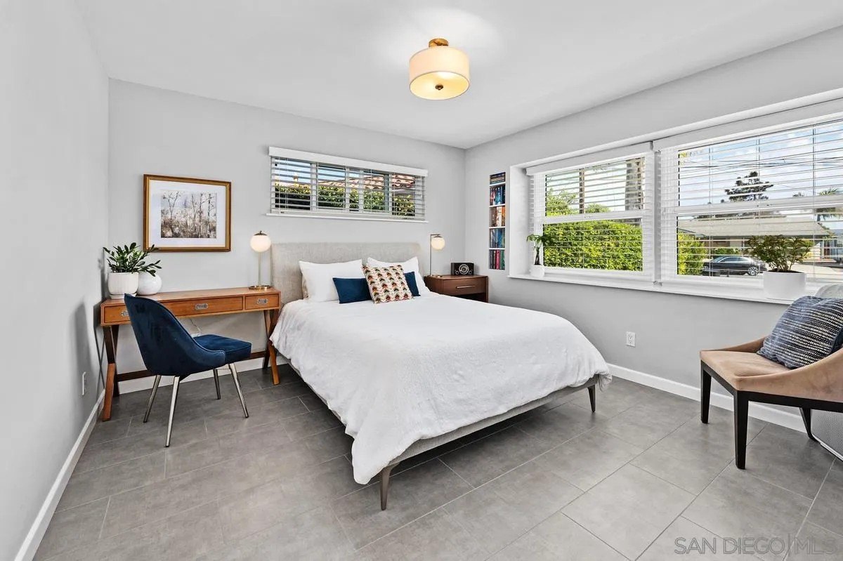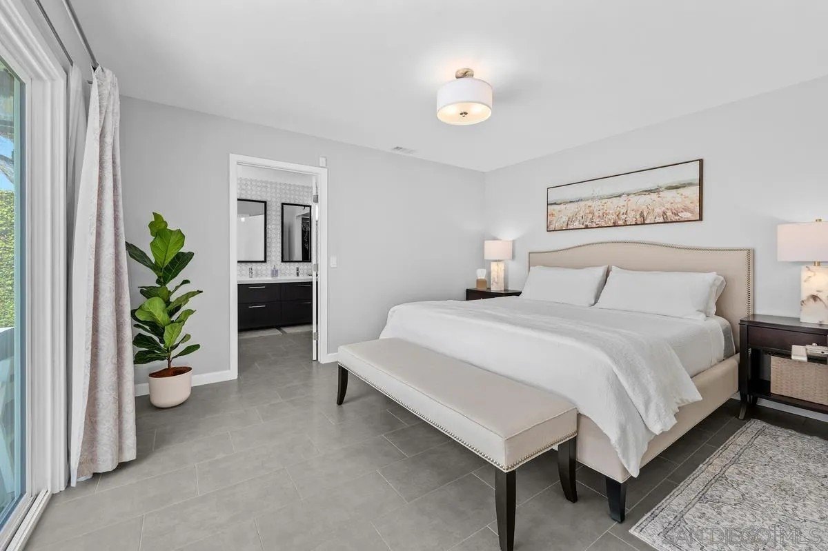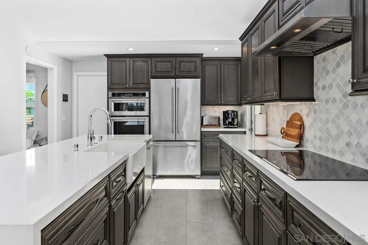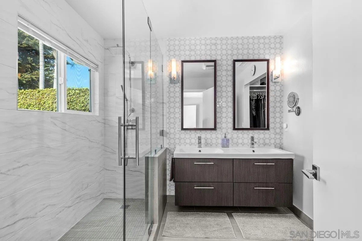 Rare find! 11,100 sqft canyon view lot sited in a cul-de-sac on the west end of University City. Ample outdoor space with a yard, solar heated pool and garden. Beautifully updated open concept filled with natural light. Chef's kitchen features wood cabinetry, quartz counters, induction cooktop, stainless steel appliances, and a 9' island. The living space includes integrated 5pt surround sound, projector, screen, and bluetooth equipped sound system. Offering two thoughtfully designed primary suites and a flexible 3rd bedroom. Fully fenced with an automatic driveway gate for added privacy and security. Centrally located, close to beaches, shopping and restaurants.