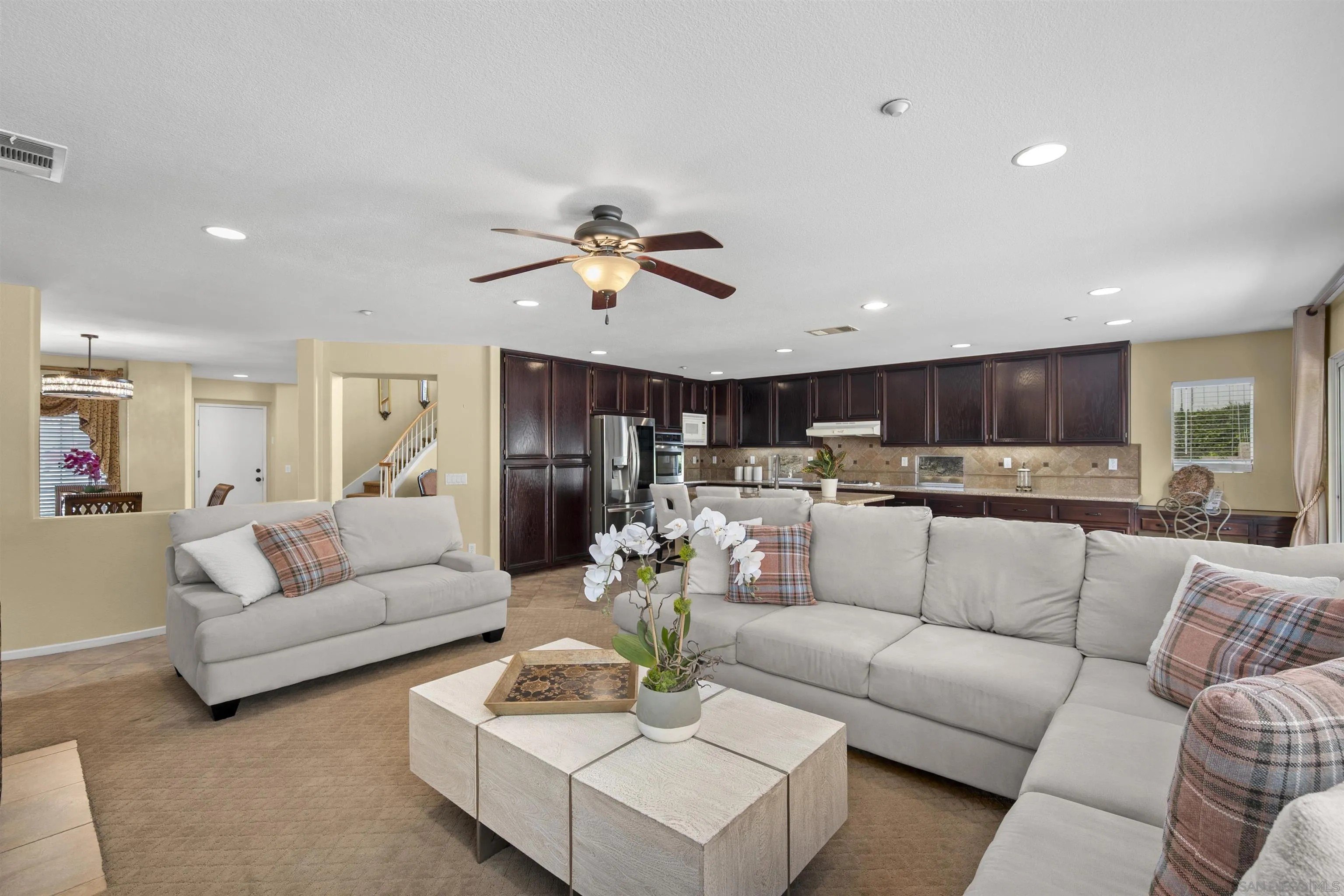 GATED community with security guard. Very Rare find in San Diego. Largest Floor plan 3,170 sq. ft. Lake View Community on a large private cul-de-sac. Views and close to the lake. 3 car garages!!! Bedroom on main floor next to full bath. This gorgeous newer built community mint condition. Open and functional layout with abundant natural light throughout. Additional space for office upstairs on landing. Plenty of room for comfortable living. This home has Solar!! Extra-large usable lot. Enjoy the privacy and security of a gated neighborhood, convenient access to nearby shopping, dining, and freeways.