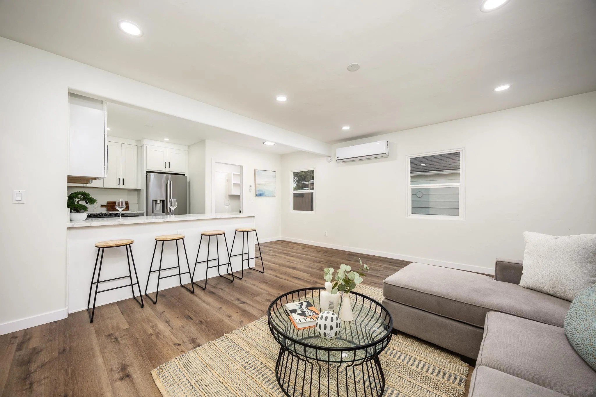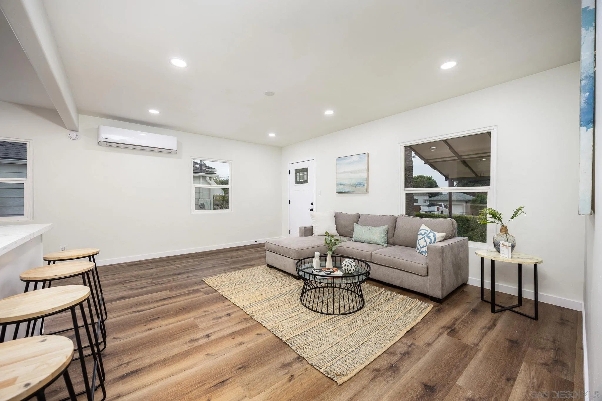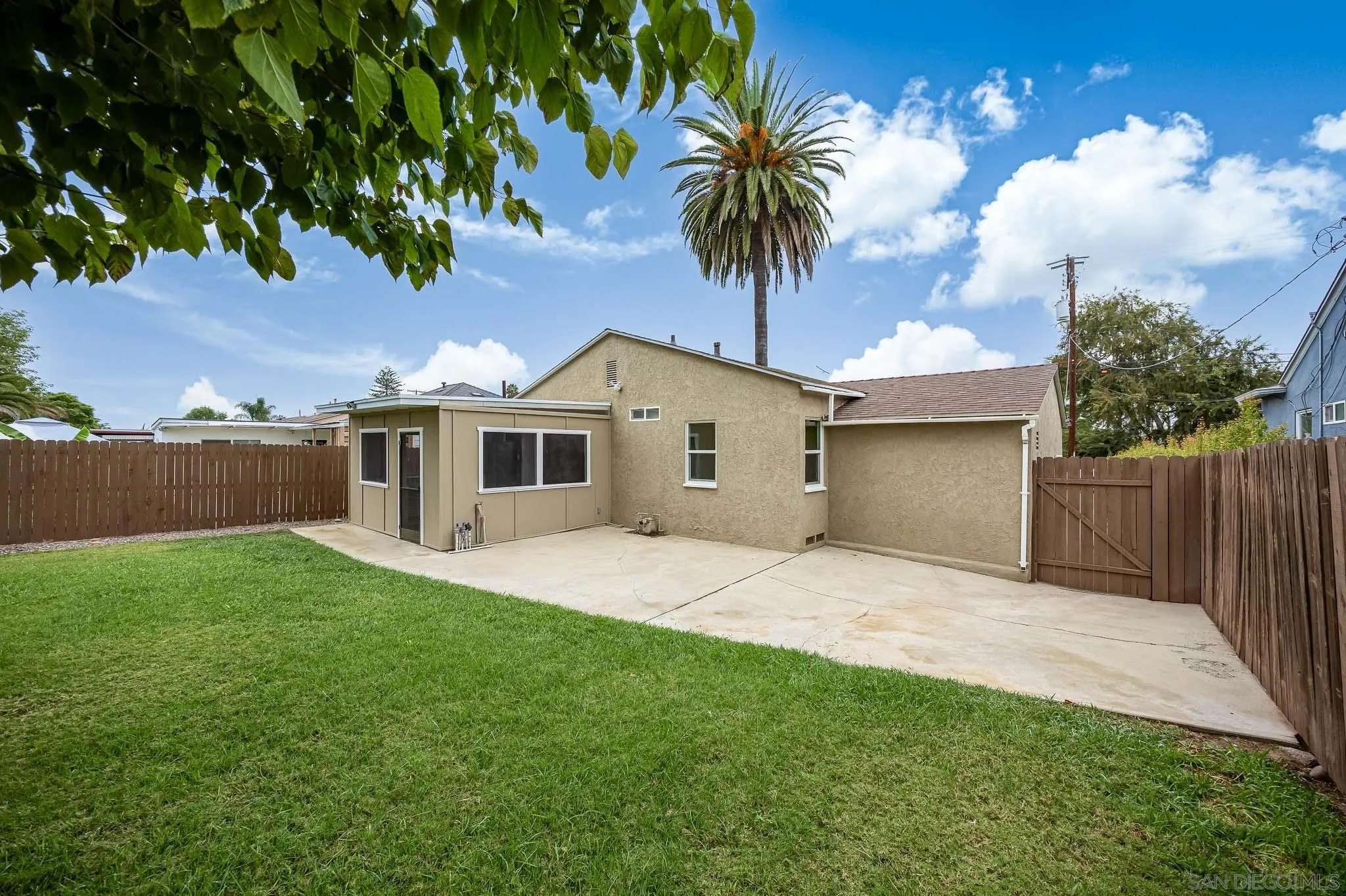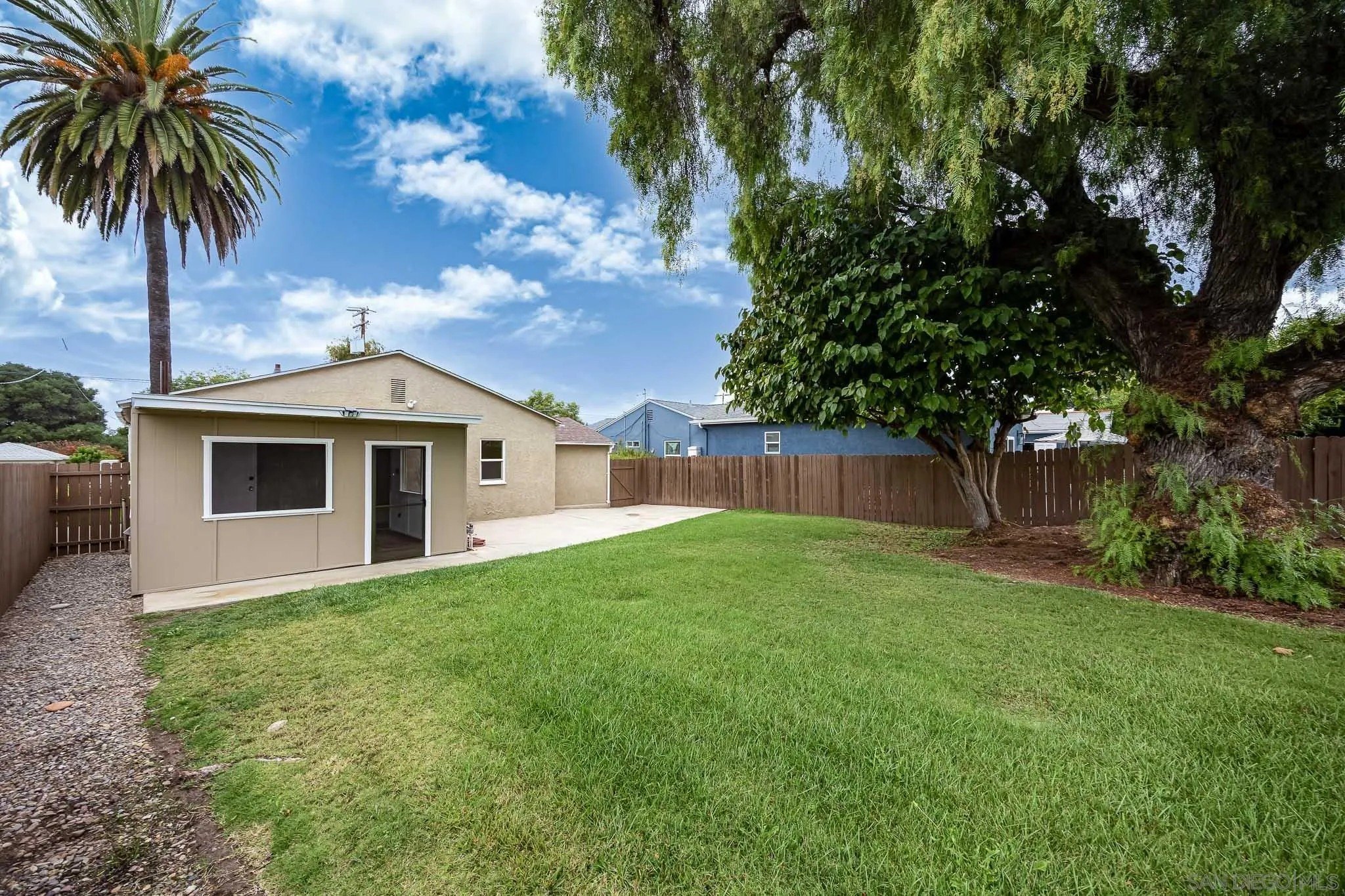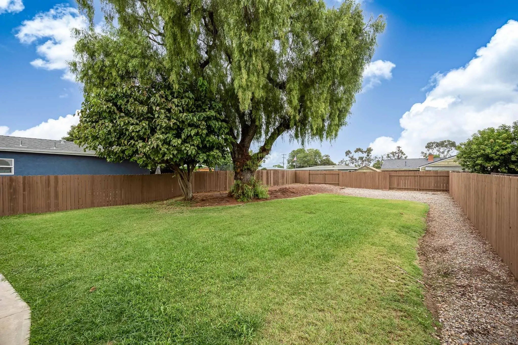 Welcome to your beautifully remodeled La Mesa retreat! This 2-bedroom, 1-bath single-family home offers 750 sq ft of stylish living space that lives much larger than its size. Every detail has been updated with fresh paint inside and out, brand-new windows, modern ceiling fans, and energy efficient mini-split HVAC system. The open-concept layout features luxury vinyl plank flooring throughout, a brand-new kitchen with crisp shaker cabinets, gorgeous quartz countertops, stainless-steel appliances, and a deep basin sink. You'll also love the convenience of an indoor laundry room and a one-car garage with plenty of parking and storage. Step outside to your massive backyard oasis. Featuring lush green grass, a large covered patio, and endless potential for entertaining, future expansion, an ADU, or even your dream pool. This move in ready home blends modern comfort with incredible outdoor space, offering the perfect La Mesa lifestyle.