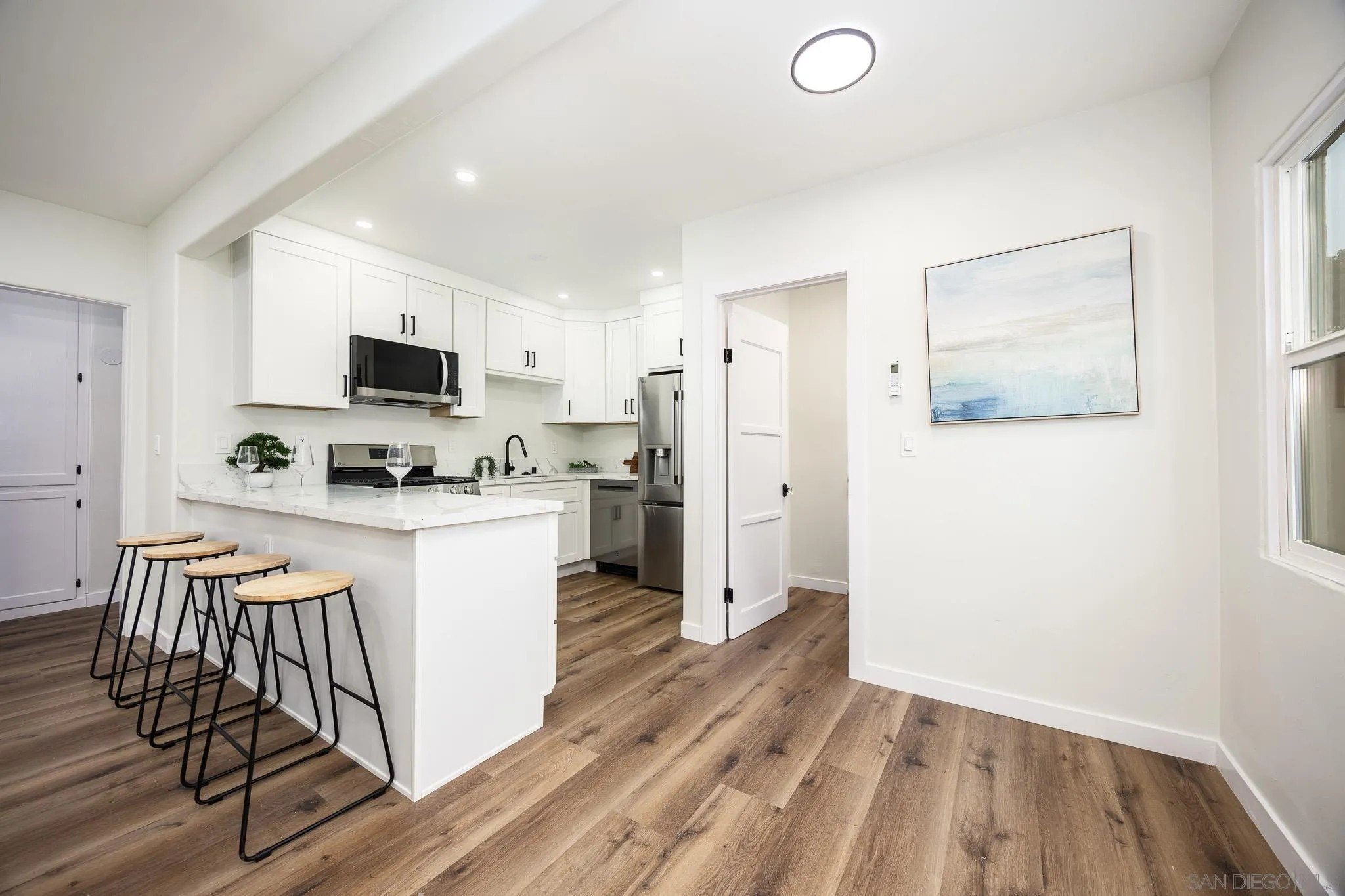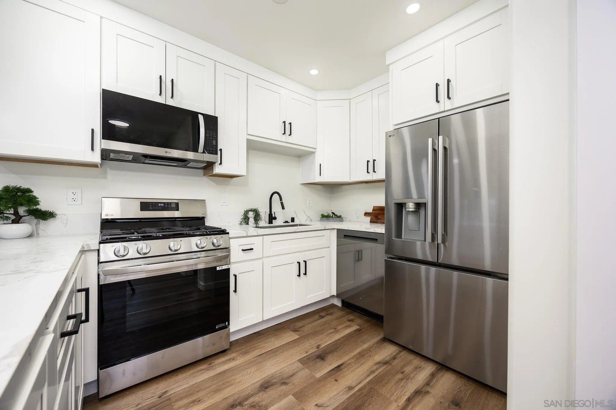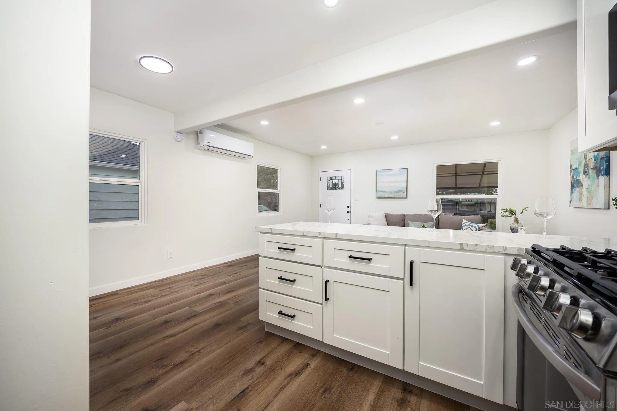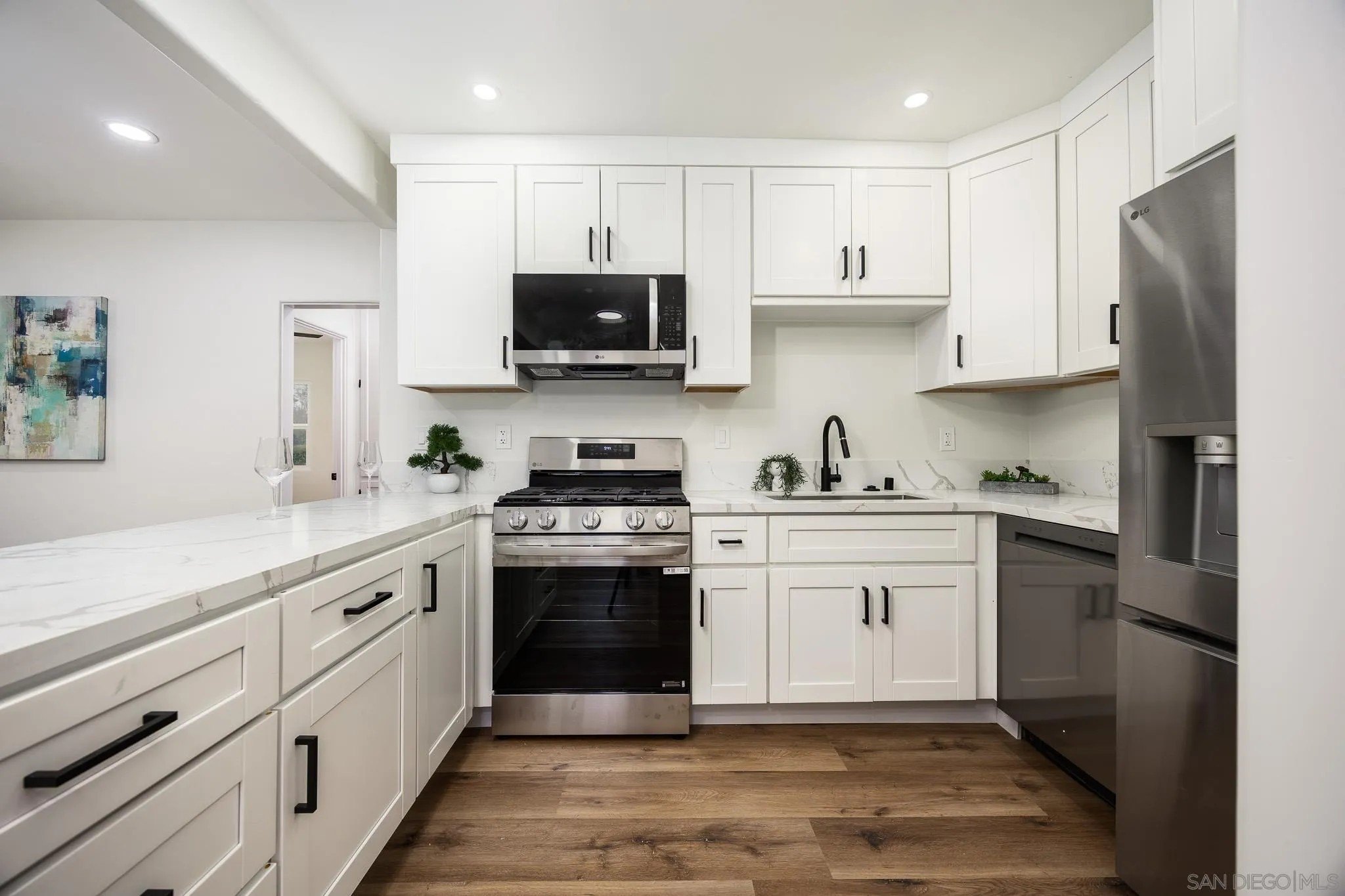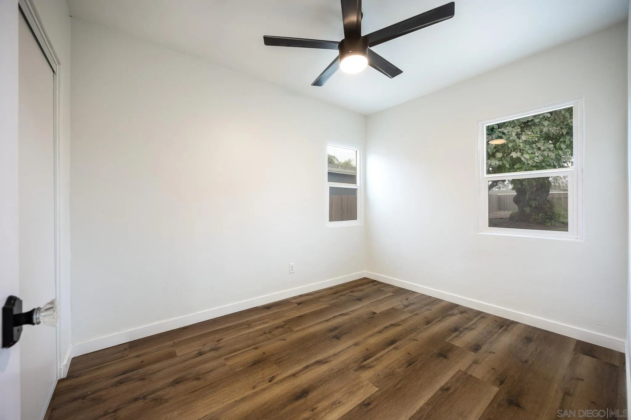 Welcome to your beautifully remodeled La Mesa retreat! This 2-bedroom, 1-bath single-family home offers 750 sq ft of stylish living space that lives much larger than its size. Every detail has been updated with fresh paint inside and out, brand-new windows, modern ceiling fans, and energy efficient mini-split HVAC system. The open-concept layout features luxury vinyl plank flooring throughout, a brand-new kitchen with crisp shaker cabinets, gorgeous quartz countertops, stainless-steel appliances, and a deep basin sink. You'll also love the convenience of an indoor laundry room and a one-car garage with plenty of parking and storage. Step outside to your massive backyard oasis. Featuring lush green grass, a large covered patio, and endless potential for entertaining, future expansion, an ADU, or even your dream pool. This move in ready home blends modern comfort with incredible outdoor space, offering the perfect La Mesa lifestyle.