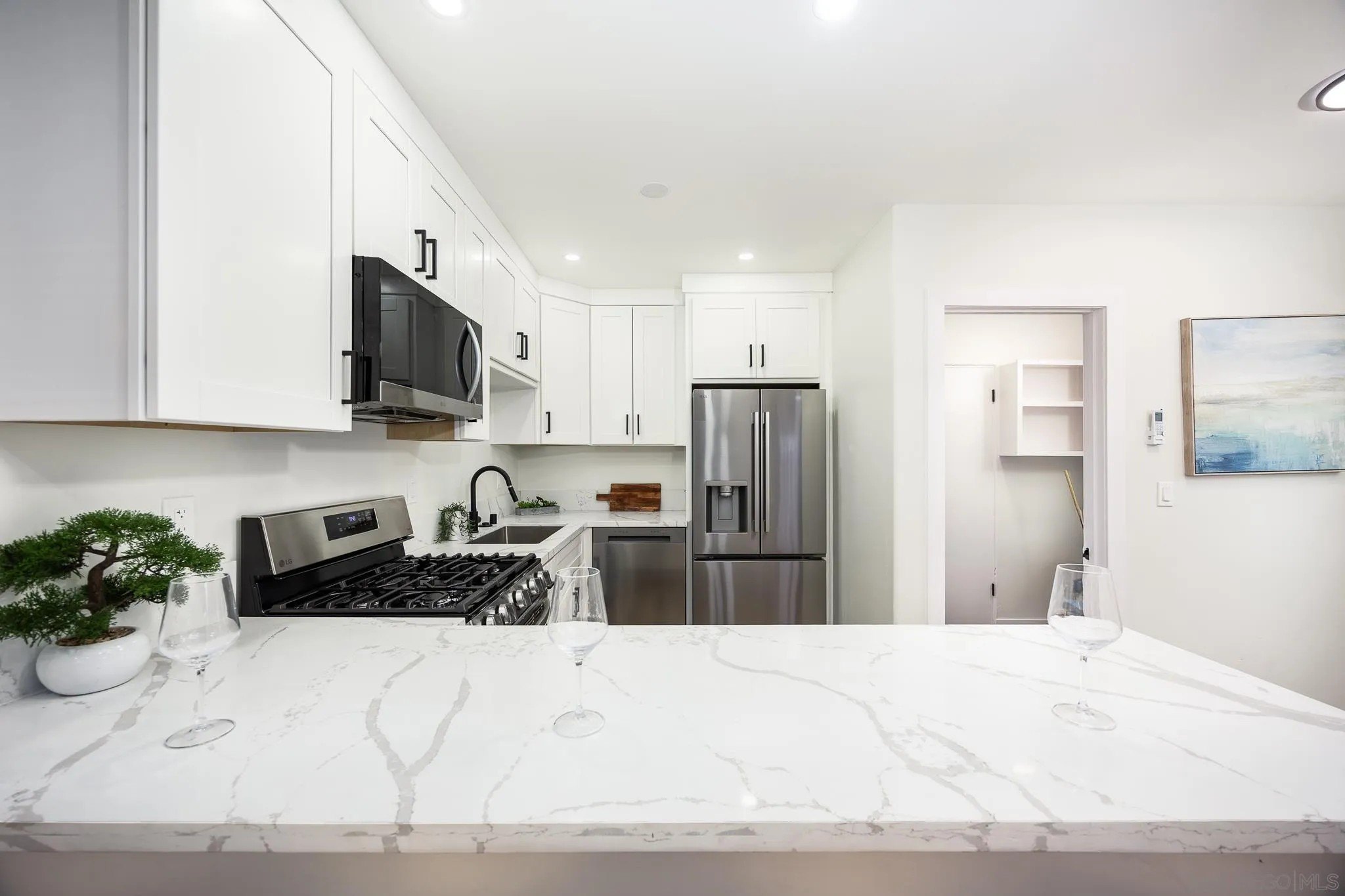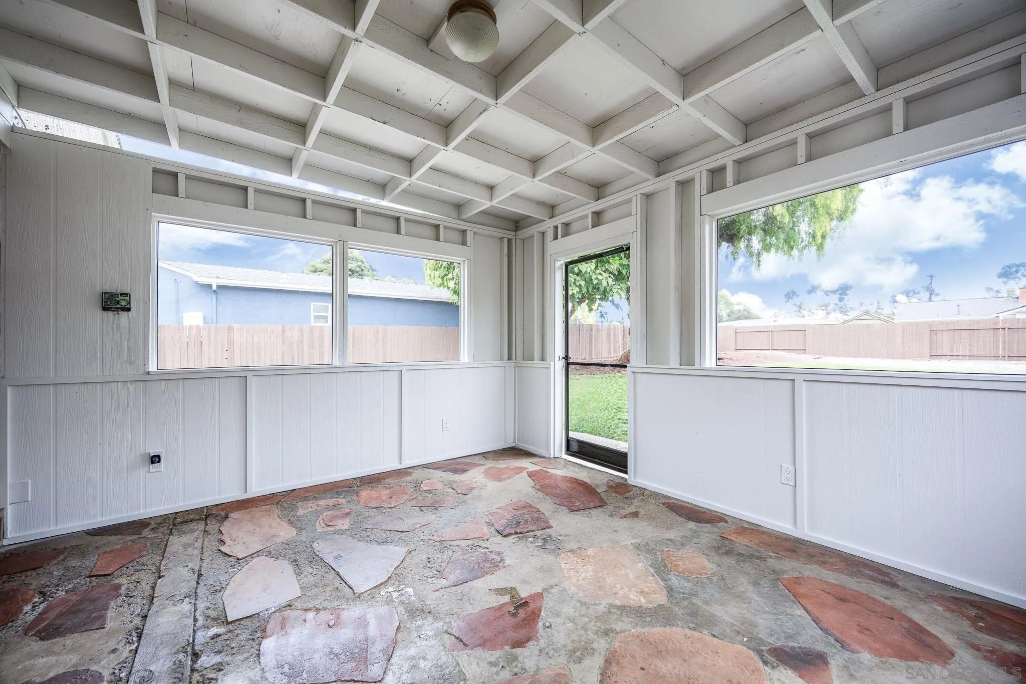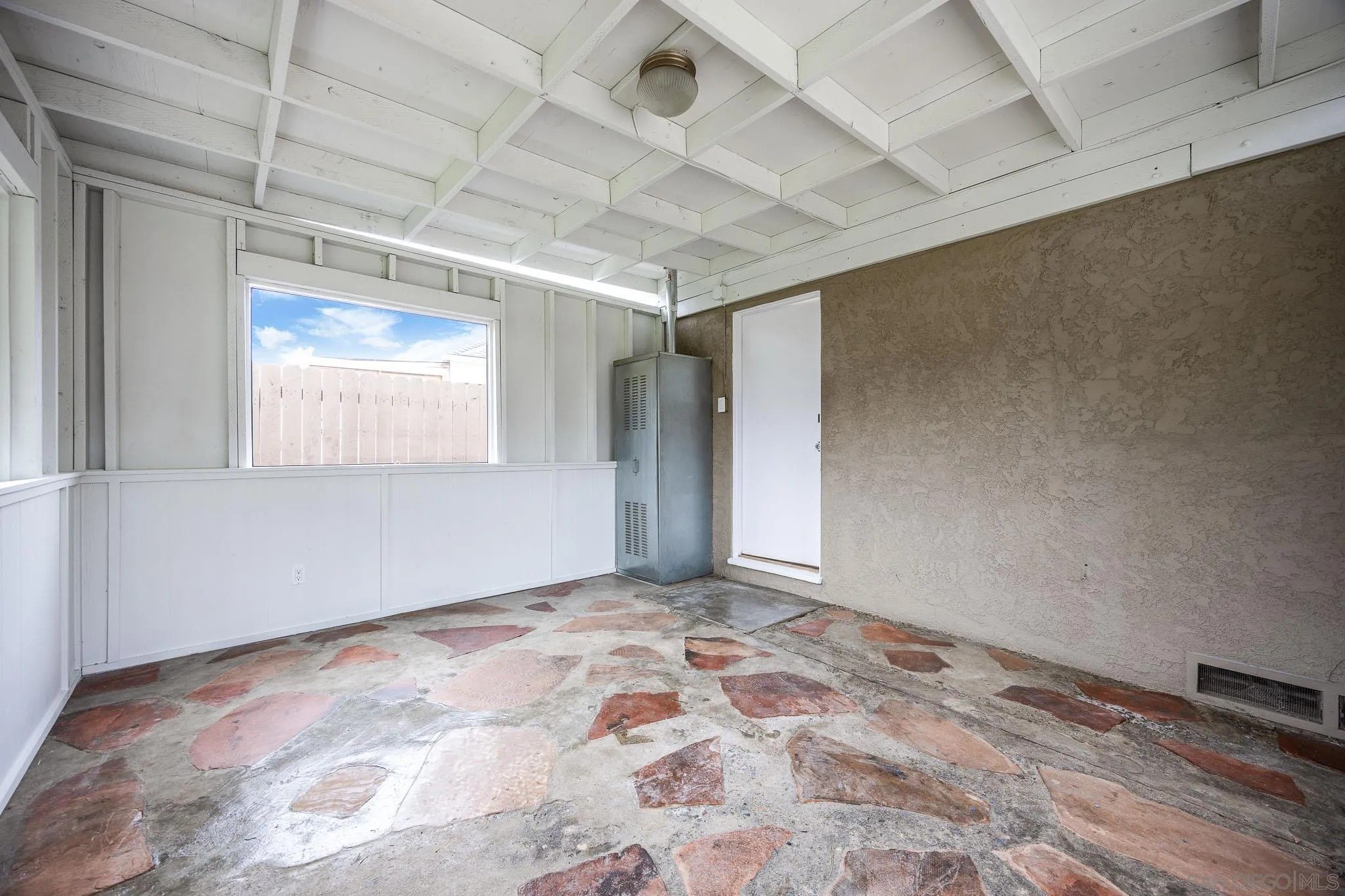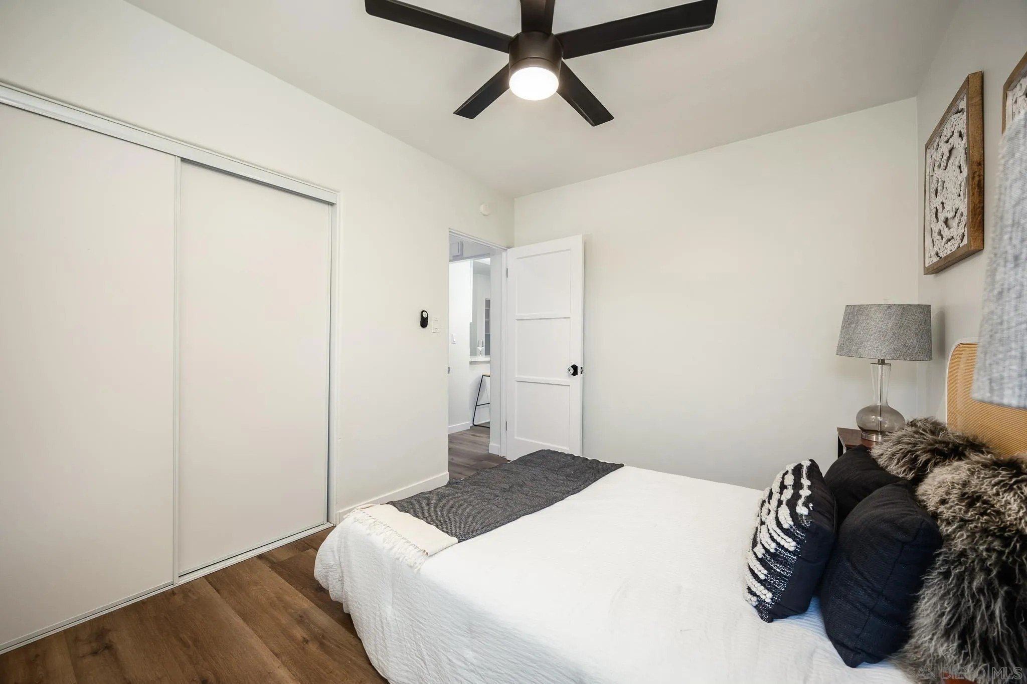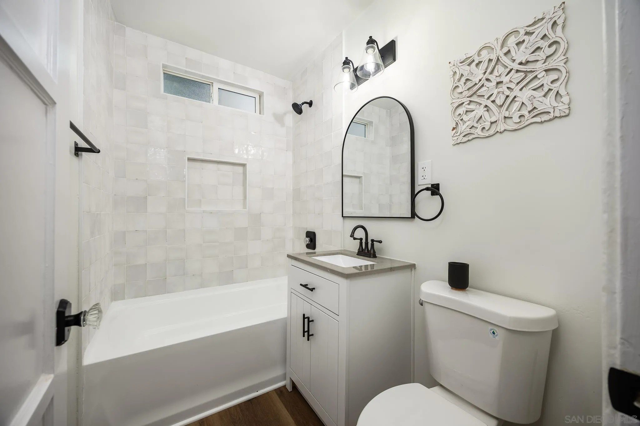 Welcome to your beautifully remodeled La Mesa retreat! This 2-bedroom, 1-bath single-family home offers 750 sq ft of stylish living space that lives much larger than its size. Every detail has been updated with fresh paint inside and out, brand-new windows, modern ceiling fans, and energy efficient mini-split HVAC system. The open-concept layout features luxury vinyl plank flooring throughout, a brand-new kitchen with crisp shaker cabinets, gorgeous quartz countertops, stainless-steel appliances, and a deep basin sink. You'll also love the convenience of an indoor laundry room and a one-car garage with plenty of parking and storage. Step outside to your massive backyard oasis. Featuring lush green grass, a large covered patio, and endless potential for entertaining, future expansion, an ADU, or even your dream pool. This move in ready home blends modern comfort with incredible outdoor space, offering the perfect La Mesa lifestyle.