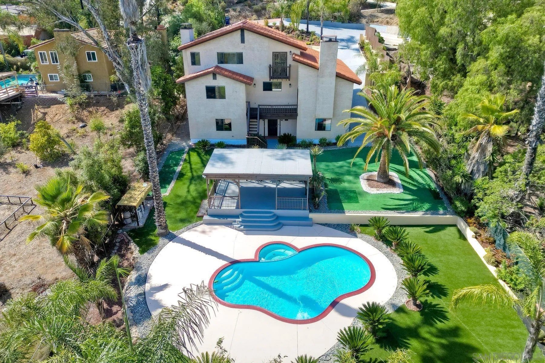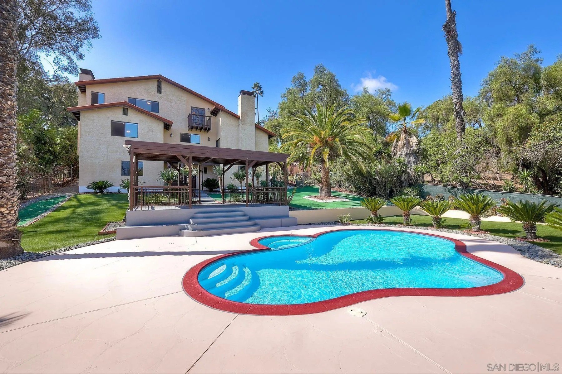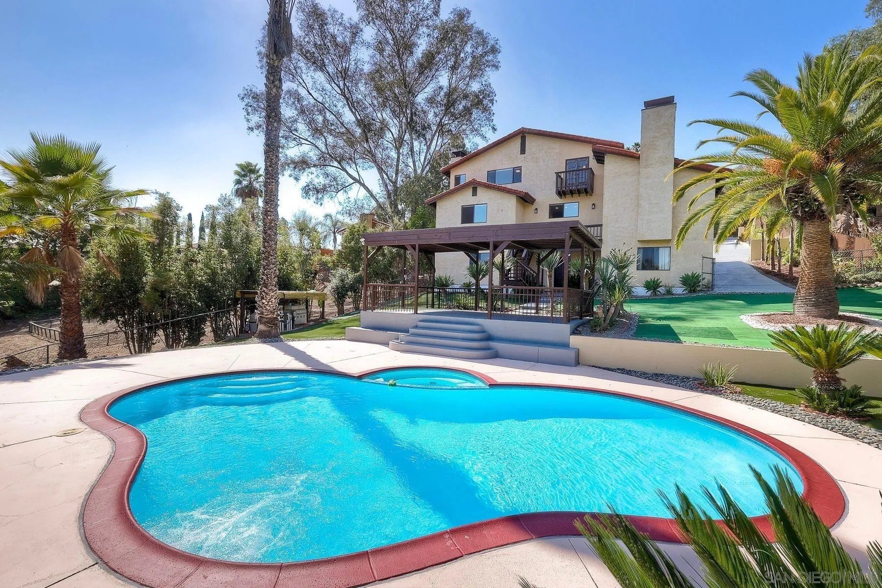 Discover your Mount Helix sanctuary. This elegant Mediterranean estate sits on nearly half an acre, and offers 6 bedrooms, 3 baths, with approximately 4,100 sq. ft. of beautifully designed living space. The open layout showcases soaring ceilings, hardwood floors, and expansive windows framing sweeping views. Enjoy a spacious living and dining area with a cozy fireplace and direct access to the backyard, plus a large family room with its own fireplace - perfect for gatherings. The gourmet kitchen anchors the home with granite countertops, stainless steel appliances, and a grand island ideal for entertaining. Downstairs features two bedrooms and a large bath, while upstairs offers the primary suite with a private balcony overlooking the pool and backyard, along with three additional bedrooms boasting beautiful views from every window. Step outside to resort-style living with a sparkling pool, spa, shaded gazebo, and low-maintenance landscaping. A 3-car garage and extended driveway provide ample parking for an RV, boat, or trailer. The 1,000 sq. ft. basement is ready to customize as an office, gym, or guest suite. Tucked away in the tranquility of Mount Helix yet just minutes from La Mesa's dining, schools, and freeway access. This home offers the perfect balance of privacy and convenience.