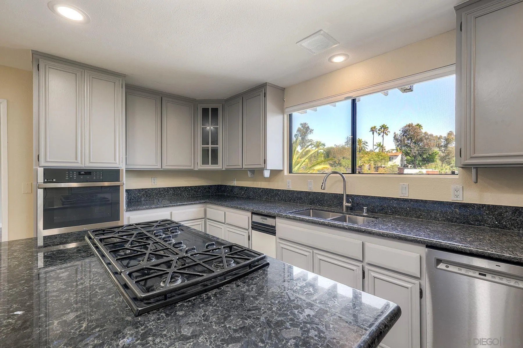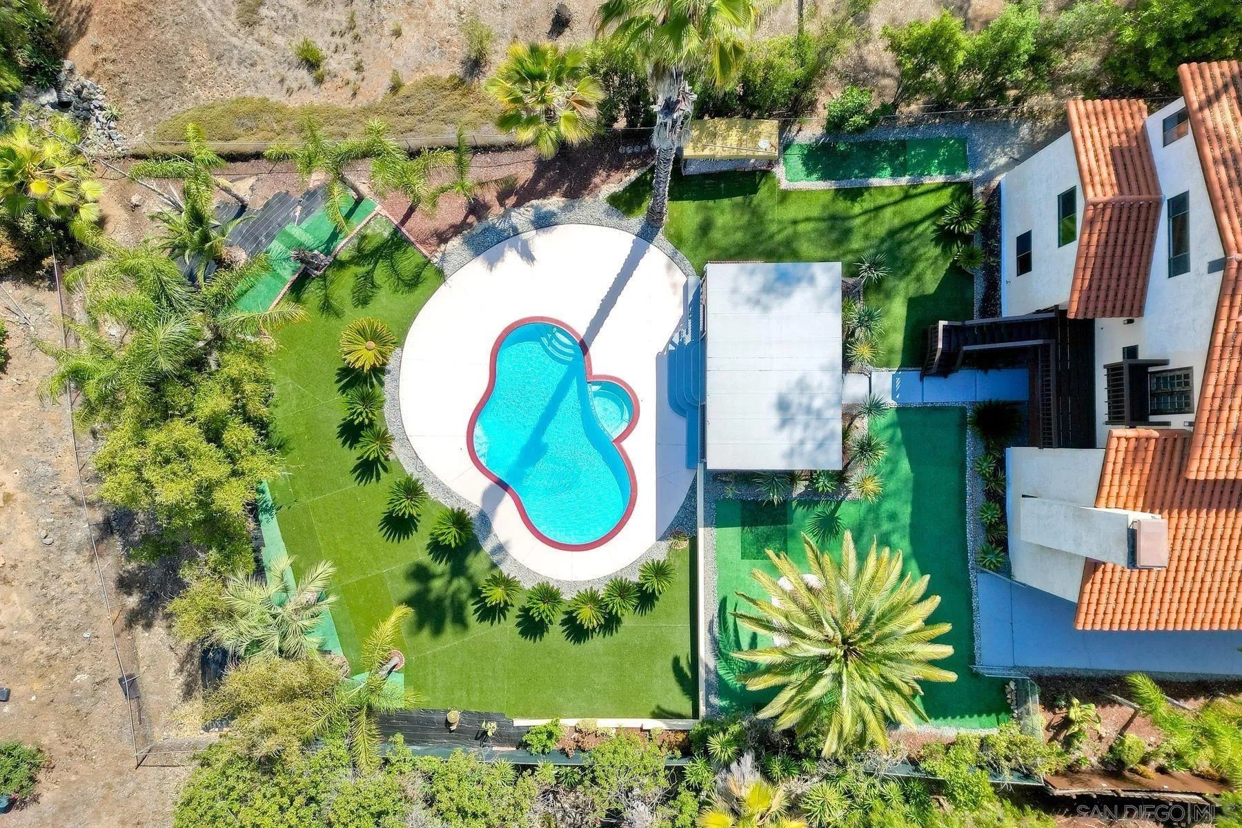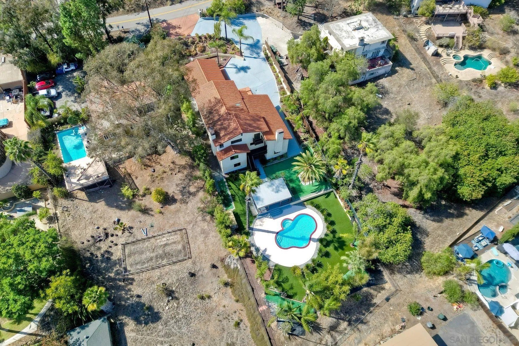 Discover your Mount Helix sanctuary. This elegant Mediterranean estate sits on nearly half an acre, and offers 6 bedrooms, 3 baths, with approximately 4,100 sq. ft. of beautifully designed living space. The open layout showcases soaring ceilings, hardwood floors, and expansive windows framing sweeping views. Enjoy a spacious living and dining area with a cozy fireplace and direct access to the backyard, plus a large family room with its own fireplace - perfect for gatherings. The gourmet kitchen anchors the home with granite countertops, stainless steel appliances, and a grand island ideal for entertaining. Downstairs features two bedrooms and a large bath, while upstairs offers the primary suite with a private balcony overlooking the pool and backyard, along with three additional bedrooms boasting beautiful views from every window. Step outside to resort-style living with a sparkling pool, spa, shaded gazebo, and low-maintenance landscaping. A 3-car garage and extended driveway provide ample parking for an RV, boat, or trailer. The 1,000 sq. ft. basement is ready to customize as an office, gym, or guest suite. Tucked away in the tranquility of Mount Helix yet just minutes from La Mesa's dining, schools, and freeway access. This home offers the perfect balance of privacy and convenience.